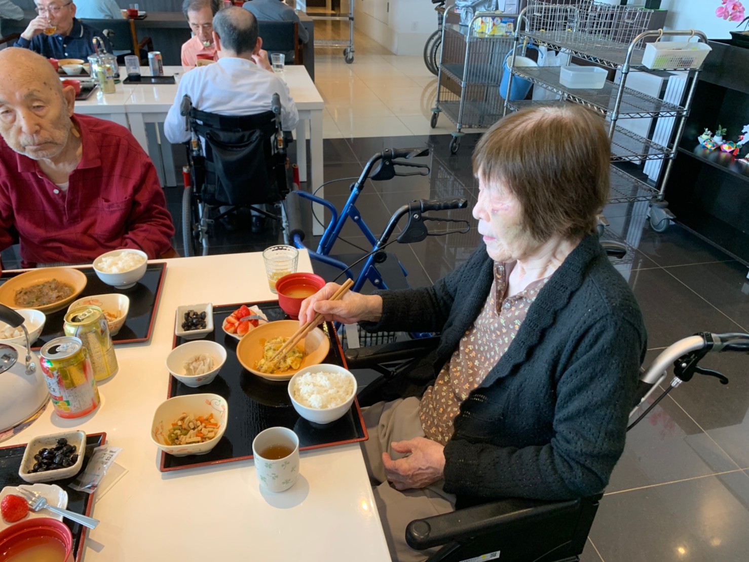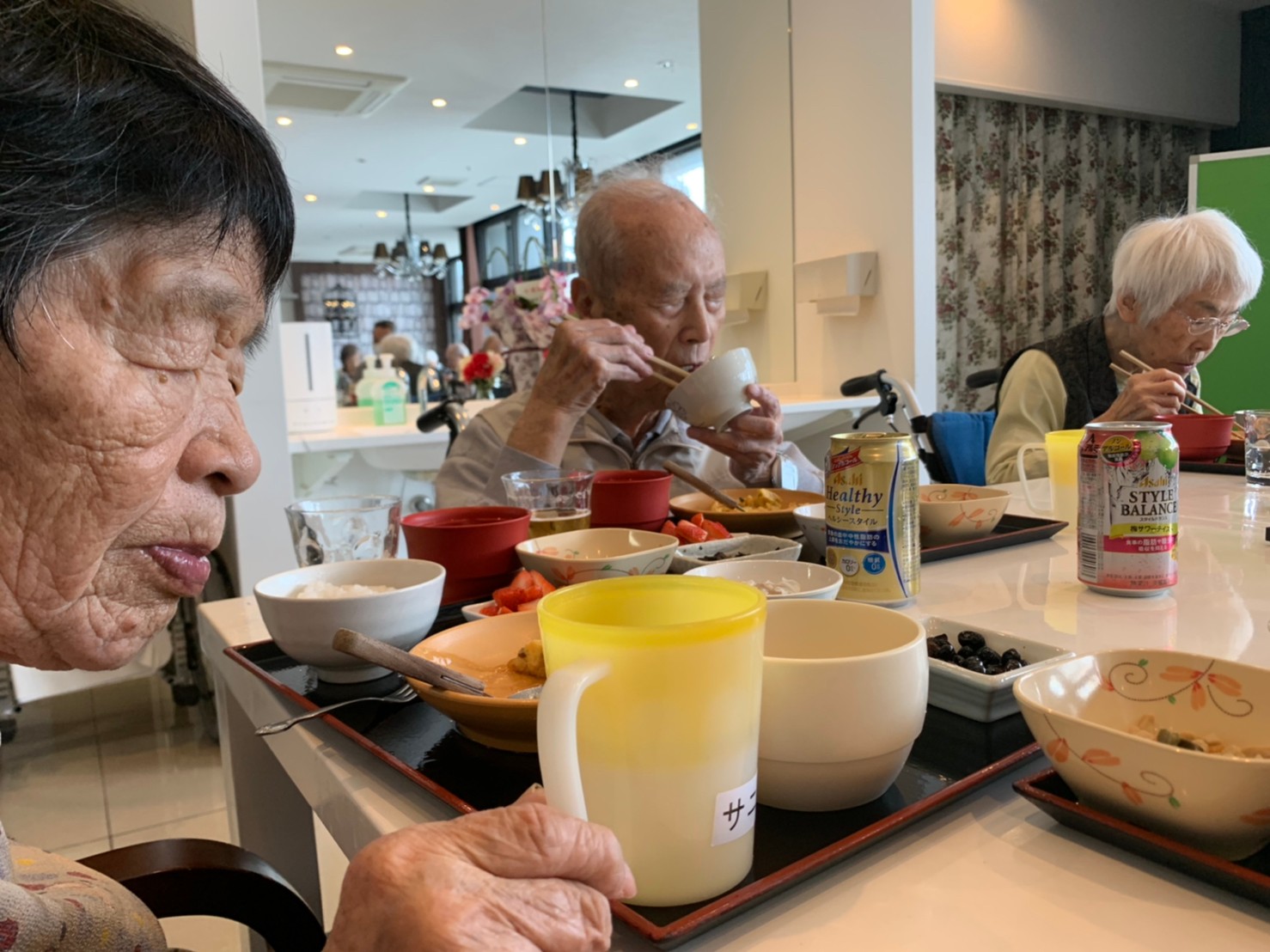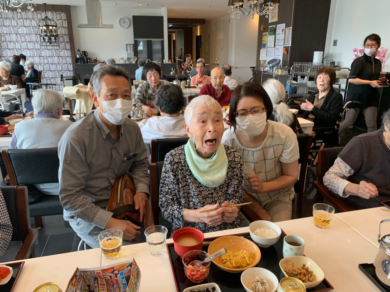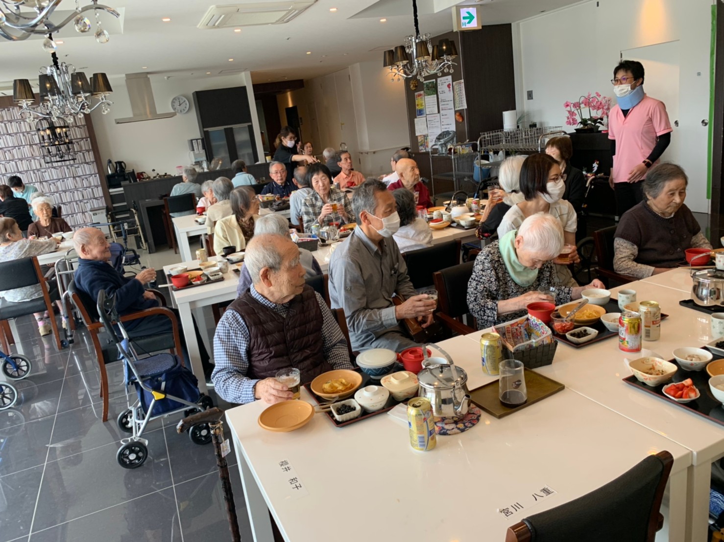 本日から新しいご入居さまが来られました。お昼はウェルカムパーティーを開催し、利用者さまと職員での歓迎会です。大きなお声で自己紹介もしていただき、これからたくさんの思い出を作っていただき、末永くお過ごしください。
