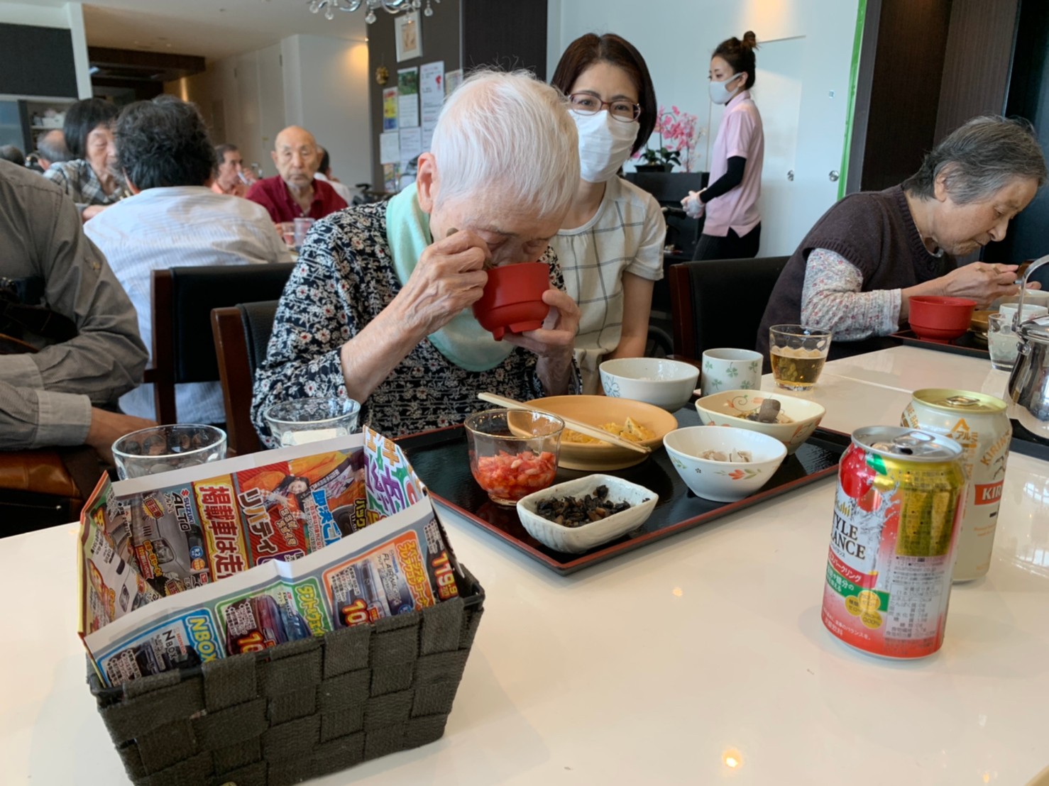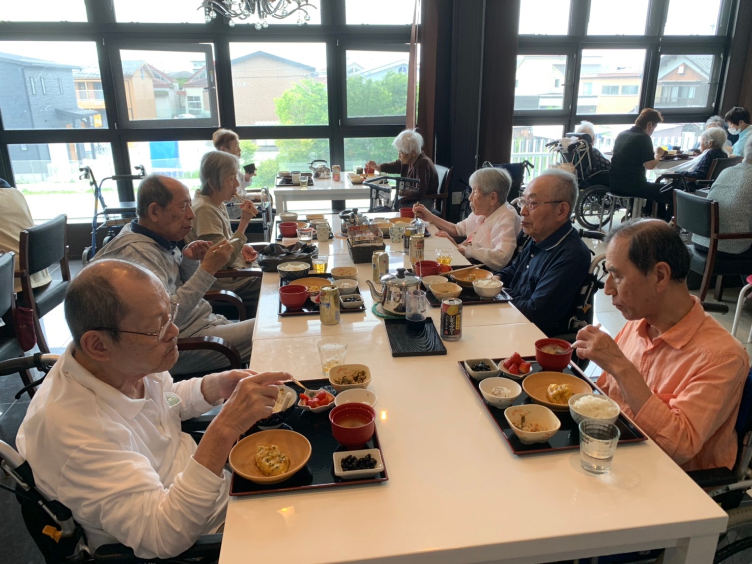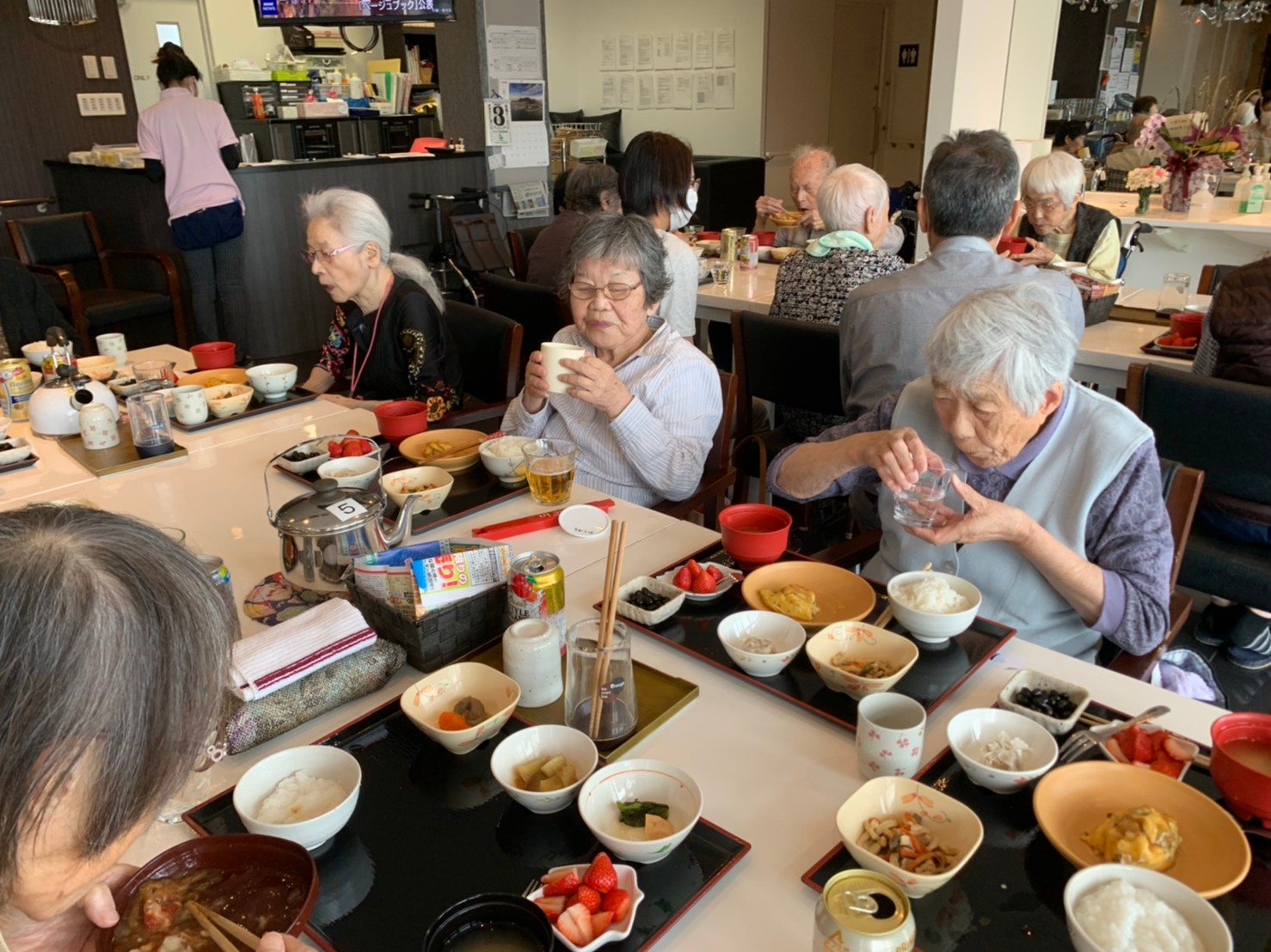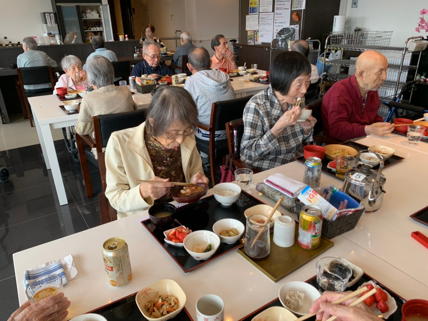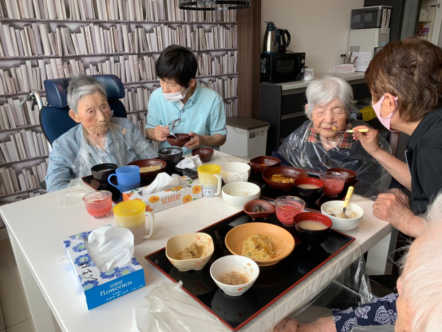 本日から新しいご入居さまが来られました。お昼はウェルカムパーティーを開催し、利用者さまと職員での歓迎会です。大きなお声で自己紹介もしていただき、これからたくさんの思い出を作っていただき、末永くお過ごしください。