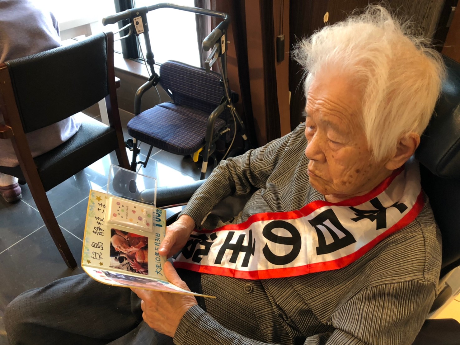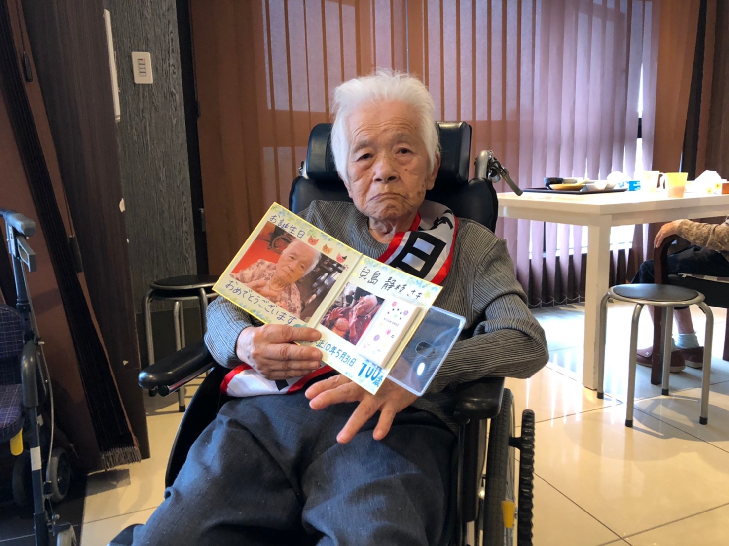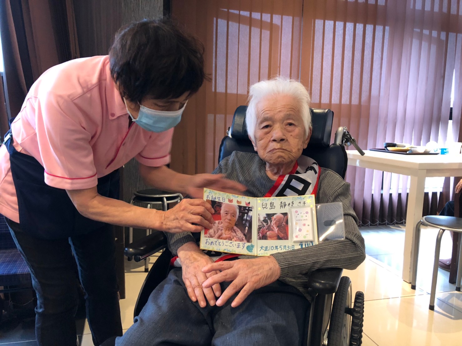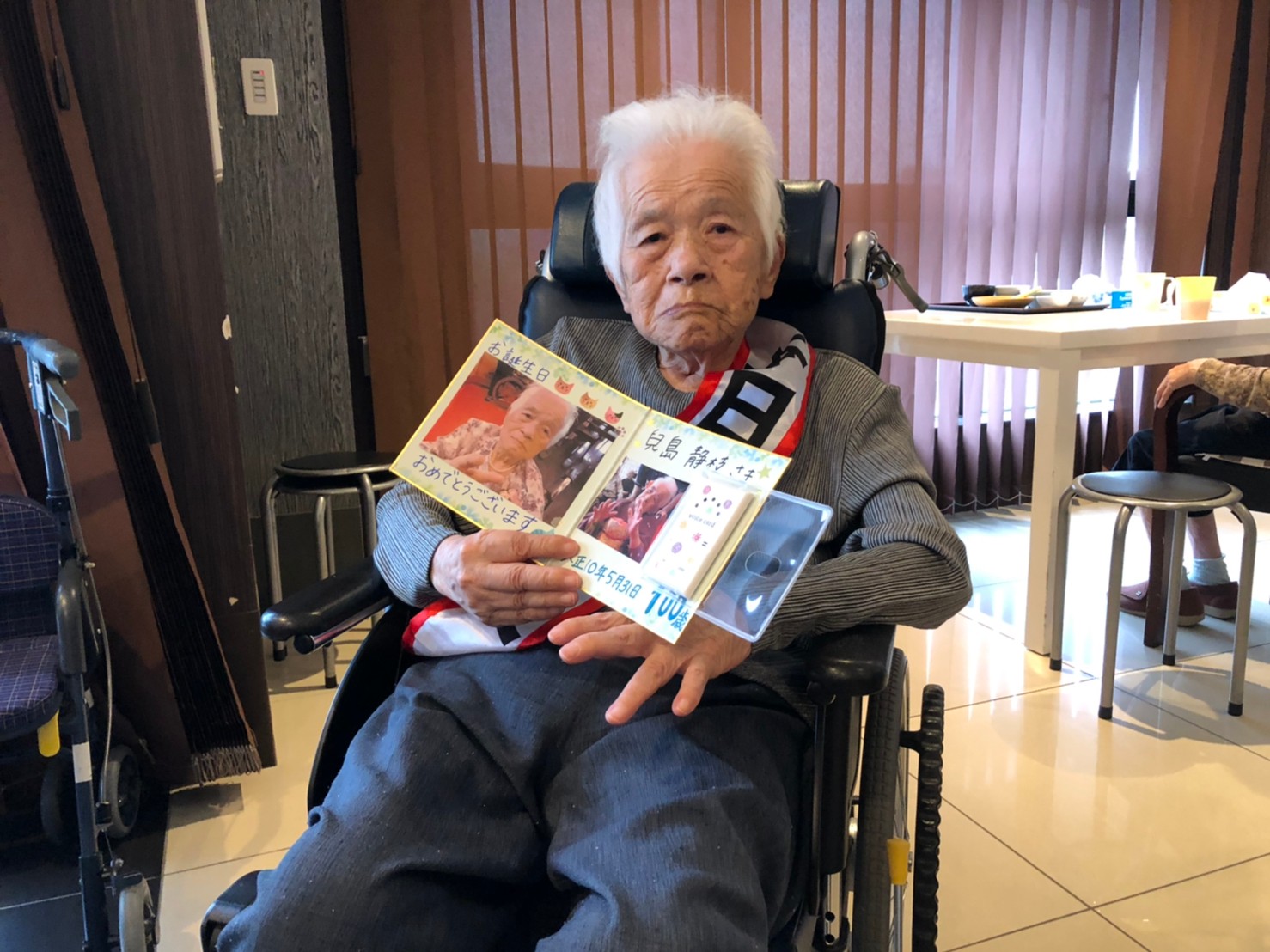 本日は利用者さまのお誕生日です。今年度の職員からの手作りカードはなんとボイスメモ機能付きです。お誕生日を記念してご本人様のお声でお名前や抱負を録音していただき、プレゼントさせていただきました。手前みそで大変恐縮ですが、このボイスメモ機能が優秀で、みなさまがかわるがわる再生ボタンを押されていました。