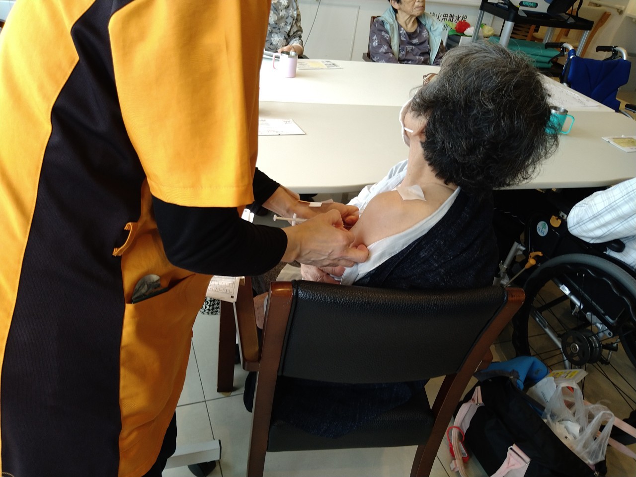 かねてよりご連絡させていただいていました通り、5月27日に2回目の新型コロナワクチンの予防接種を行いました。当日は体調が悪化し搬送される方もおられずに、利用者さまのご親族におかれましては安心いただければと思います。また微熱や体調の変化のあった方には個別にご連絡させていただきました。今回も前回と同様にお顔がわからないように処理させていただきました。ご理解の程よろしくお願い致します。
