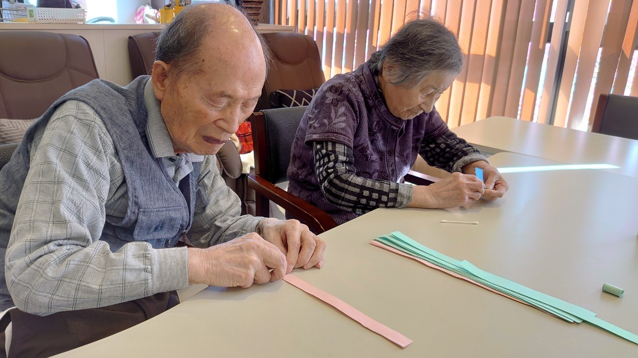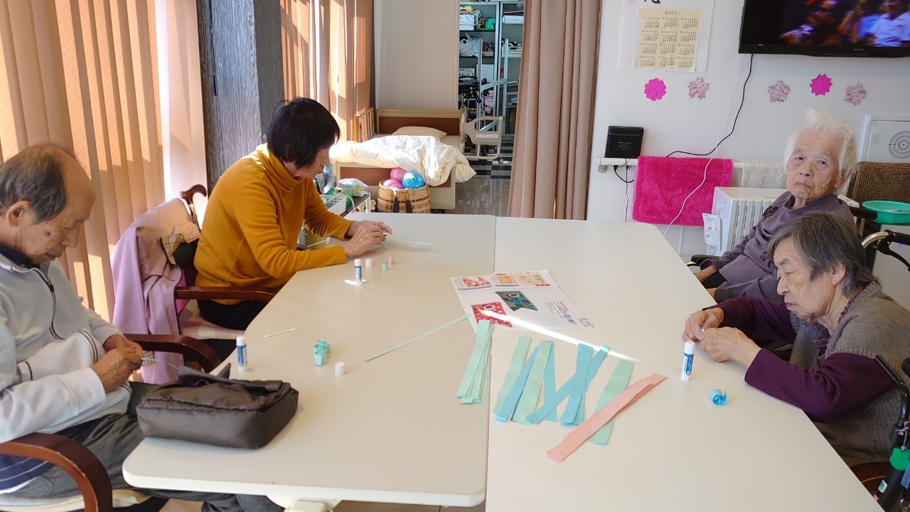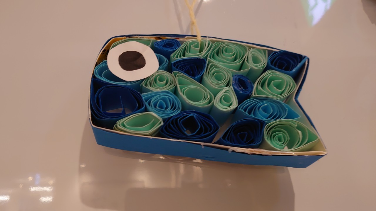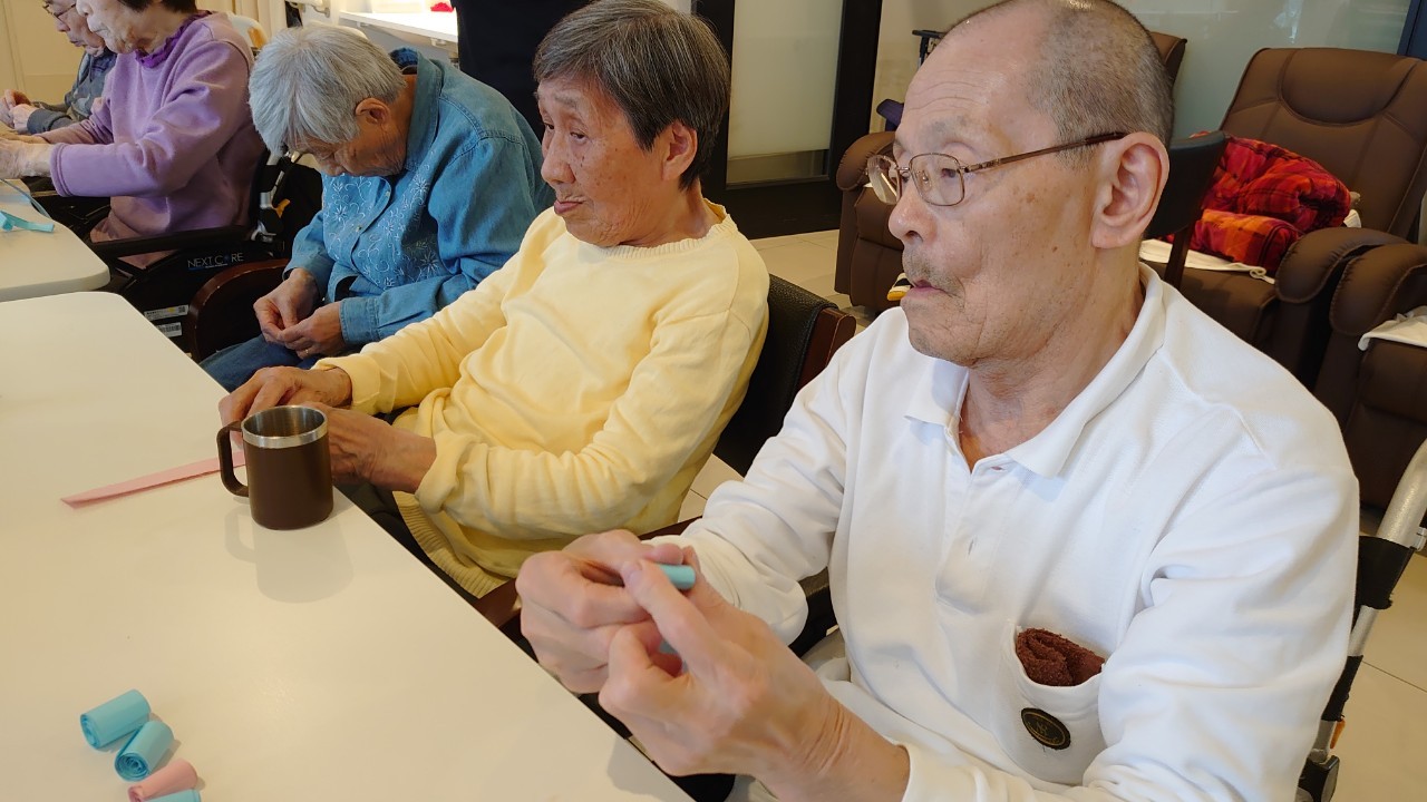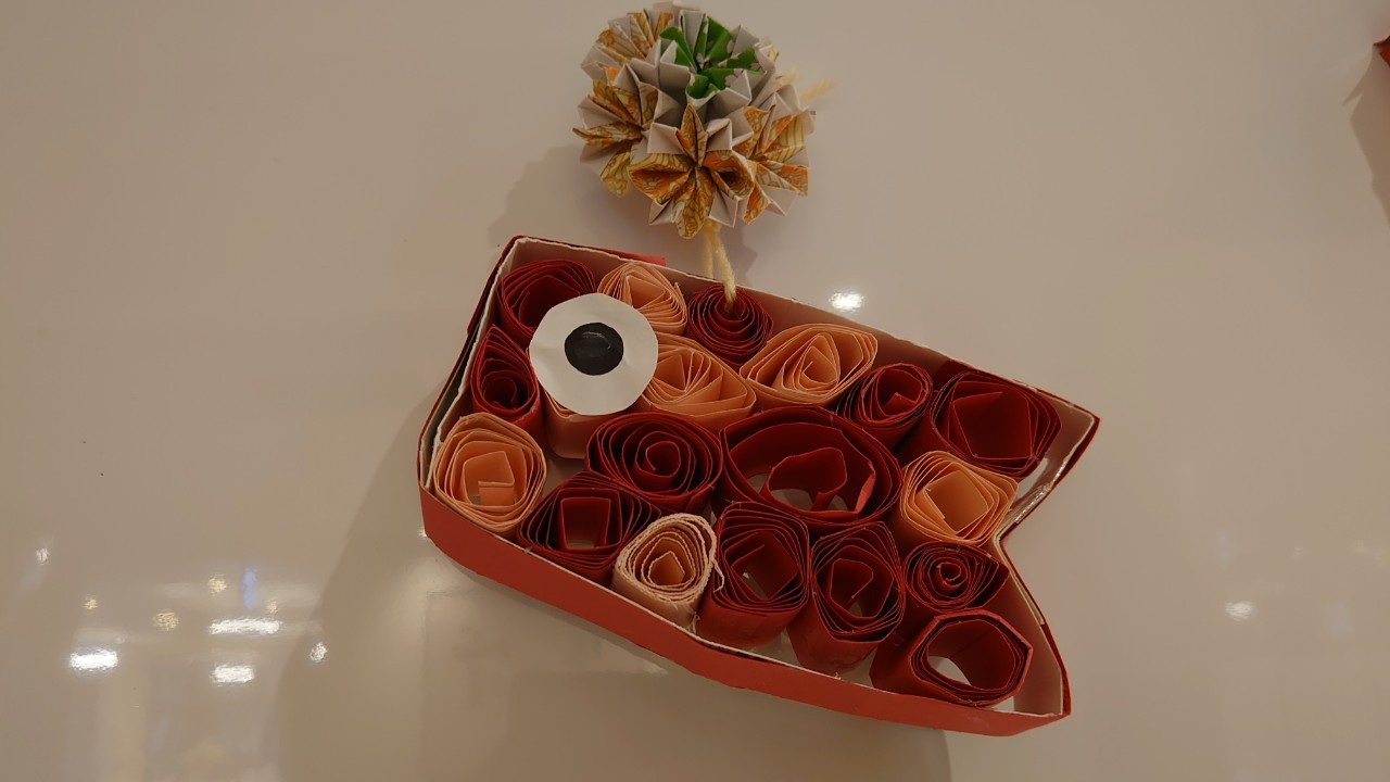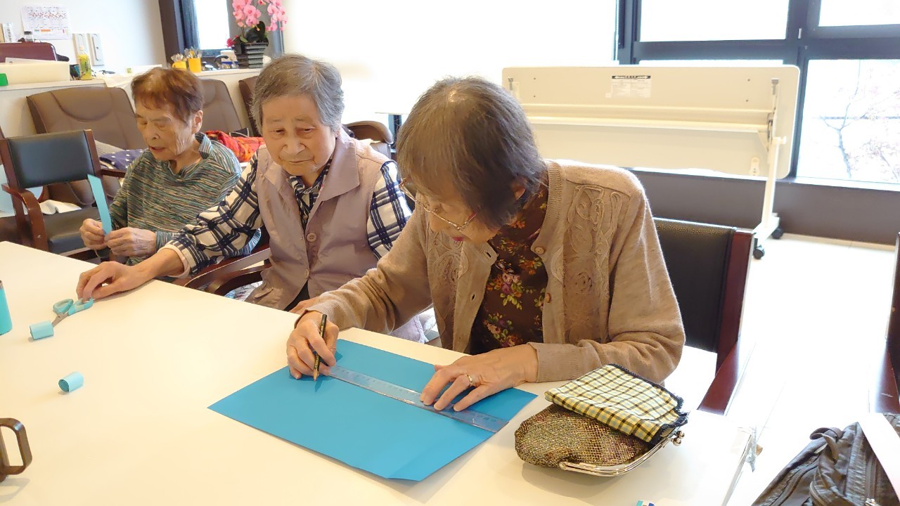 本日から5月です。デイサービスの壁画アートも季節ごとに変わります。今月のテーマはこいのぼりです。画用紙の短冊をくるくる巻いて、うろこを作ります。デイサービスの利用者さまがお作りになられ、もくもくと作業をされているときはまるでカニを食べているような静かさで集中されていました。大雑把な私が作るとうろこの枚数の少ないこいのぼりになるんだろうな~w