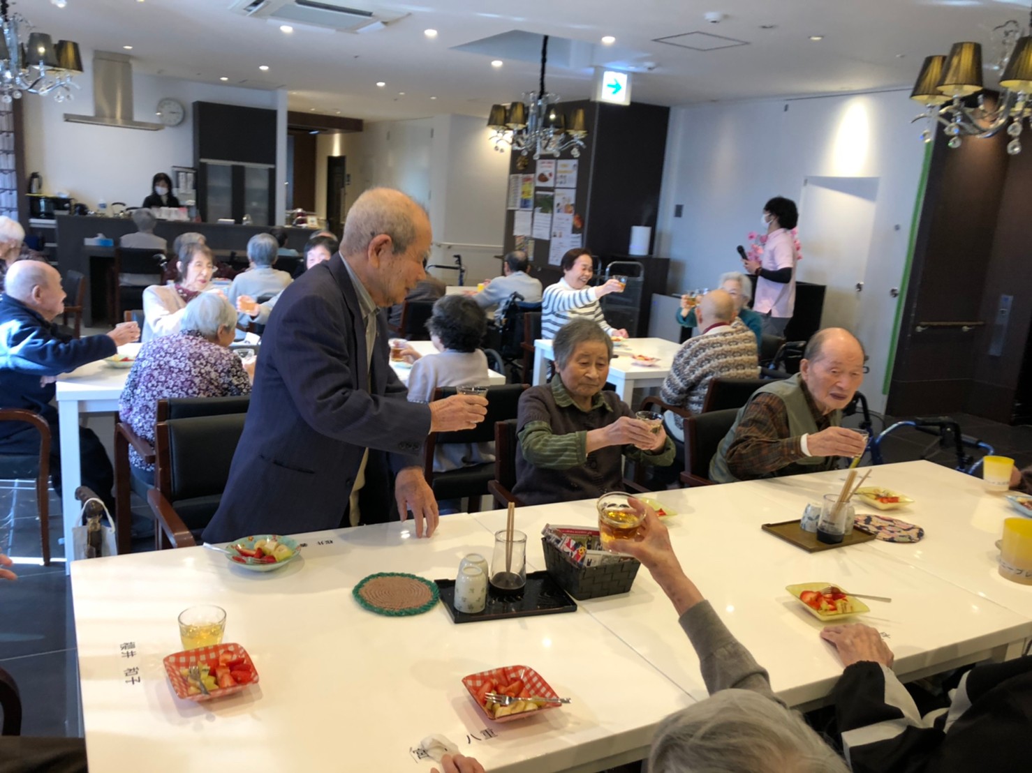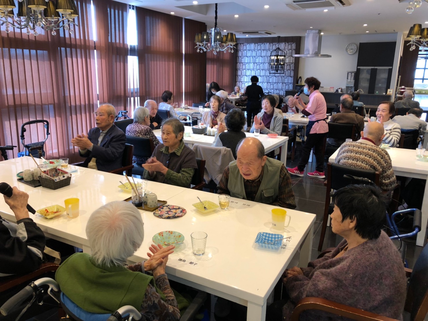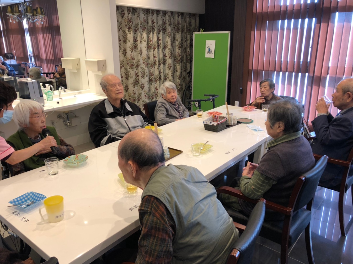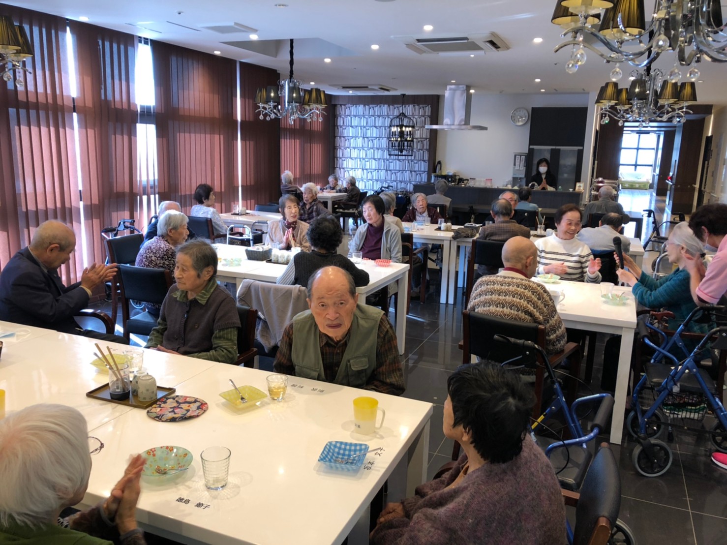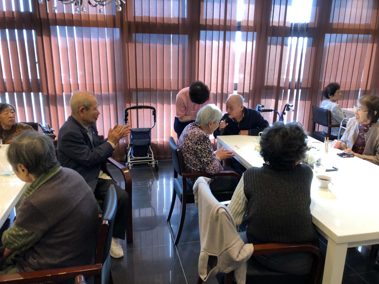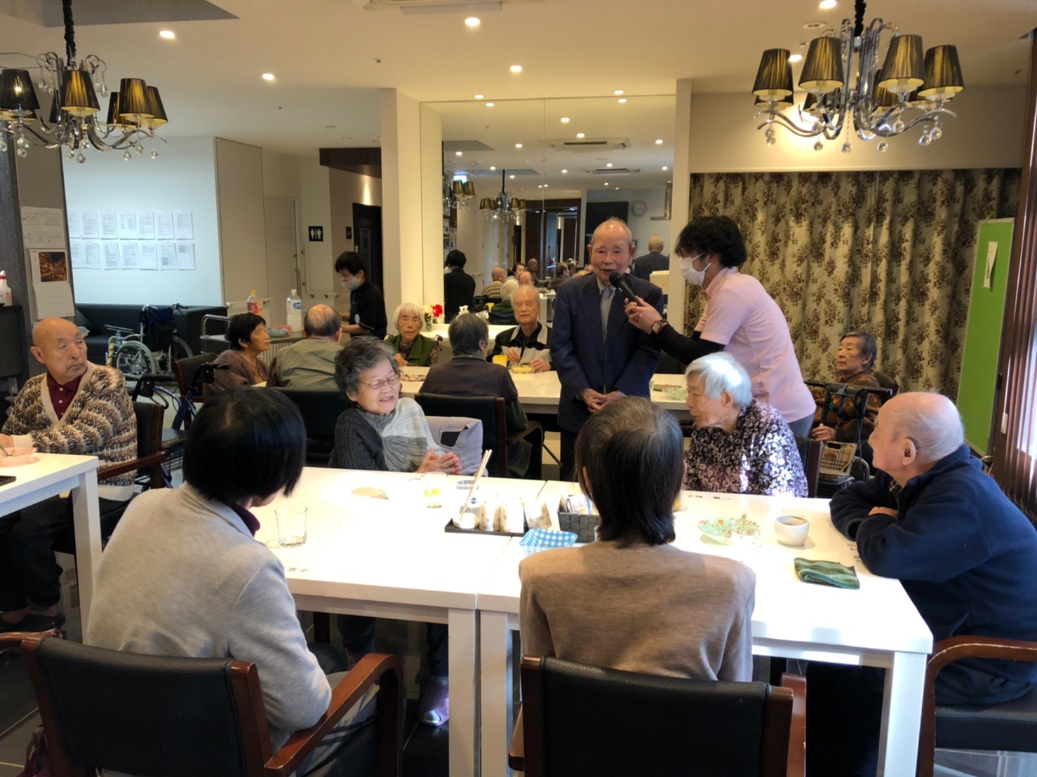 本日よりサニープレイス河瀬に新しいご入居者が増えました。九州のご出身の利用者さまは同県の出身の利用者さまと、スタッフとすぐに打ち解けておられました。最初こそ緊張されていましたが、ウェルカムパーティーが始まりカラオケ大会になるころにはすっかり普段のお姿でお話されておられました。これからも穏やかにお過ごしされるお手伝いを末永くさせていただきます。よろしくお願い致します。