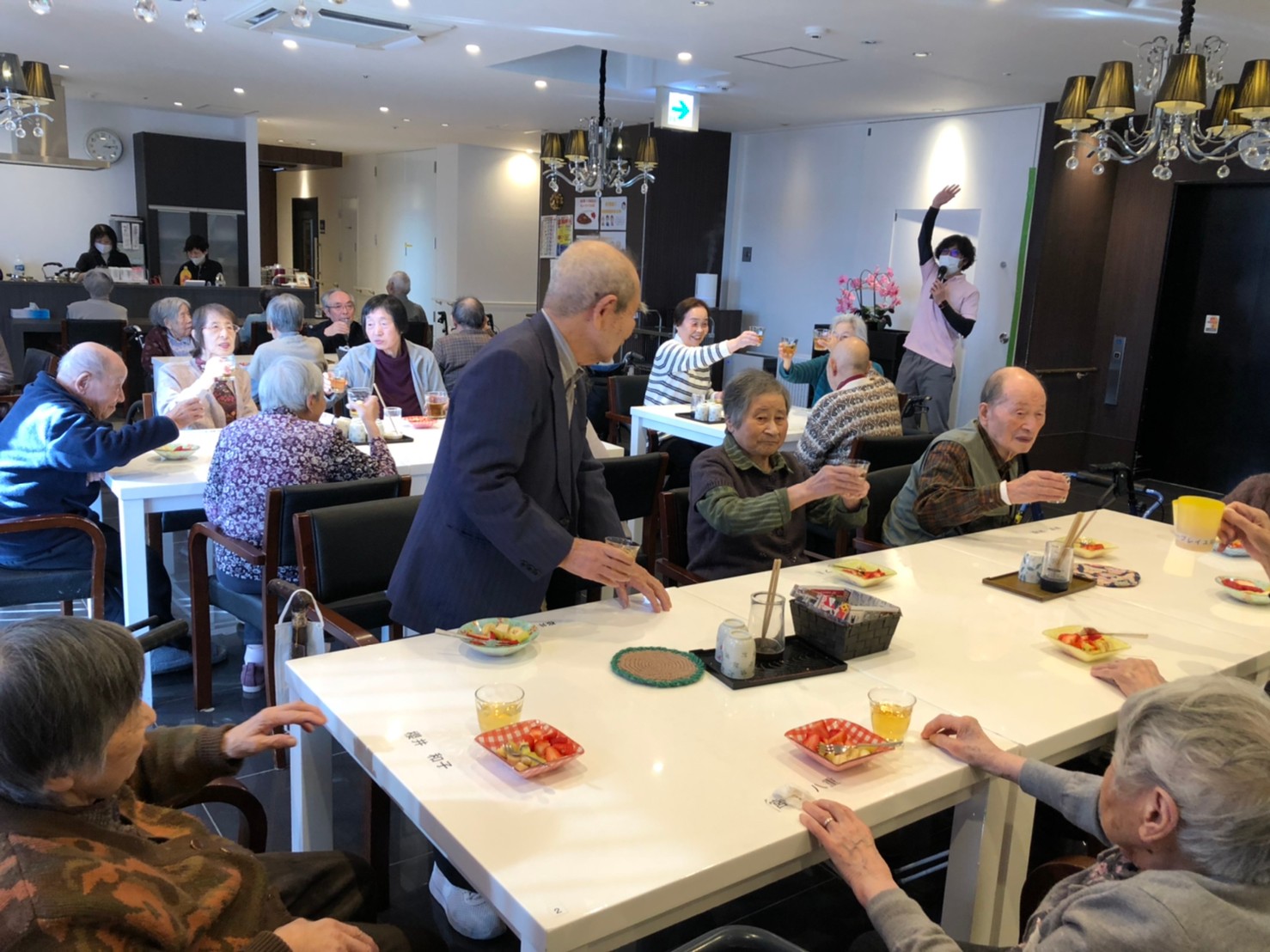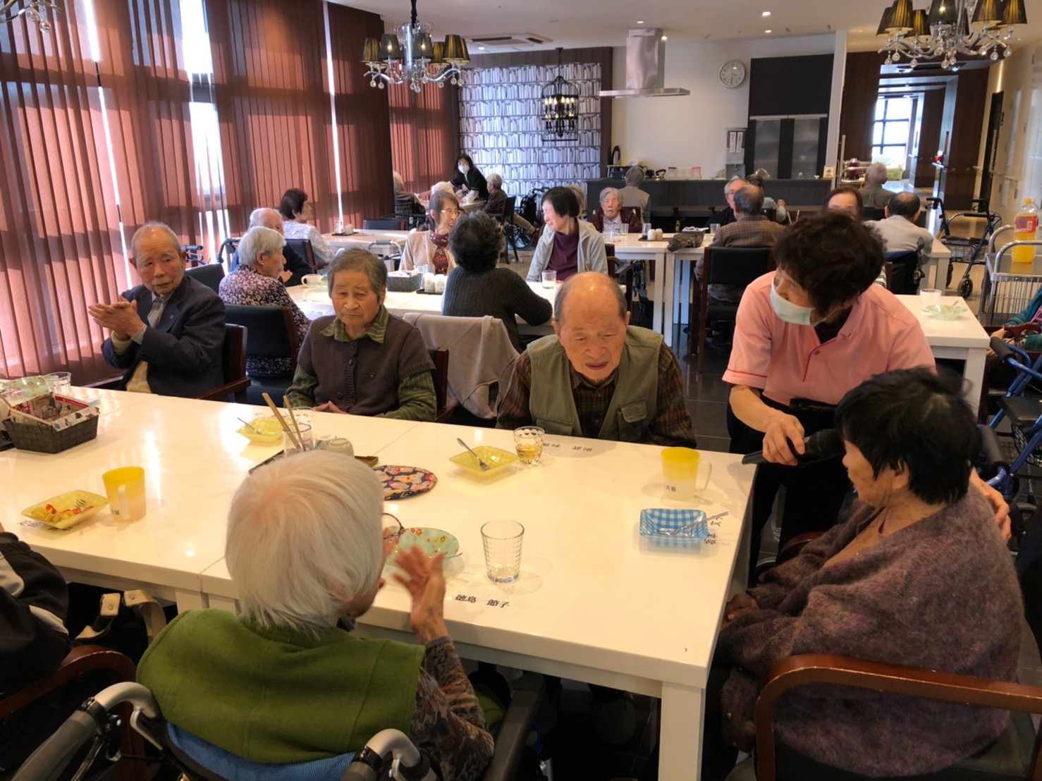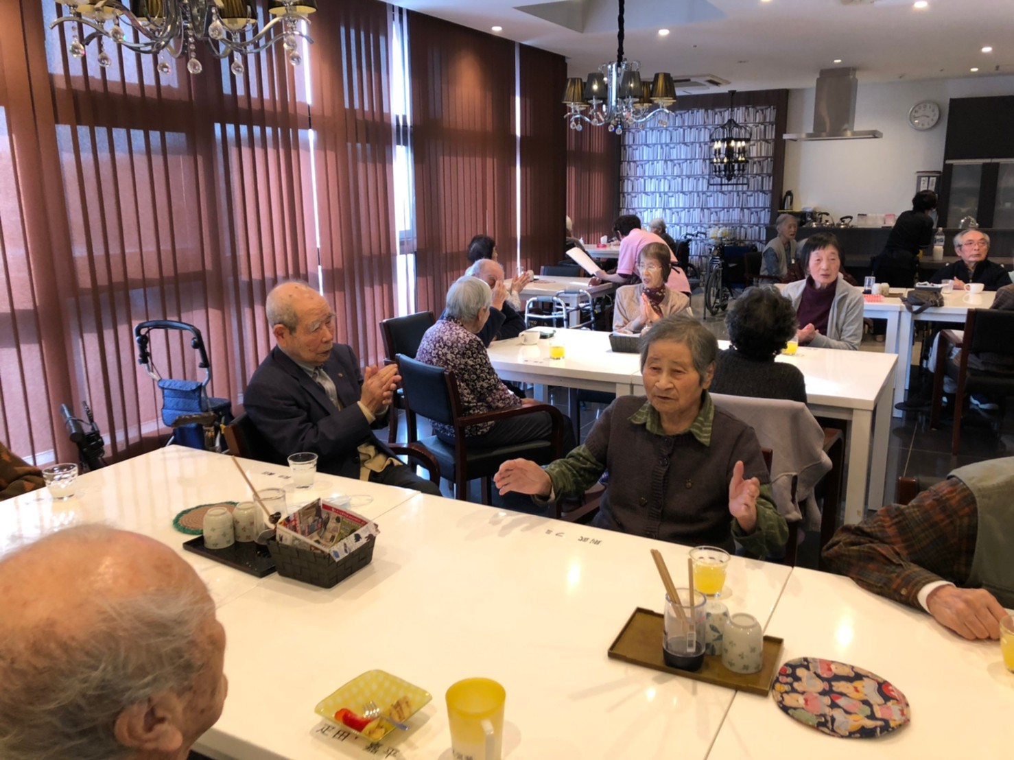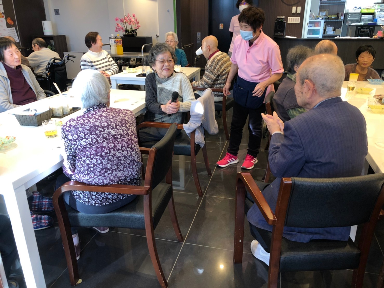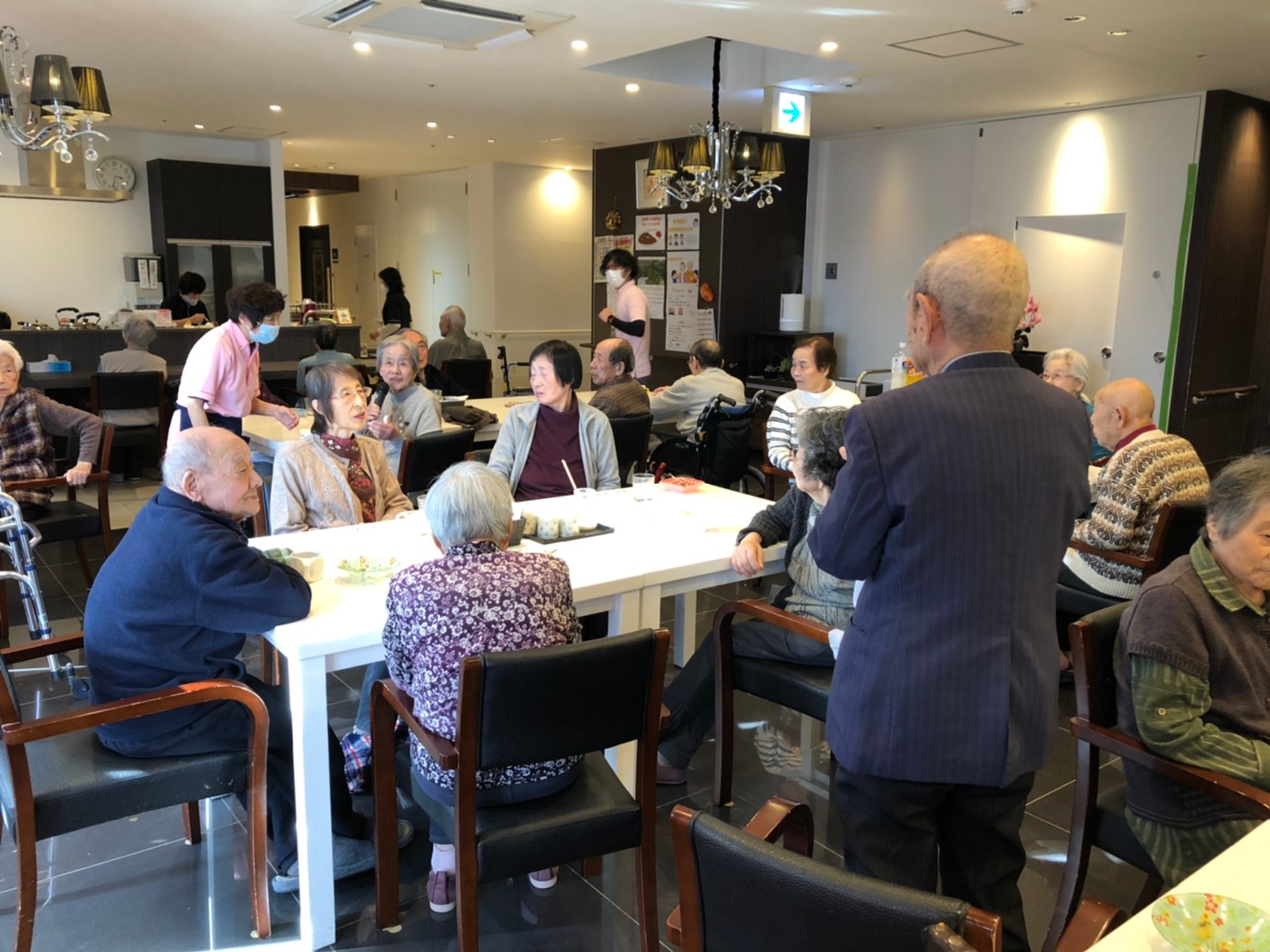 本日よりサニープレイス河瀬に新しいご入居者が増えました。九州のご出身の利用者さまは同県の出身の利用者さまと、スタッフとすぐに打ち解けておられました。最初こそ緊張されていましたが、ウェルカムパーティーが始まりカラオケ大会になるころにはすっかり普段のお姿でお話されておられました。これからも穏やかにお過ごしされるお手伝いを末永くさせていただきます。よろしくお願い致します。