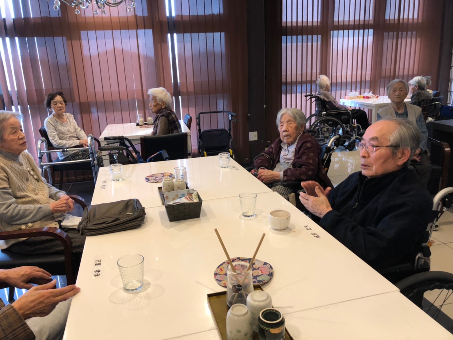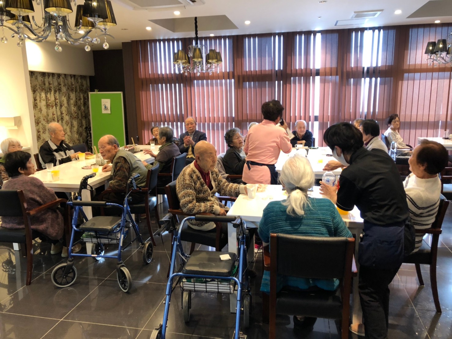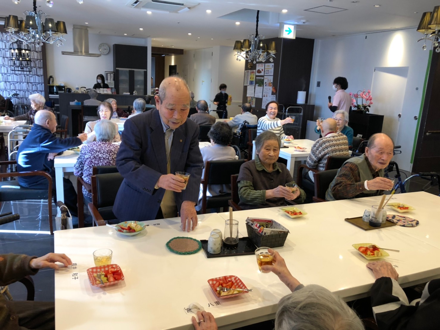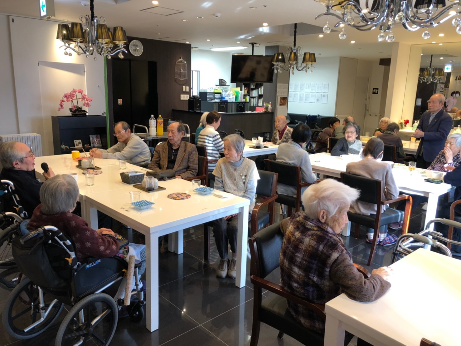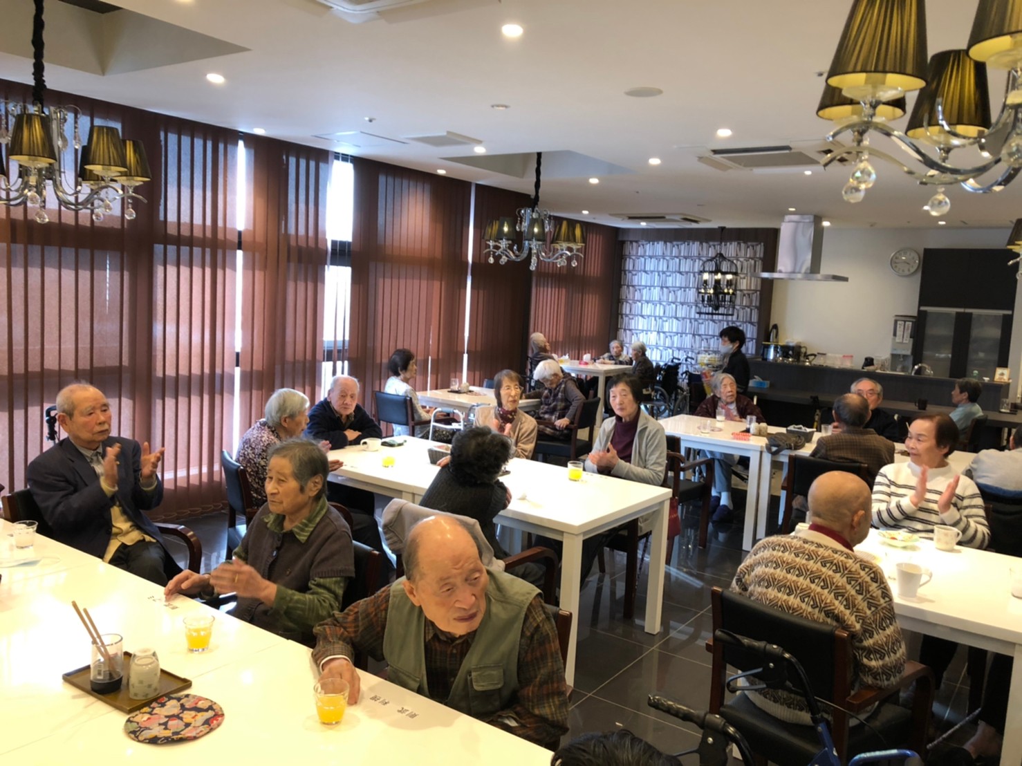 本日よりサニープレイス河瀬に新しいご入居者が増えました。九州のご出身の利用者さまは同県の出身の利用者さまと、スタッフとすぐに打ち解けておられました。最初こそ緊張されていましたが、ウェルカムパーティーが始まりカラオケ大会になるころにはすっかり普段のお姿でお話されておられました。これからも穏やかにお過ごしされるお手伝いを末永くさせていただきます。よろしくお願い致します。