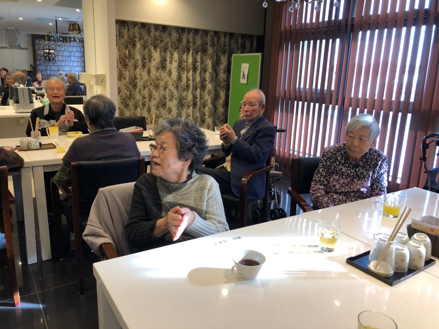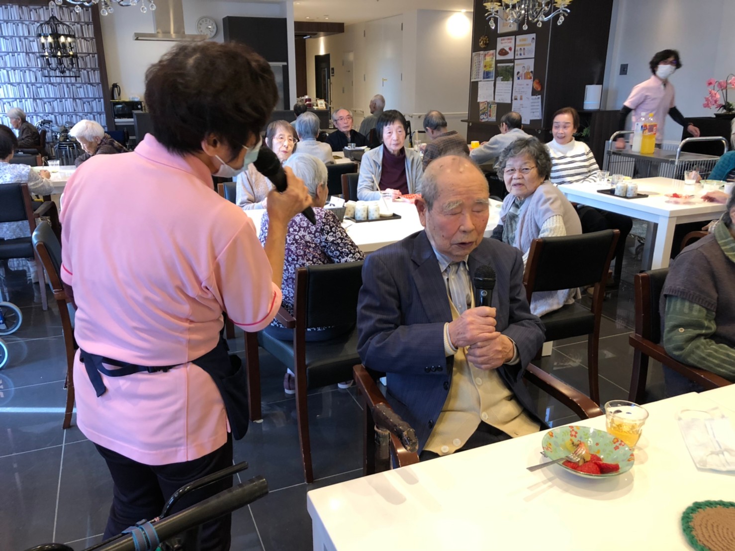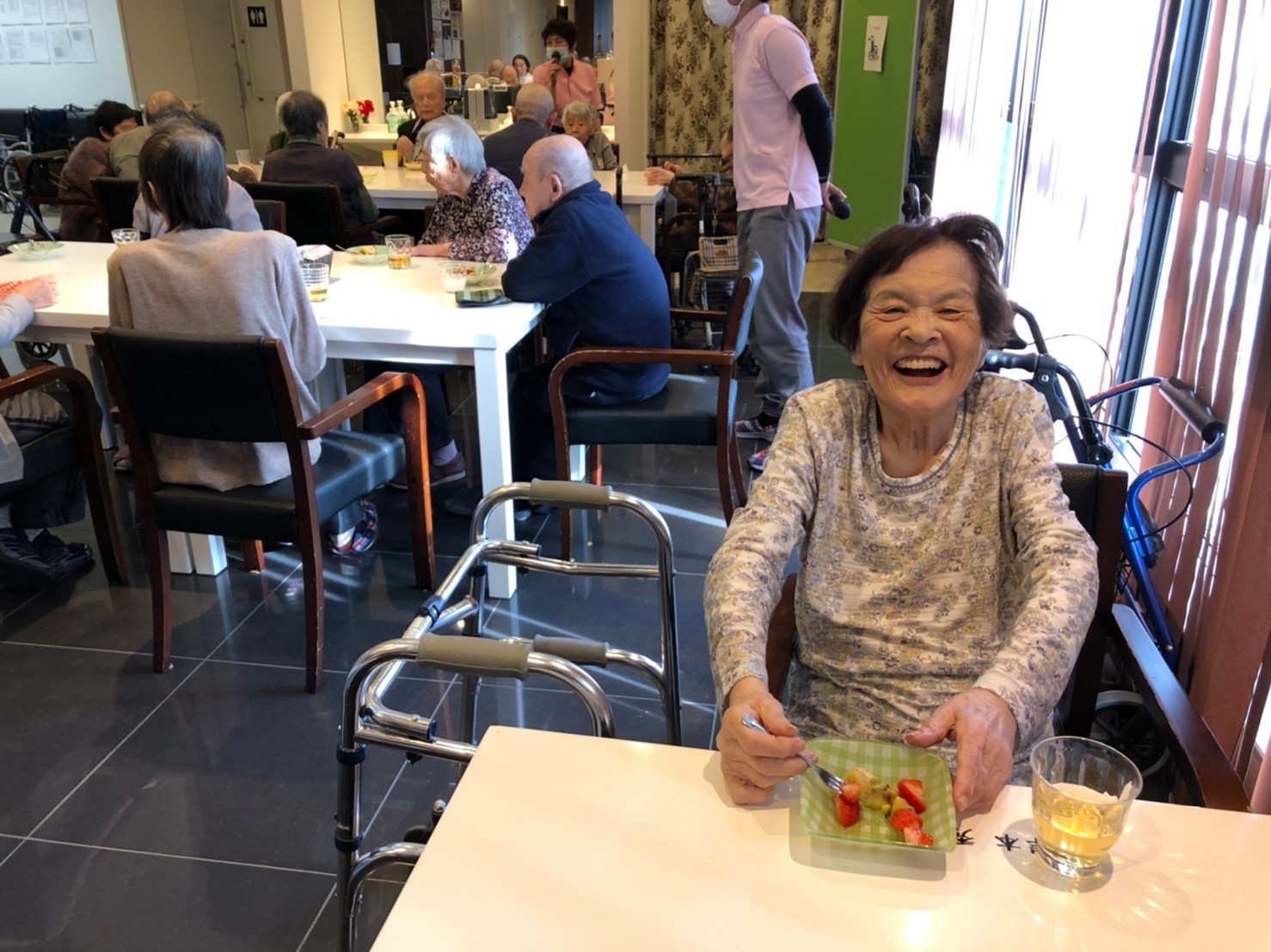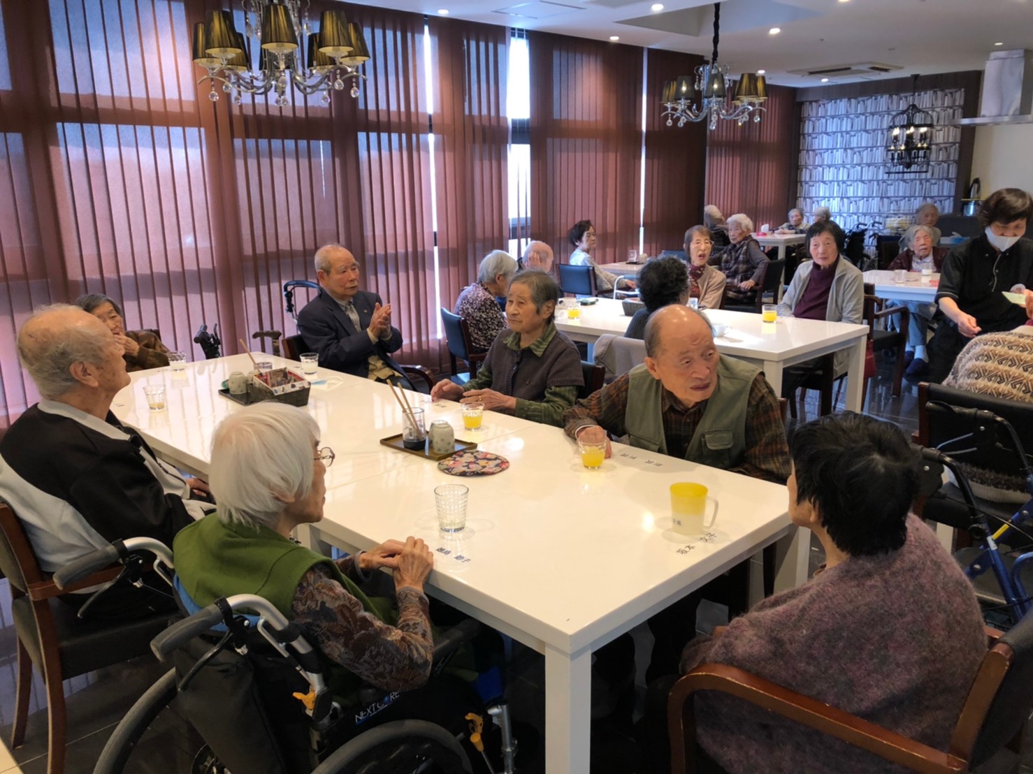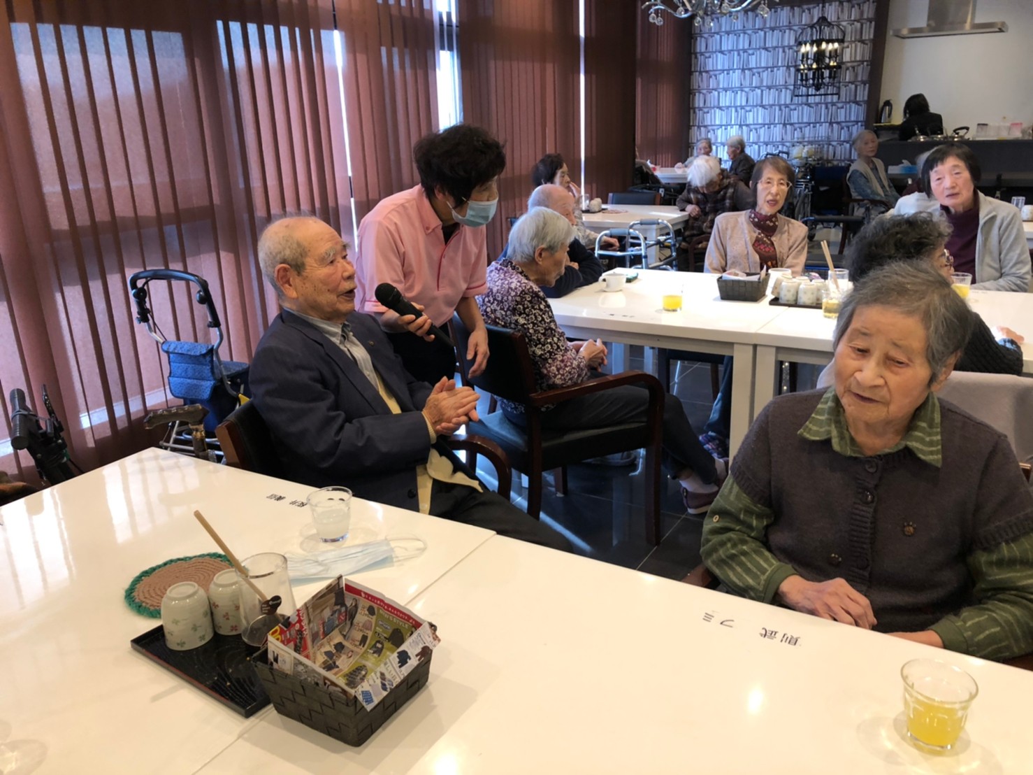 本日よりサニープレイス河瀬に新しいご入居者が増えました。九州のご出身の利用者さまは同県の出身の利用者さまと、スタッフとすぐに打ち解けておられました。最初こそ緊張されていましたが、ウェルカムパーティーが始まりカラオケ大会になるころにはすっかり普段のお姿でお話されておられました。これからも穏やかにお過ごしされるお手伝いを末永くさせていただきます。よろしくお願い致します。