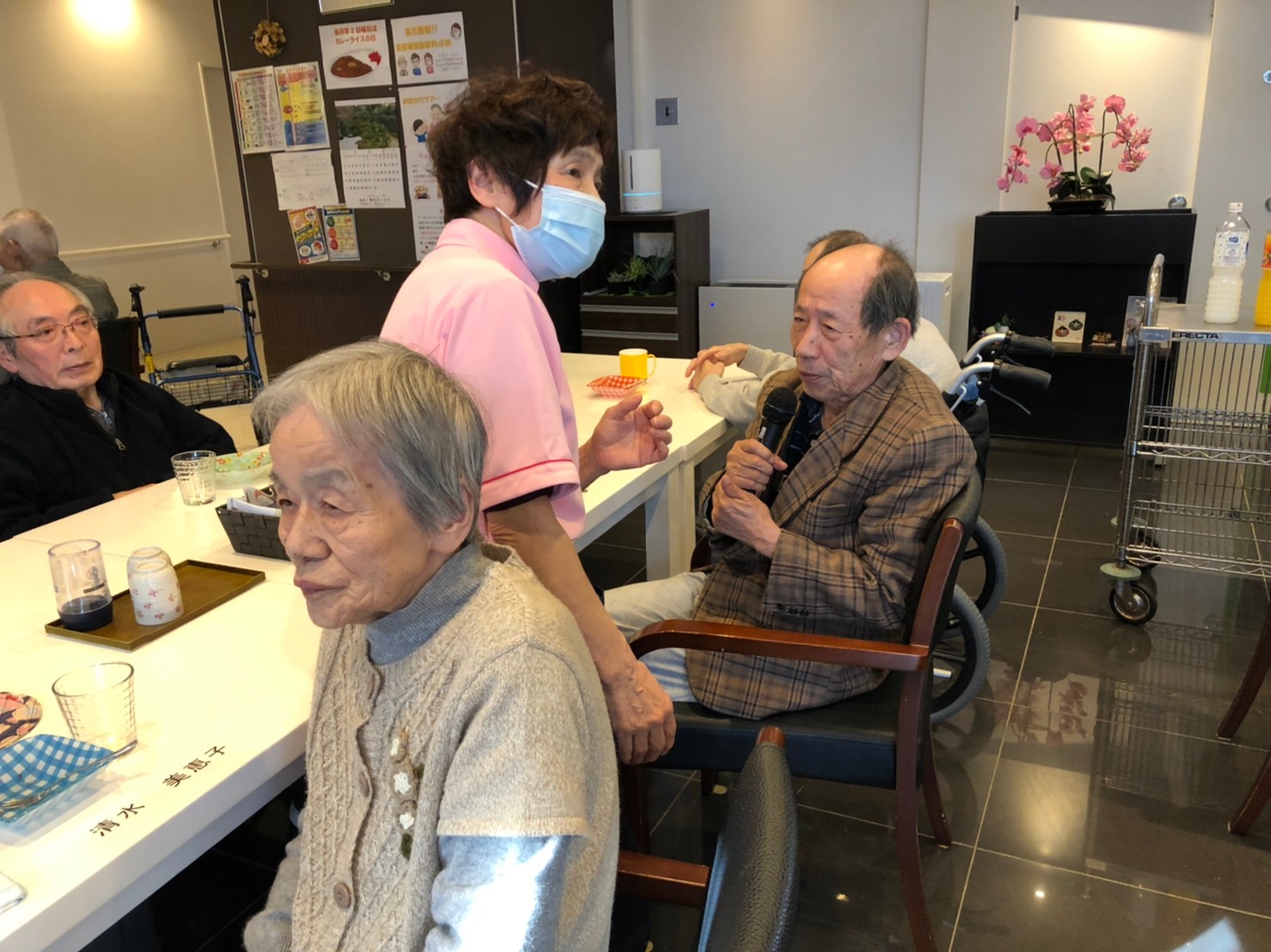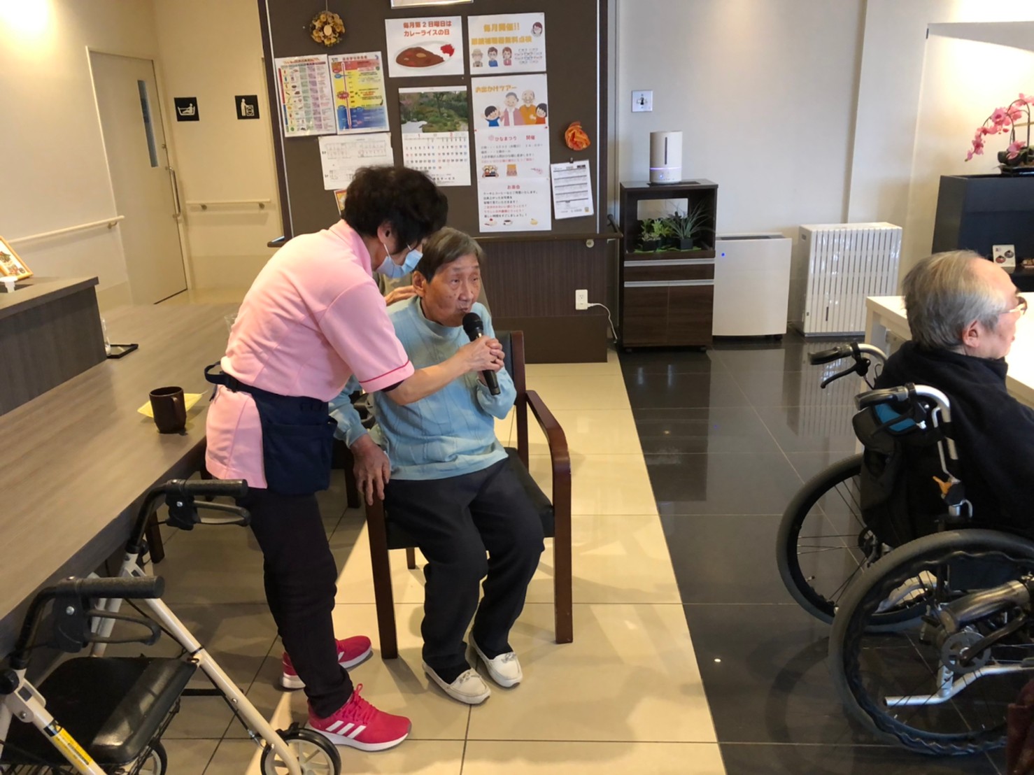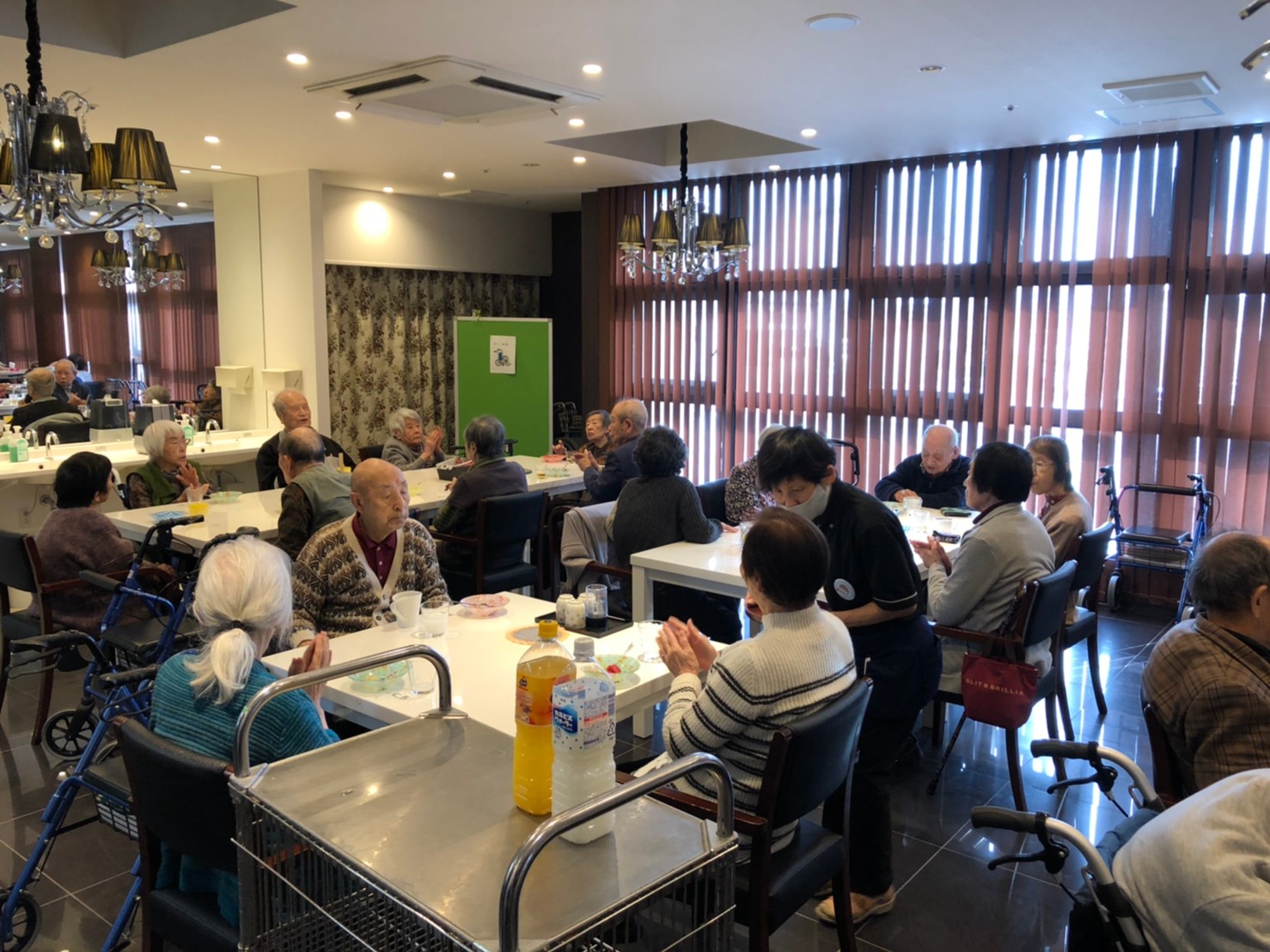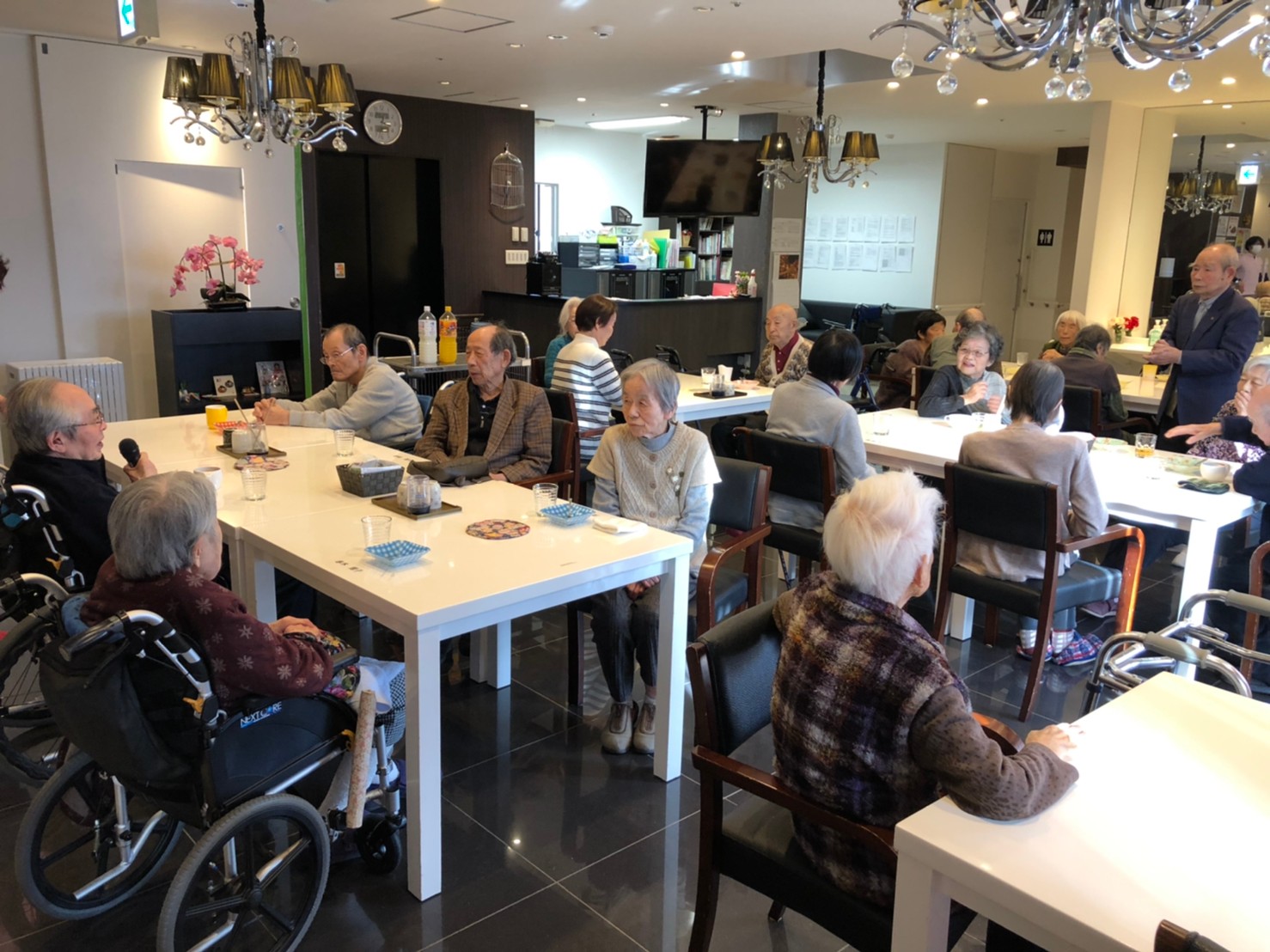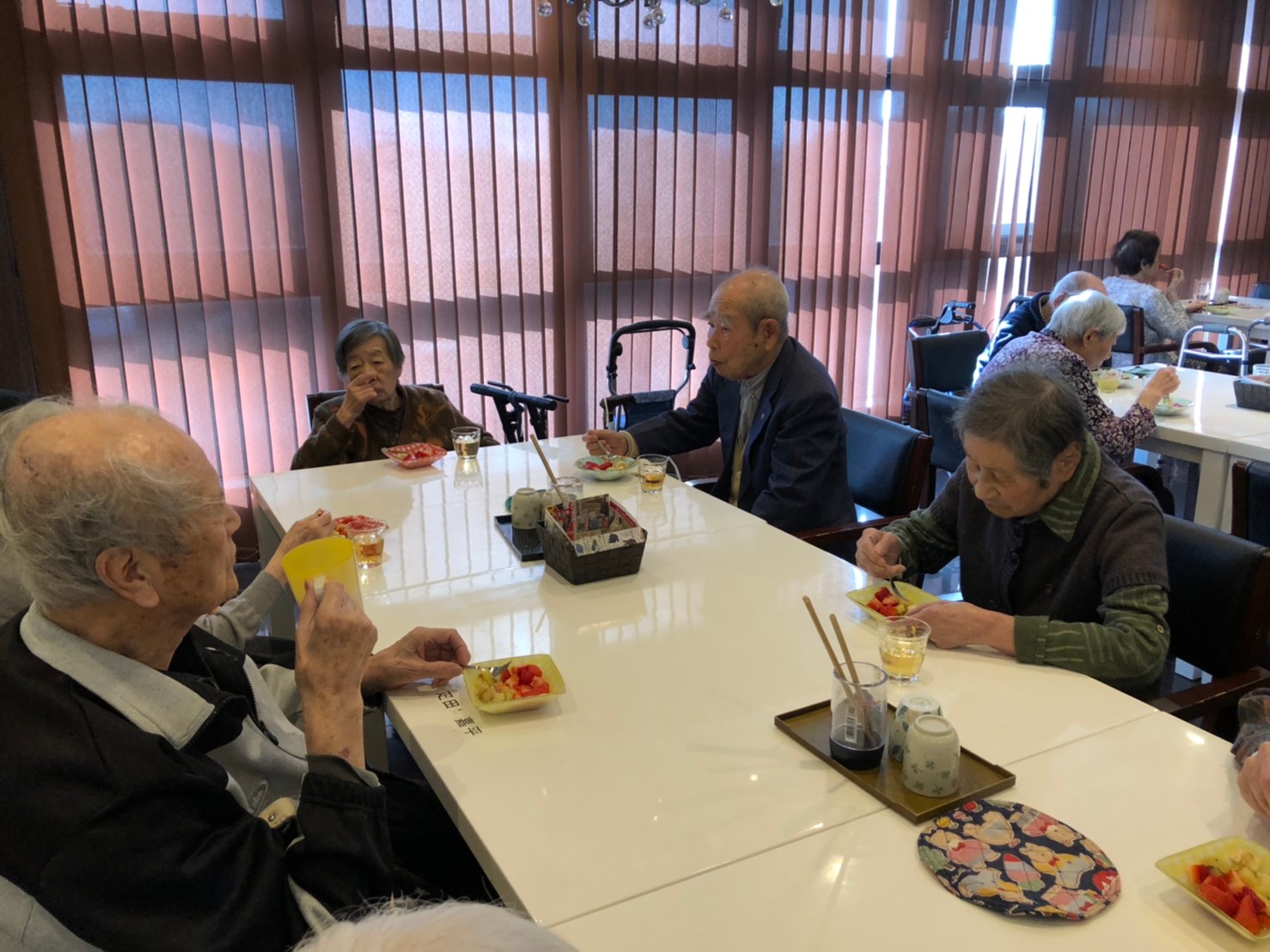 本日よりサニープレイス河瀬に新しいご入居者が増えました。九州のご出身の利用者さまは同県の出身の利用者さまと、スタッフとすぐに打ち解けておられました。最初こそ緊張されていましたが、ウェルカムパーティーが始まりカラオケ大会になるころにはすっかり普段のお姿でお話されておられました。これからも穏やかにお過ごしされるお手伝いを末永くさせていただきます。よろしくお願い致します。