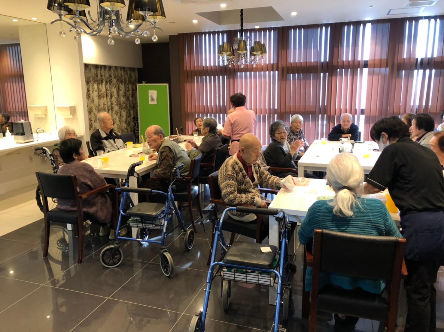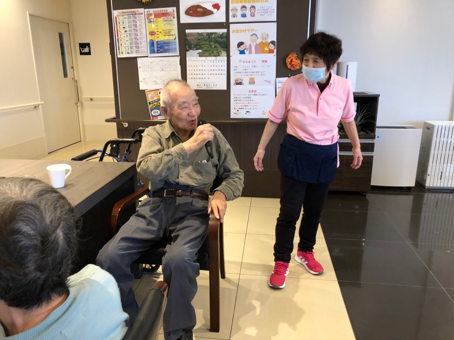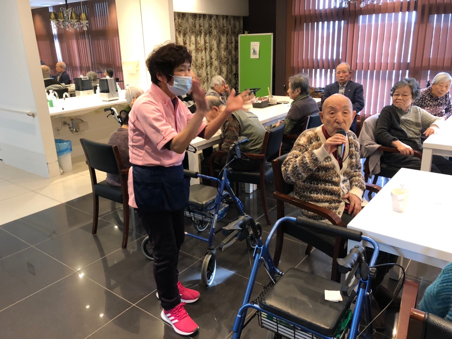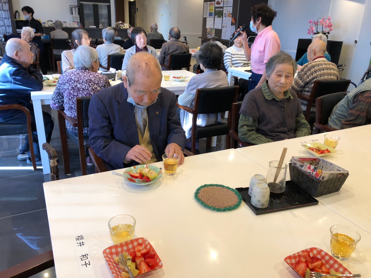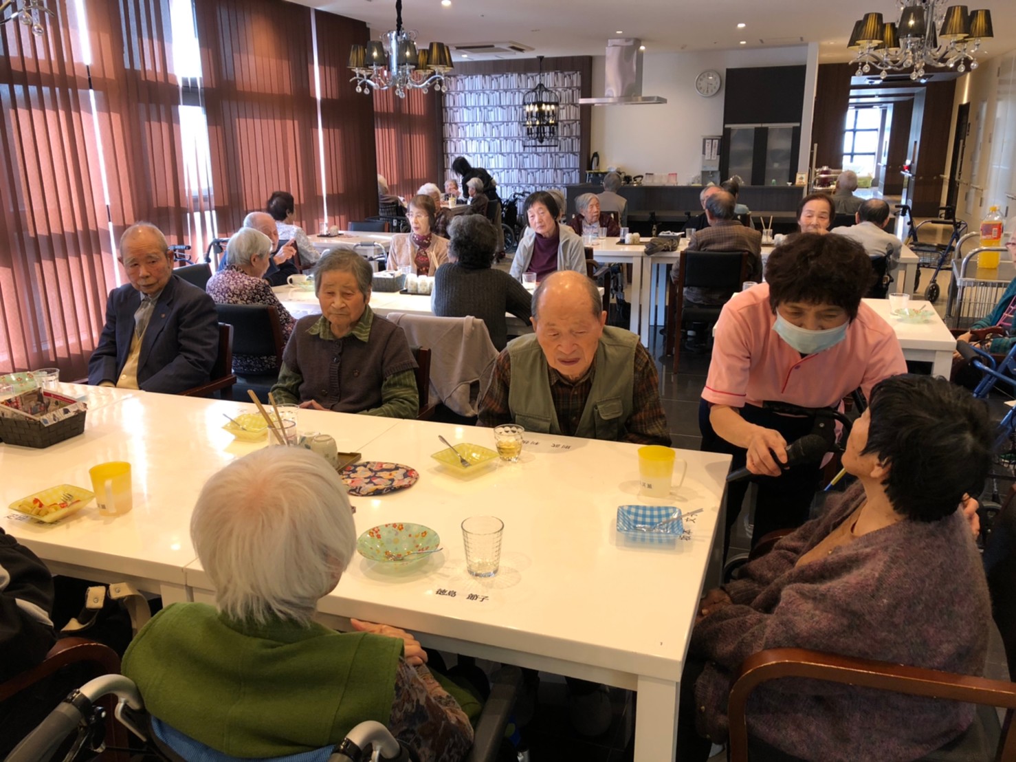 本日よりサニープレイス河瀬に新しいご入居者が増えました。九州のご出身の利用者さまは同県の出身の利用者さまと、スタッフとすぐに打ち解けておられました。最初こそ緊張されていましたが、ウェルカムパーティーが始まりカラオケ大会になるころにはすっかり普段のお姿でお話されておられました。これからも穏やかにお過ごしされるお手伝いを末永くさせていただきます。よろしくお願い致します。