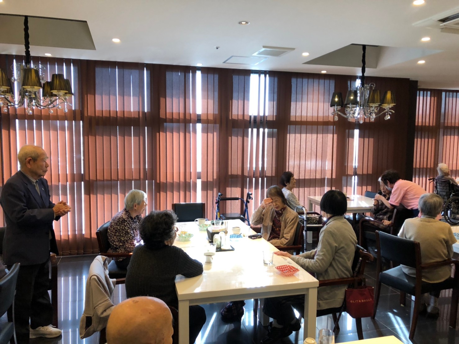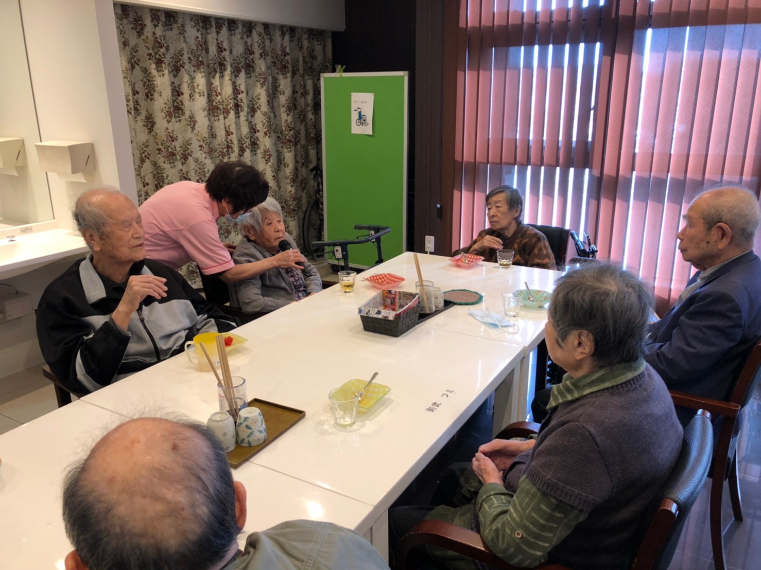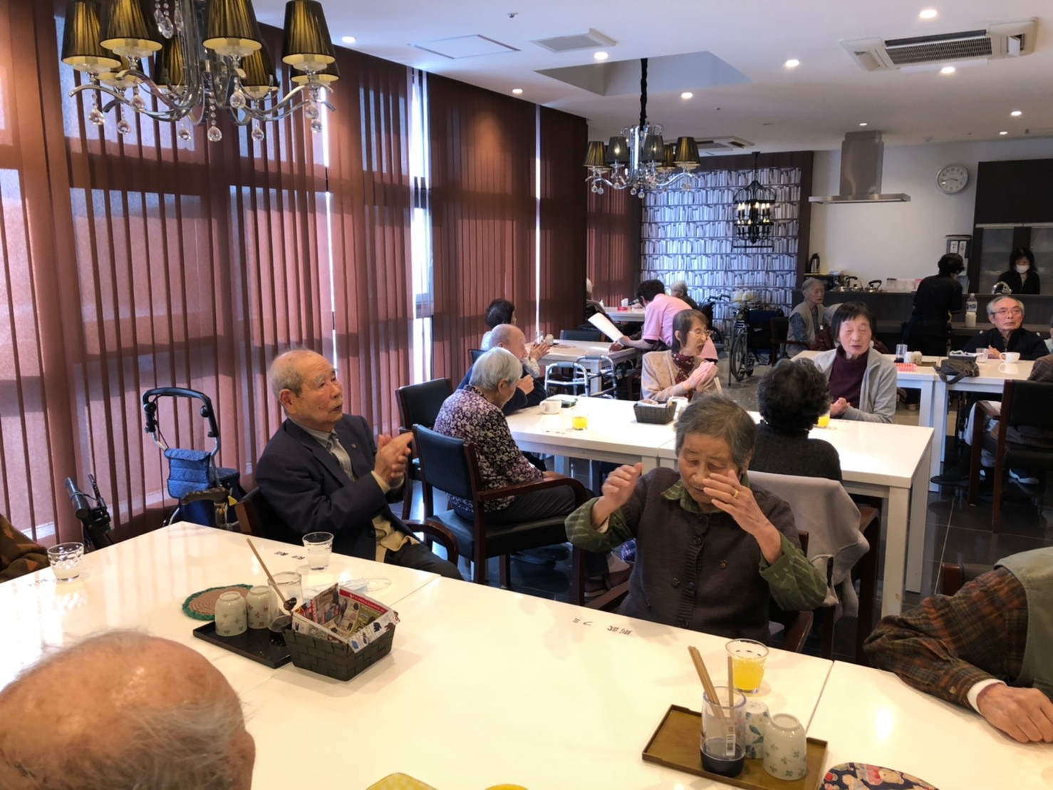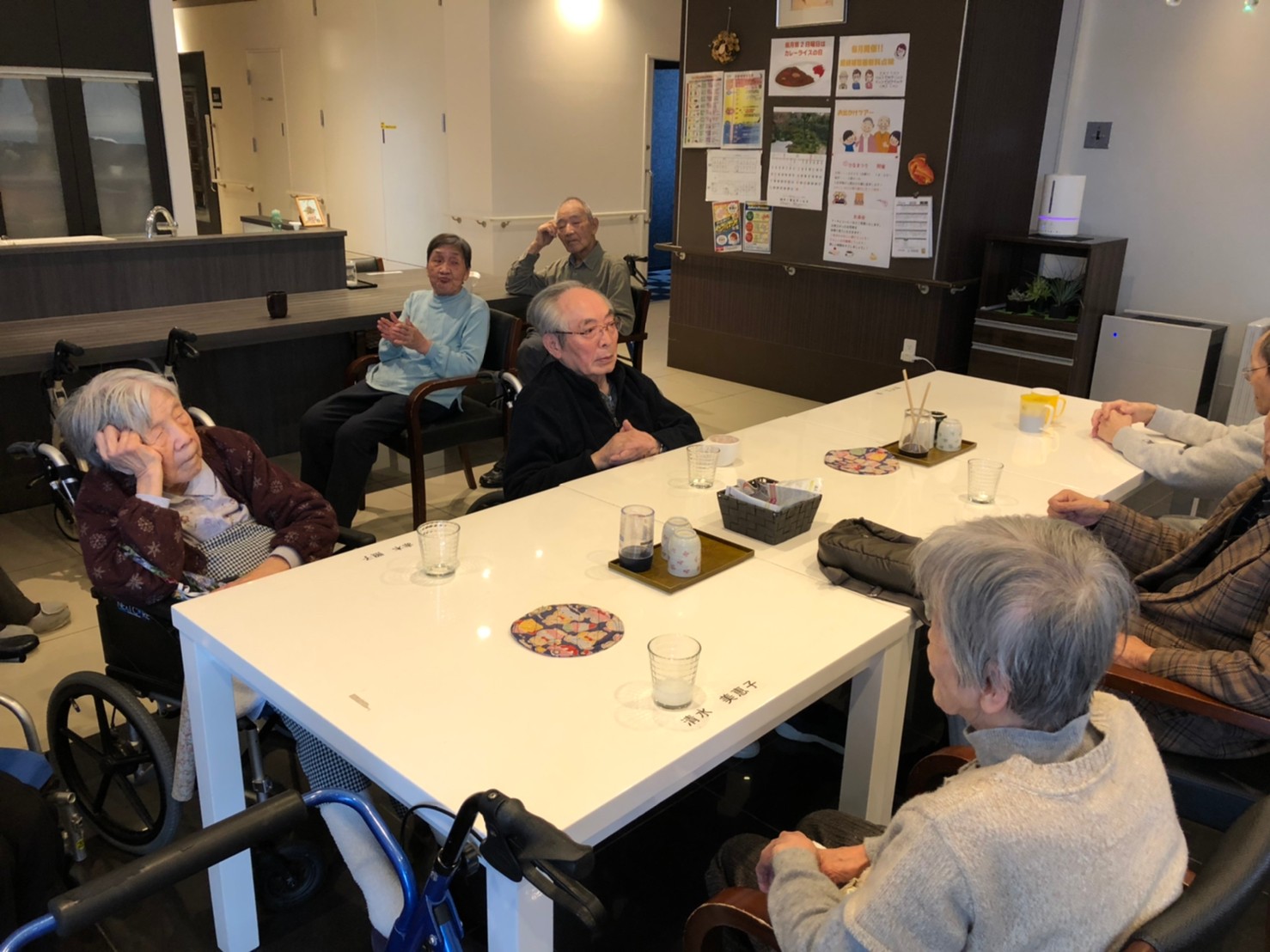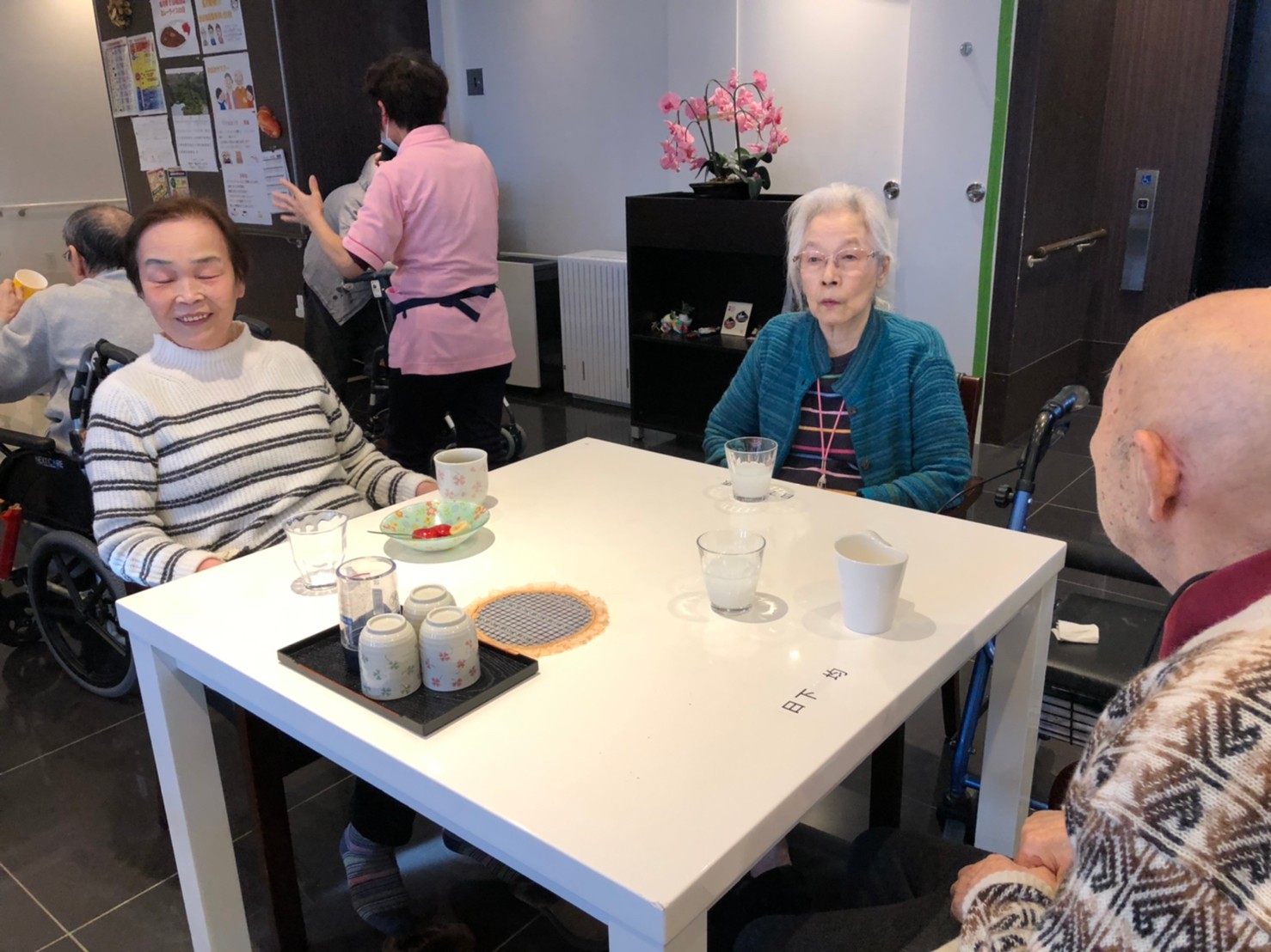 本日よりサニープレイス河瀬に新しいご入居者が増えました。九州のご出身の利用者さまは同県の出身の利用者さまと、スタッフとすぐに打ち解けておられました。最初こそ緊張されていましたが、ウェルカムパーティーが始まりカラオケ大会になるころにはすっかり普段のお姿でお話されておられました。これからも穏やかにお過ごしされるお手伝いを末永くさせていただきます。よろしくお願い致します。