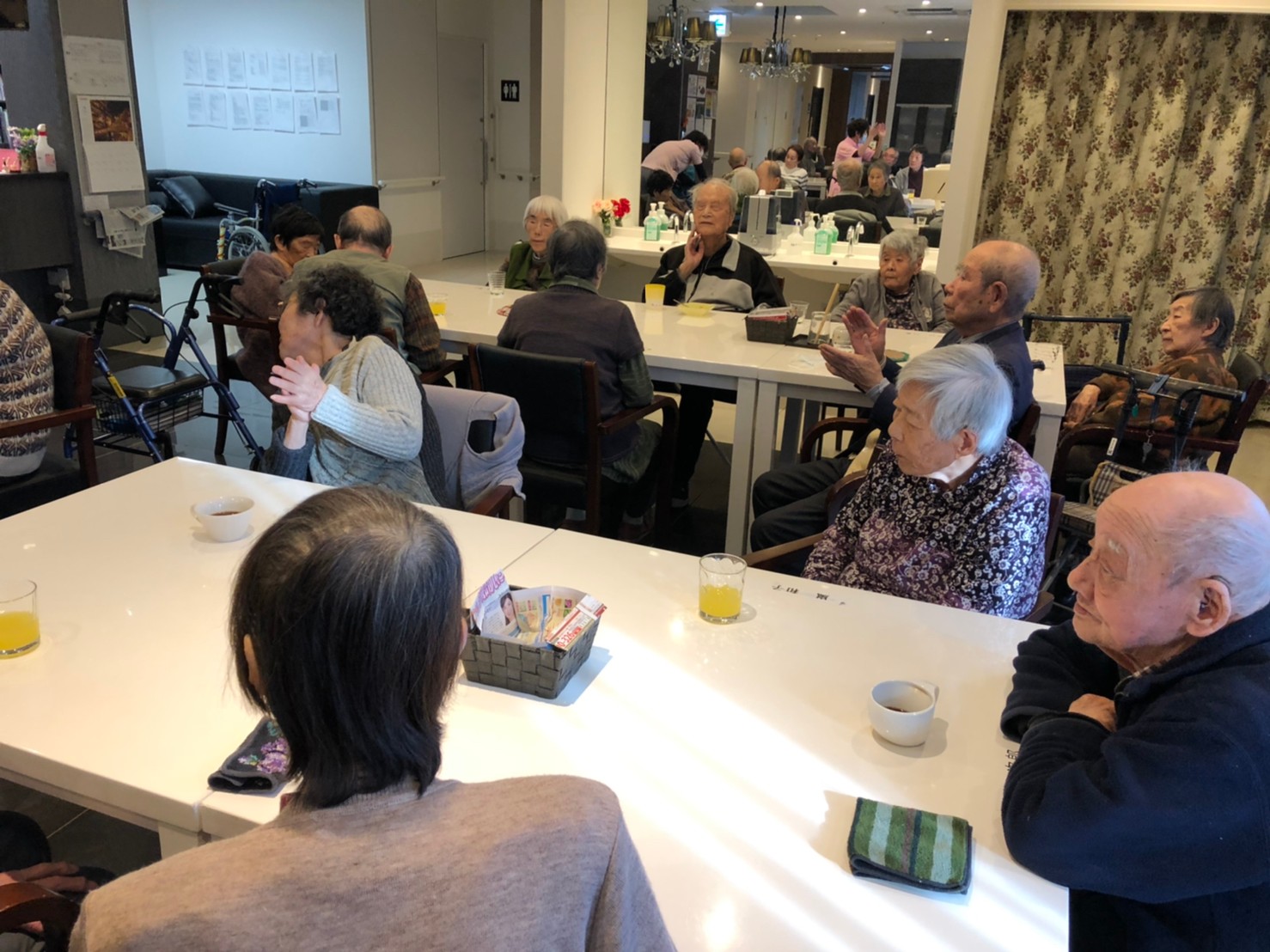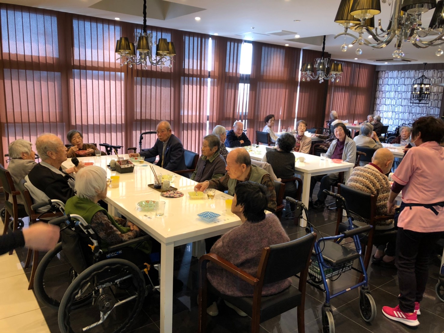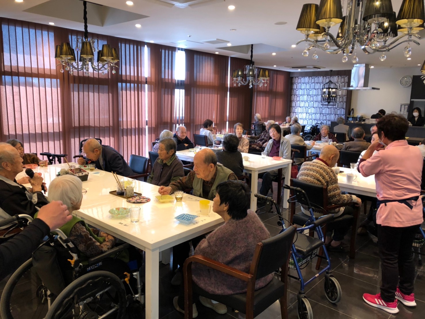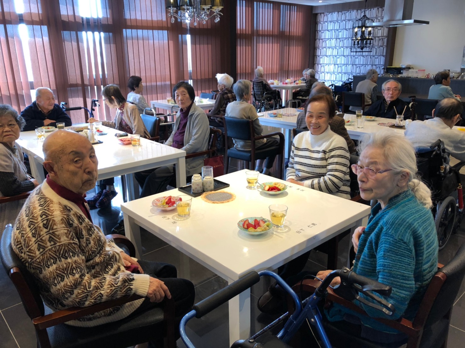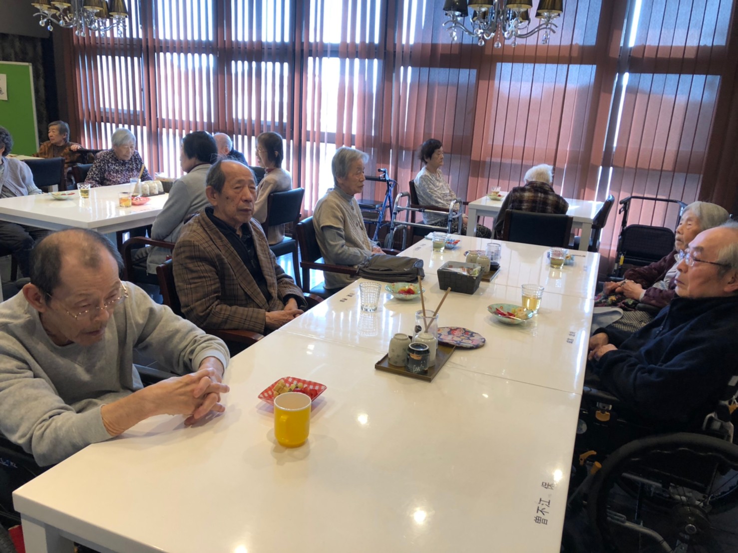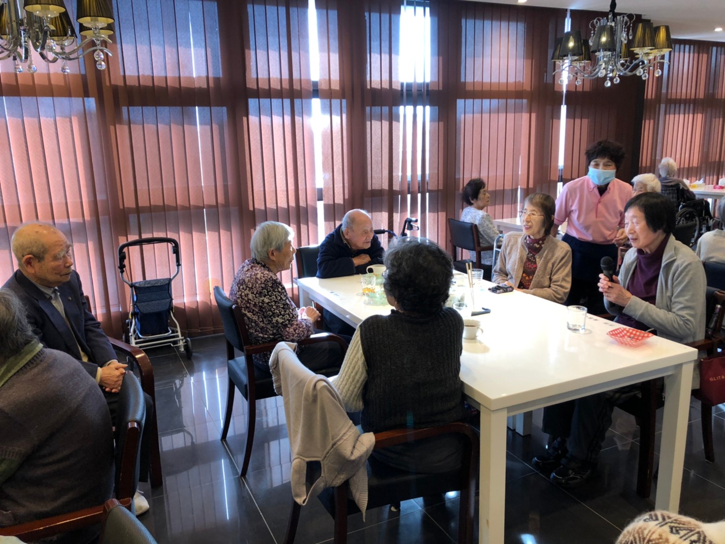 本日よりサニープレイス河瀬に新しいご入居者が増えました。九州のご出身の利用者さまは同県の出身の利用者さまと、スタッフとすぐに打ち解けておられました。最初こそ緊張されていましたが、ウェルカムパーティーが始まりカラオケ大会になるころにはすっかり普段のお姿でお話されておられました。これからも穏やかにお過ごしされるお手伝いを末永くさせていただきます。よろしくお願い致します。