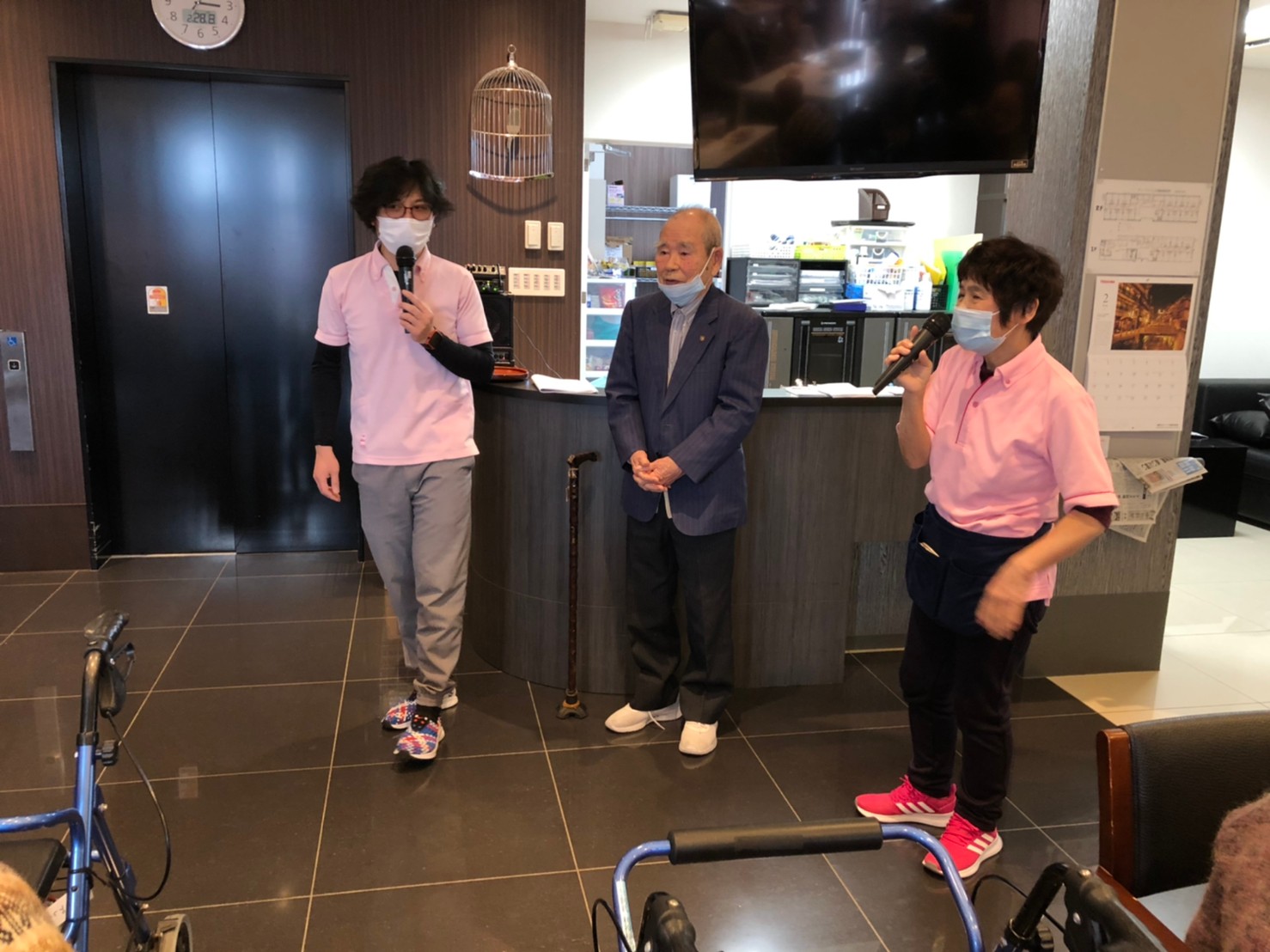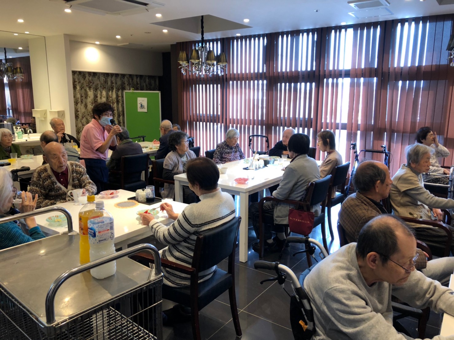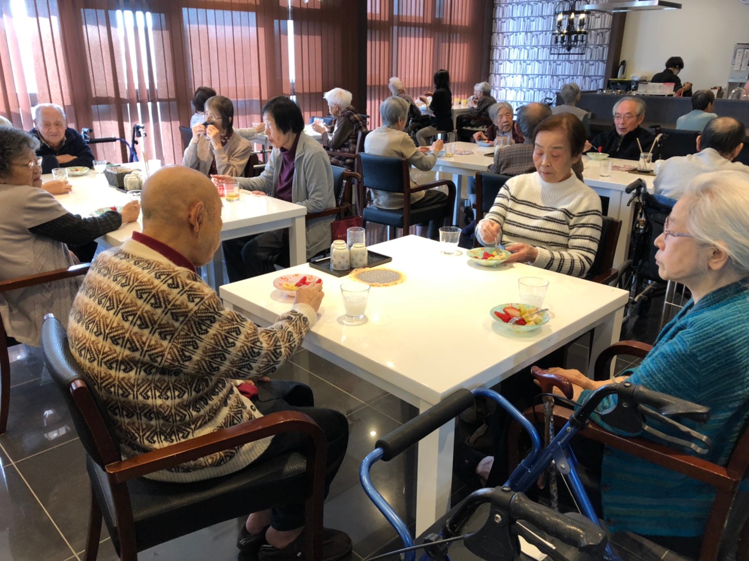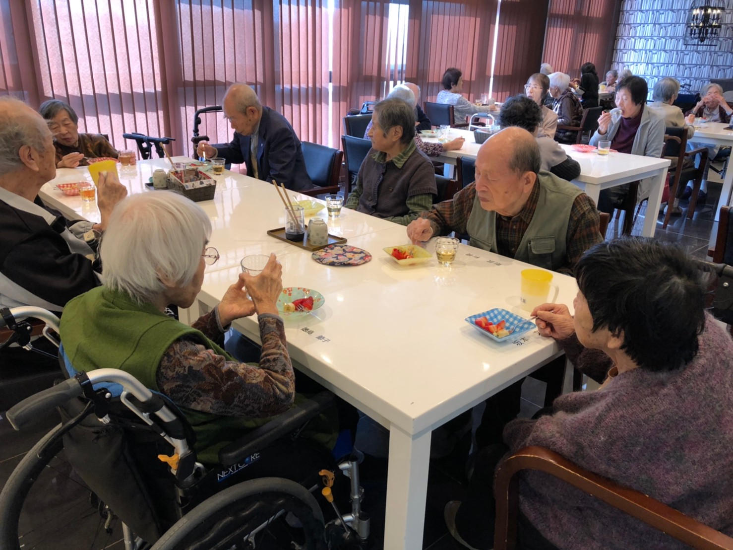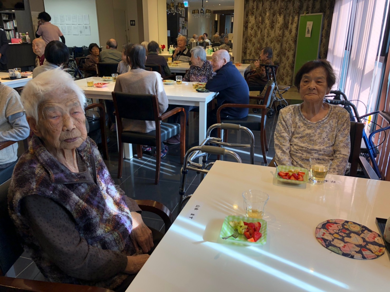本日よりサニープレイス河瀬に新しいご入居者が増えました。九州のご出身の利用者さまは同県の出身の利用者さまと、スタッフとすぐに打ち解けておられました。最初こそ緊張されていましたが、ウェルカムパーティーが始まりカラオケ大会になるころにはすっかり普段のお姿でお話されておられました。これからも穏やかにお過ごしされるお手伝いを末永くさせていただきます。よろしくお願い致します。