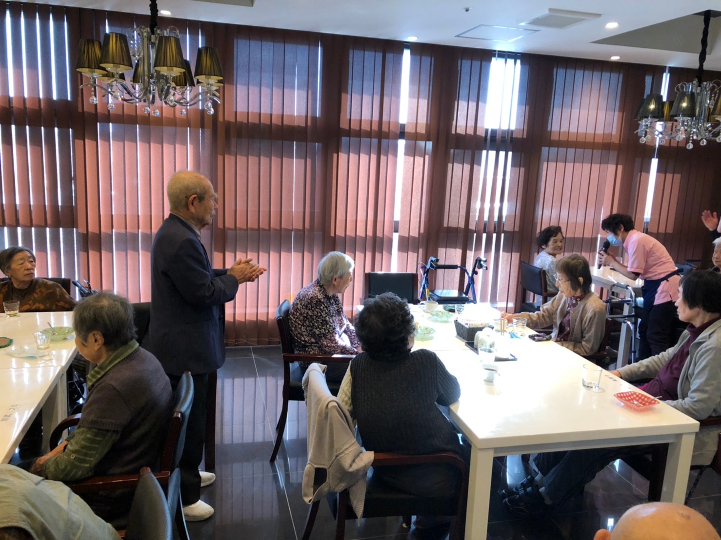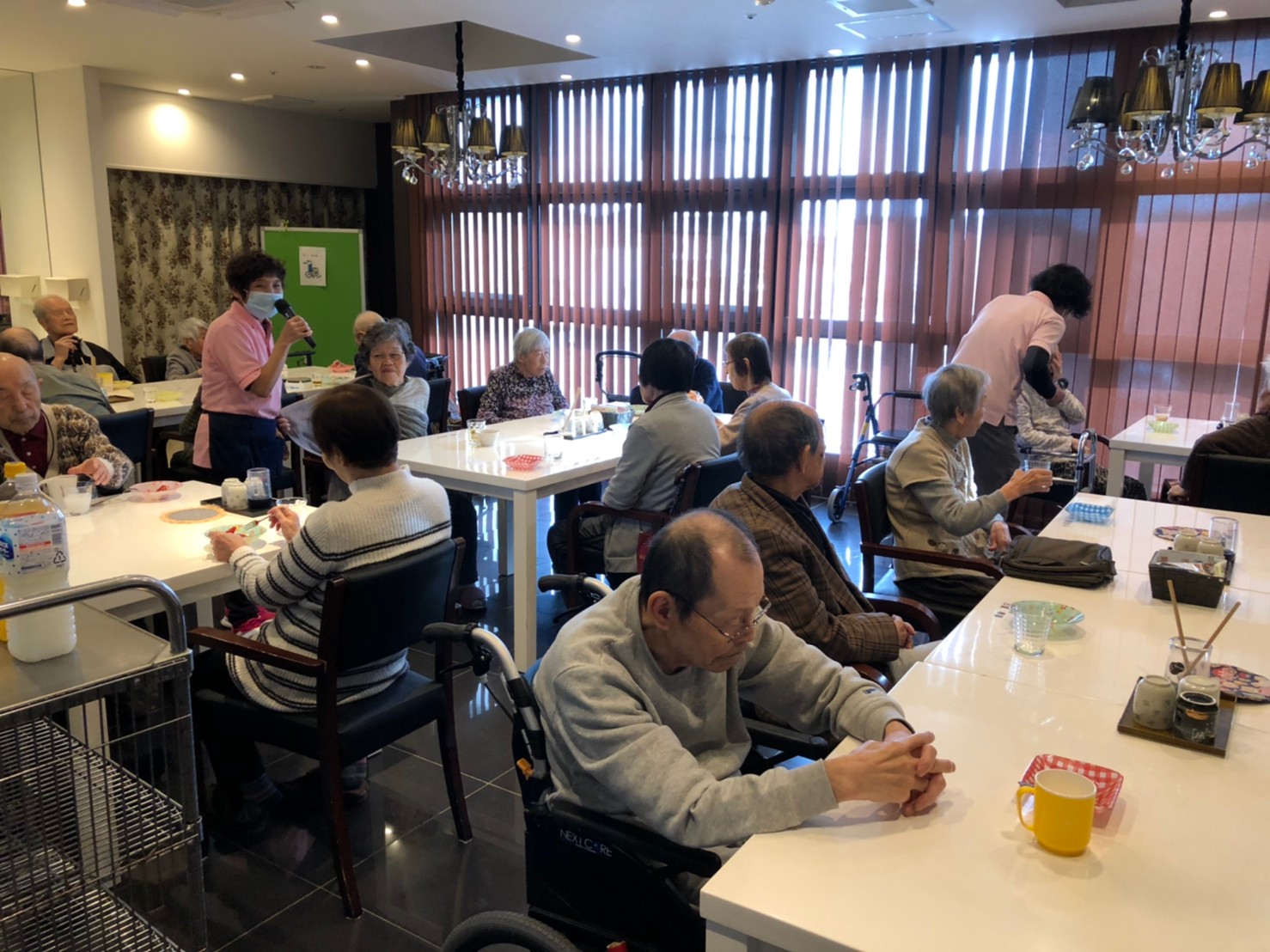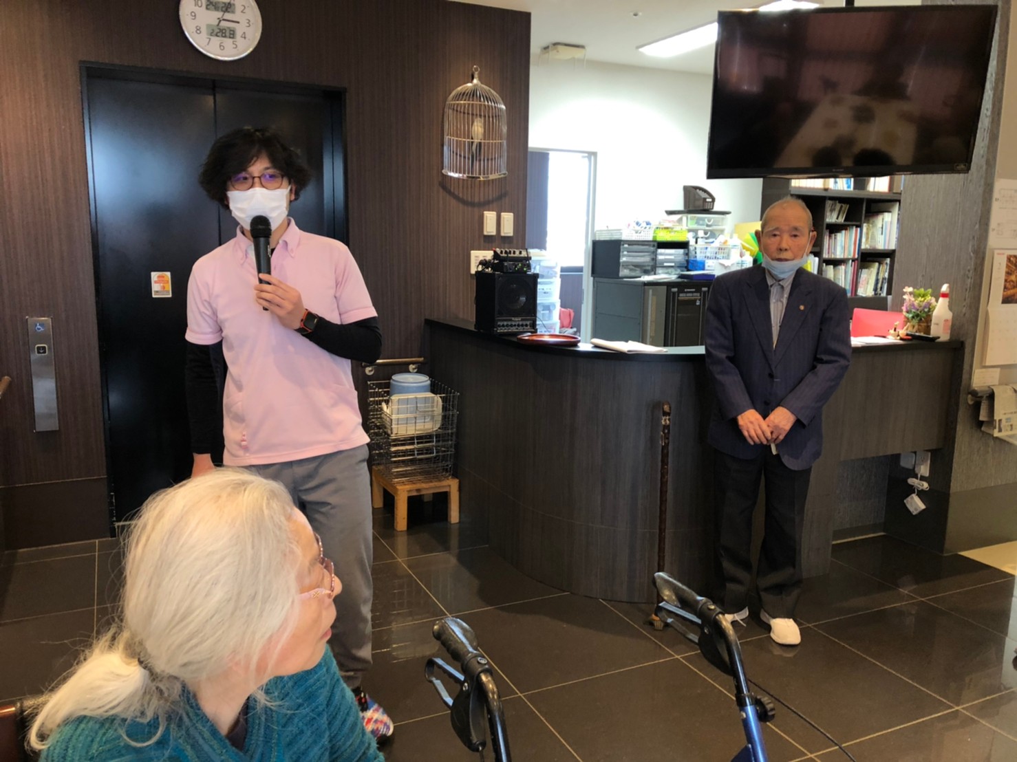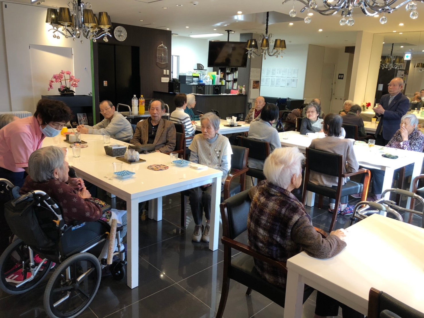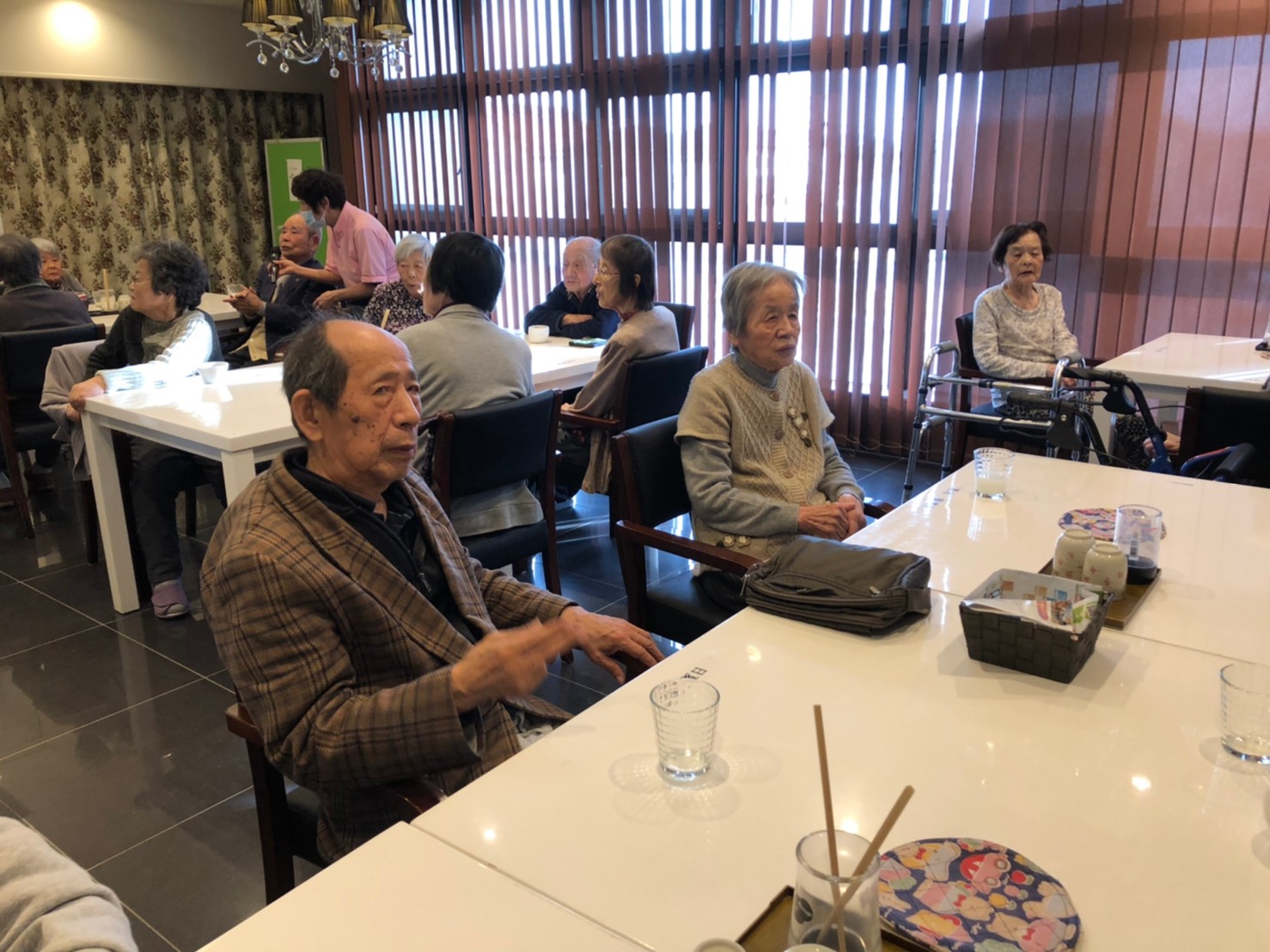 本日よりサニープレイス河瀬に新しいご入居者が増えました。九州のご出身の利用者さまは同県の出身の利用者さまと、スタッフとすぐに打ち解けておられました。最初こそ緊張されていましたが、ウェルカムパーティーが始まりカラオケ大会になるころにはすっかり普段のお姿でお話されておられました。これからも穏やかにお過ごしされるお手伝いを末永くさせていただきます。よろしくお願い致します。