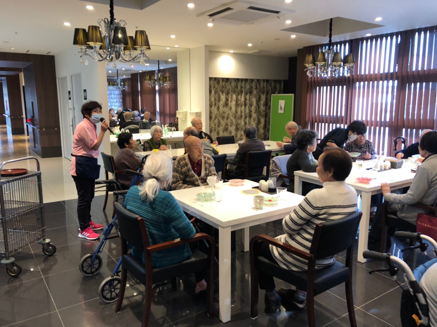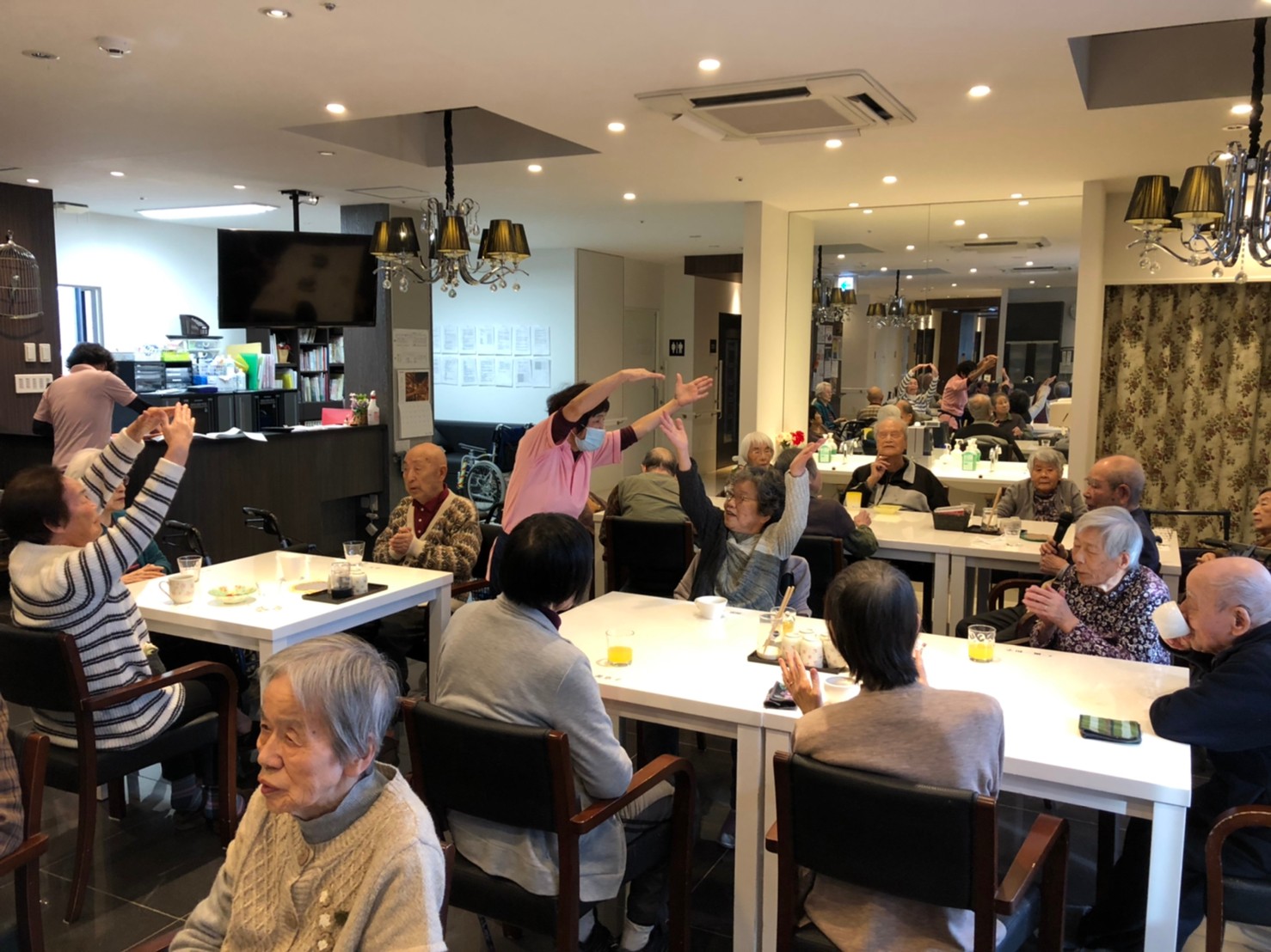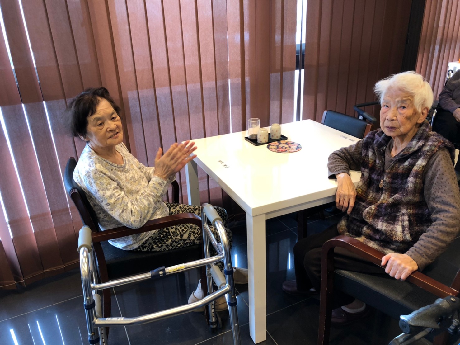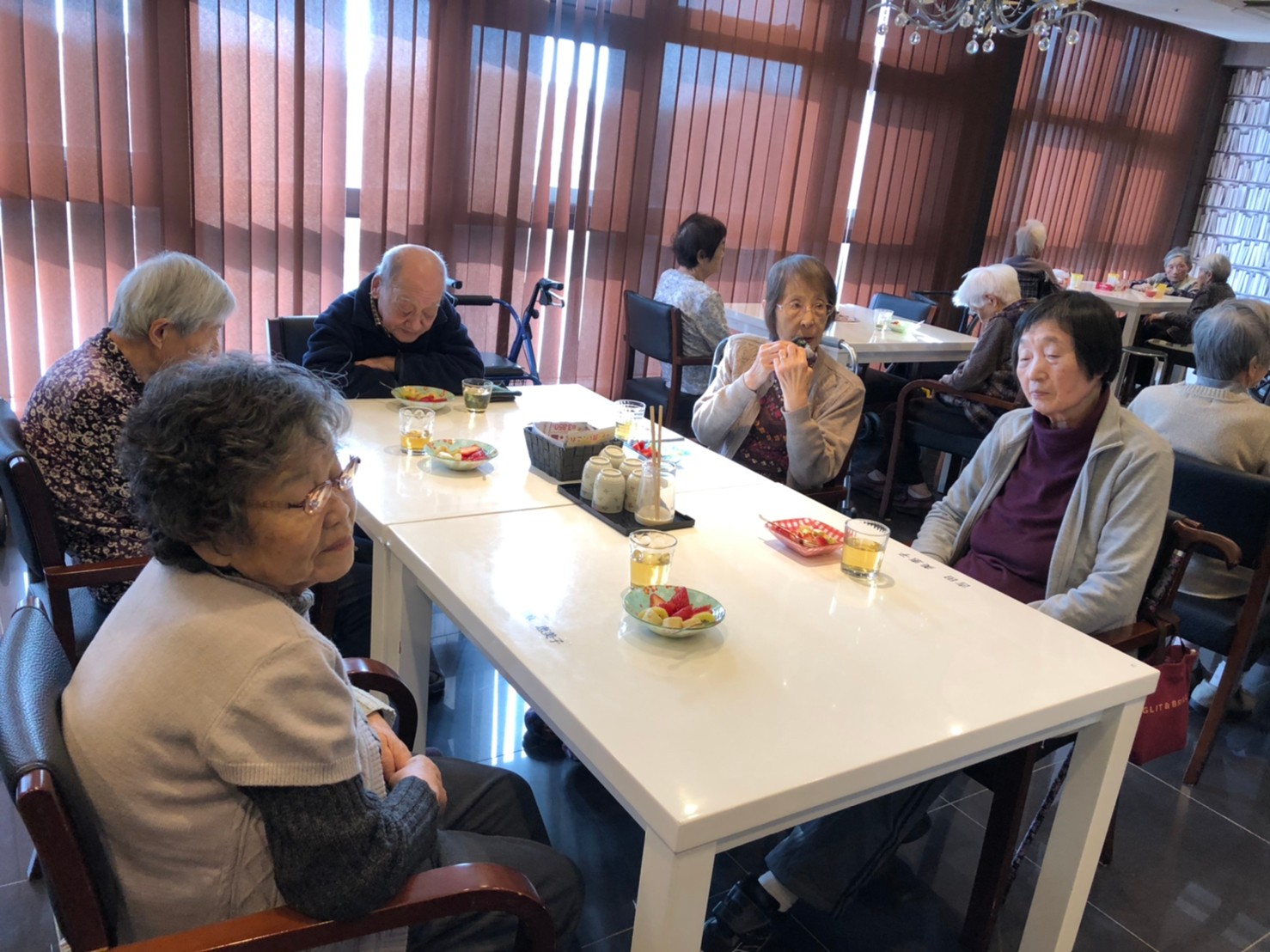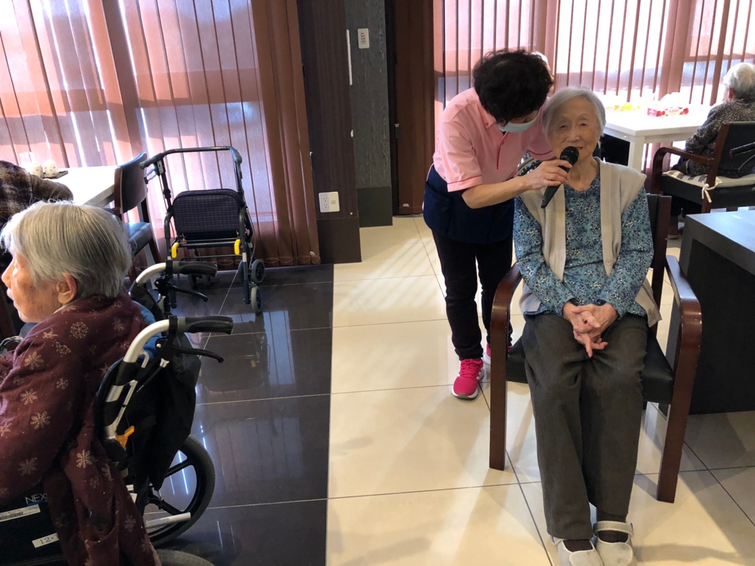 本日よりサニープレイス河瀬に新しいご入居者が増えました。九州のご出身の利用者さまは同県の出身の利用者さまと、スタッフとすぐに打ち解けておられました。最初こそ緊張されていましたが、ウェルカムパーティーが始まりカラオケ大会になるころにはすっかり普段のお姿でお話されておられました。これからも穏やかにお過ごしされるお手伝いを末永くさせていただきます。よろしくお願い致します。