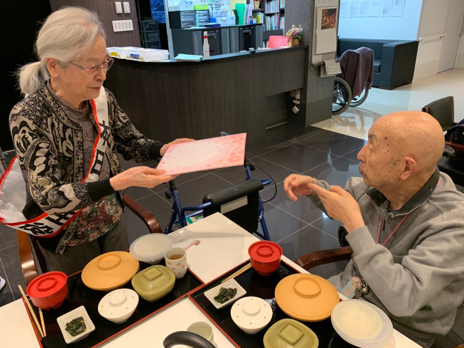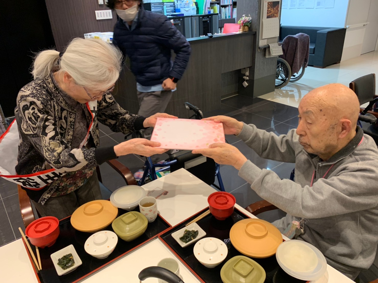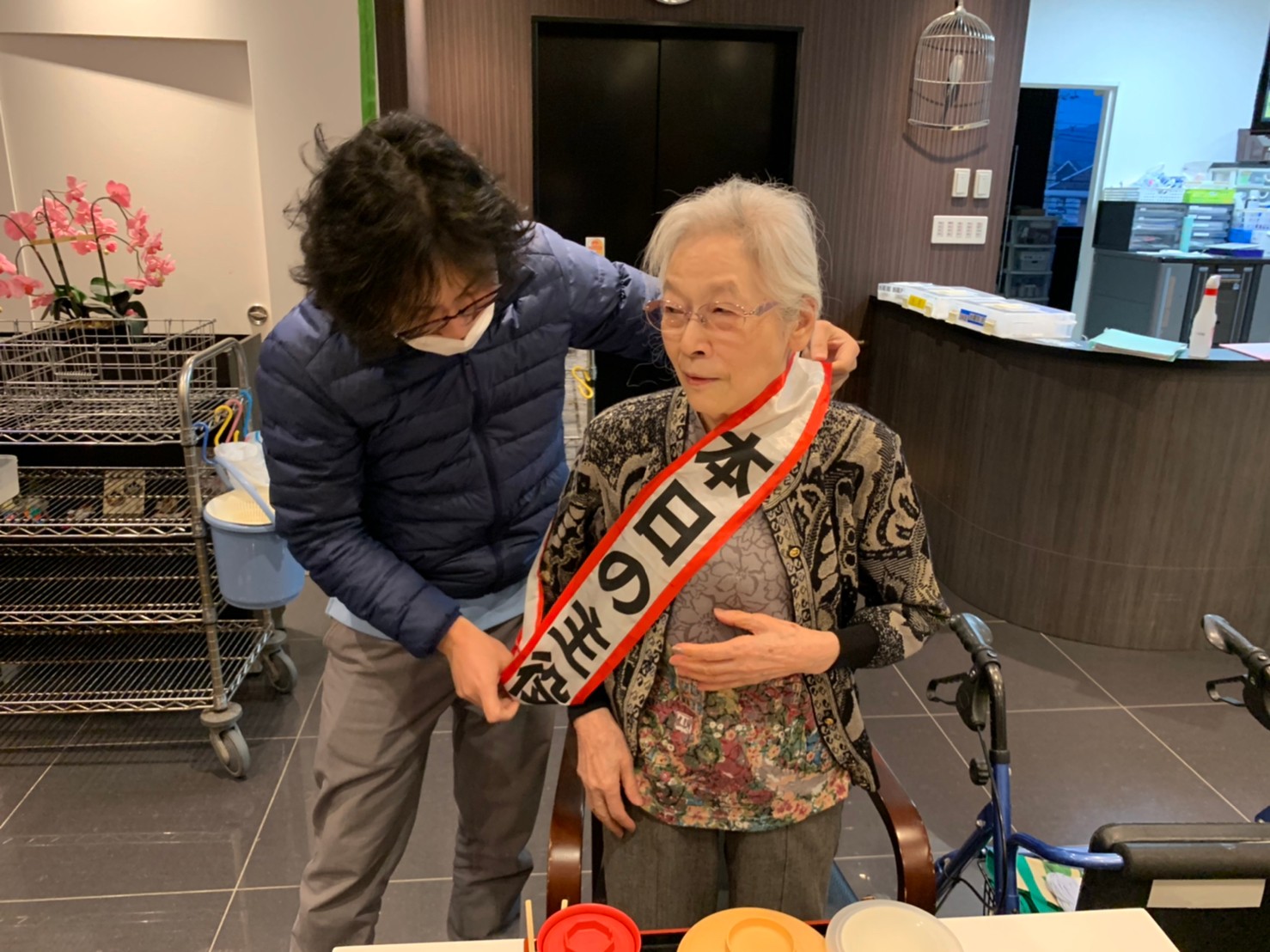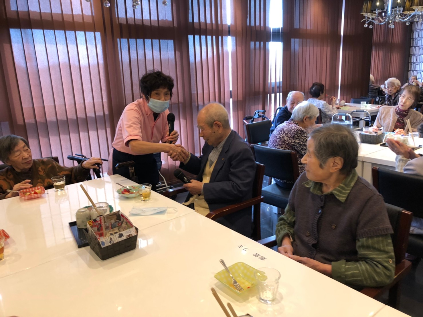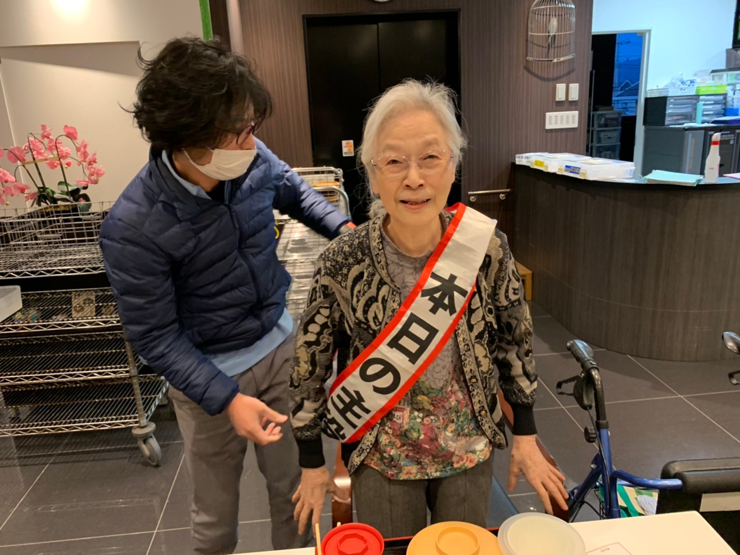 本日は利用者さまのお誕生日でした。ご夫婦でご入居されており、最愛の配偶者さまから「いつまでも仲良く一緒にいようね」って、お誕生日のお祝いがありました。
