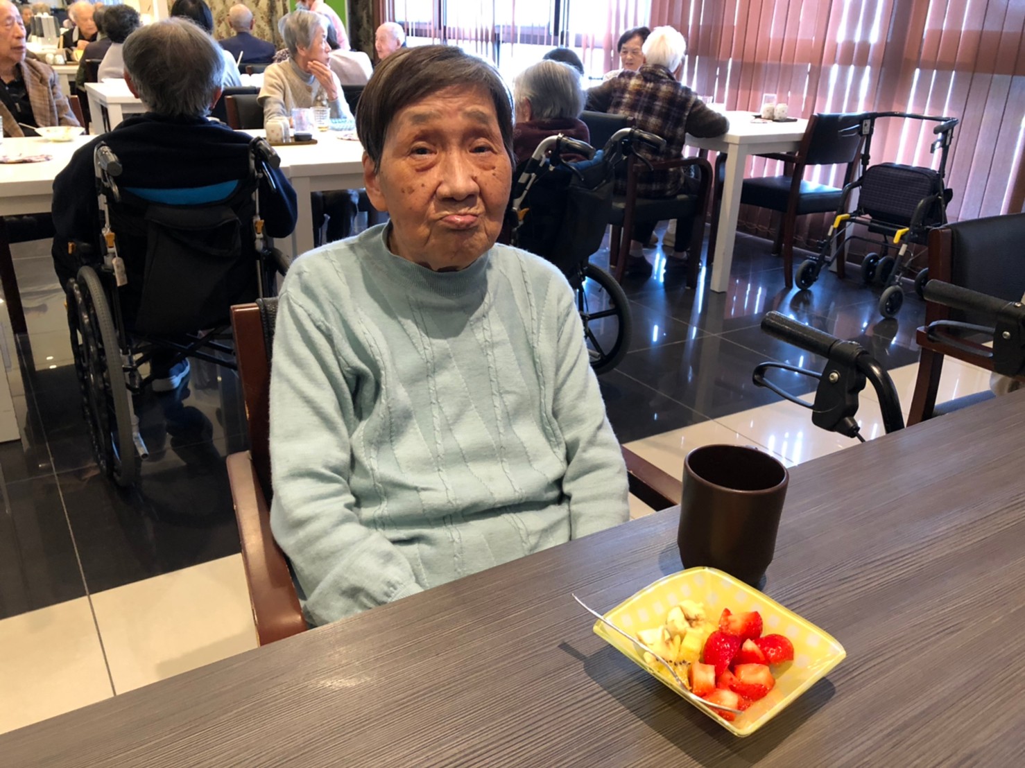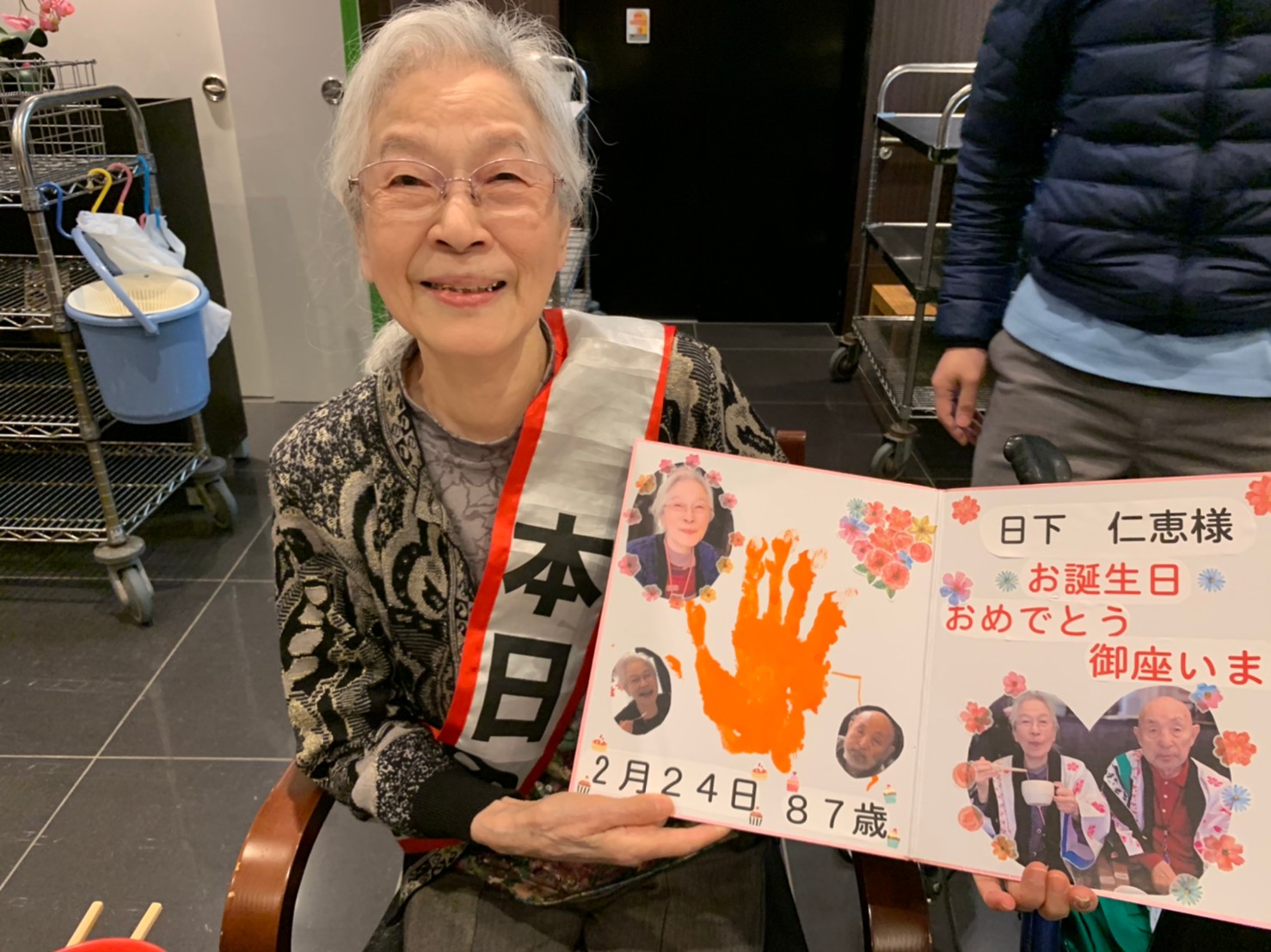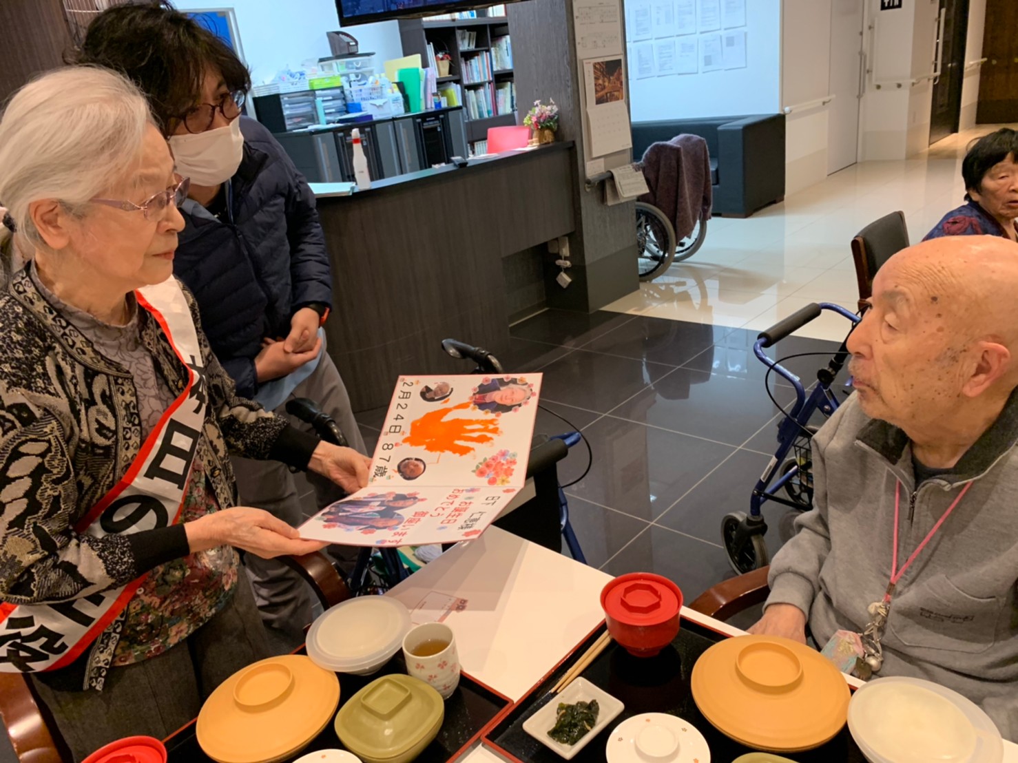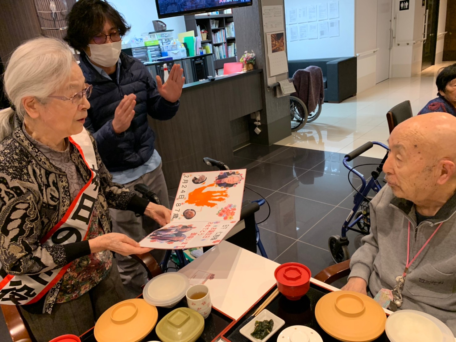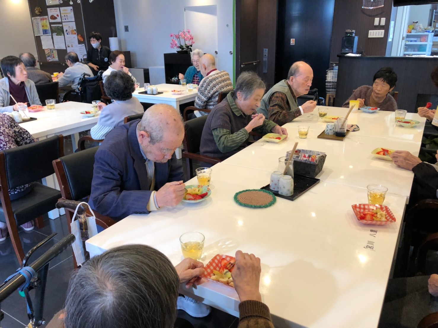 本日は利用者さまのお誕生日でした。ご夫婦でご入居されており、最愛の配偶者さまから「いつまでも仲良く一緒にいようね」って、お誕生日のお祝いがありました。
