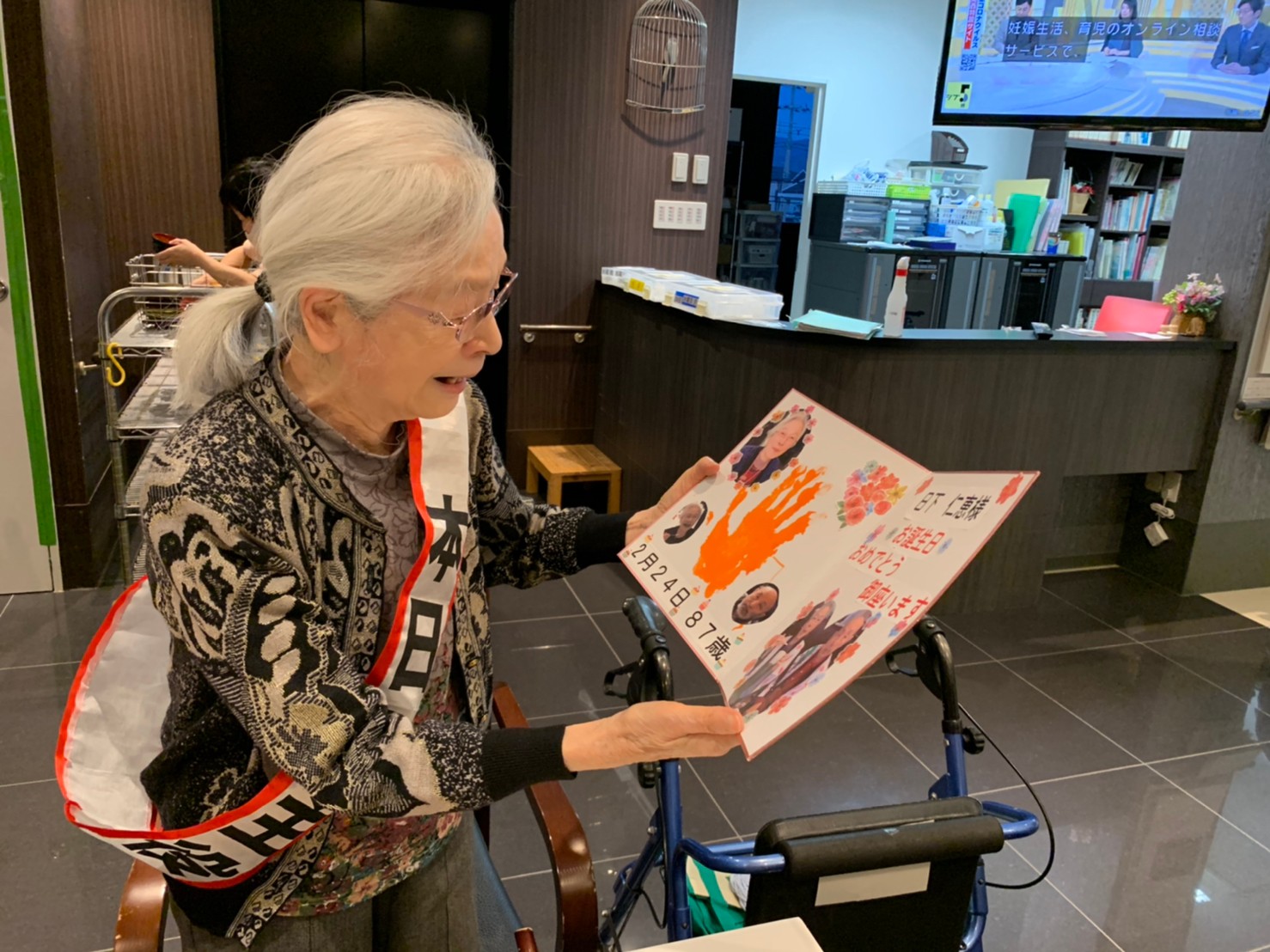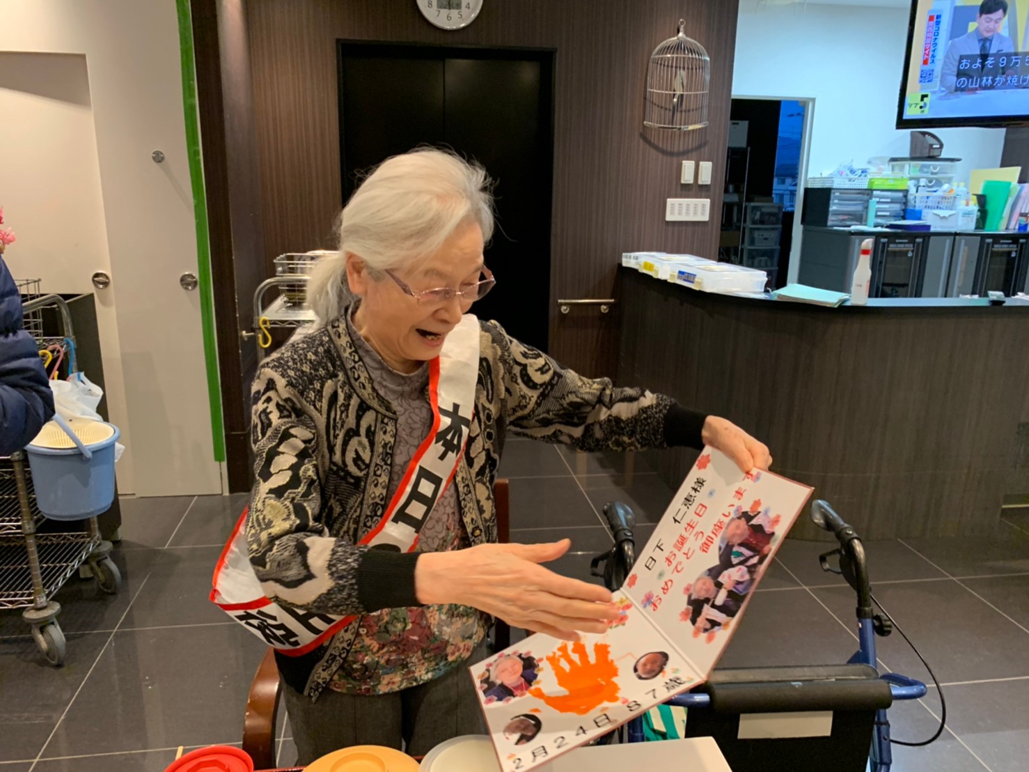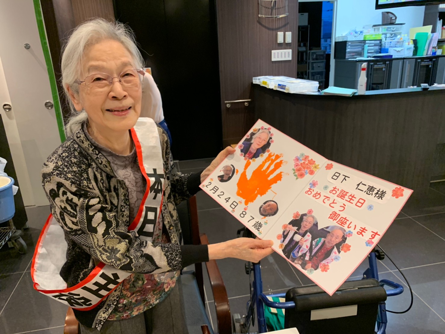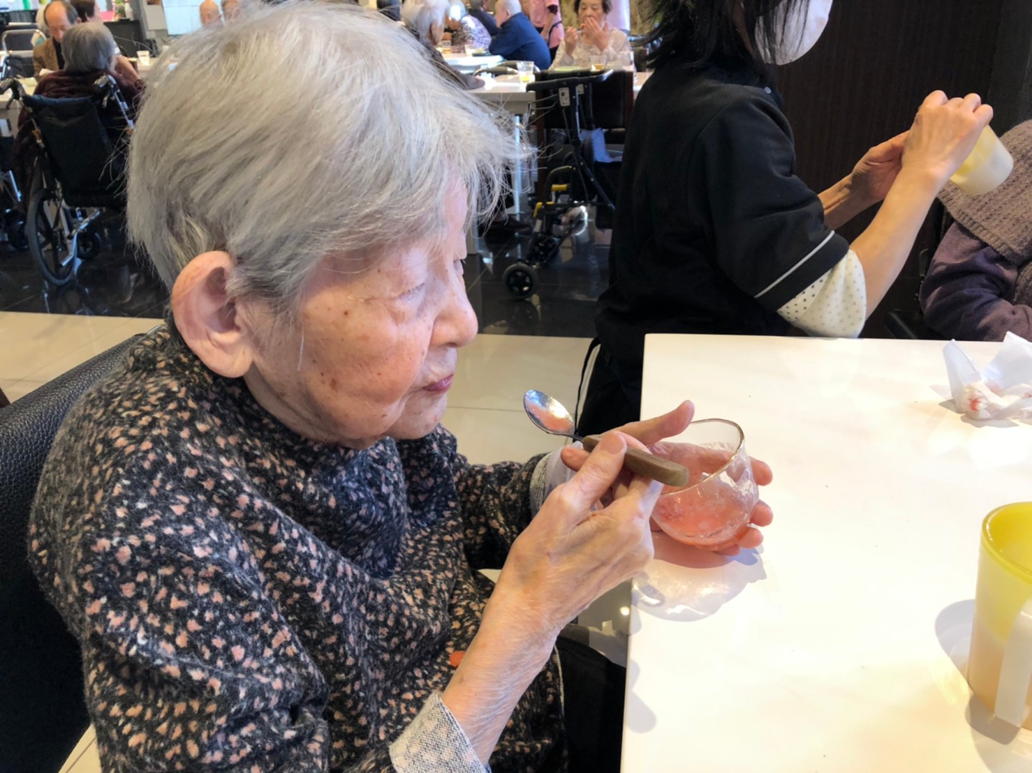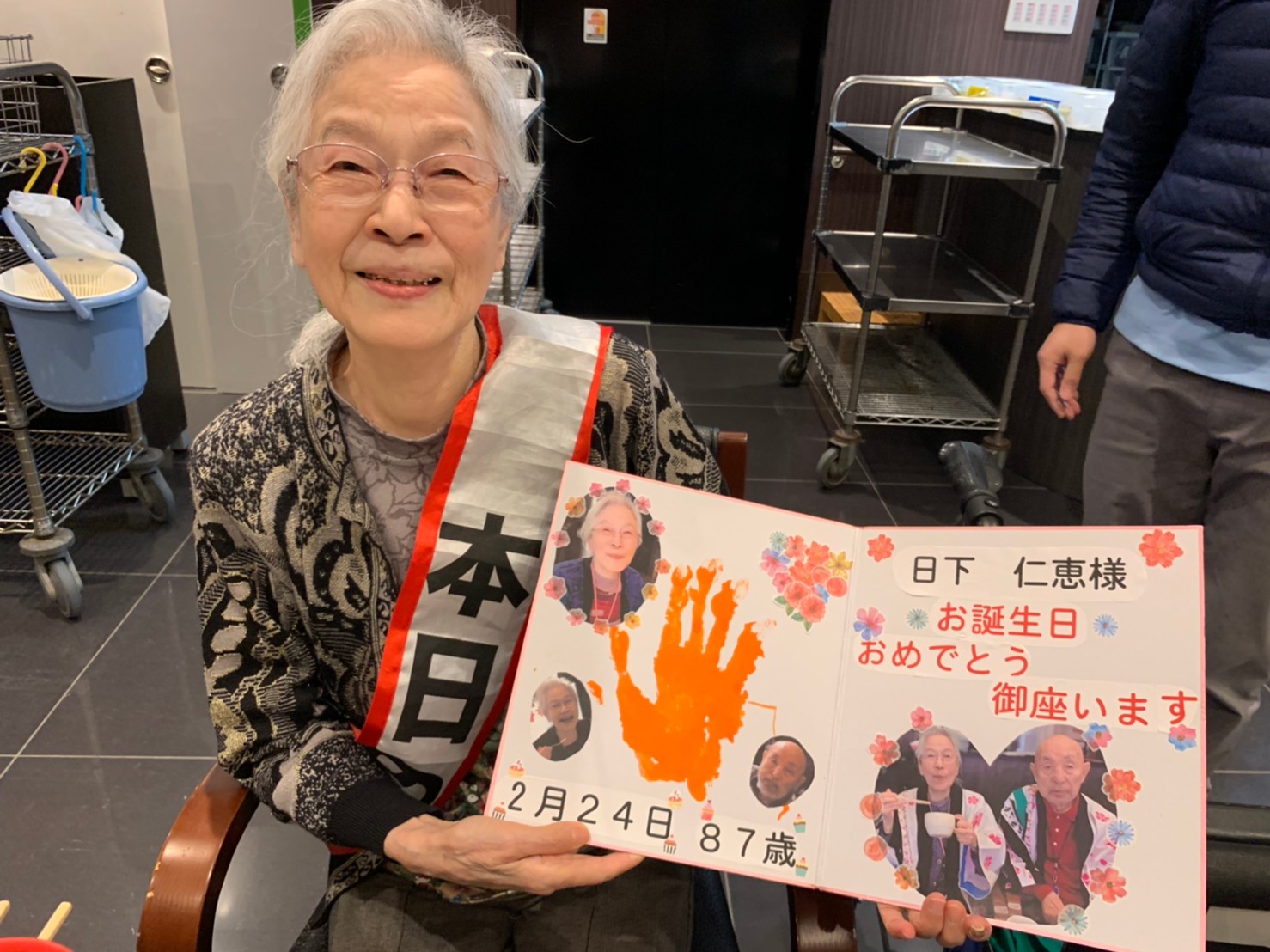 本日は利用者さまのお誕生日でした。ご夫婦でご入居されており、最愛の配偶者さまから「いつまでも仲良く一緒にいようね」って、お誕生日のお祝いがありました。