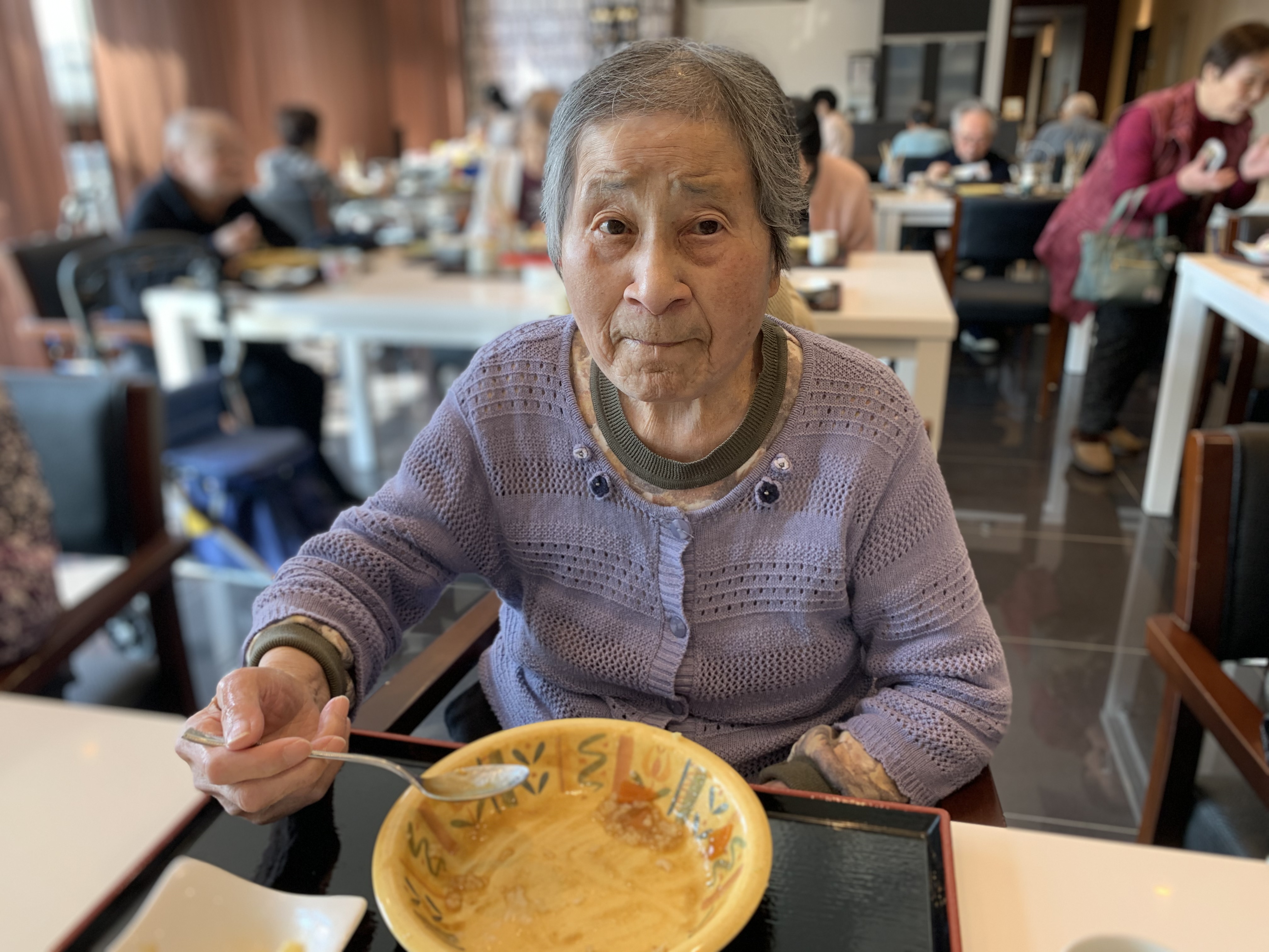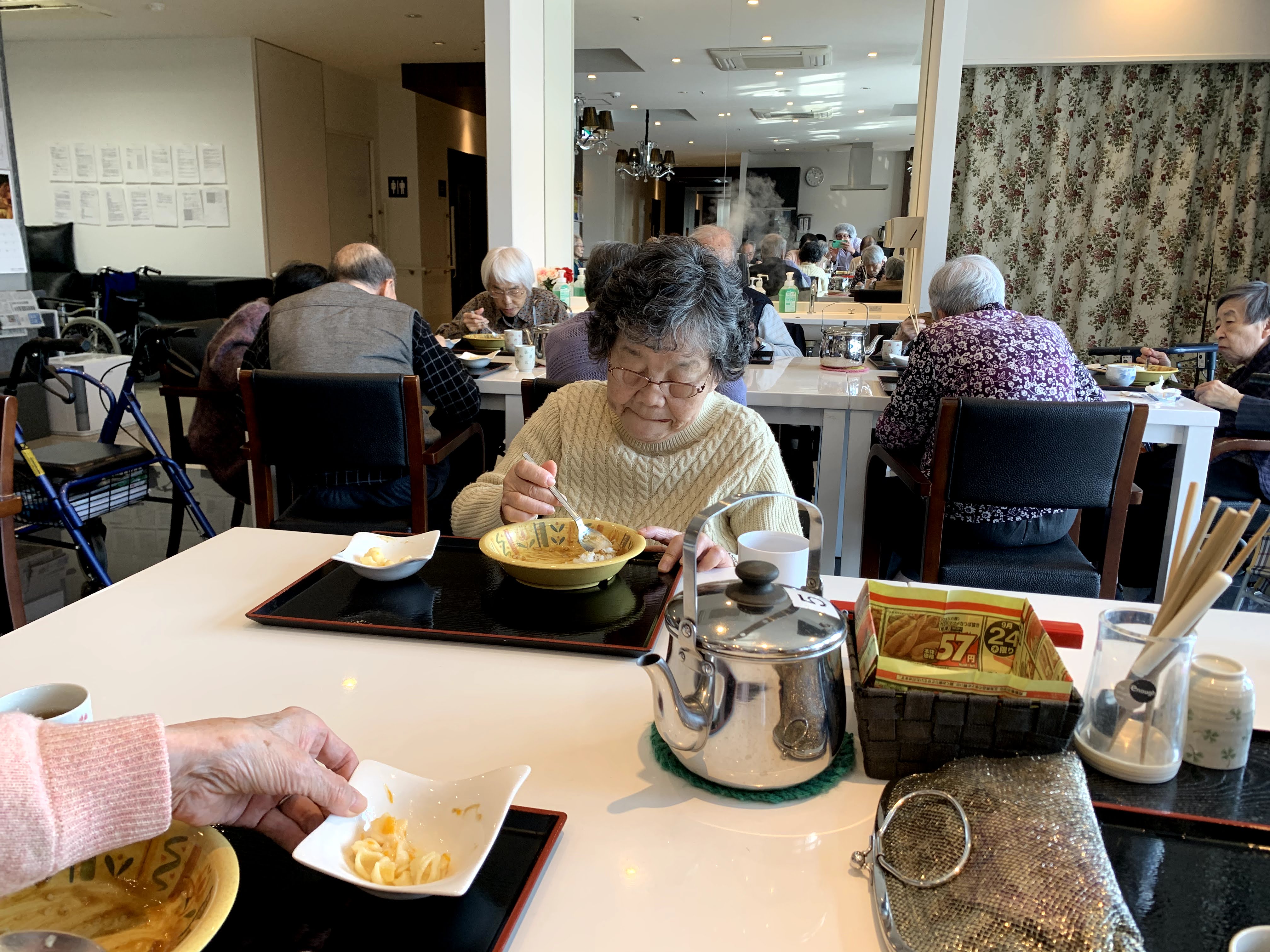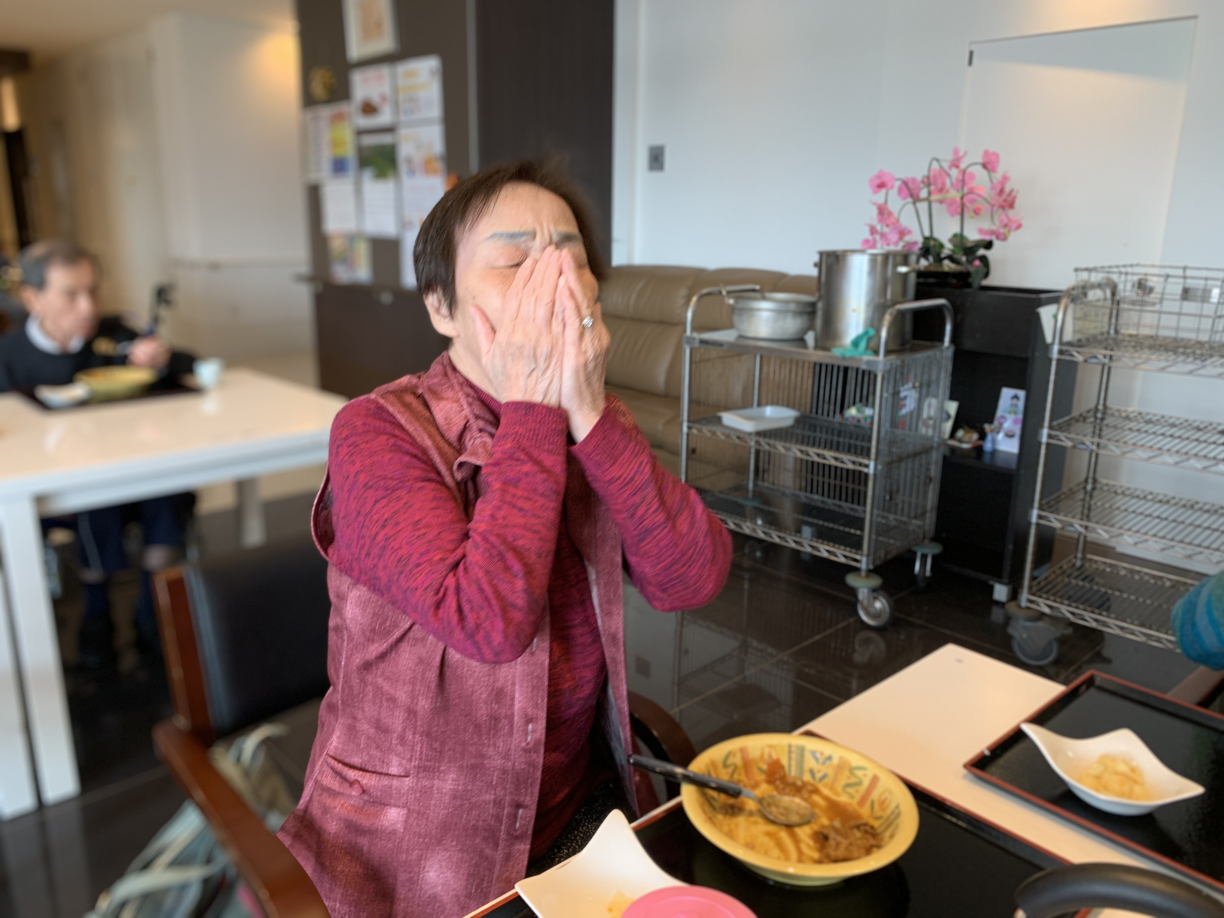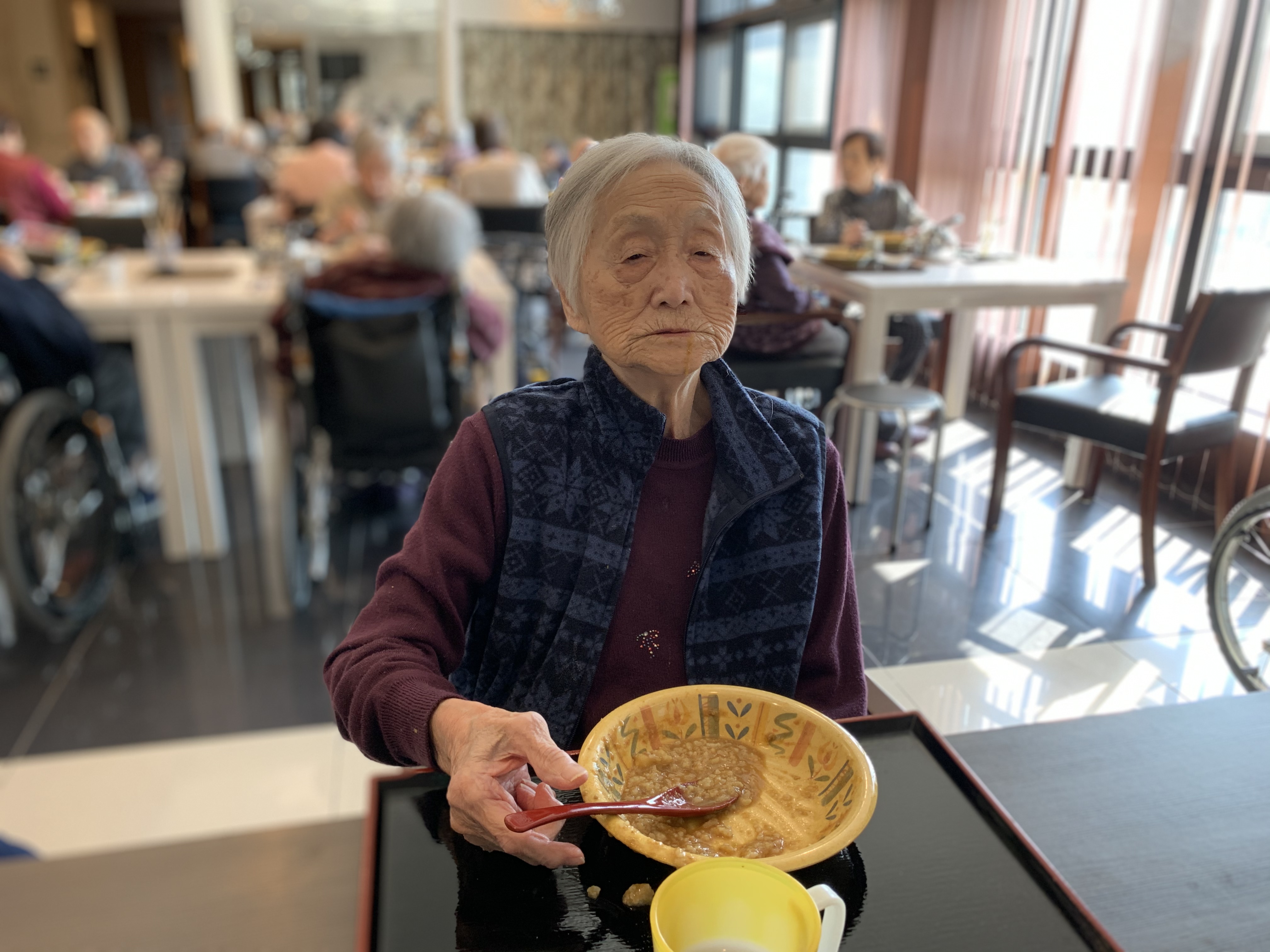 今日は手作りカレーの日です。利用者さまがお野菜を切っていただき、職員が煮込んだカレーを召し上がっていただきました。お味はお写真に写った表情が物語っております。