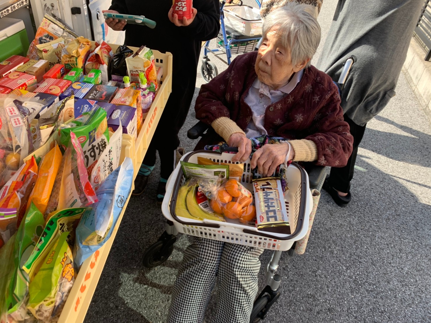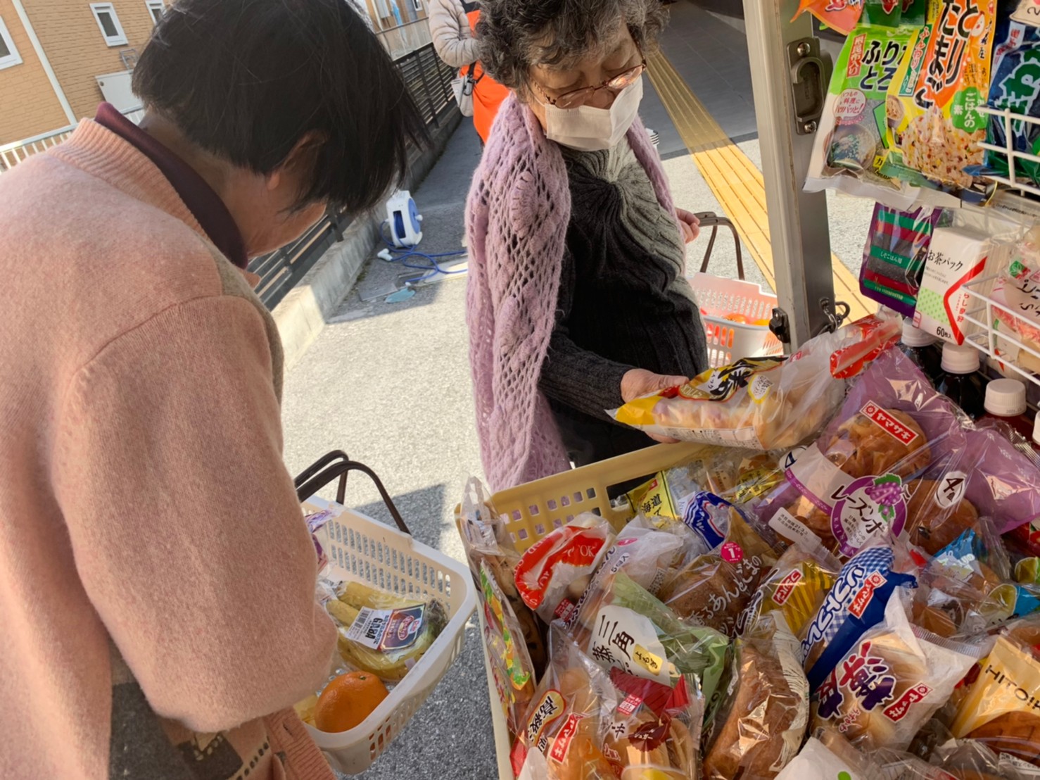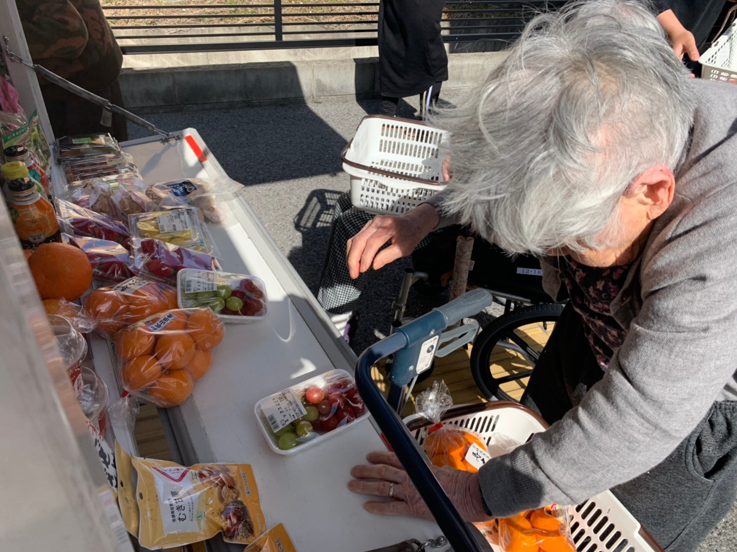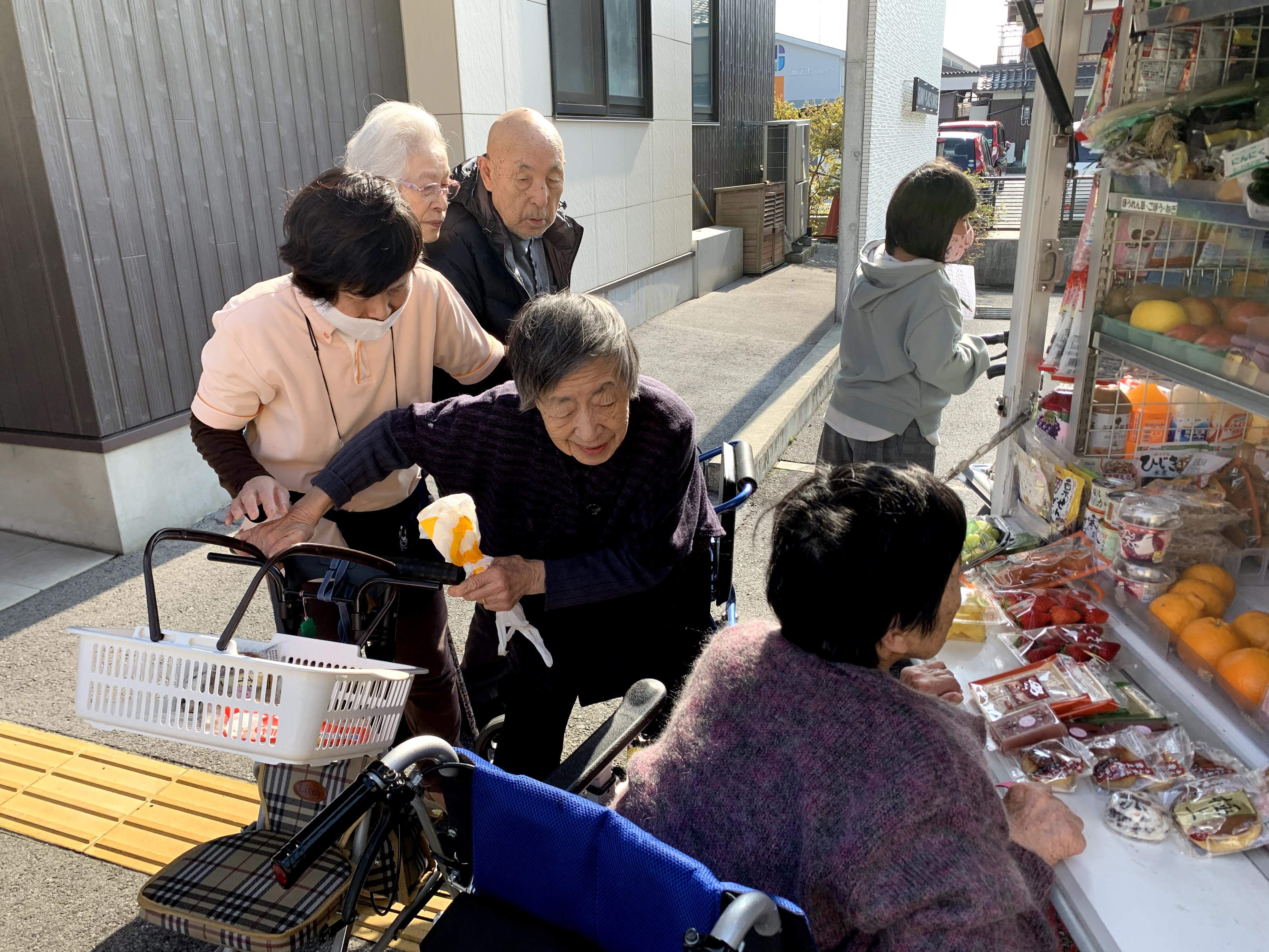 本日はとくし丸さんに来ていただき、お買い物の日です。みなさまは週に1回のお買い物を楽しまれました。