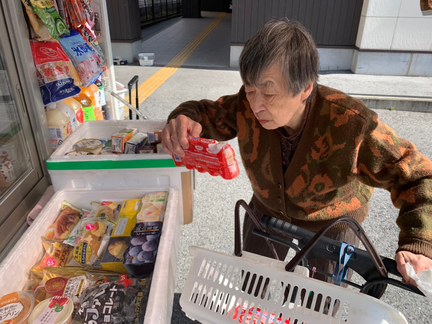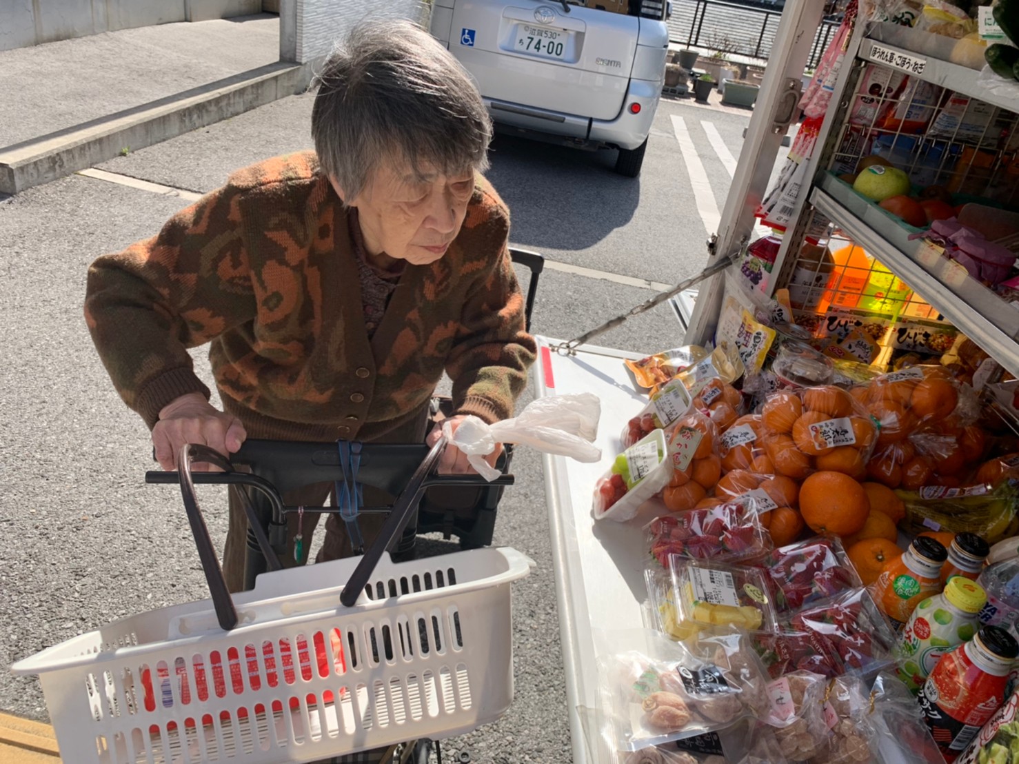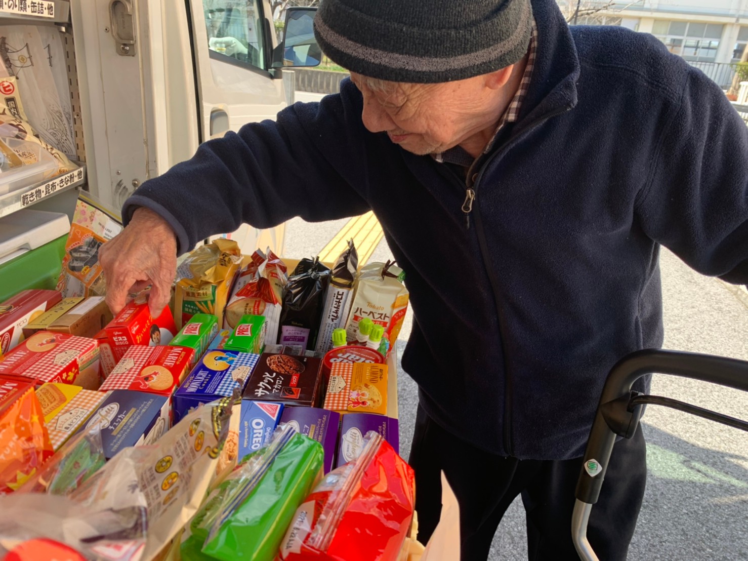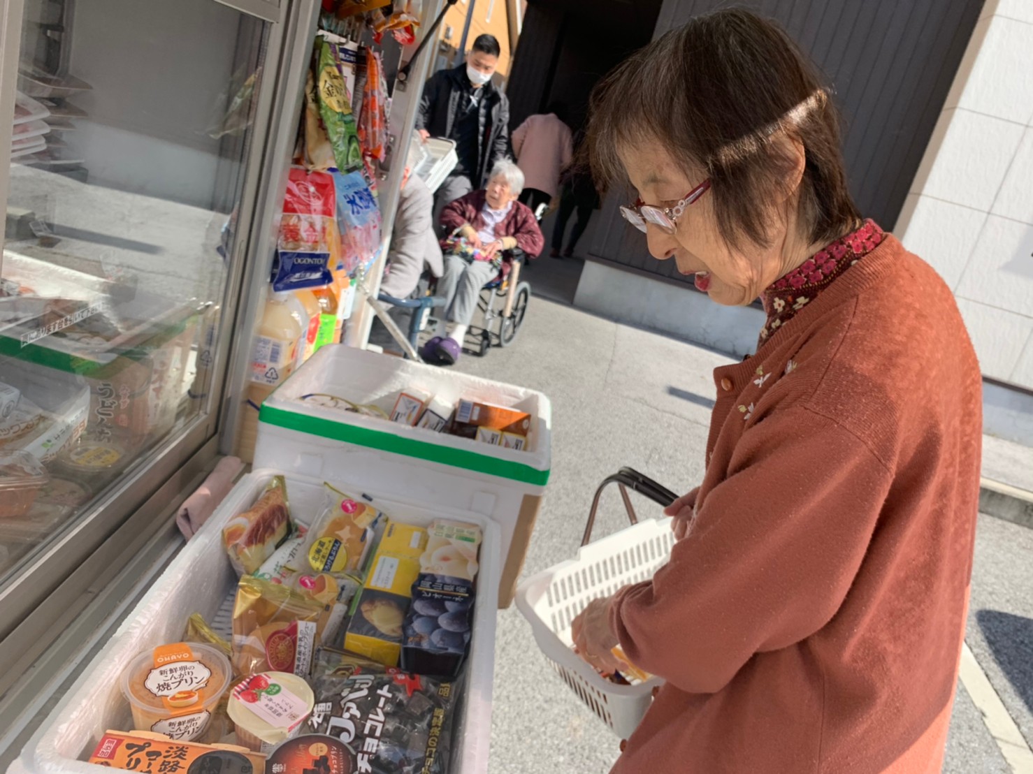 本日はとくし丸さんに来ていただき、お買い物の日です。みなさまは週に1回のお買い物を楽しまれました。
