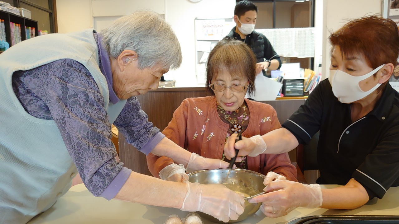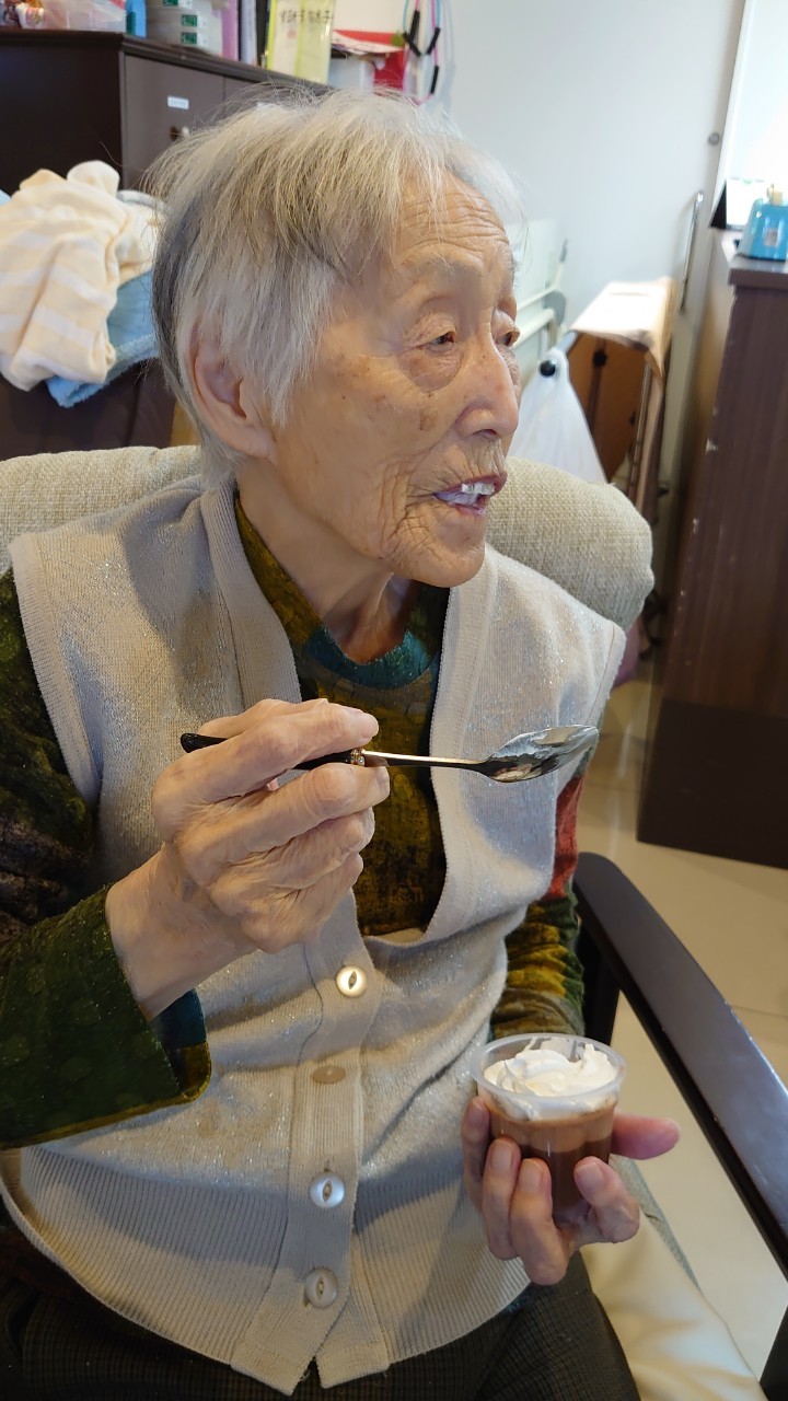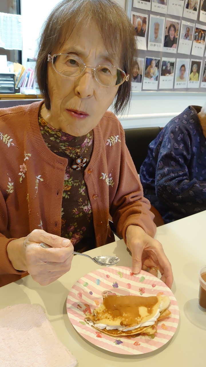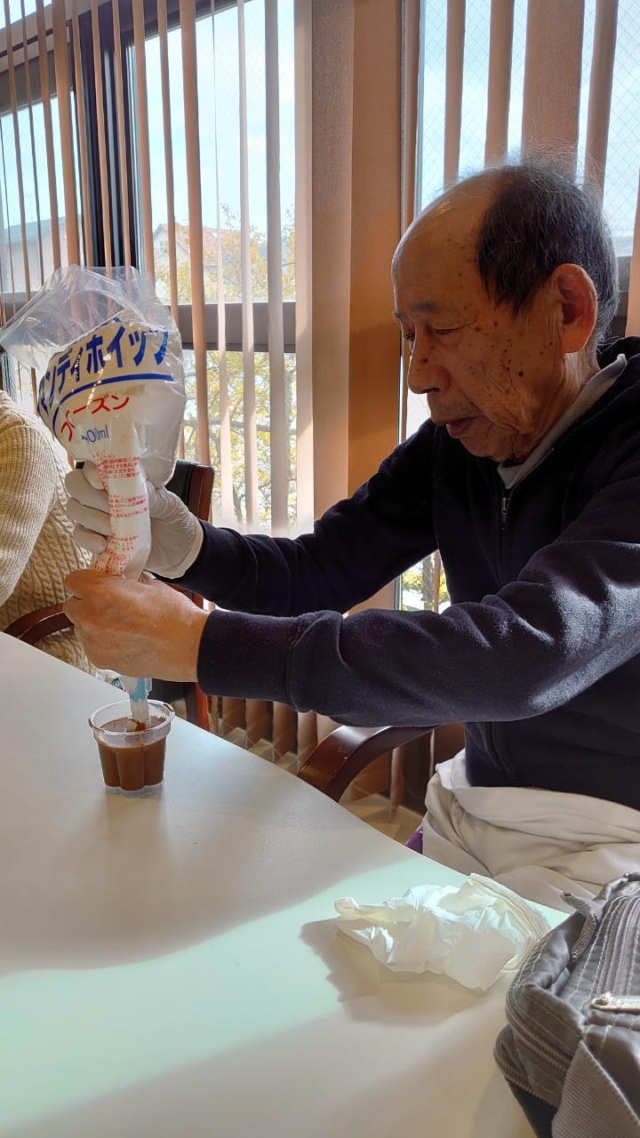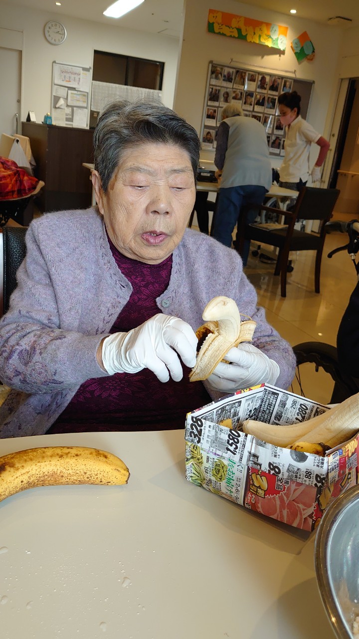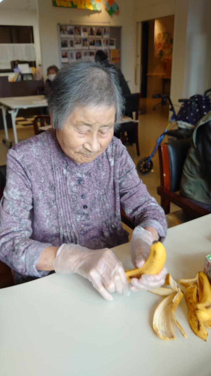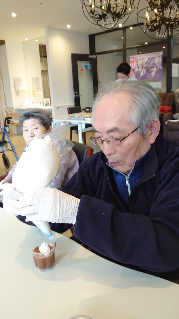手作りおやつの日も二日目を迎えました。本日のお菓子は前日と変わらずチョコレートムースとバナナオムレットです。二日目となると利用者さまもスタッフも慣れて手際が良く、次はあれするんやろ??って聞いてくださり昨日よりも機能向上訓練の成果が出ているように感じます。おいしいお菓子と最高の笑顔ですごせた1日になりました(*´з`)