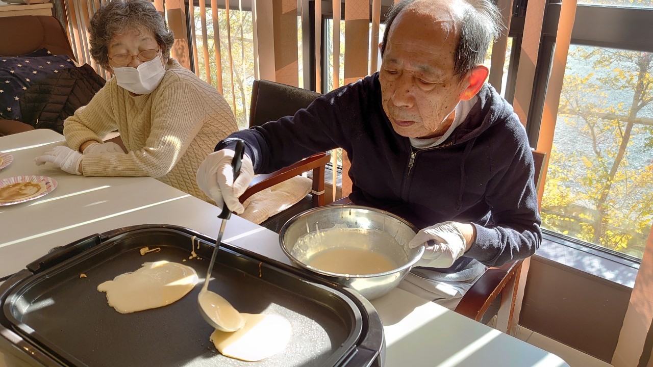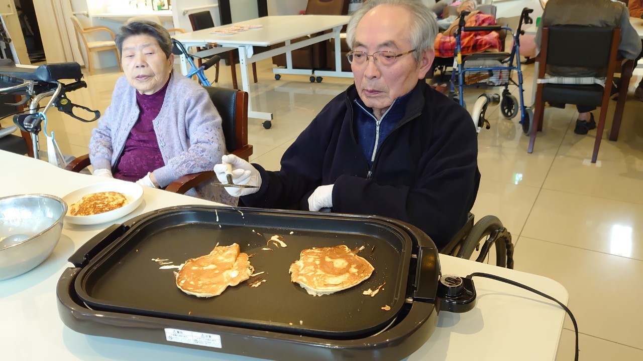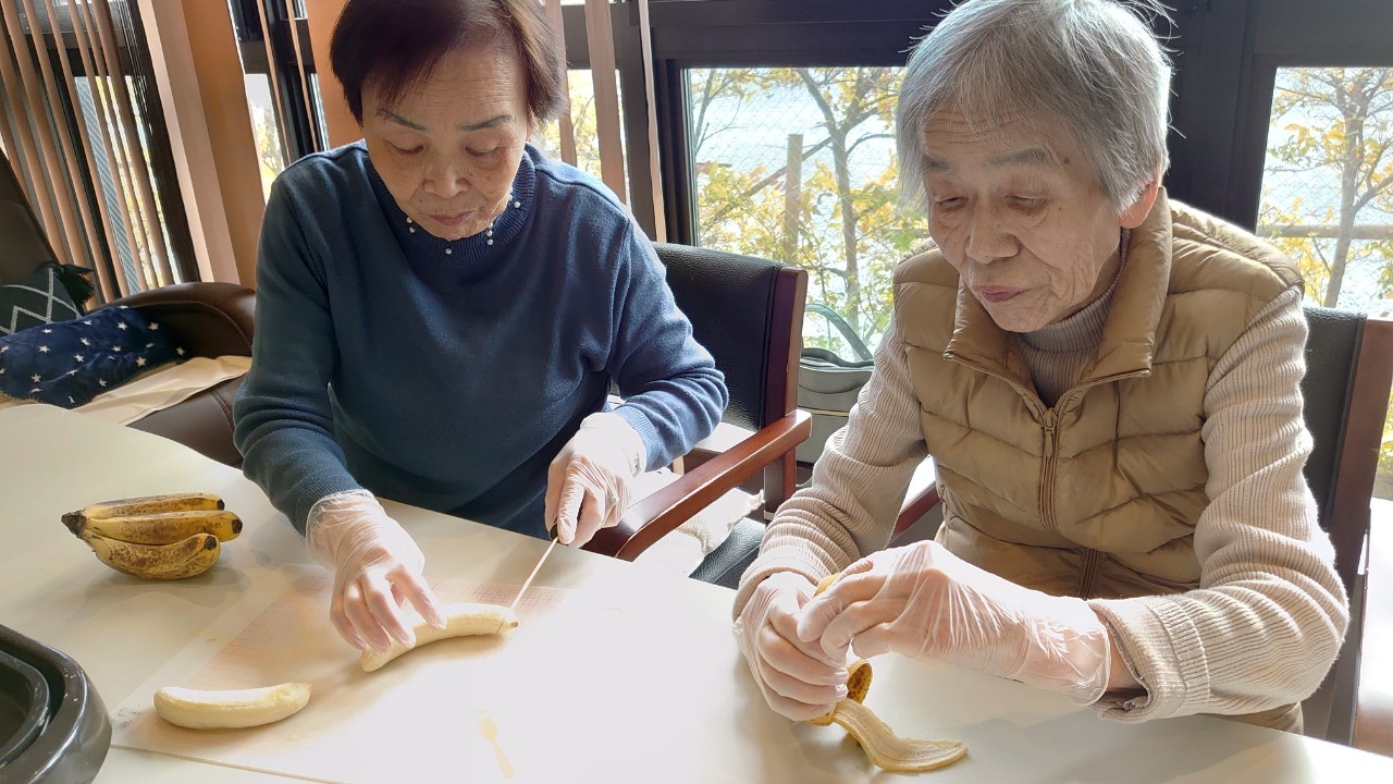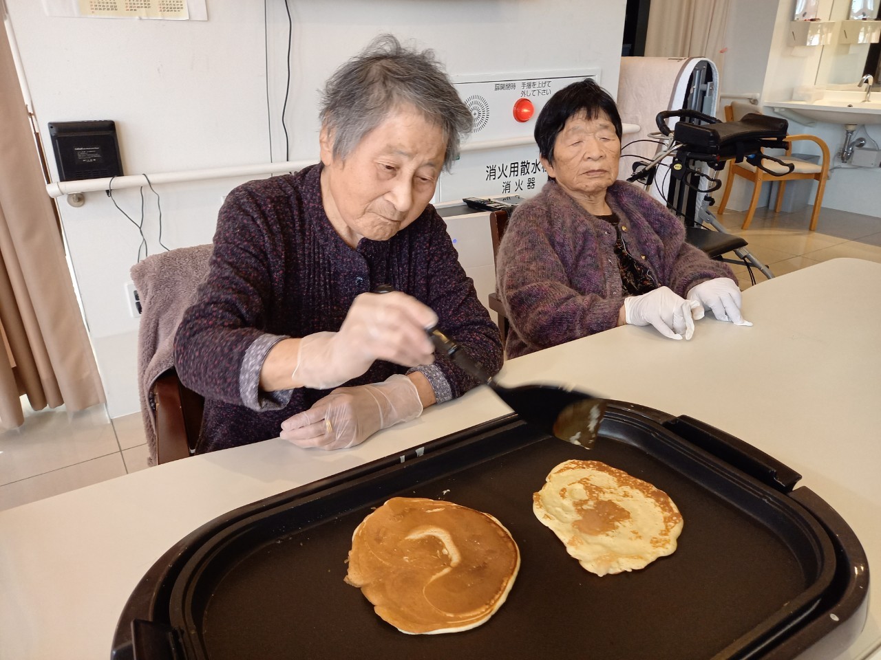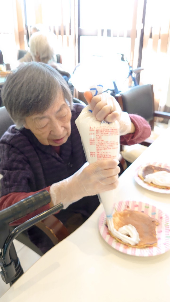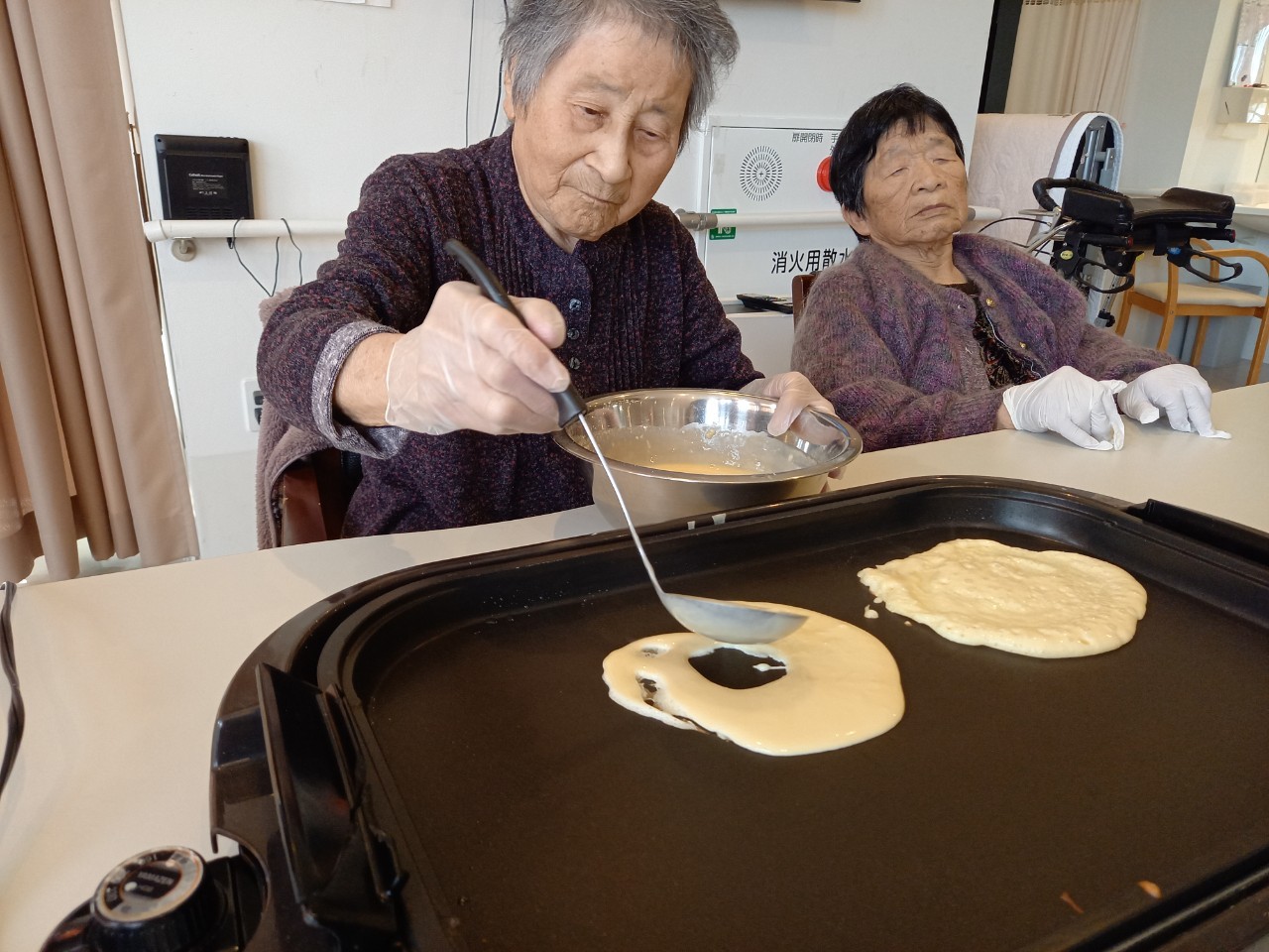 手作りおやつの日も二日目を迎えました。本日のお菓子は前日と変わらずチョコレートムースとバナナオムレットです。二日目となると利用者さまもスタッフも慣れて手際が良く、次はあれするんやろ??って聞いてくださり昨日よりも機能向上訓練の成果が出ているように感じます。おいしいお菓子と最高の笑顔ですごせた1日になりました(*´з`)