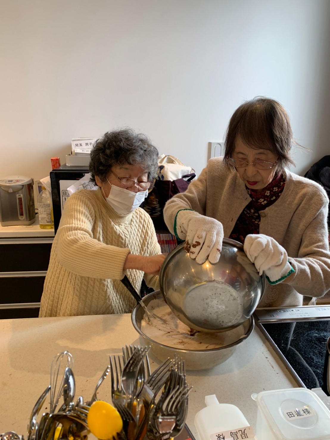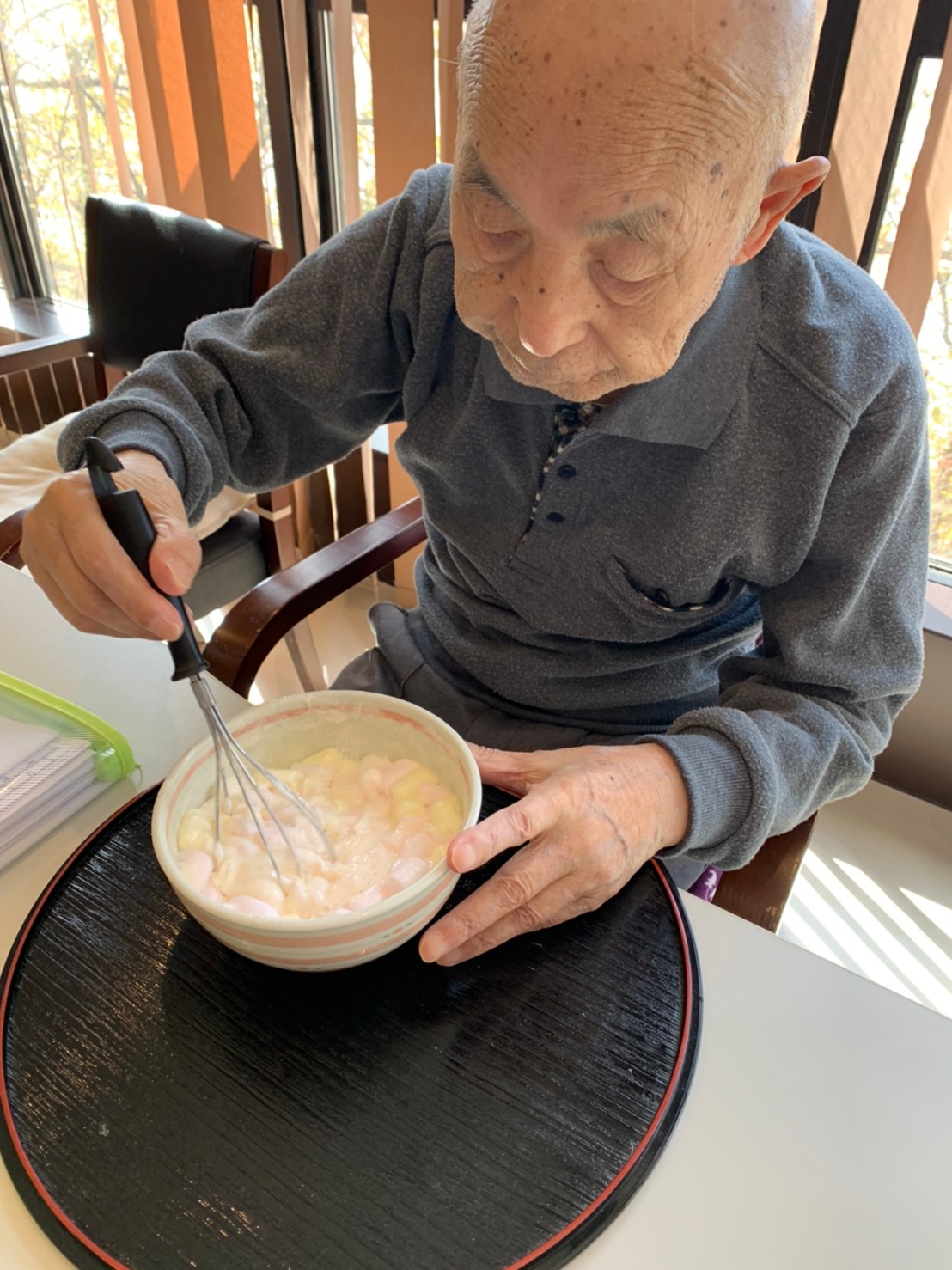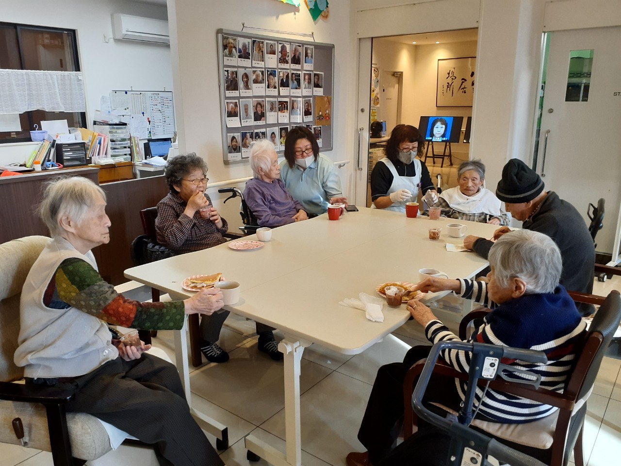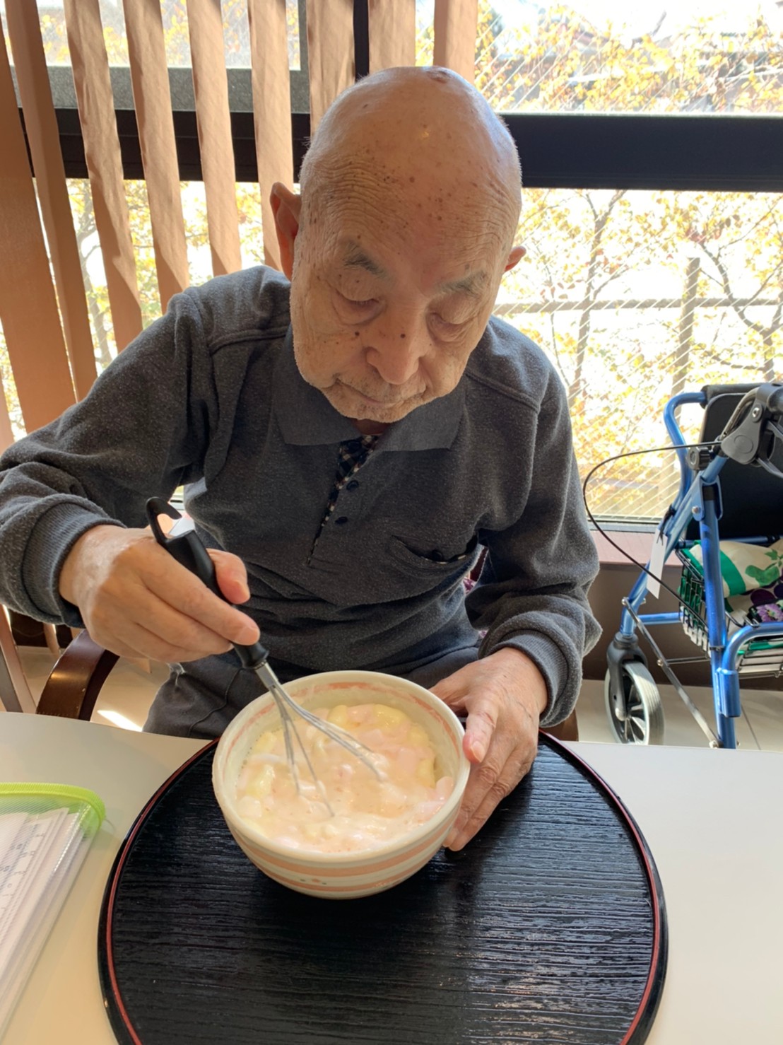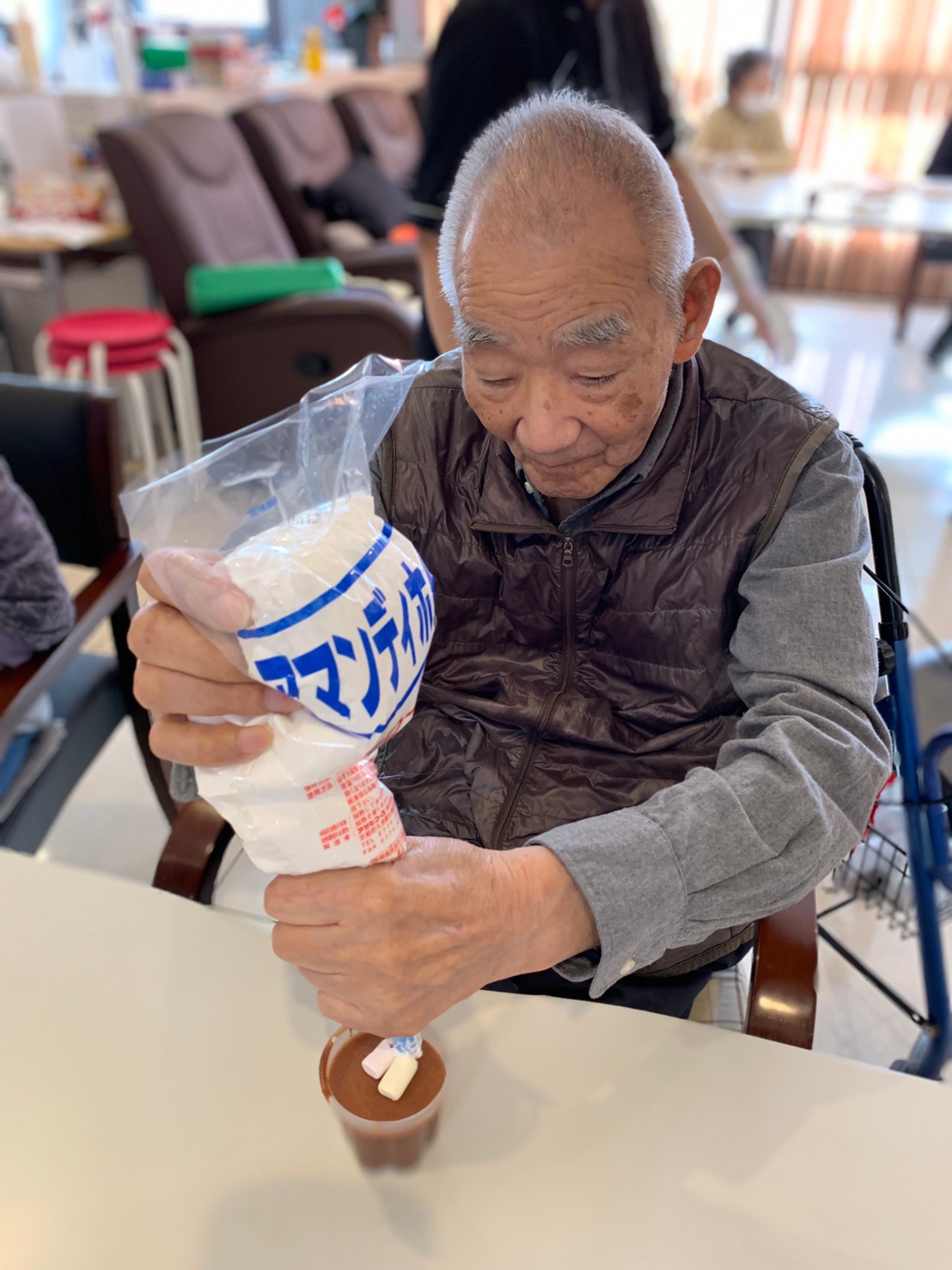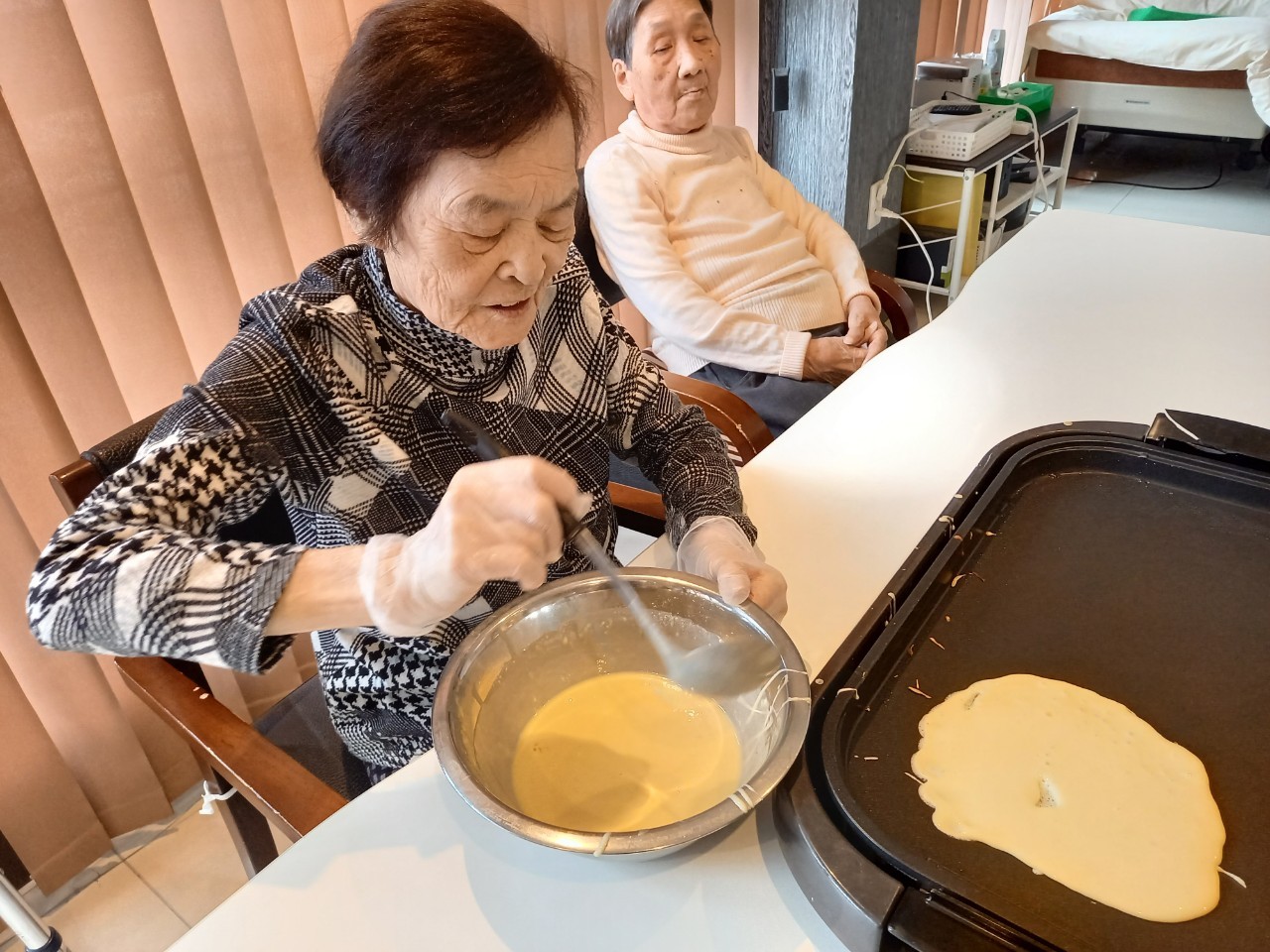 手作りおやつの日も二日目を迎えました。本日のお菓子は前日と変わらずチョコレートムースとバナナオムレットです。二日目となると利用者さまもスタッフも慣れて手際が良く、次はあれするんやろ??って聞いてくださり昨日よりも機能向上訓練の成果が出ているように感じます。おいしいお菓子と最高の笑顔ですごせた1日になりました(*´з`)