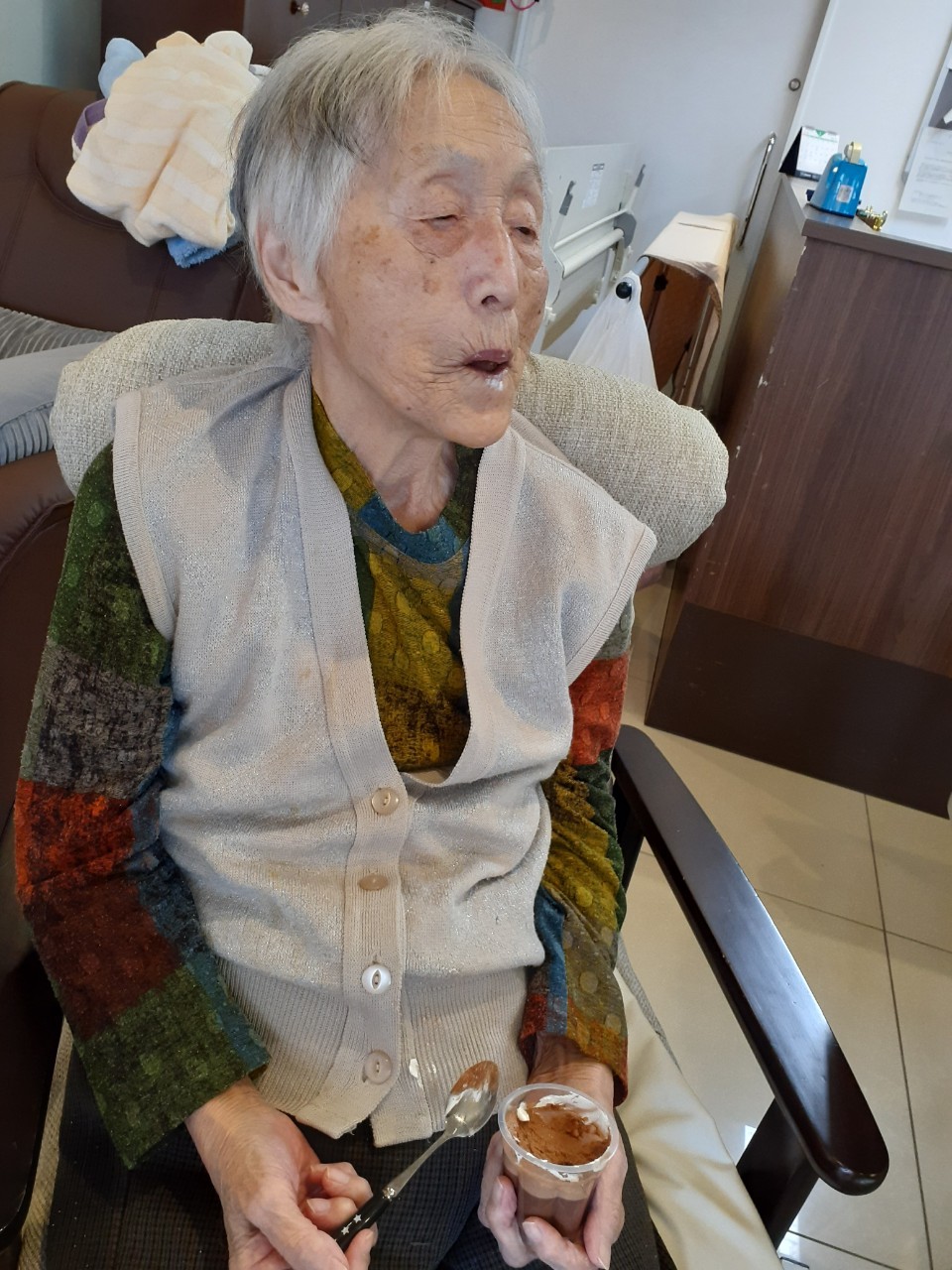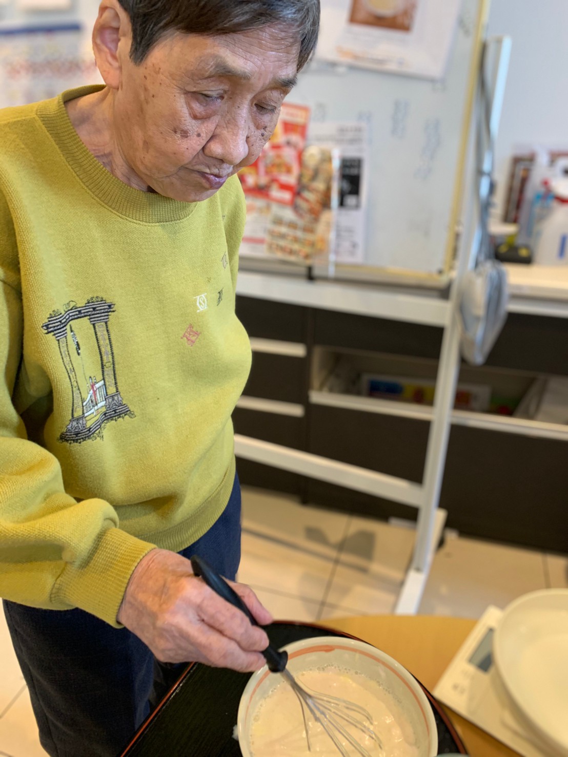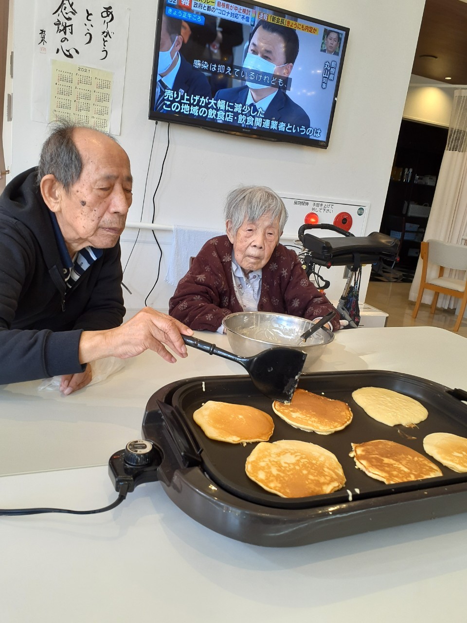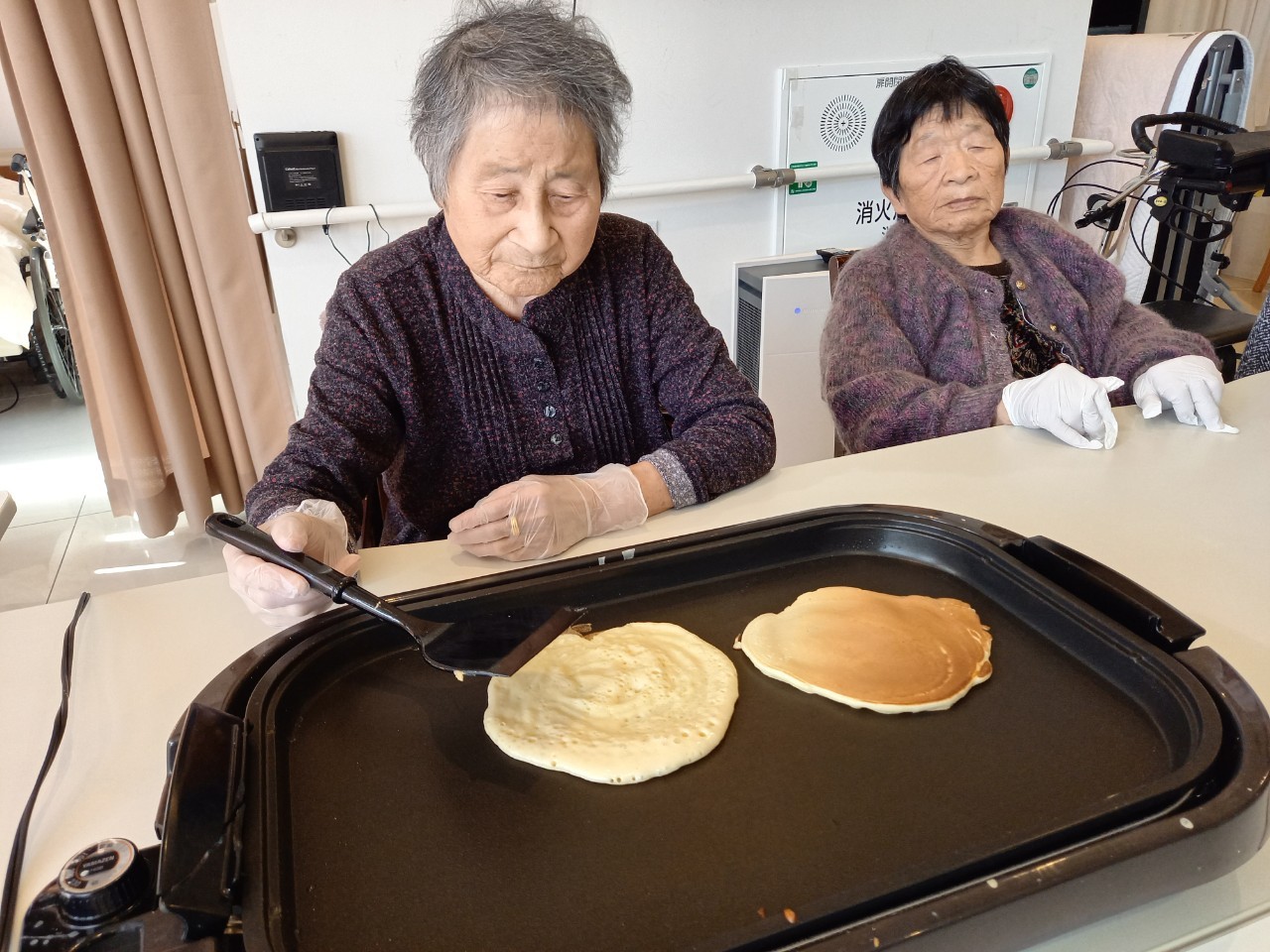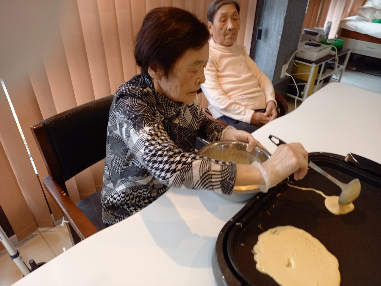 手作りおやつの日も二日目を迎えました。本日のお菓子は前日と変わらずチョコレートムースとバナナオムレットです。二日目となると利用者さまもスタッフも慣れて手際が良く、次はあれするんやろ??って聞いてくださり昨日よりも機能向上訓練の成果が出ているように感じます。おいしいお菓子と最高の笑顔ですごせた1日になりました(*´з`)
