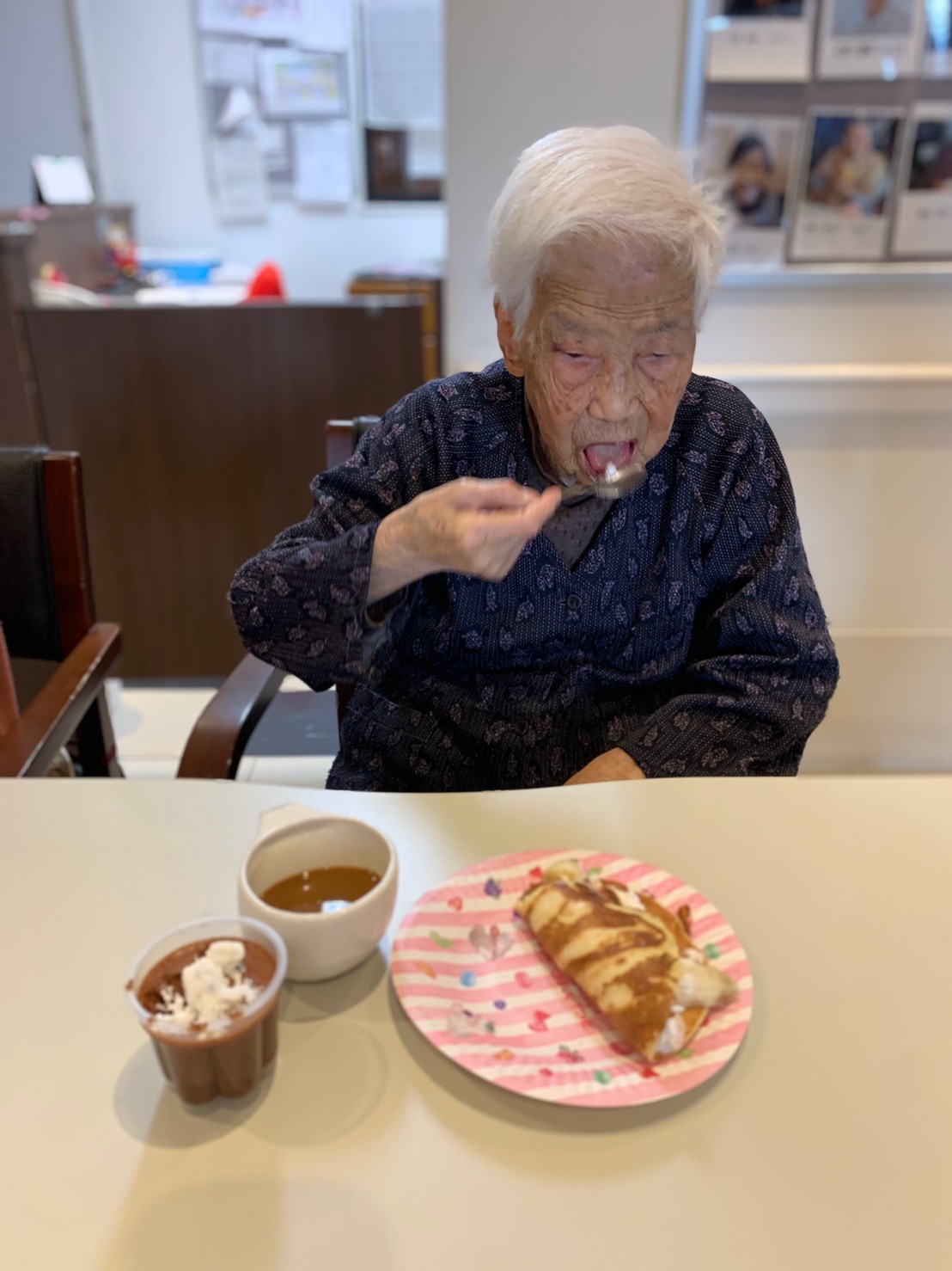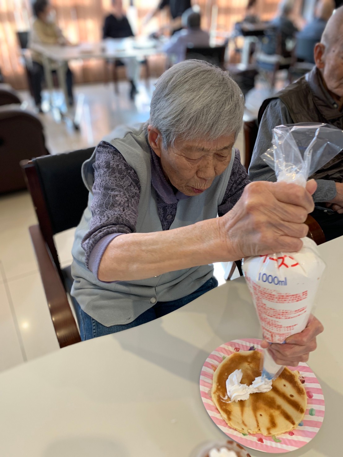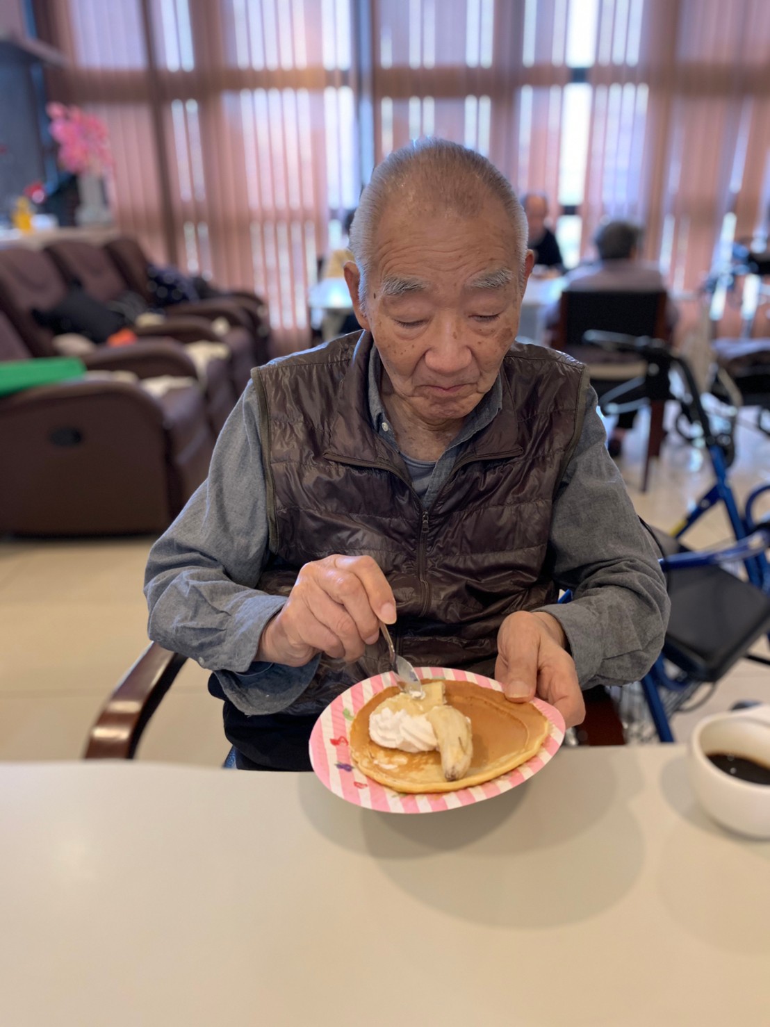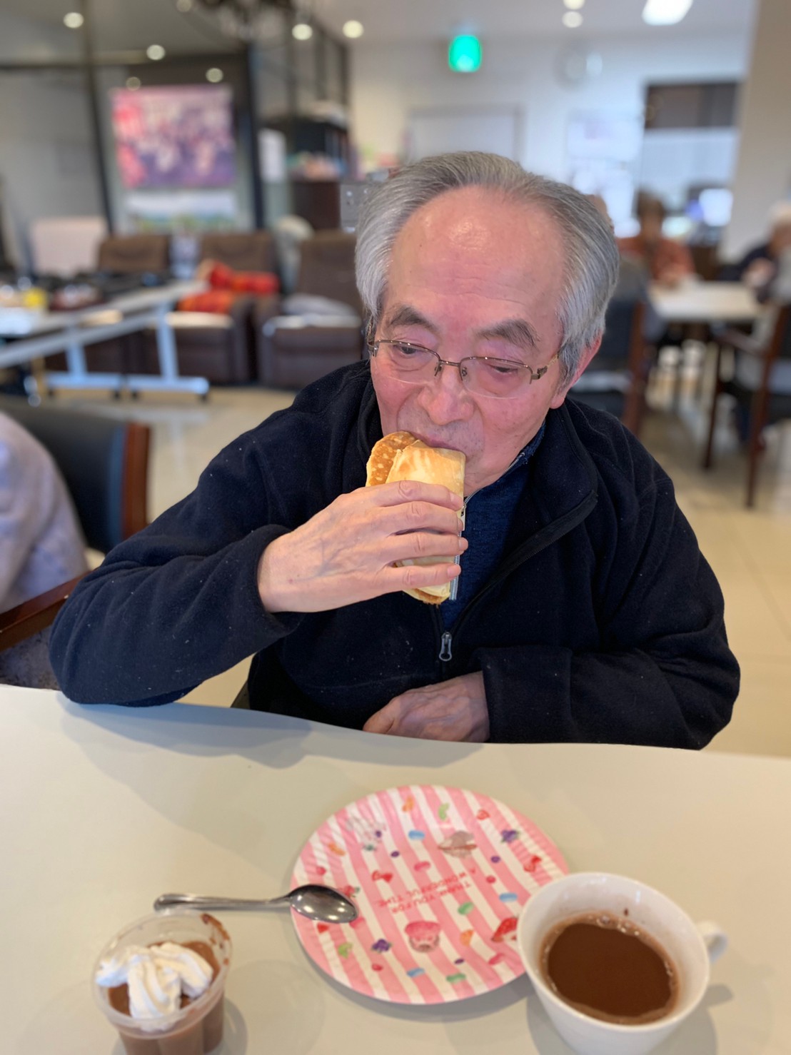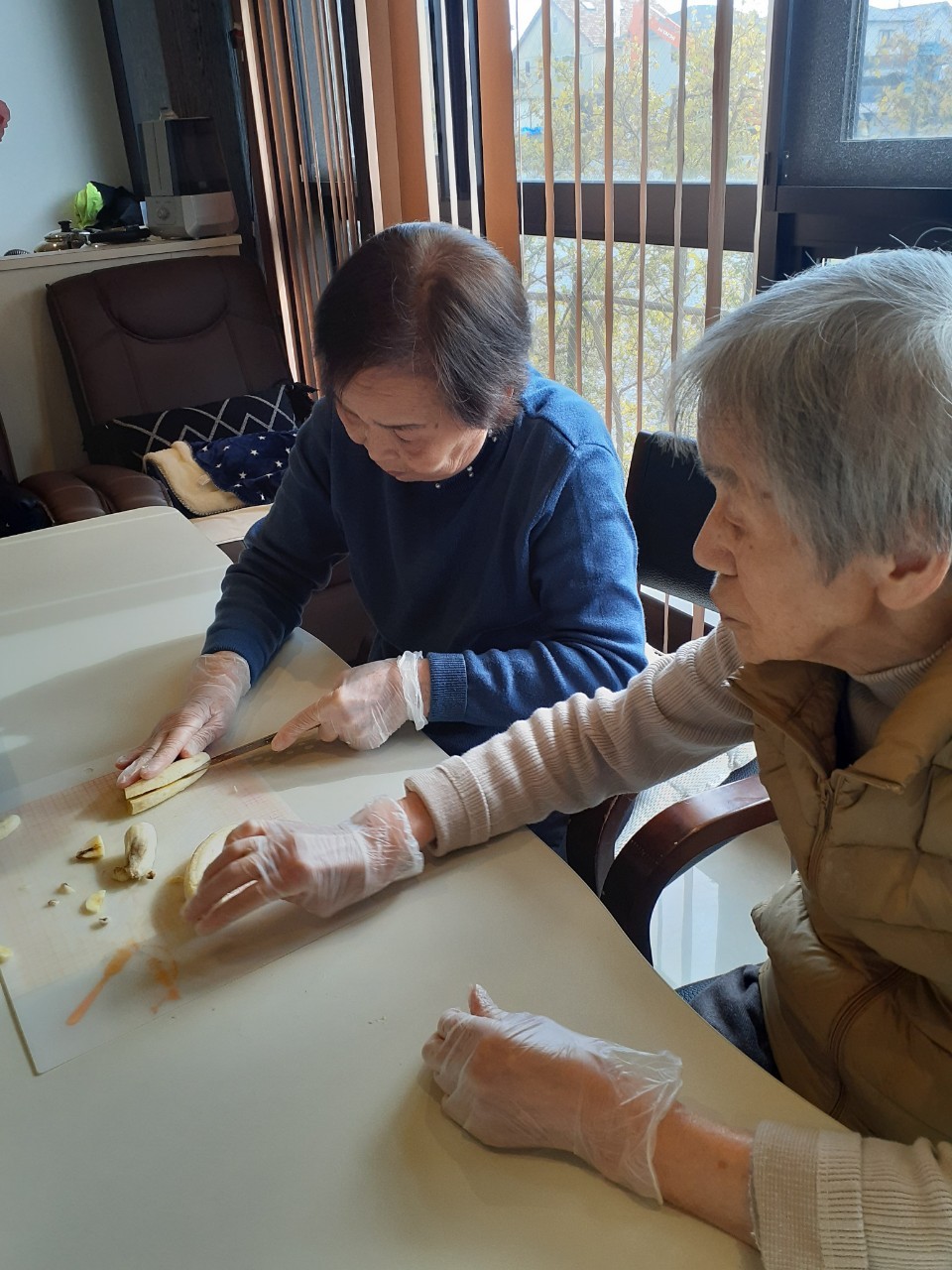 手作りおやつの日も二日目を迎えました。本日のお菓子は前日と変わらずチョコレートムースとバナナオムレットです。二日目となると利用者さまもスタッフも慣れて手際が良く、次はあれするんやろ??って聞いてくださり昨日よりも機能向上訓練の成果が出ているように感じます。おいしいお菓子と最高の笑顔ですごせた1日になりました(*´з`)
