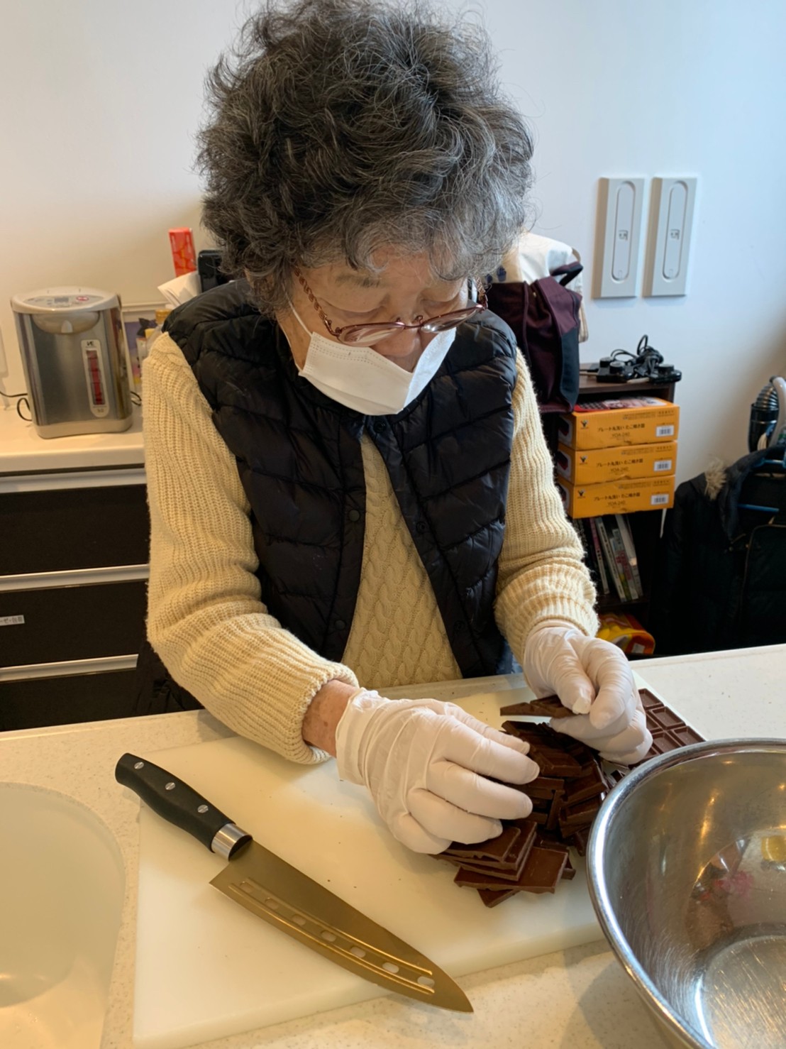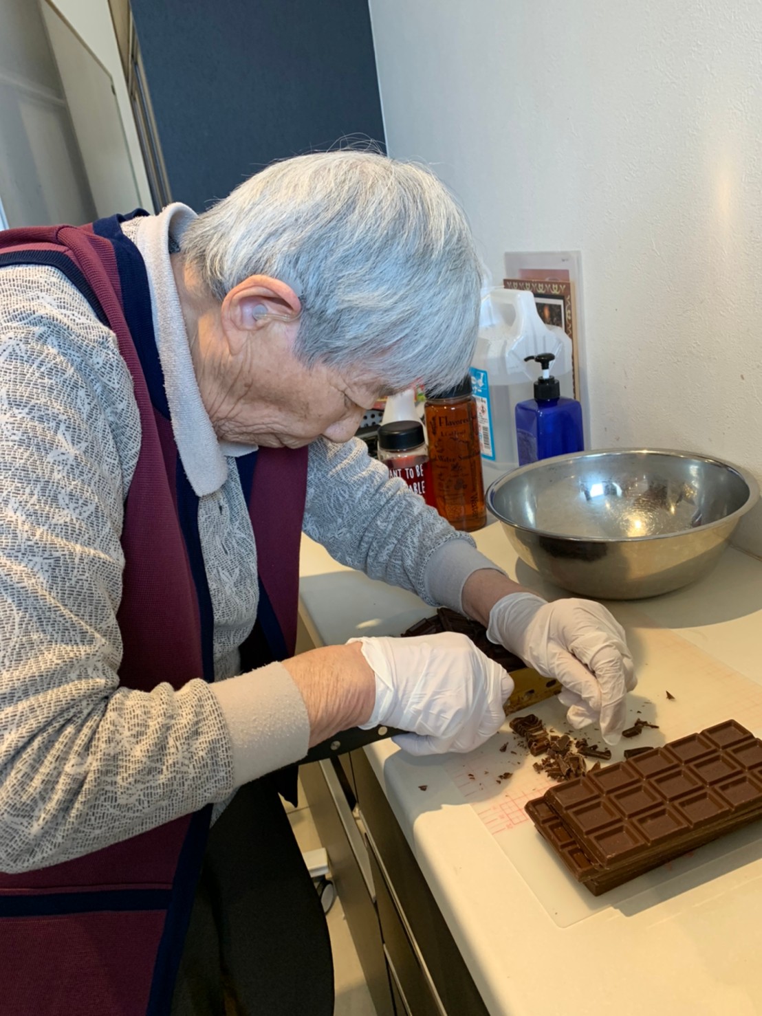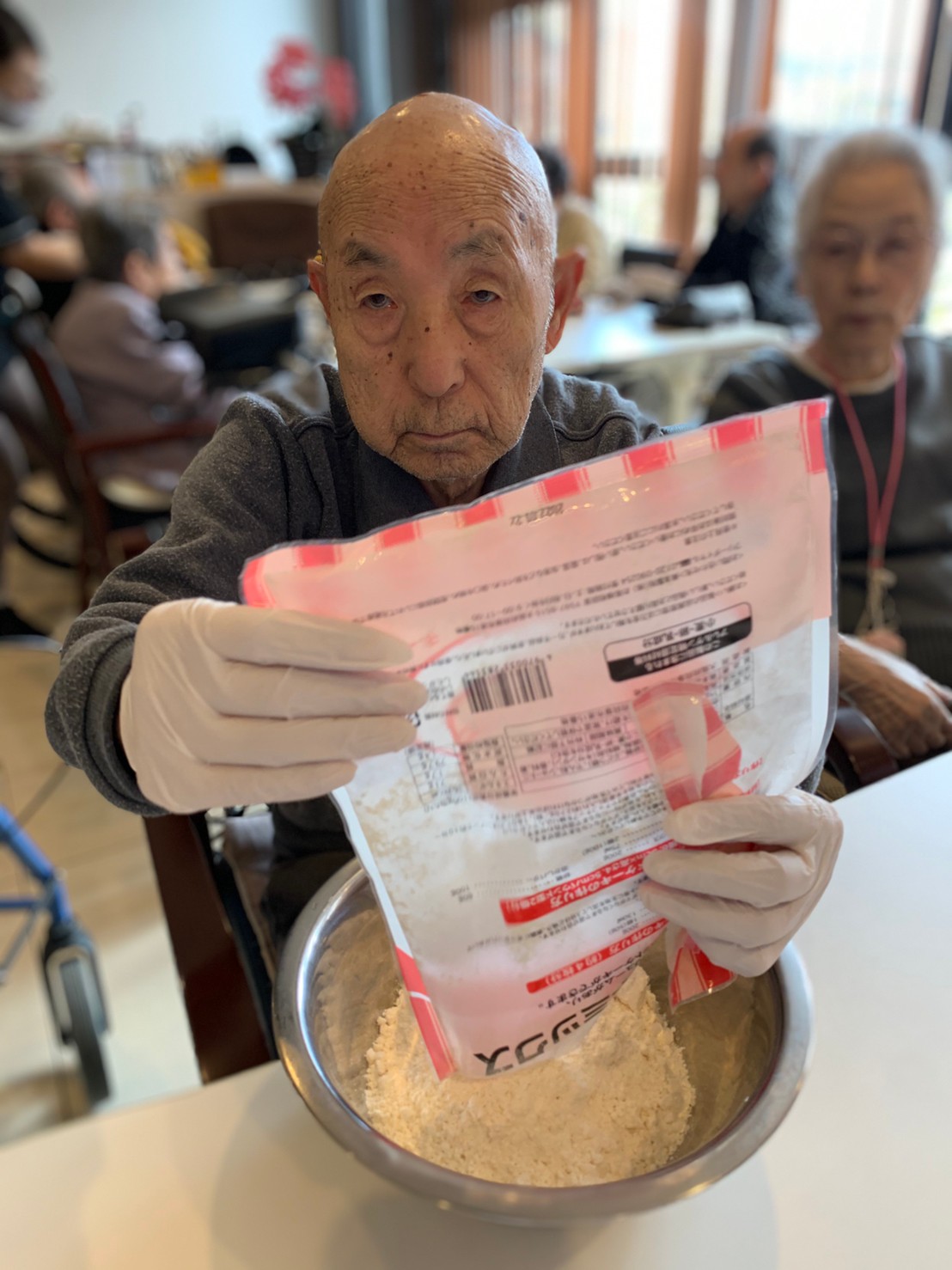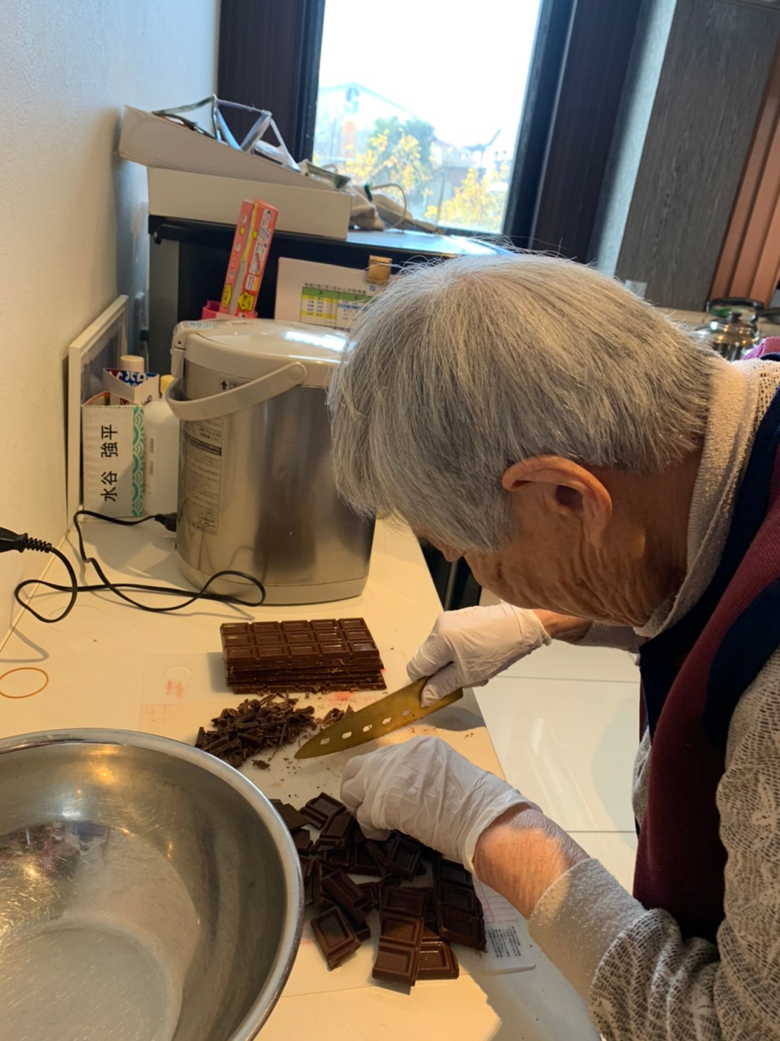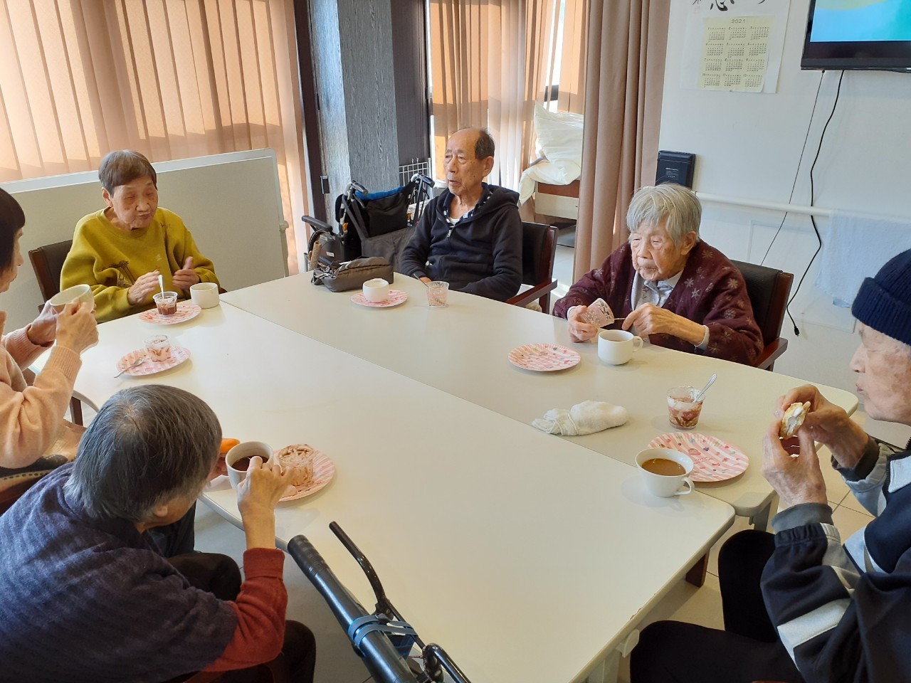今日から2日に分けて手作りおやつの日を開催します。月に1回のレクリエーションとして利用者さまにお菓子を作っていただき、お茶会をしながらお召し上がりになられます。2月のお菓子はバレンタインデーにちなんでチョコレートムースとバナナオムレットです。