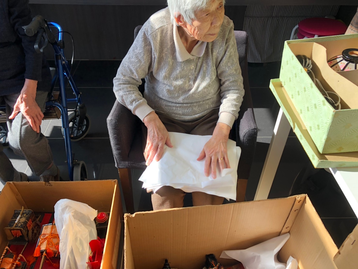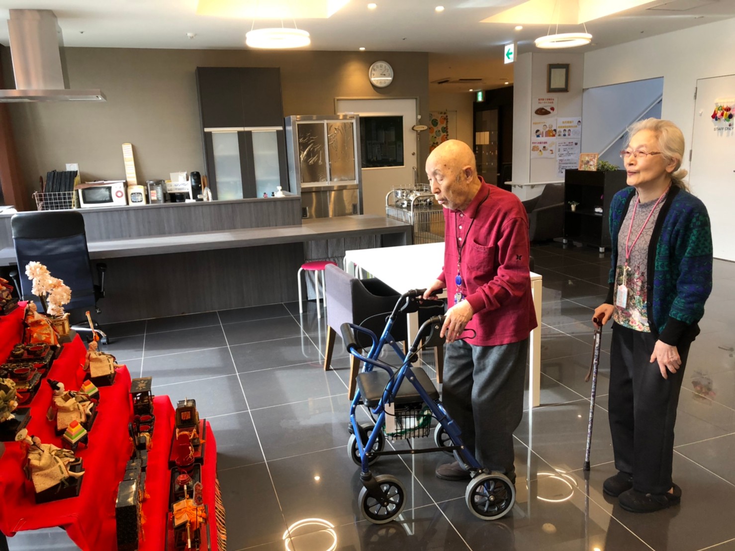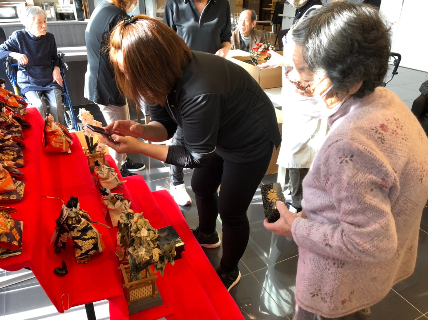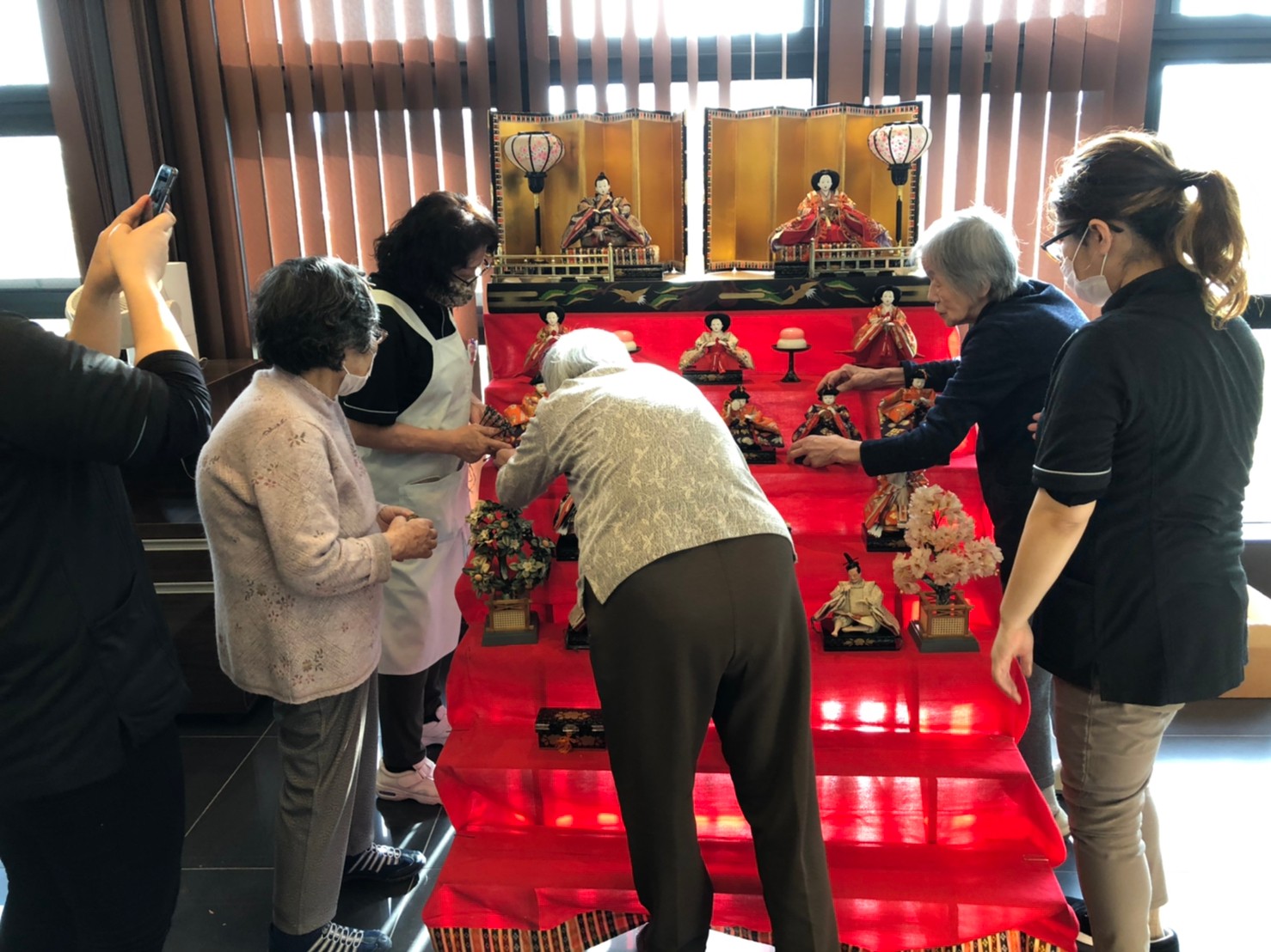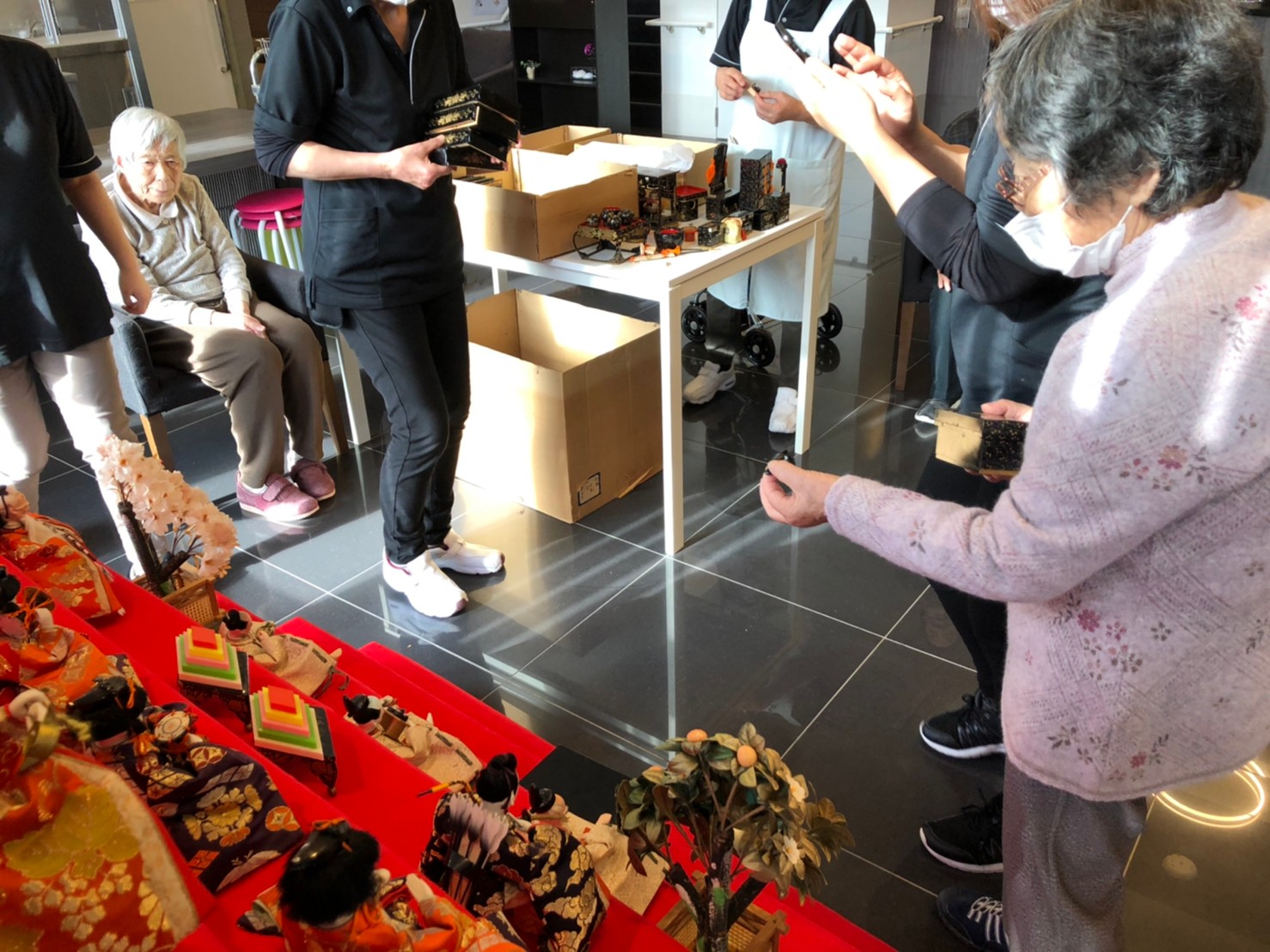 節分祭の興奮も冷めやらぬうちに次のイベントがやってきます。3月は桃の節句「ひな祭り」です。利用者さまがおひなさまの飾り付けをしてくださいました。私も小さい頃はひな祭りを過ぎてからお雛様を片付けると嫁に行き遅れるなんて祖母に言われ3月3日の夜遅くに慌てて片付けたものですが。それでもまだ独身なのは片付けが遅かったんでしょうか( ;∀;)。。(笑)