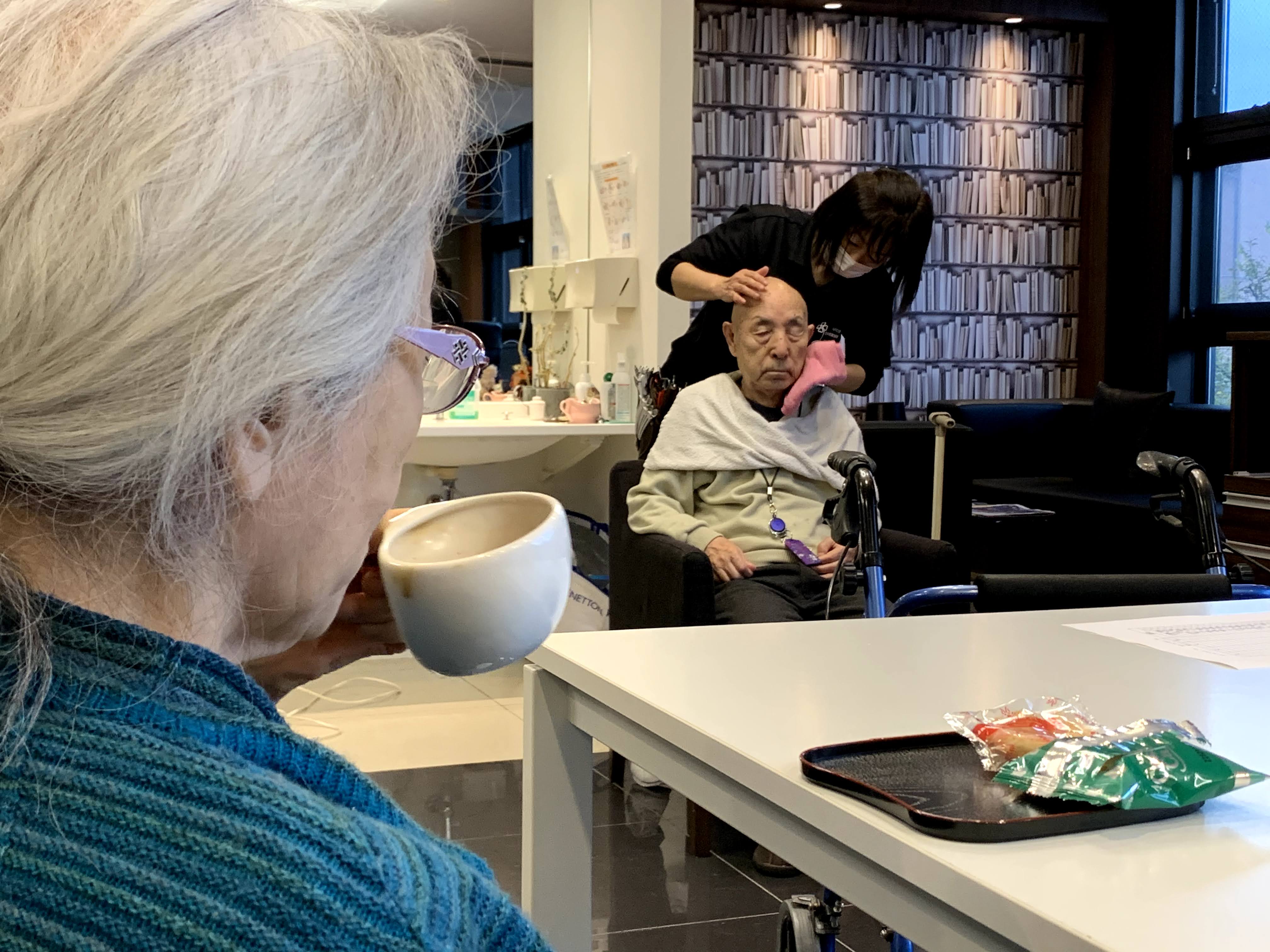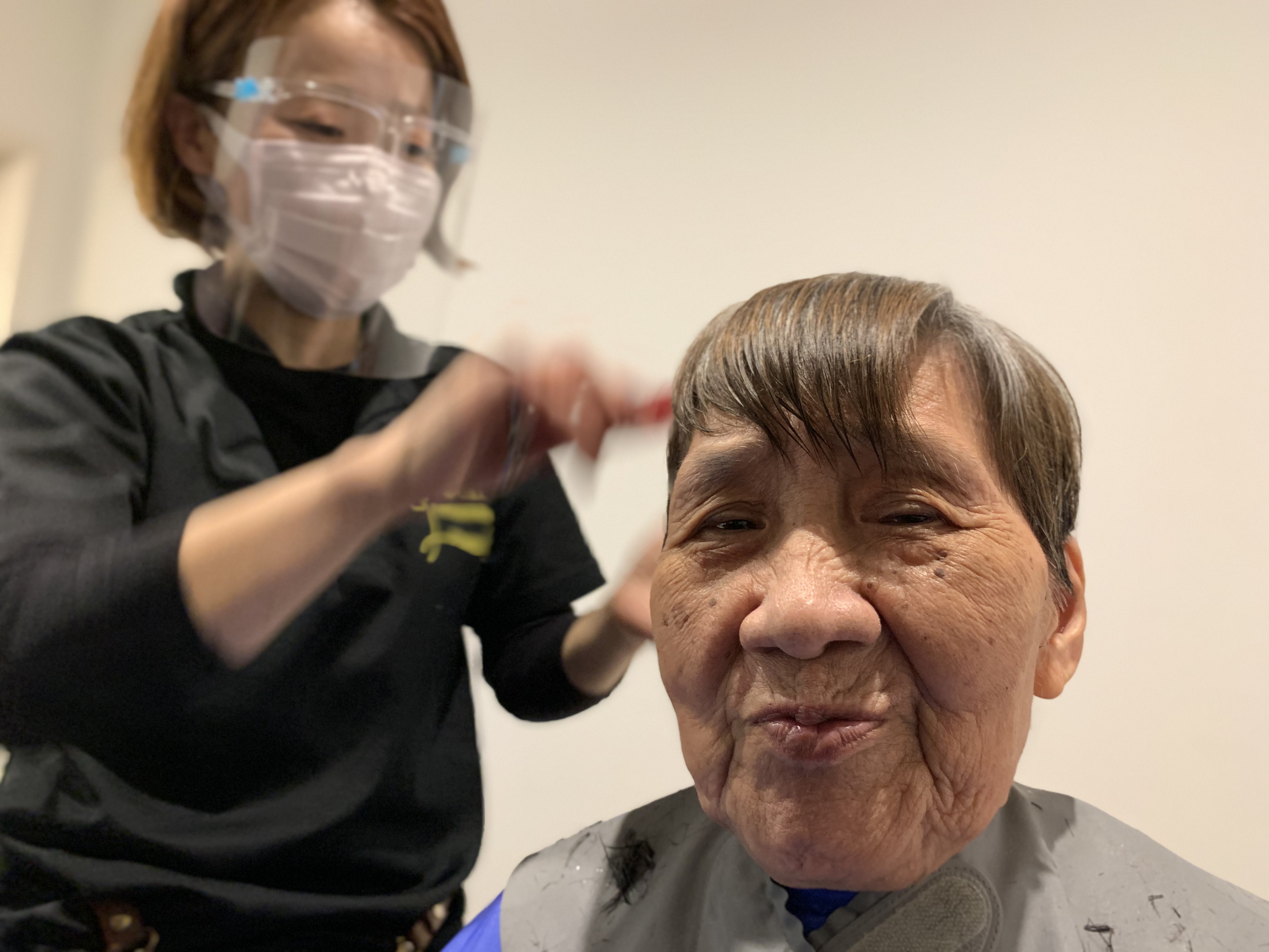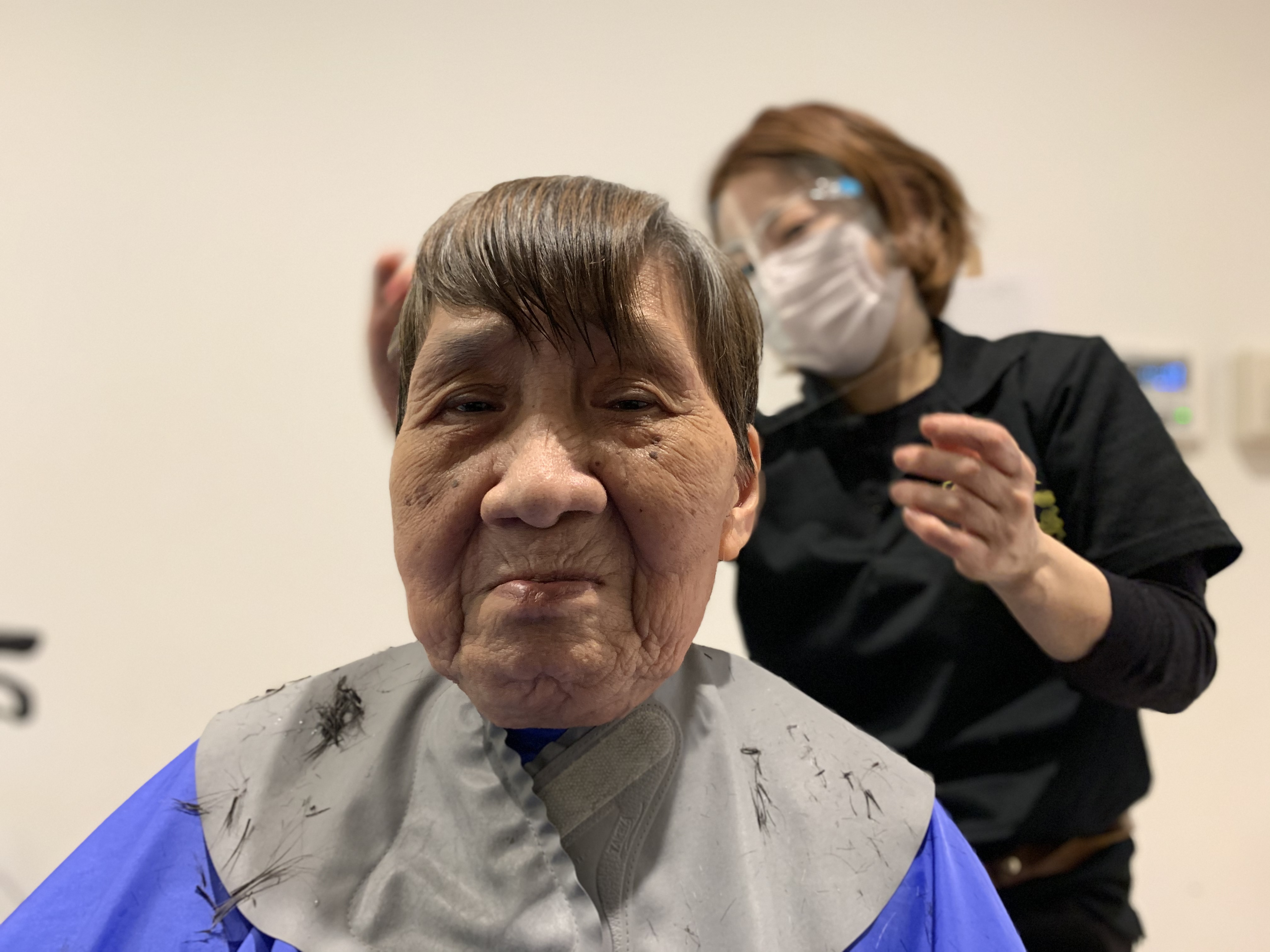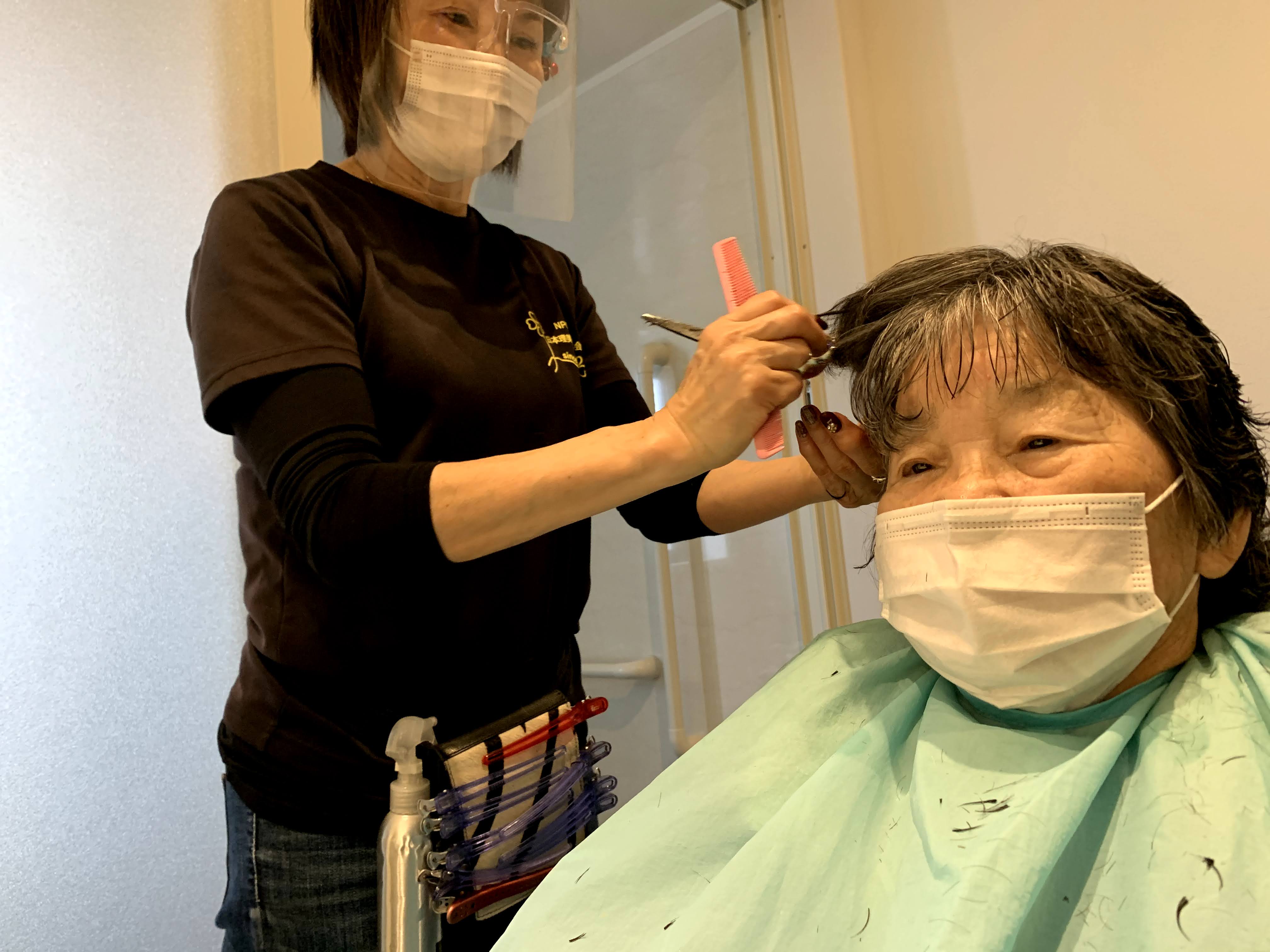本日は日本理美容福祉協会さんにお越しいただき、利用者さまの髪の毛を切っていただきました。ほとんどの皆さんが今年初の散髪で、カラーやパーマの方もおられおしゃれに変身されました。