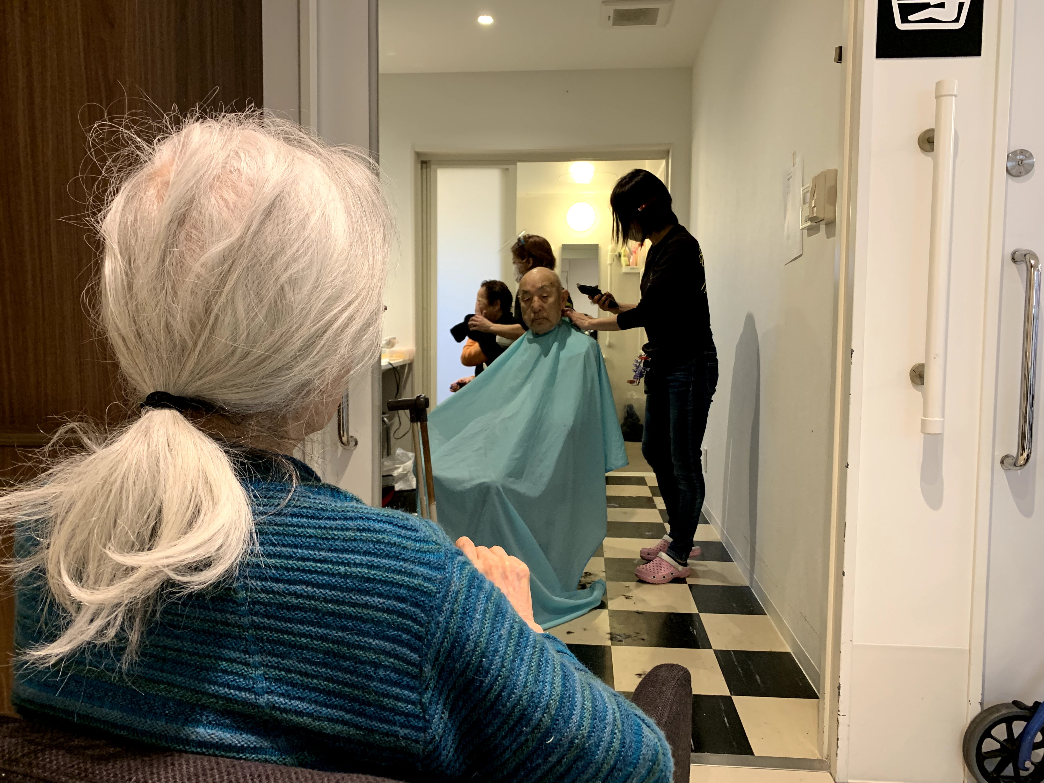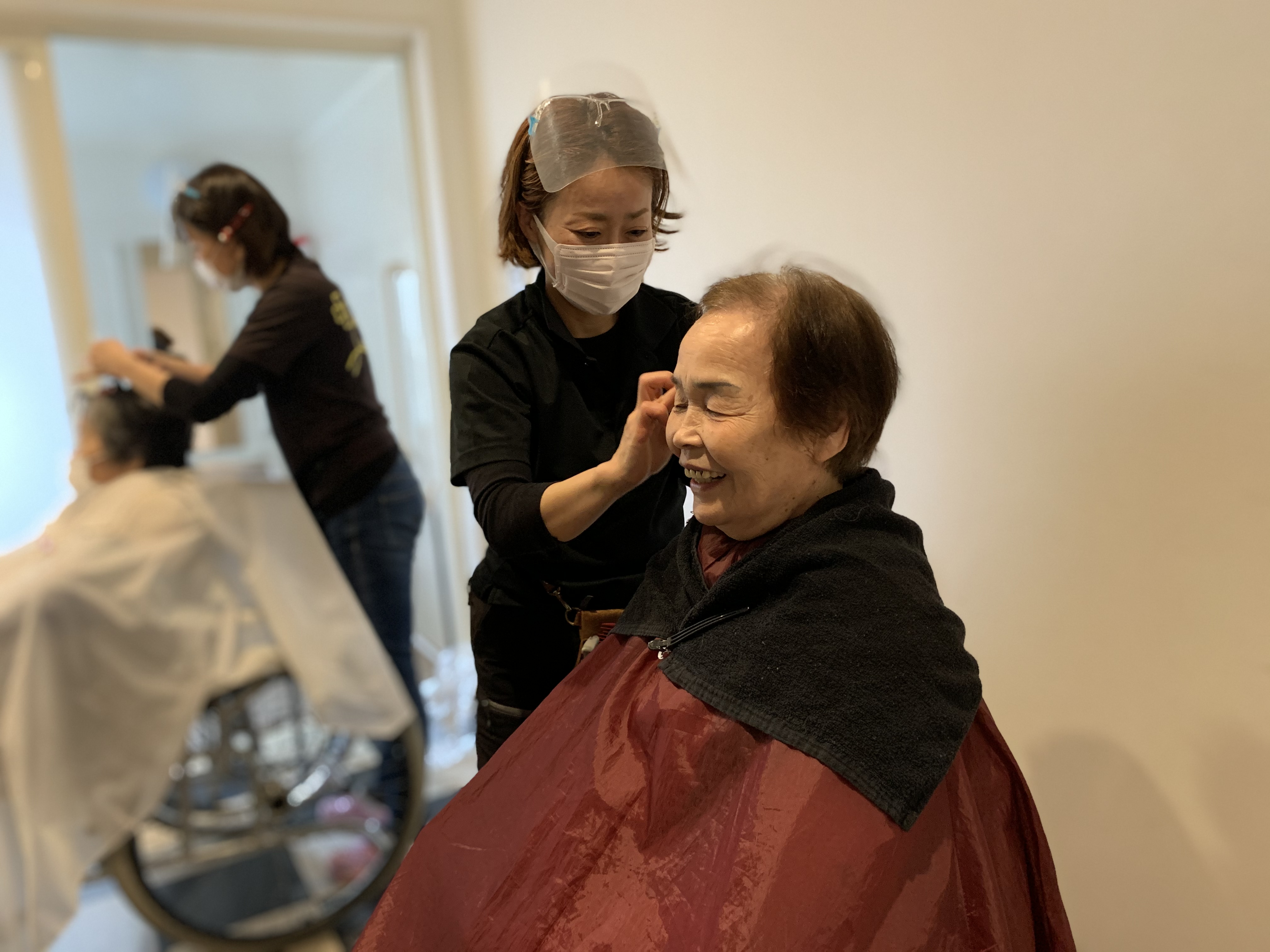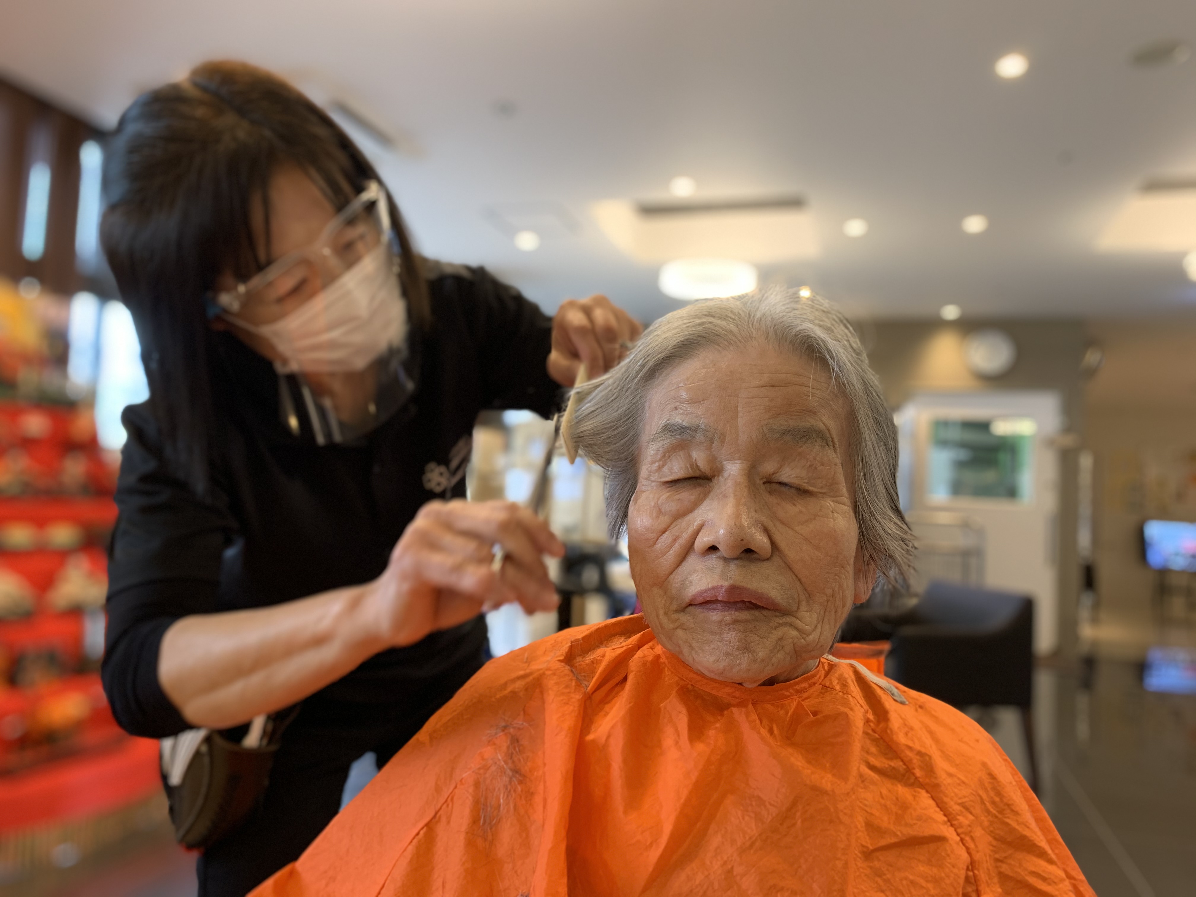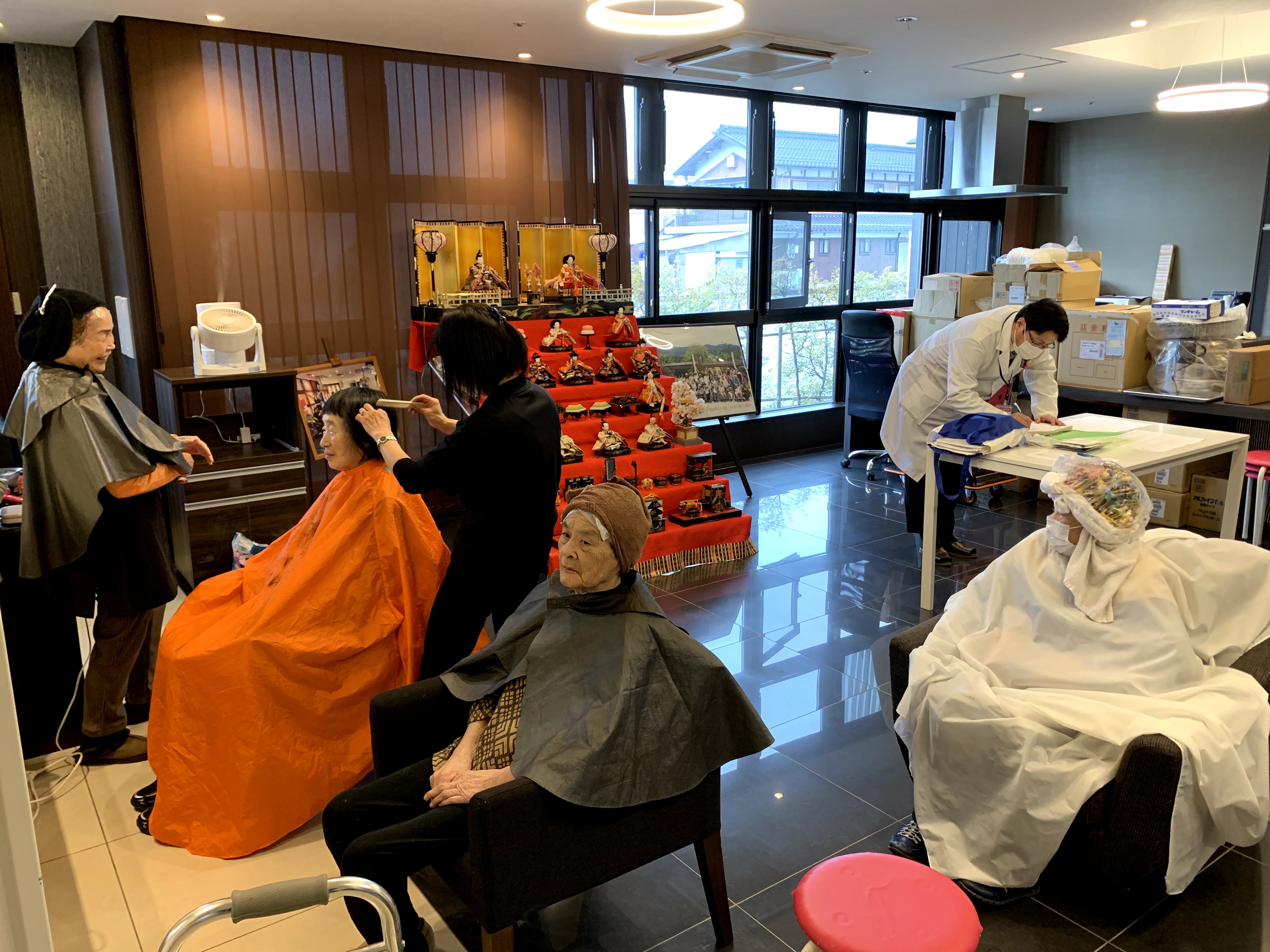本日は日本理美容福祉協会さんにお越しいただき、利用者さまの髪の毛を切っていただきました。ほとんどの皆さんが今年初の散髪で、カラーやパーマの方もおられおしゃれに変身されました。