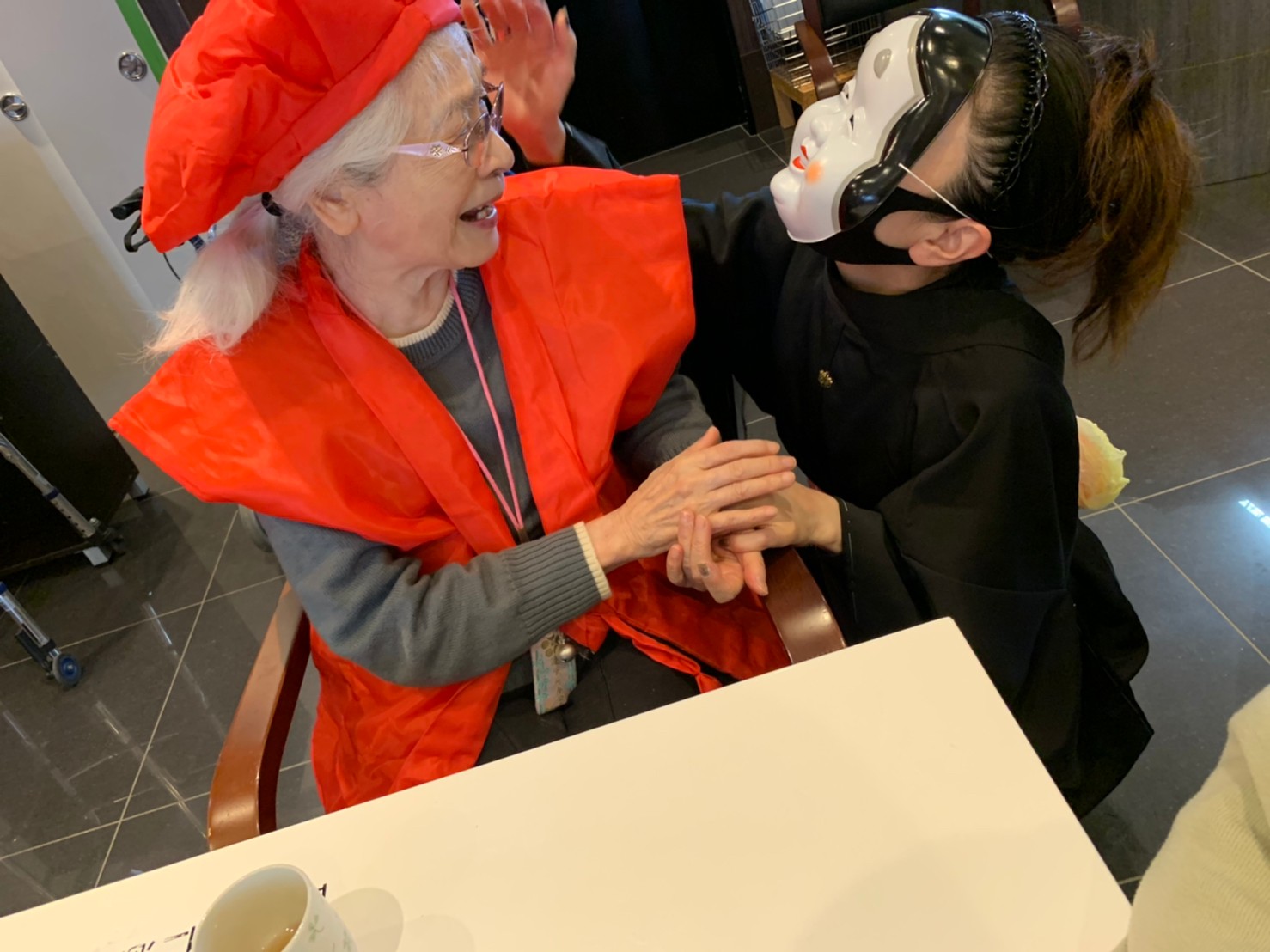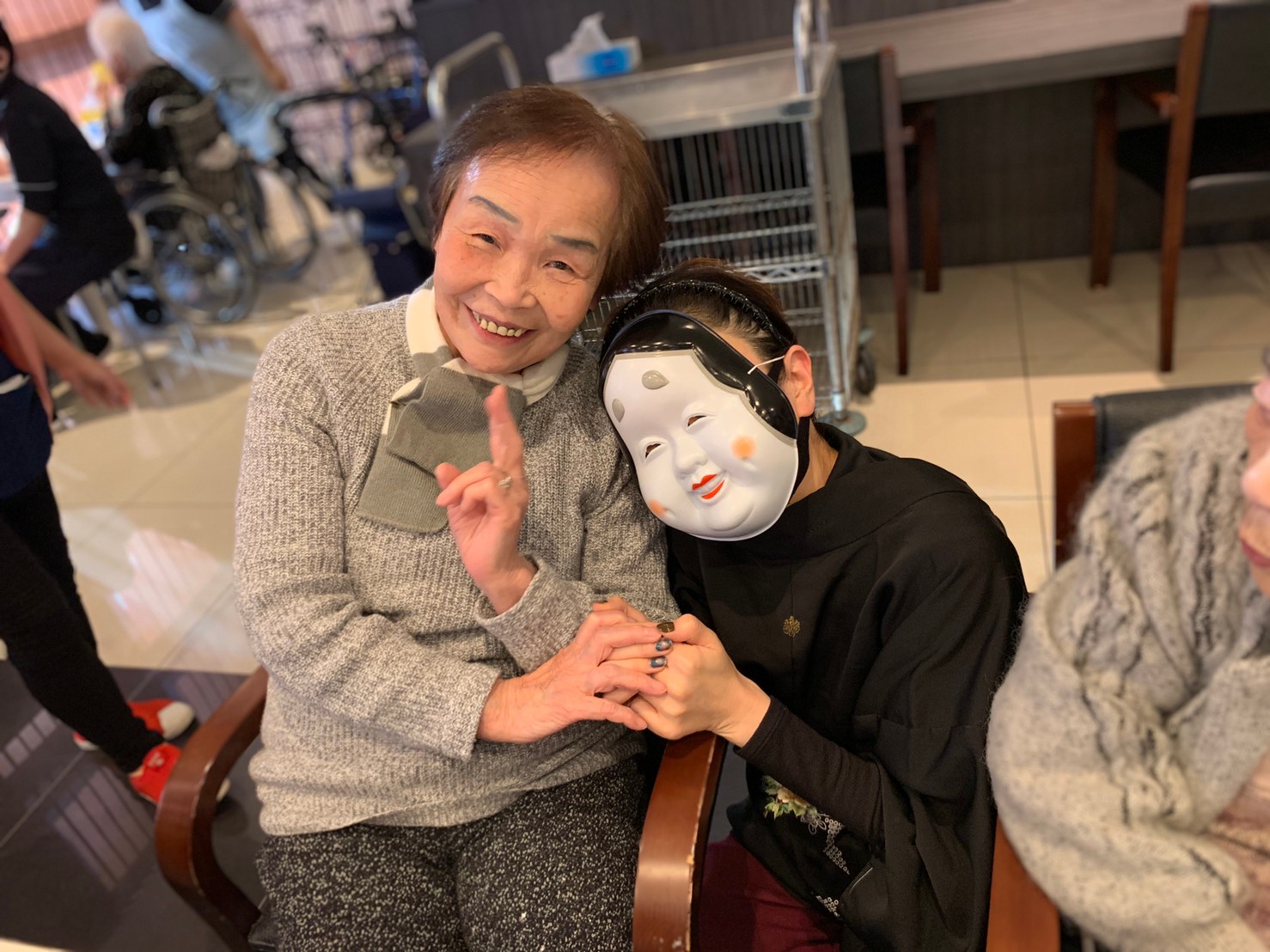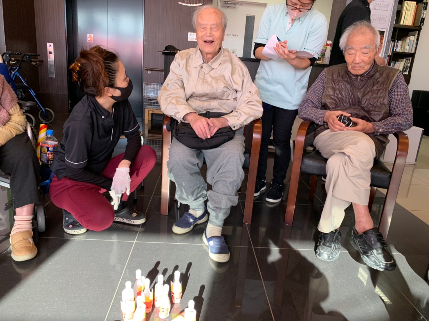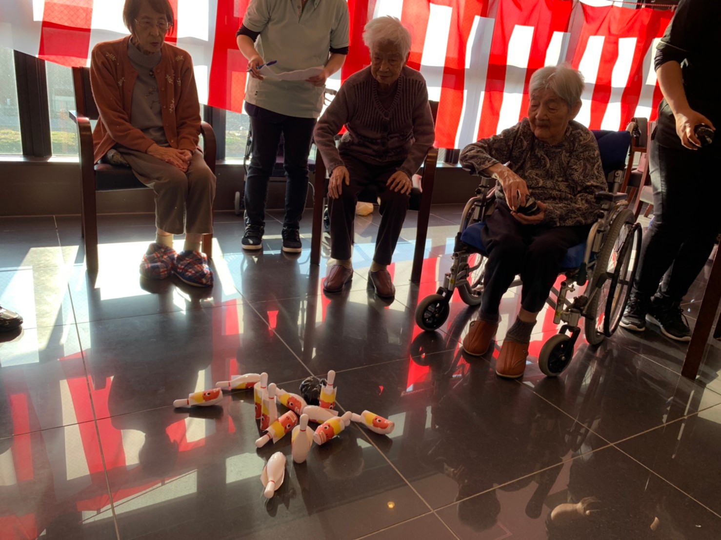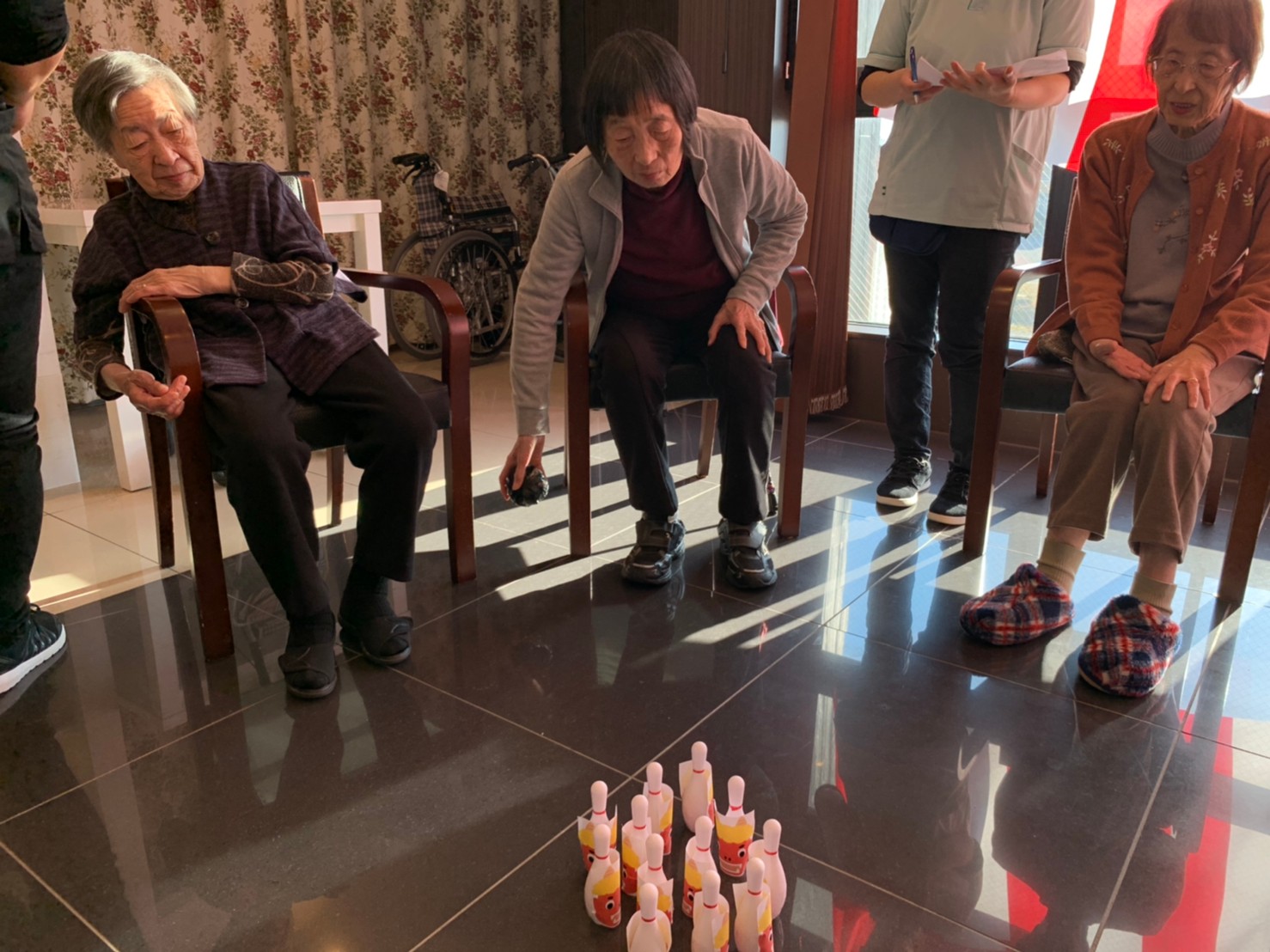 サニープレイス河瀬の月1イベントを本日開催いたしました。2月は節分祭として企画し、豆まきにちなんだミニ運動会を行いました。豆に見立てて玉入れやボーリングのピンを鬼に見立て倒しました。ちなみに玉入れに使った赤鬼のサニーちゃんと青鬼のプレイスくんは利用者さまとスタッフの共同制作です。そのあとは恒例の鬼退治です。今年から衣装も新調されたスタッフ扮する鬼に利用者さまに退治していただきました。悪さをする鬼がなぜか人気で利用者さまが握手をされました(笑)鬼の金棒は空気で膨らますビニール製ですのでご安心ください。最後はこのイベント大トリの福娘の登場です。社内選考会を何度もかさね、名誉ある今年の福娘に選ばれたスタッフが利用者さまとお一人ずつお話をしながら記念撮影をいたしました。ボクも来年の福娘選考会に応募すると言ったら、スタッフ全員から来年も鬼やで!と止められたのはここだけのお話です(‘Д’)