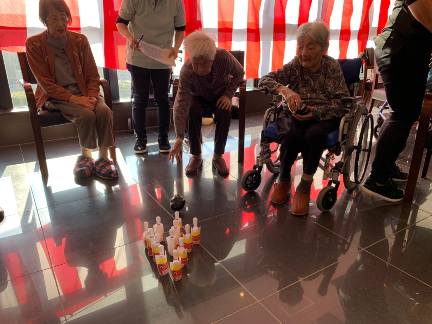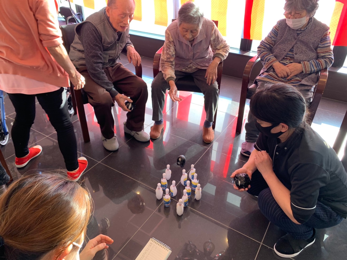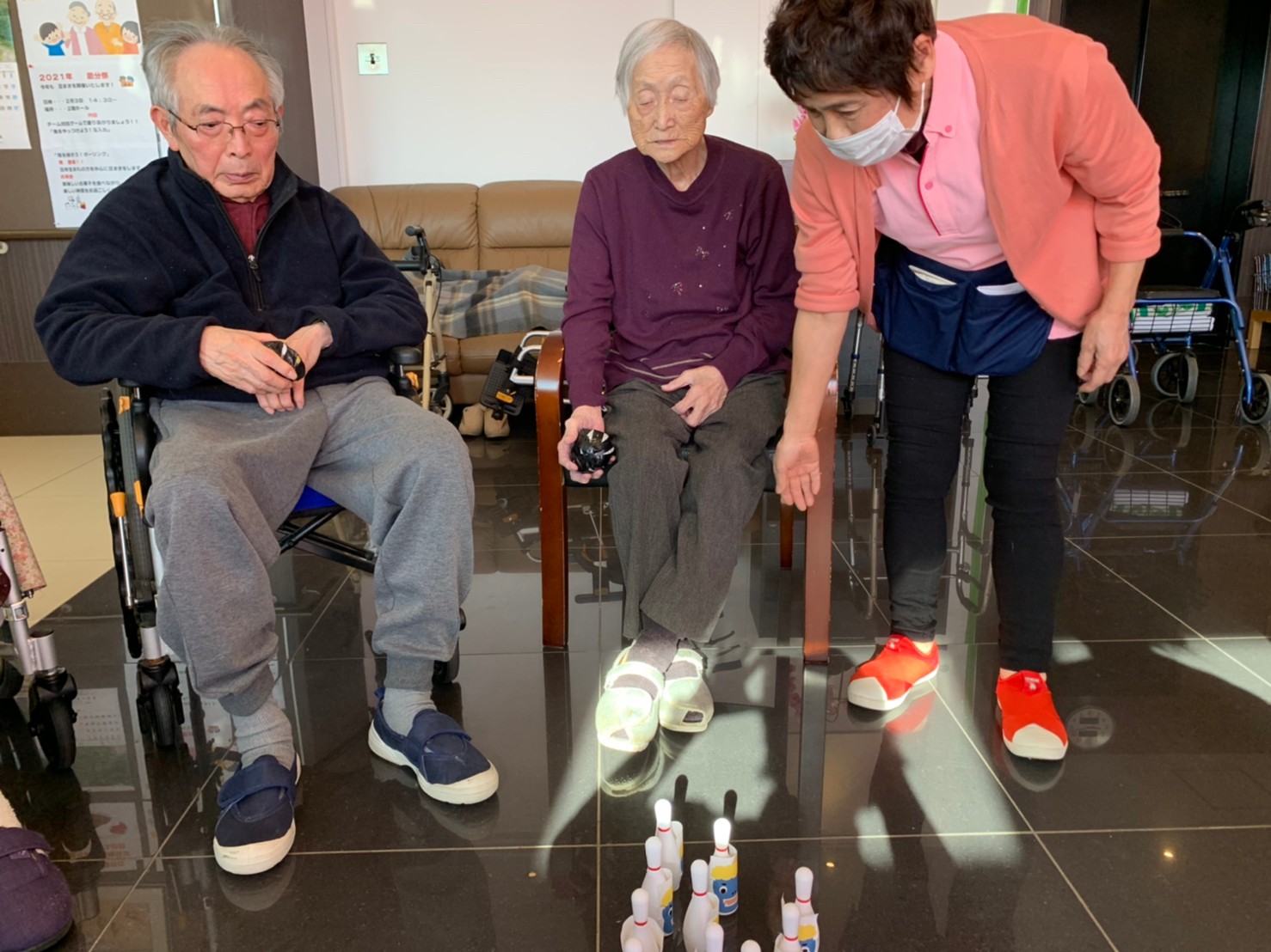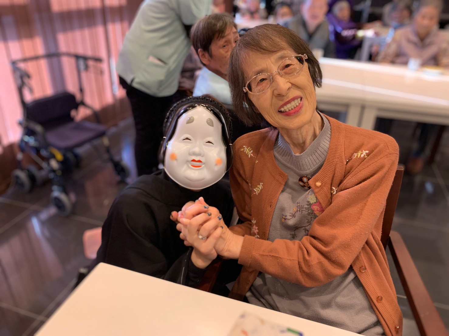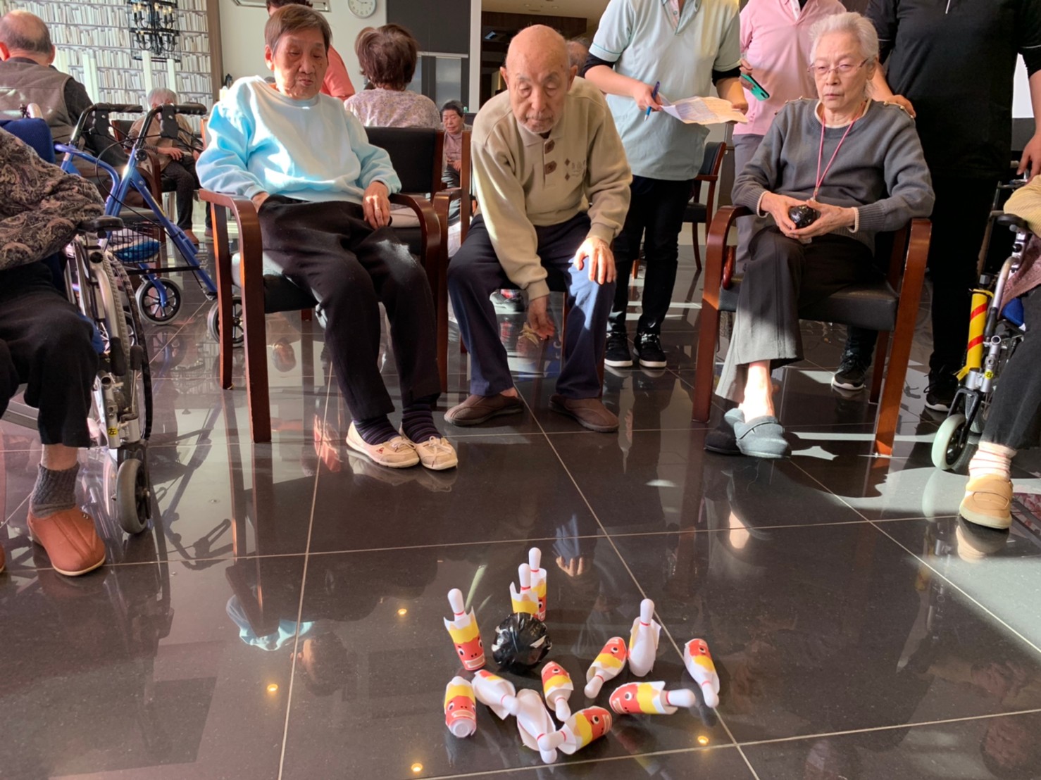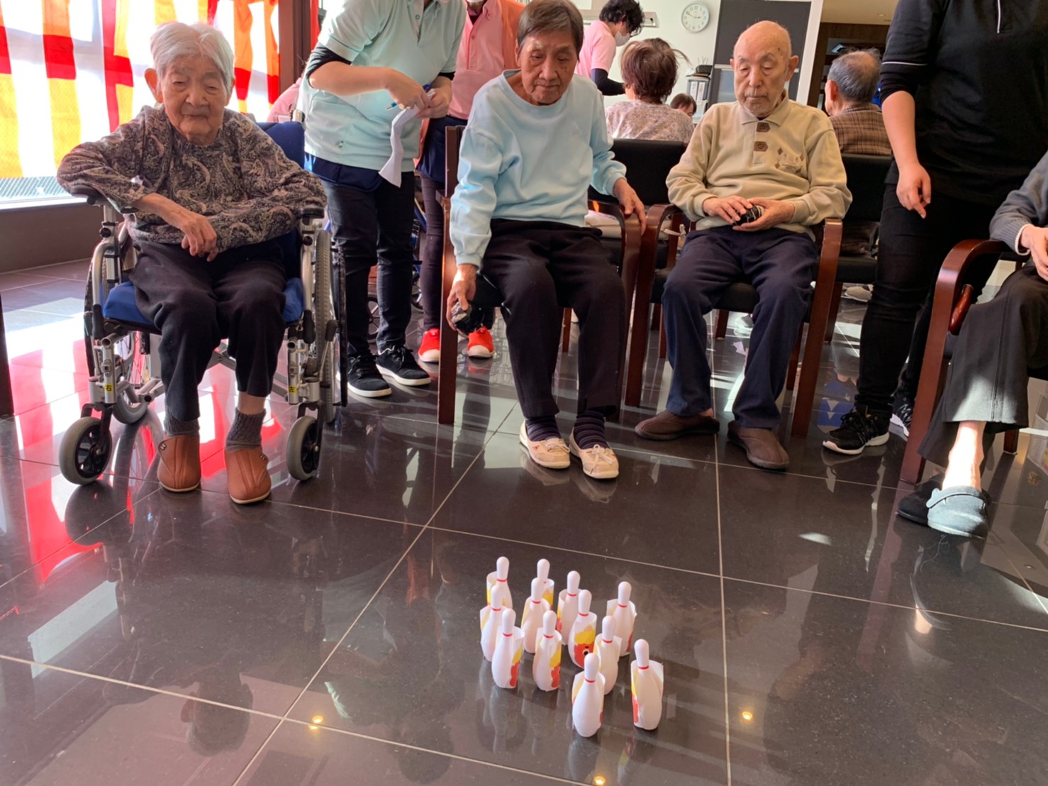 サニープレイス河瀬の月1イベントを本日開催いたしました。2月は節分祭として企画し、豆まきにちなんだミニ運動会を行いました。豆に見立てて玉入れやボーリングのピンを鬼に見立て倒しました。ちなみに玉入れに使った赤鬼のサニーちゃんと青鬼のプレイスくんは利用者さまとスタッフの共同制作です。そのあとは恒例の鬼退治です。今年から衣装も新調されたスタッフ扮する鬼に利用者さまに退治していただきました。悪さをする鬼がなぜか人気で利用者さまが握手をされました(笑)鬼の金棒は空気で膨らますビニール製ですのでご安心ください。最後はこのイベント大トリの福娘の登場です。社内選考会を何度もかさね、名誉ある今年の福娘に選ばれたスタッフが利用者さまとお一人ずつお話をしながら記念撮影をいたしました。ボクも来年の福娘選考会に応募すると言ったら、スタッフ全員から来年も鬼やで!と止められたのはここだけのお話です(‘Д’)