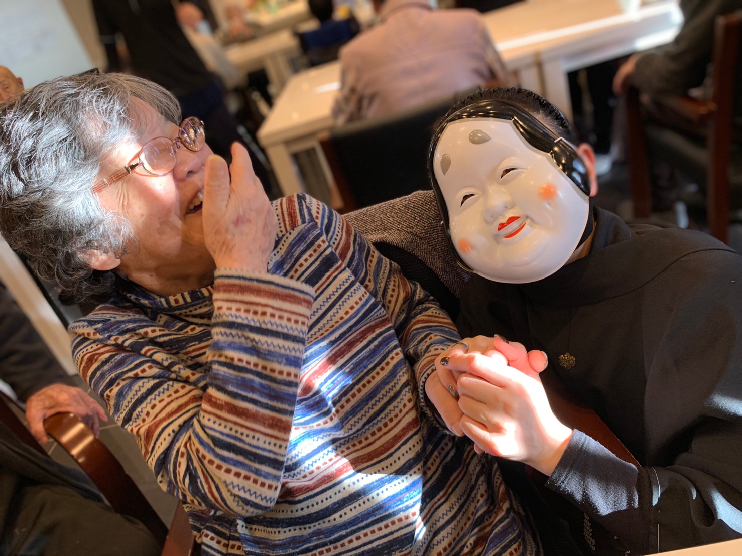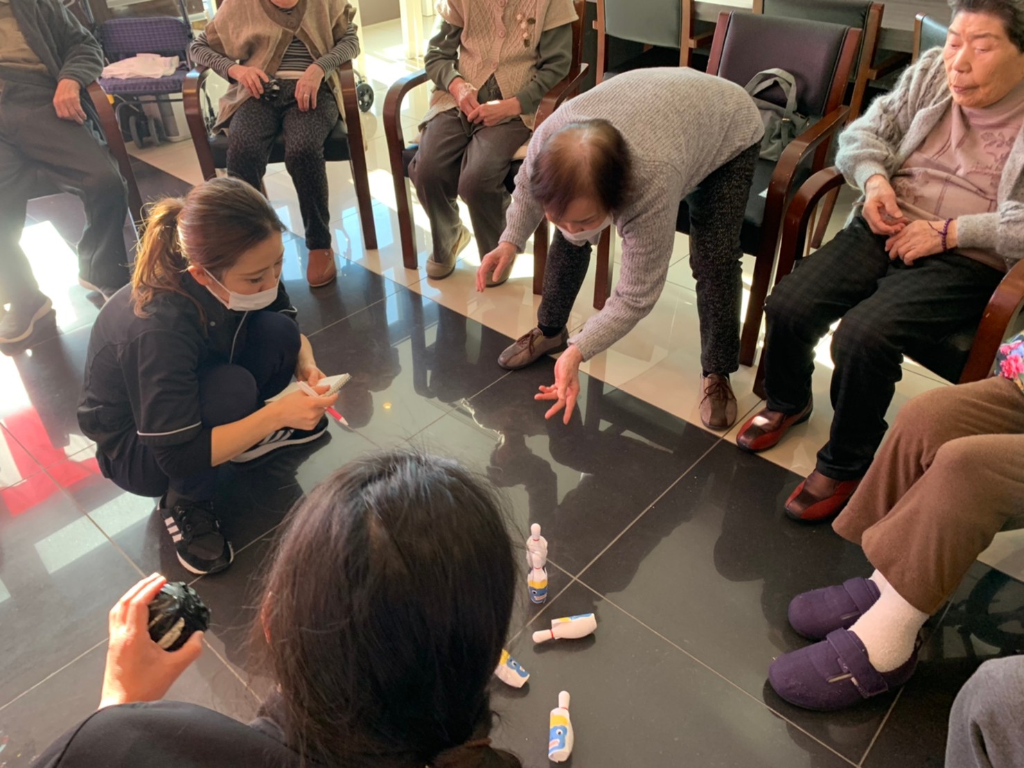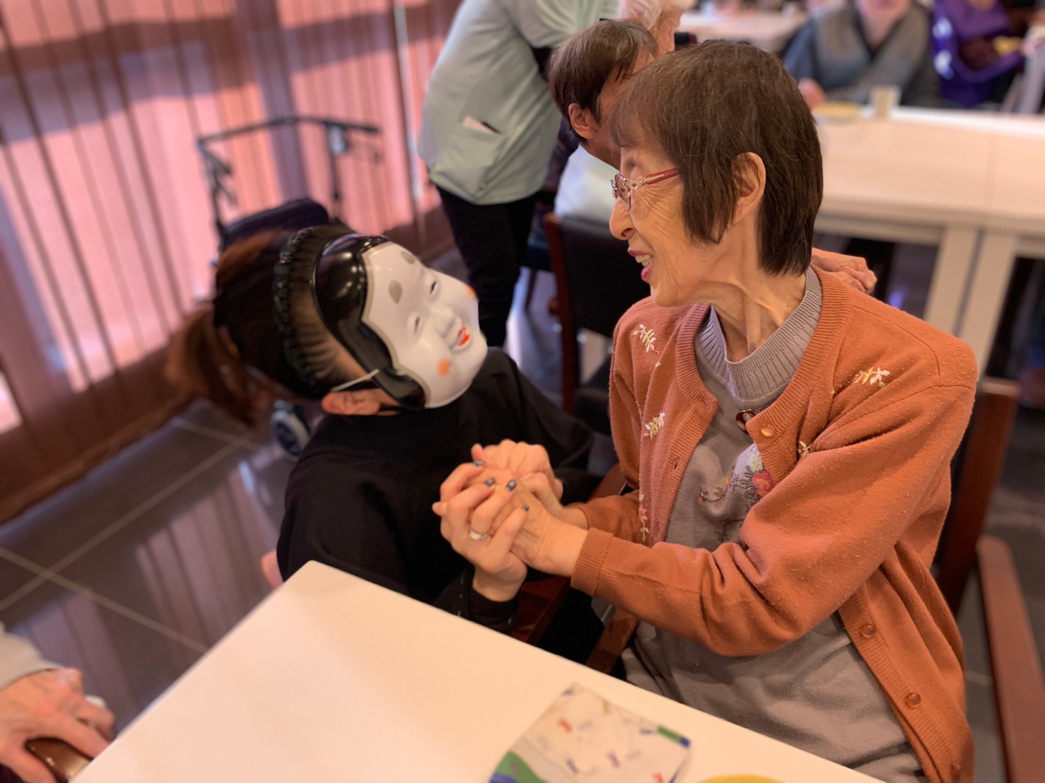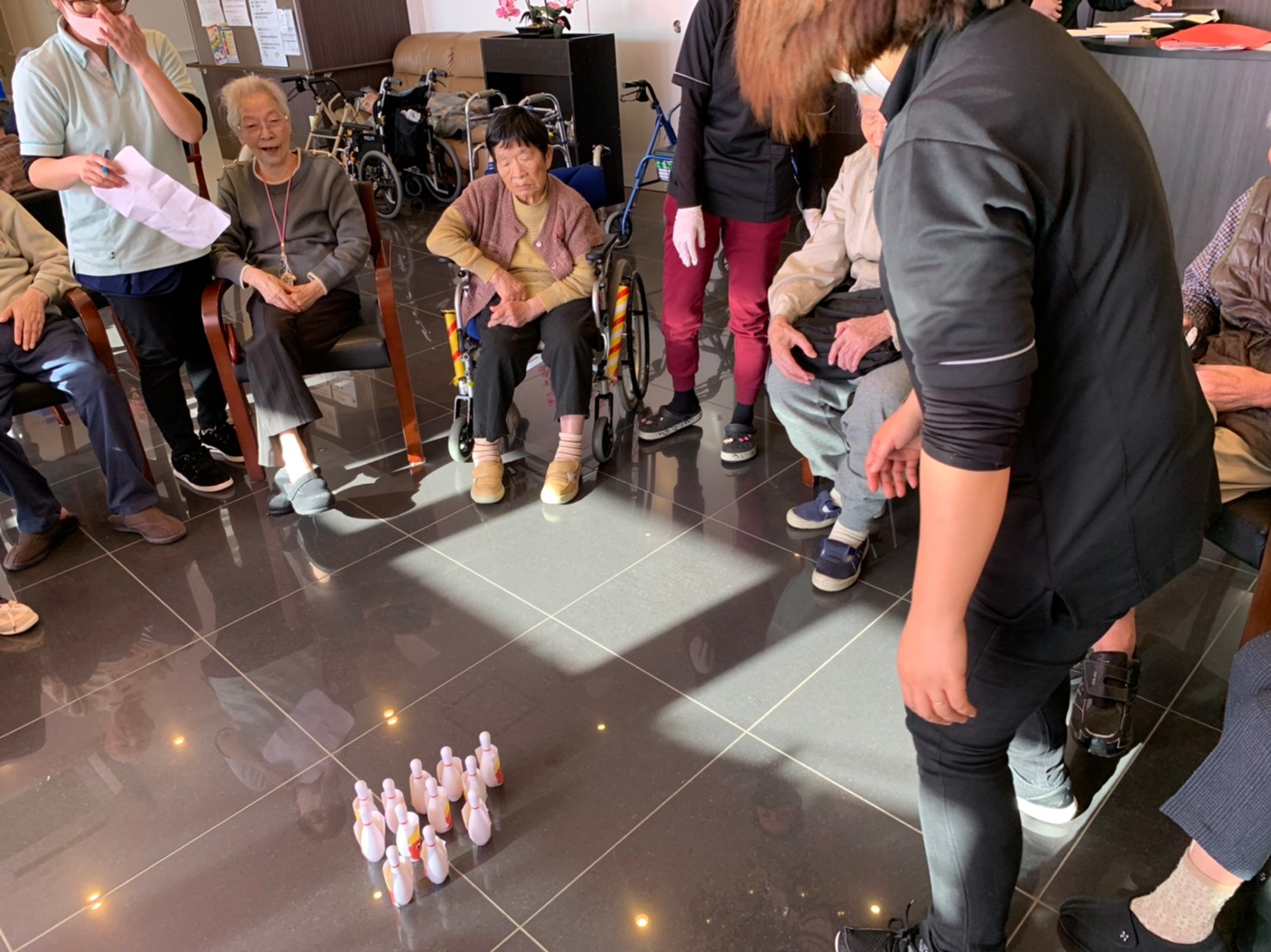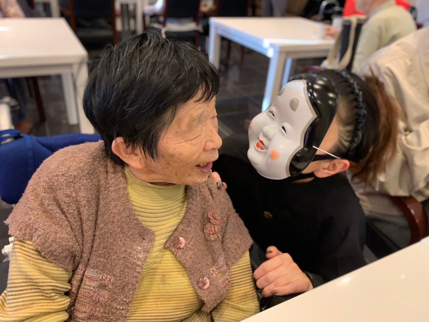 サニープレイス河瀬の月1イベントを本日開催いたしました。2月は節分祭として企画し、豆まきにちなんだミニ運動会を行いました。豆に見立てて玉入れやボーリングのピンを鬼に見立て倒しました。ちなみに玉入れに使った赤鬼のサニーちゃんと青鬼のプレイスくんは利用者さまとスタッフの共同制作です。そのあとは恒例の鬼退治です。今年から衣装も新調されたスタッフ扮する鬼に利用者さまに退治していただきました。悪さをする鬼がなぜか人気で利用者さまが握手をされました(笑)鬼の金棒は空気で膨らますビニール製ですのでご安心ください。最後はこのイベント大トリの福娘の登場です。社内選考会を何度もかさね、名誉ある今年の福娘に選ばれたスタッフが利用者さまとお一人ずつお話をしながら記念撮影をいたしました。ボクも来年の福娘選考会に応募すると言ったら、スタッフ全員から来年も鬼やで!と止められたのはここだけのお話です(‘Д’)