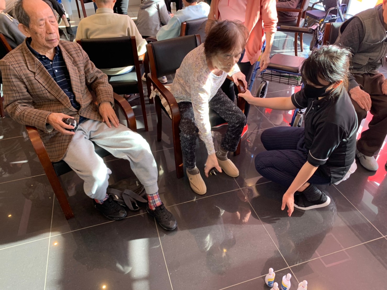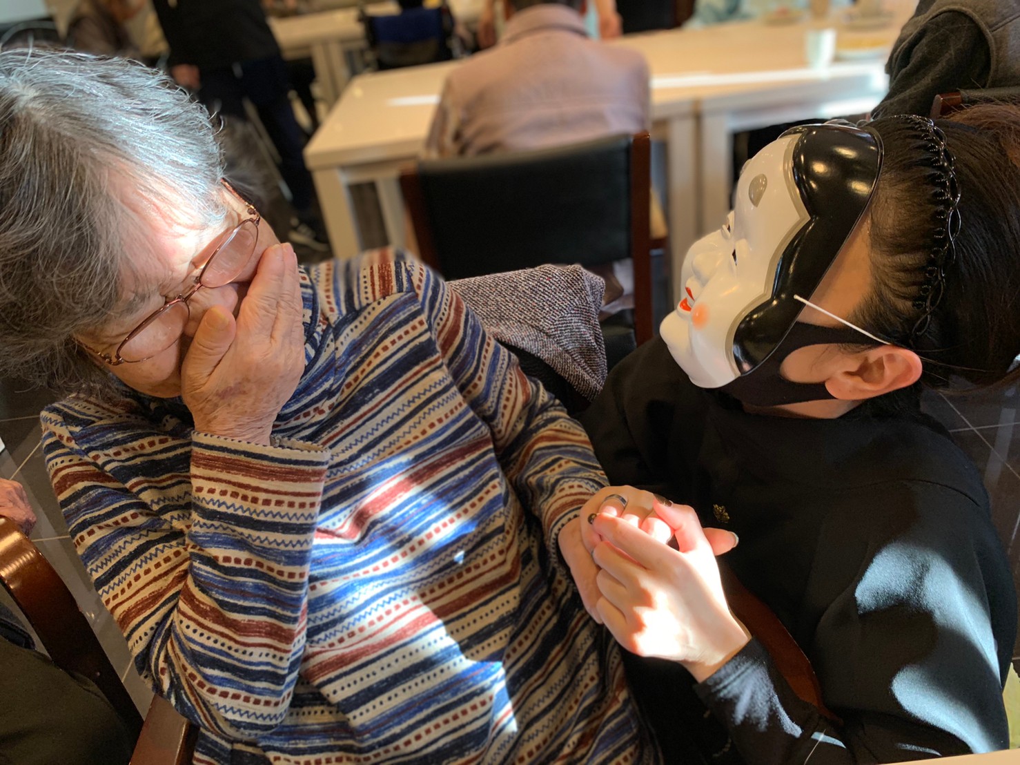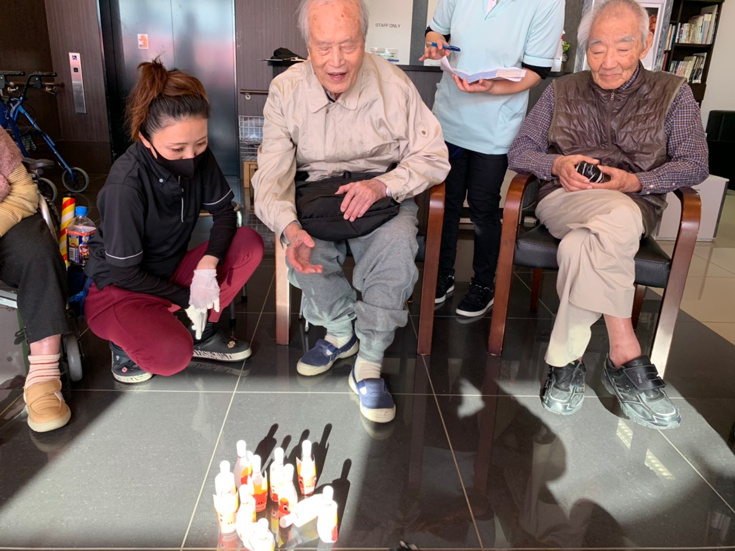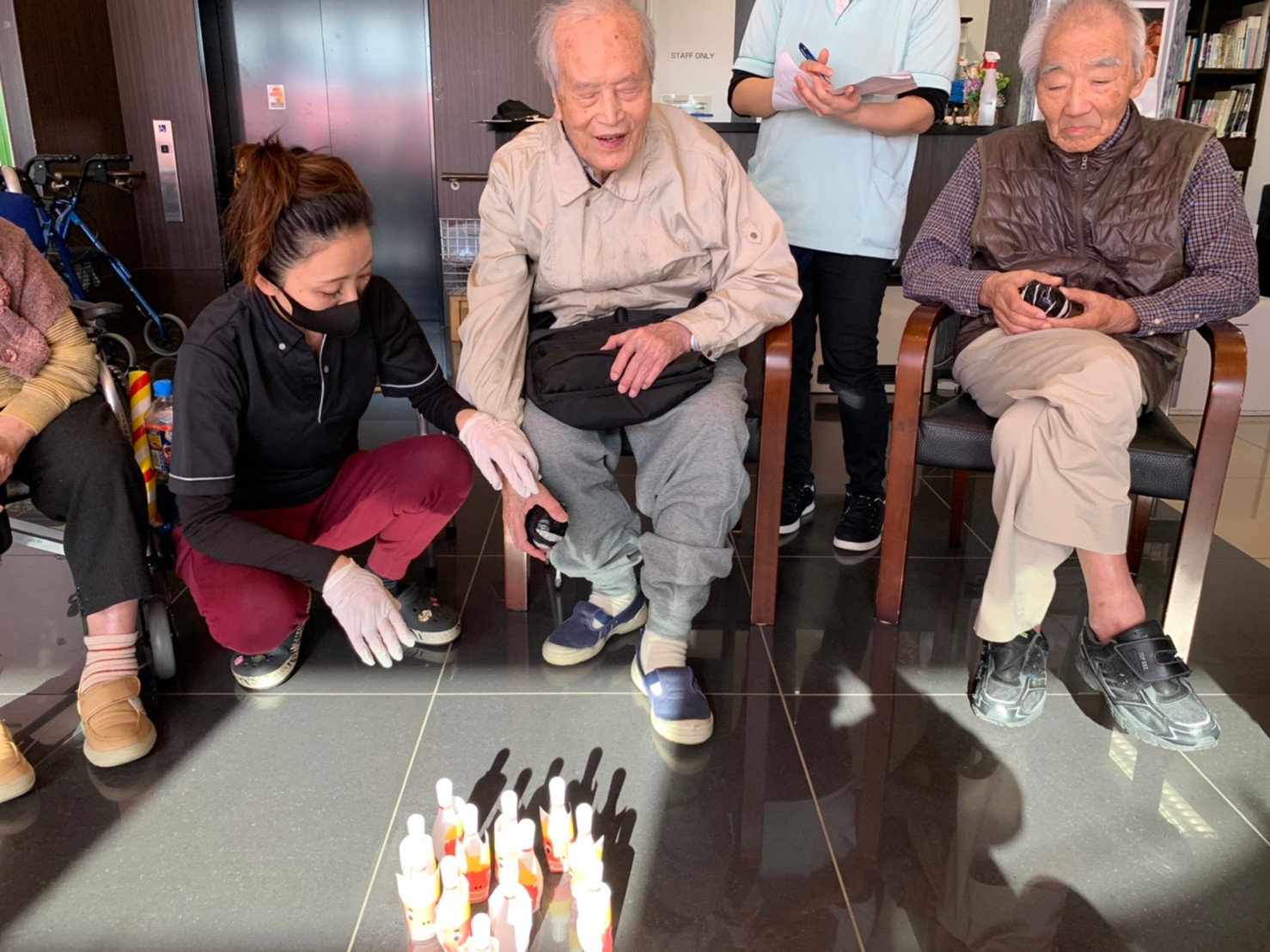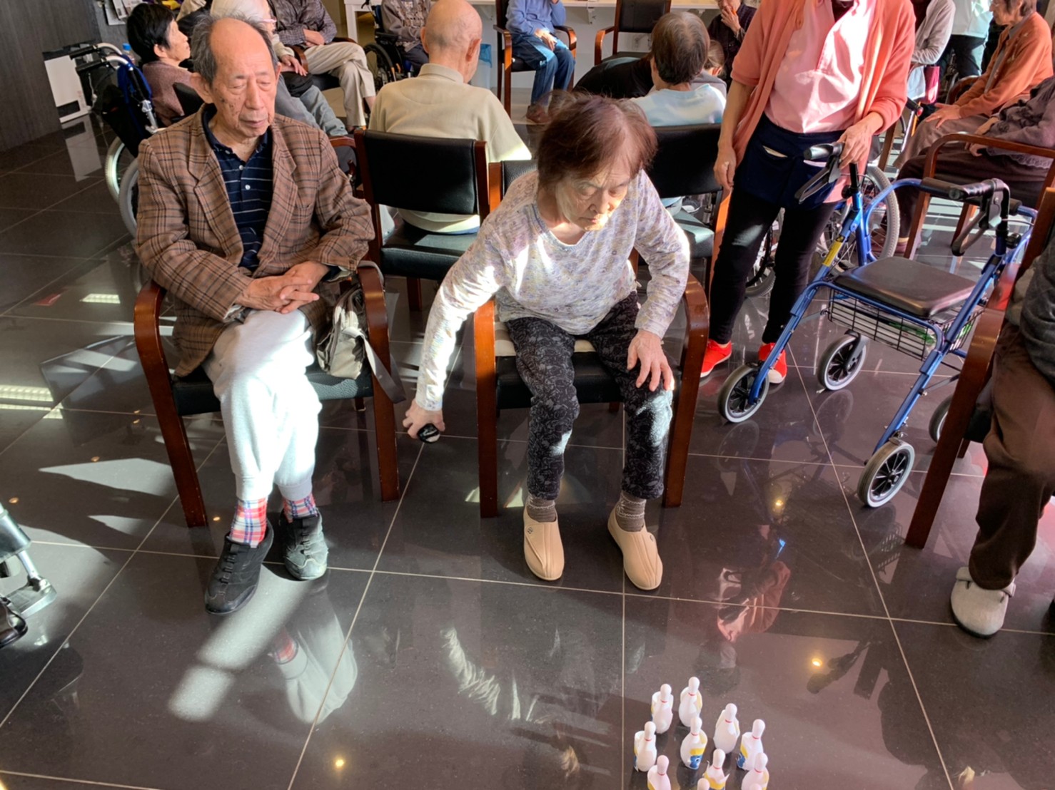 サニープレイス河瀬の月1イベントを本日開催いたしました。2月は節分祭として企画し、豆まきにちなんだミニ運動会を行いました。豆に見立てて玉入れやボーリングのピンを鬼に見立て倒しました。ちなみに玉入れに使った赤鬼のサニーちゃんと青鬼のプレイスくんは利用者さまとスタッフの共同制作です。そのあとは恒例の鬼退治です。今年から衣装も新調されたスタッフ扮する鬼に利用者さまに退治していただきました。悪さをする鬼がなぜか人気で利用者さまが握手をされました(笑)鬼の金棒は空気で膨らますビニール製ですのでご安心ください。最後はこのイベント大トリの福娘の登場です。社内選考会を何度もかさね、名誉ある今年の福娘に選ばれたスタッフが利用者さまとお一人ずつお話をしながら記念撮影をいたしました。ボクも来年の福娘選考会に応募すると言ったら、スタッフ全員から来年も鬼やで!と止められたのはここだけのお話です(‘Д’)