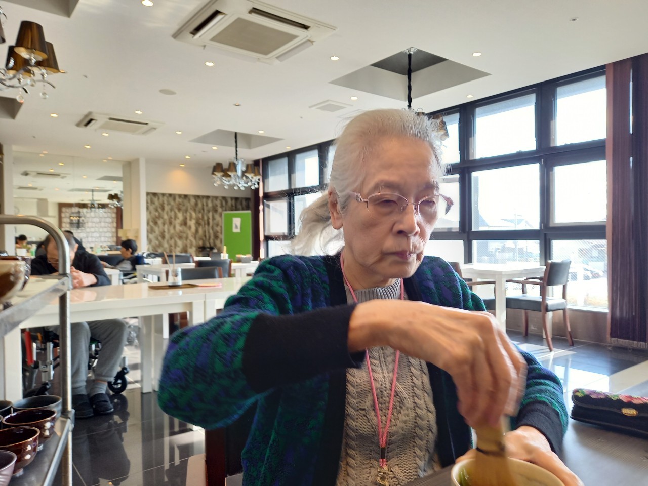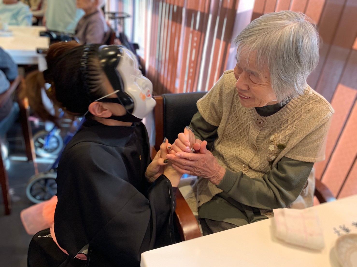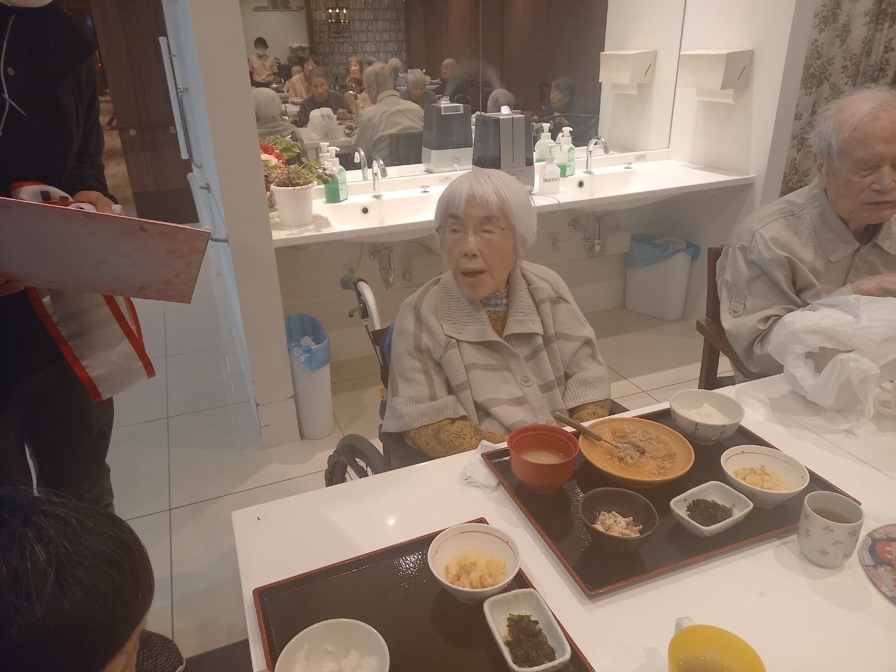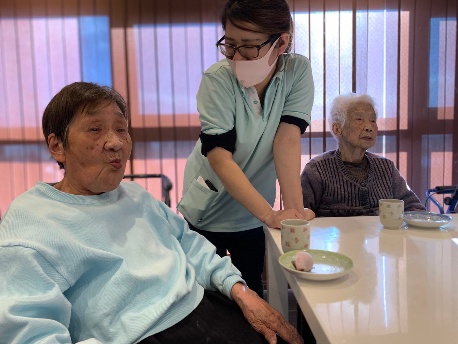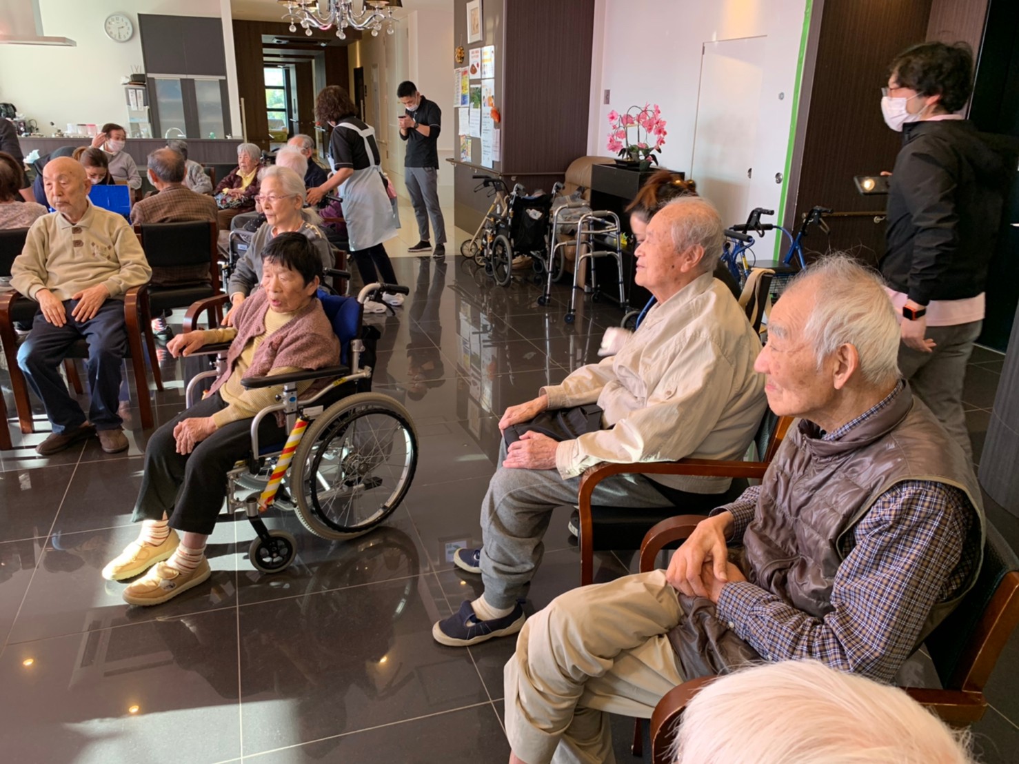 本日からサニープレイス河瀬に新しい利用者さまがご入居されました。ウェルカムパーティーとしてお茶会を開催いたしました。お茶をたてるのがお上手な利用者さまが代表してお抹茶をお持ちしていただきました。
