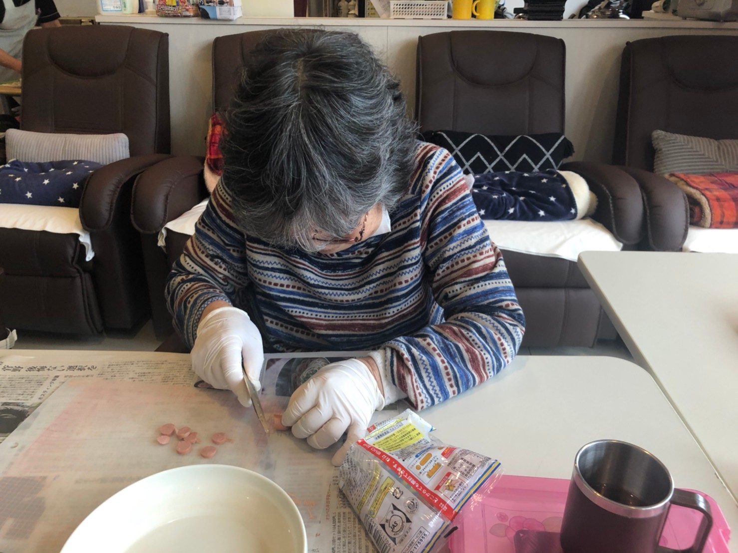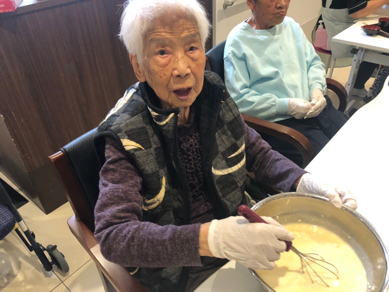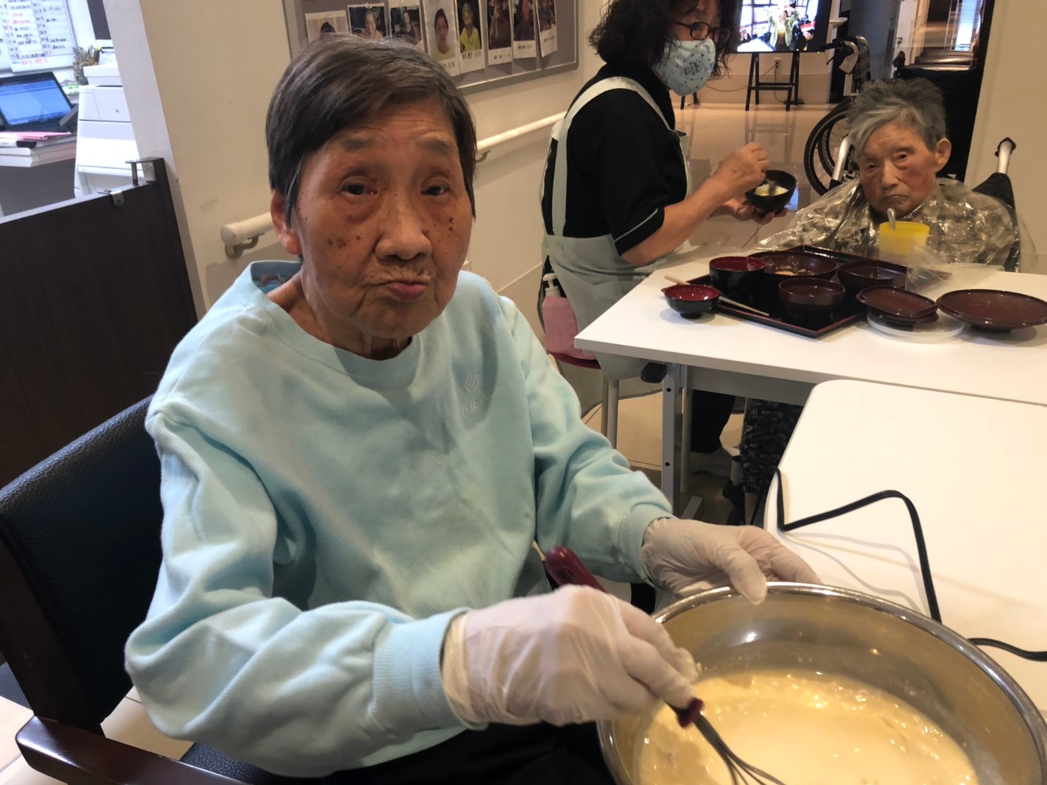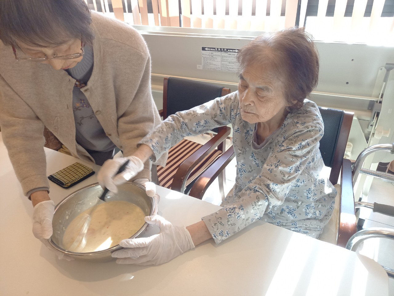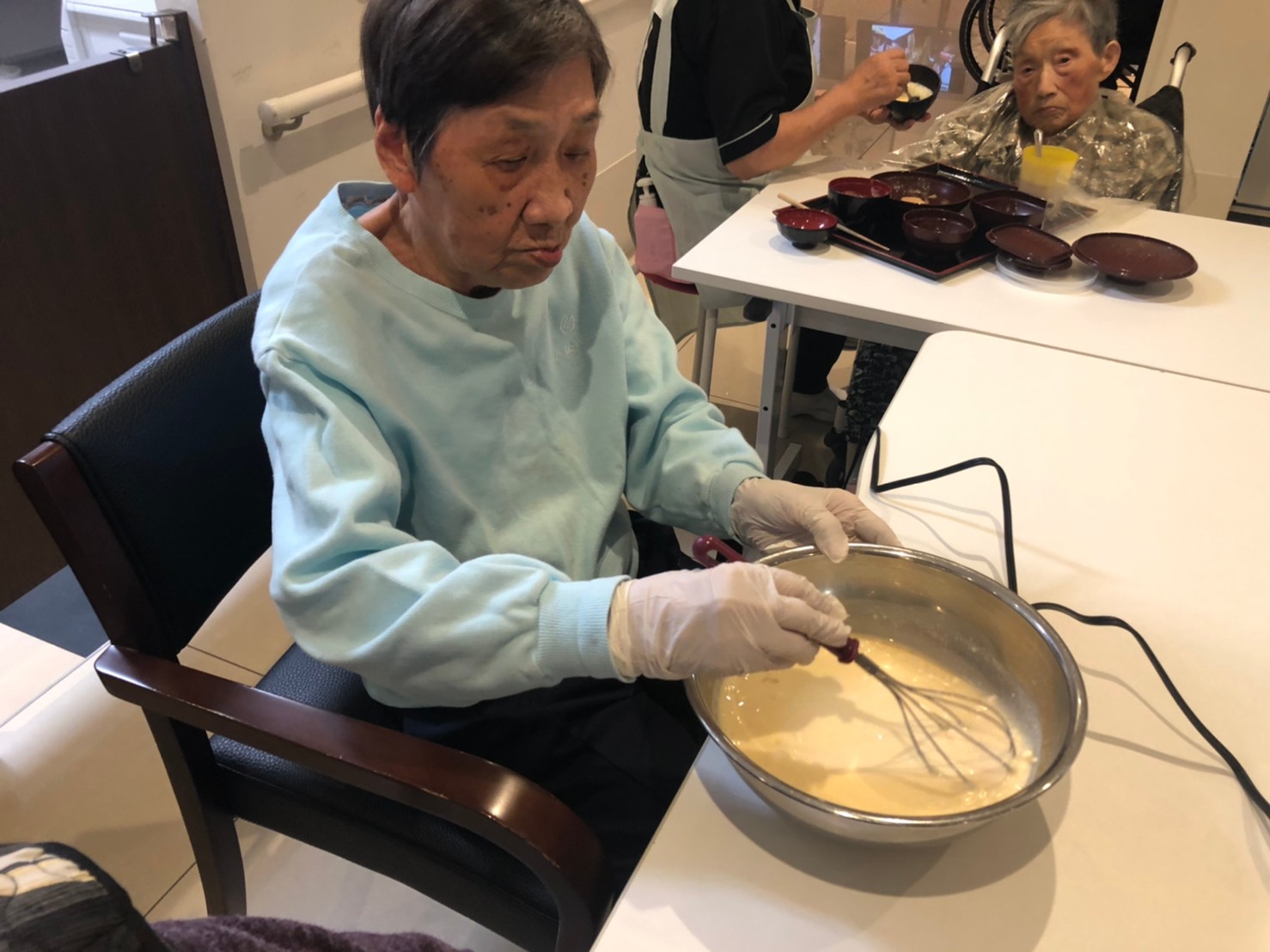 本日は手作りおやつの日でたこやき二日目になります。今日もお昼からデイサービスではおいしい香りに誘われてついつい見に行ってしまいました。(;´Д`)