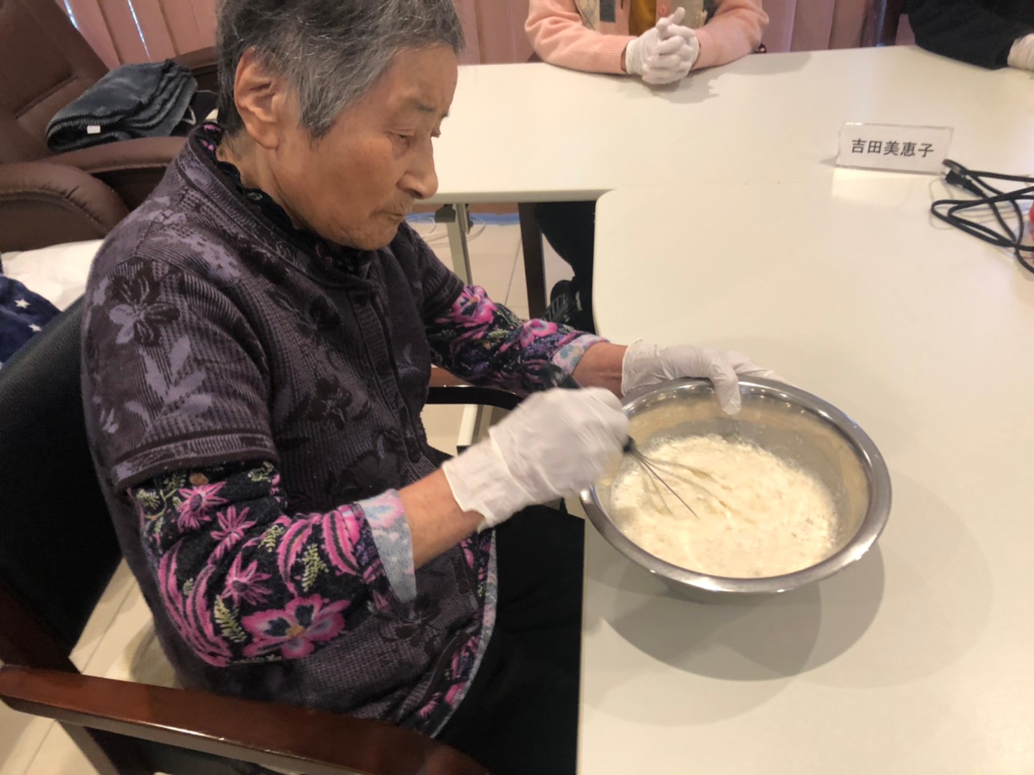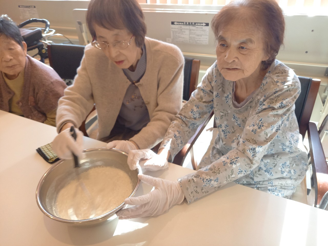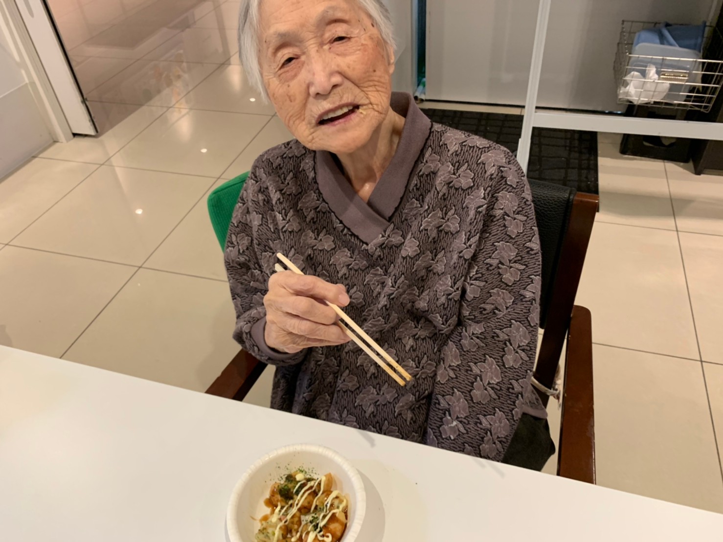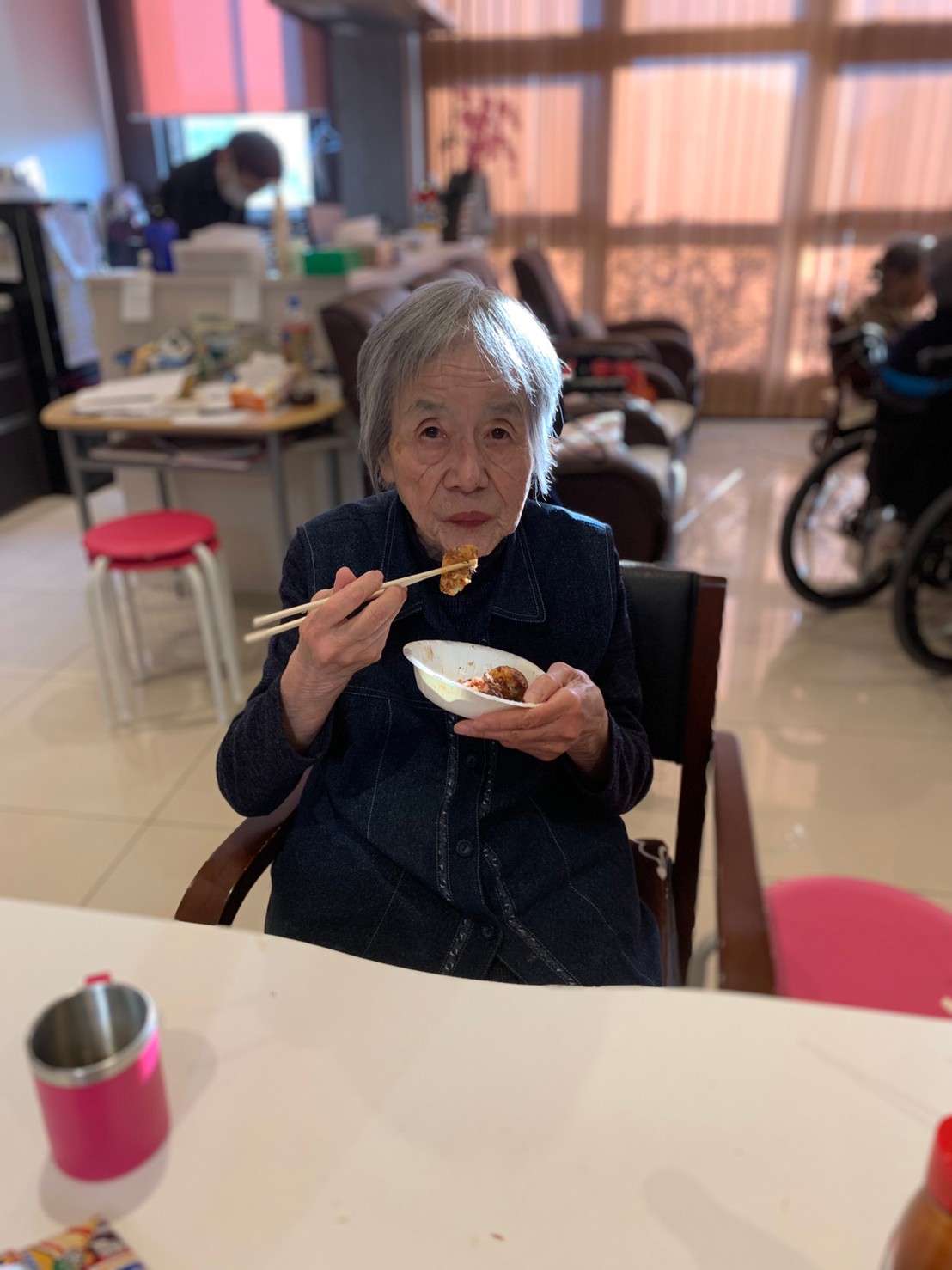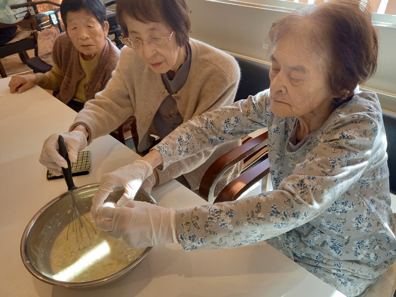 新年1発目の手作りおやつはたこやきをしました。同じ食材で同じ機材で作るのに味が変わるのが不思議なたこ焼き。小さいころから焼かれていた粉もん文化のご出身の利用者さまはさすが手つきも違って美味しいたこやきをお作りになられてました。