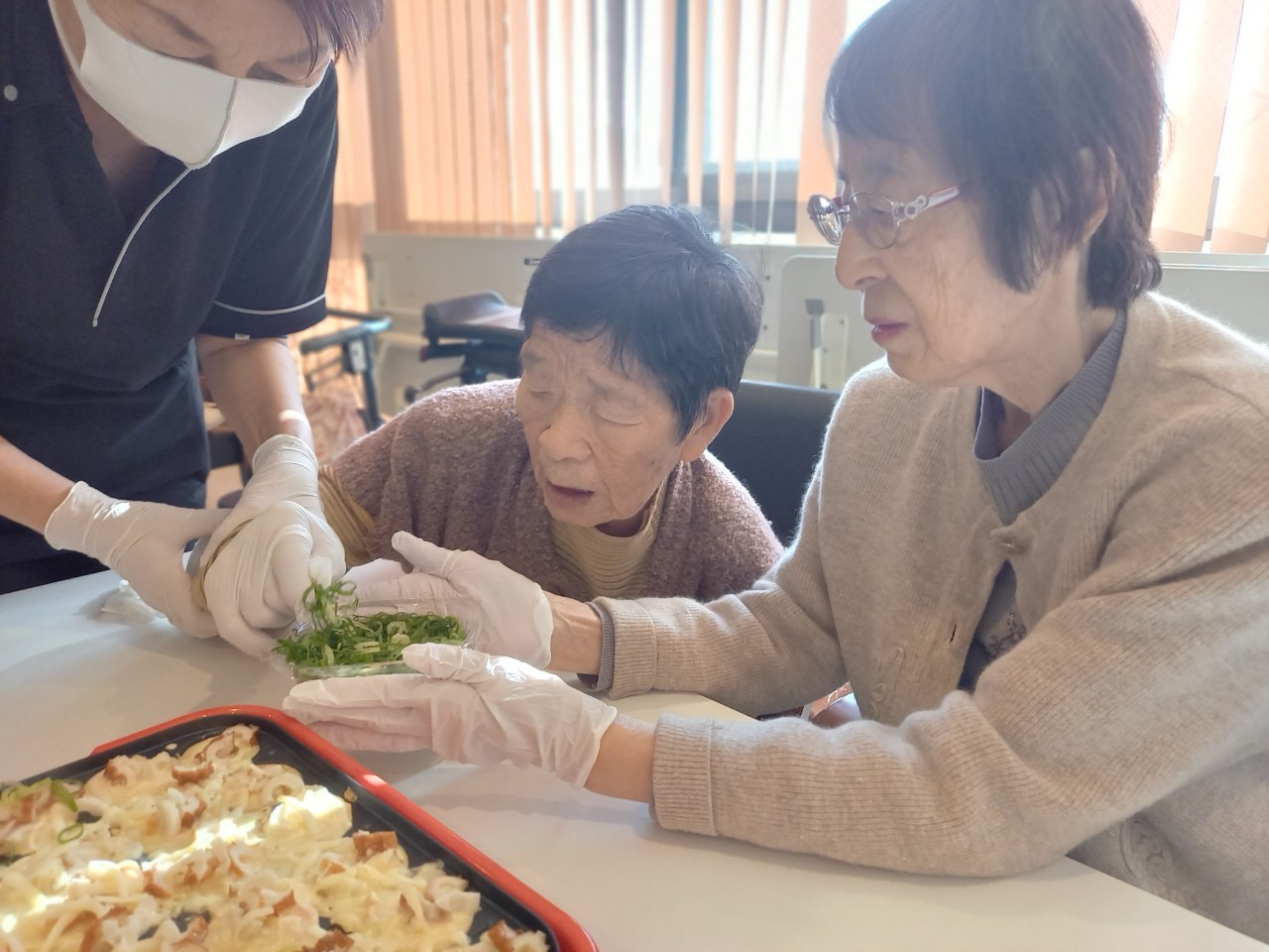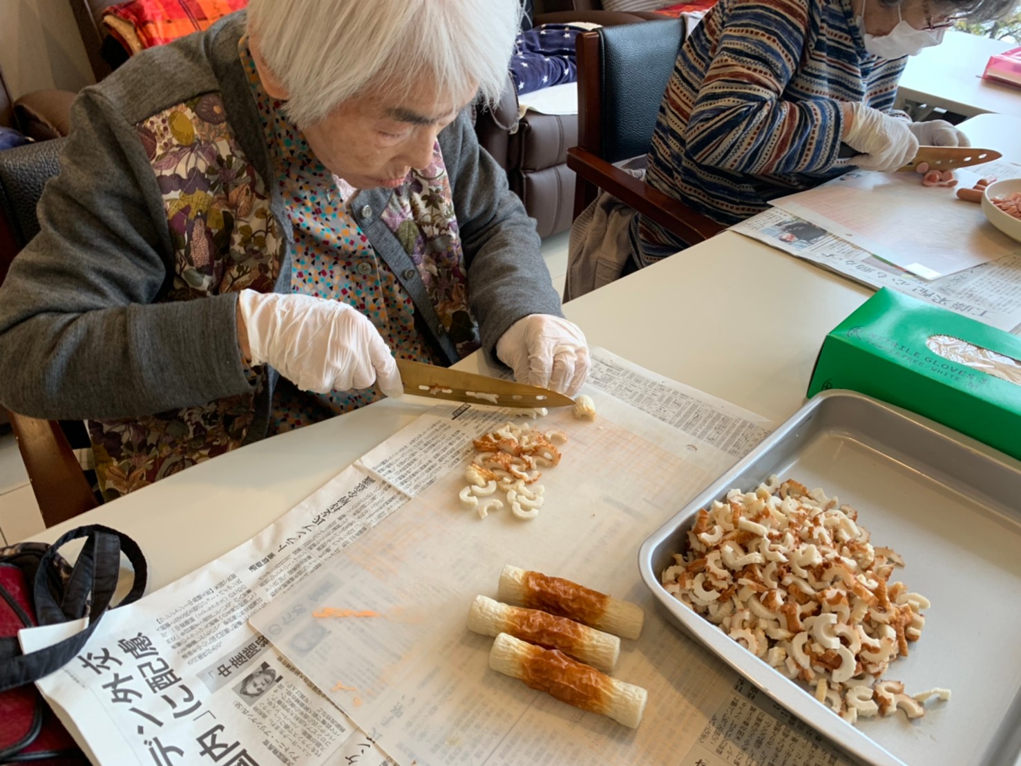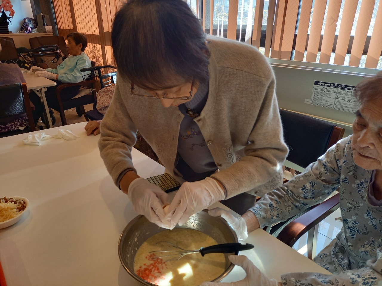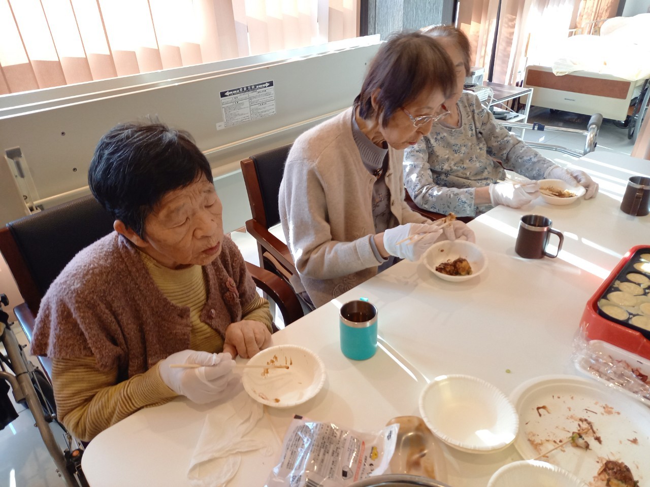 新年1発目の手作りおやつはたこやきをしました。同じ食材で同じ機材で作るのに味が変わるのが不思議なたこ焼き。小さいころから焼かれていた粉もん文化のご出身の利用者さまはさすが手つきも違って美味しいたこやきをお作りになられてました。