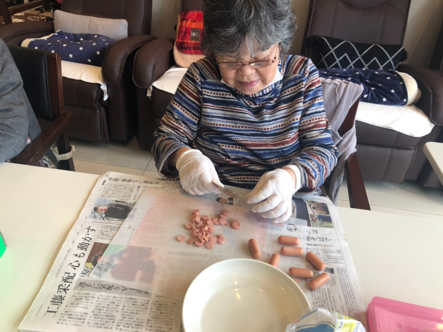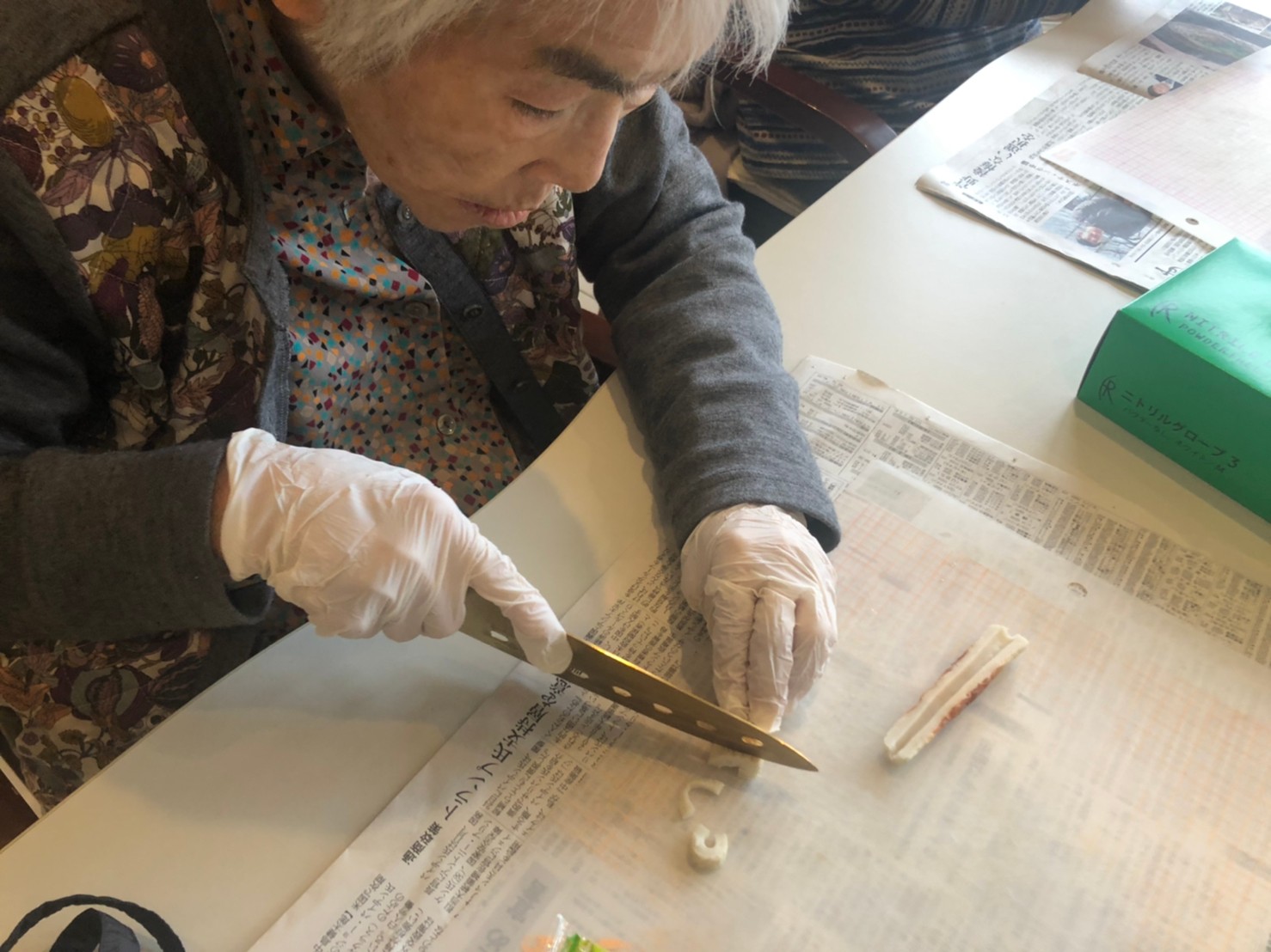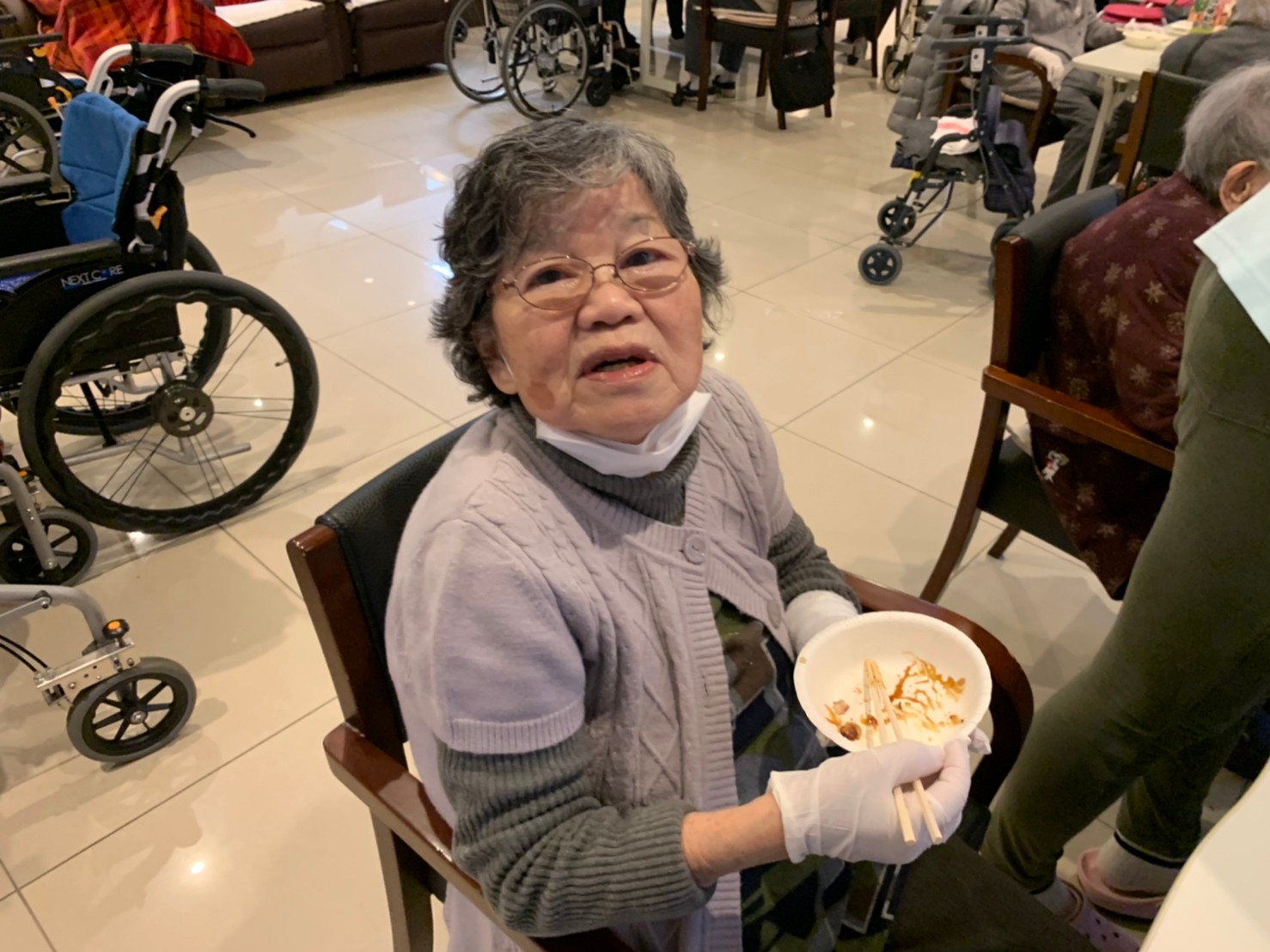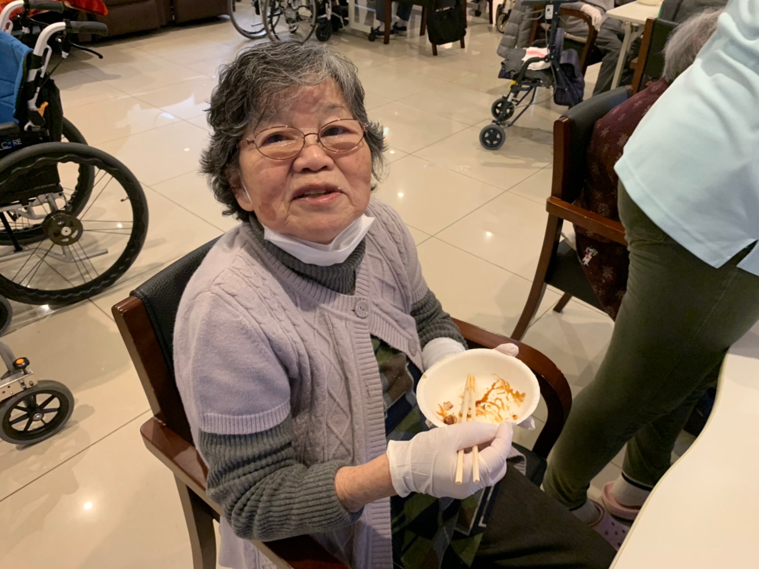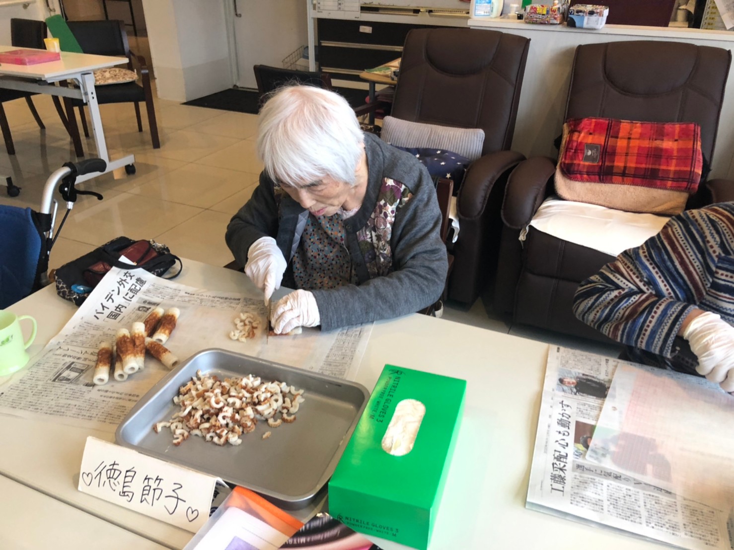 新年1発目の手作りおやつはたこやきをしました。同じ食材で同じ機材で作るのに味が変わるのが不思議なたこ焼き。小さいころから焼かれていた粉もん文化のご出身の利用者さまはさすが手つきも違って美味しいたこやきをお作りになられてました。