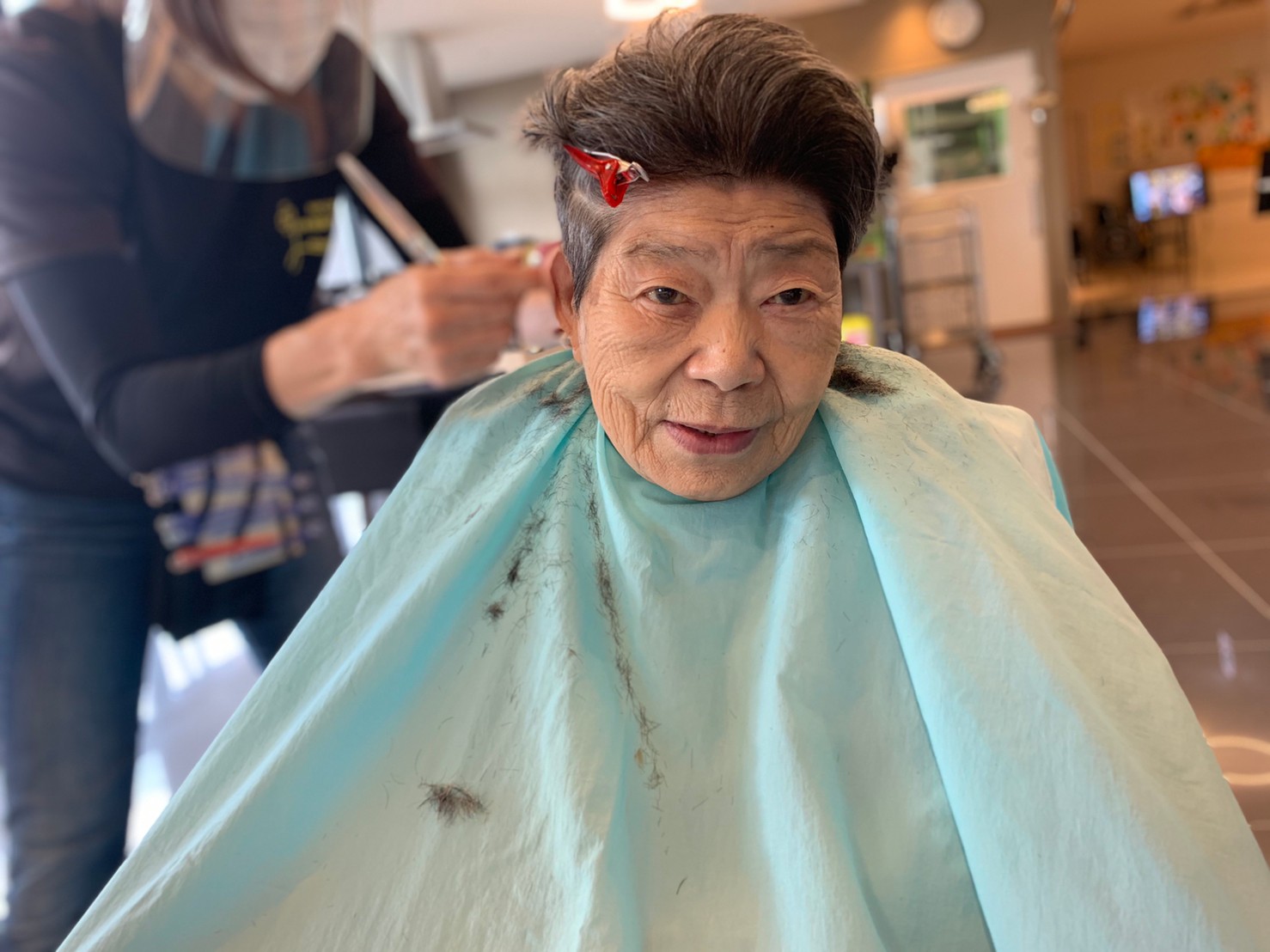 日本理美容福祉協会さんにお越しいただき散髪の日ですが。本日のお客様は1人でした。まさに貸し切り♪