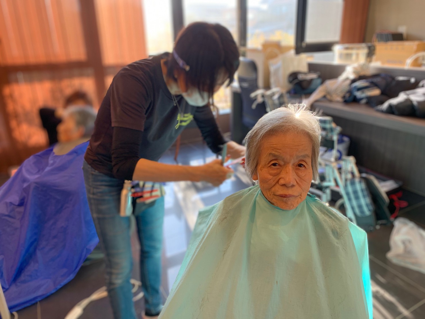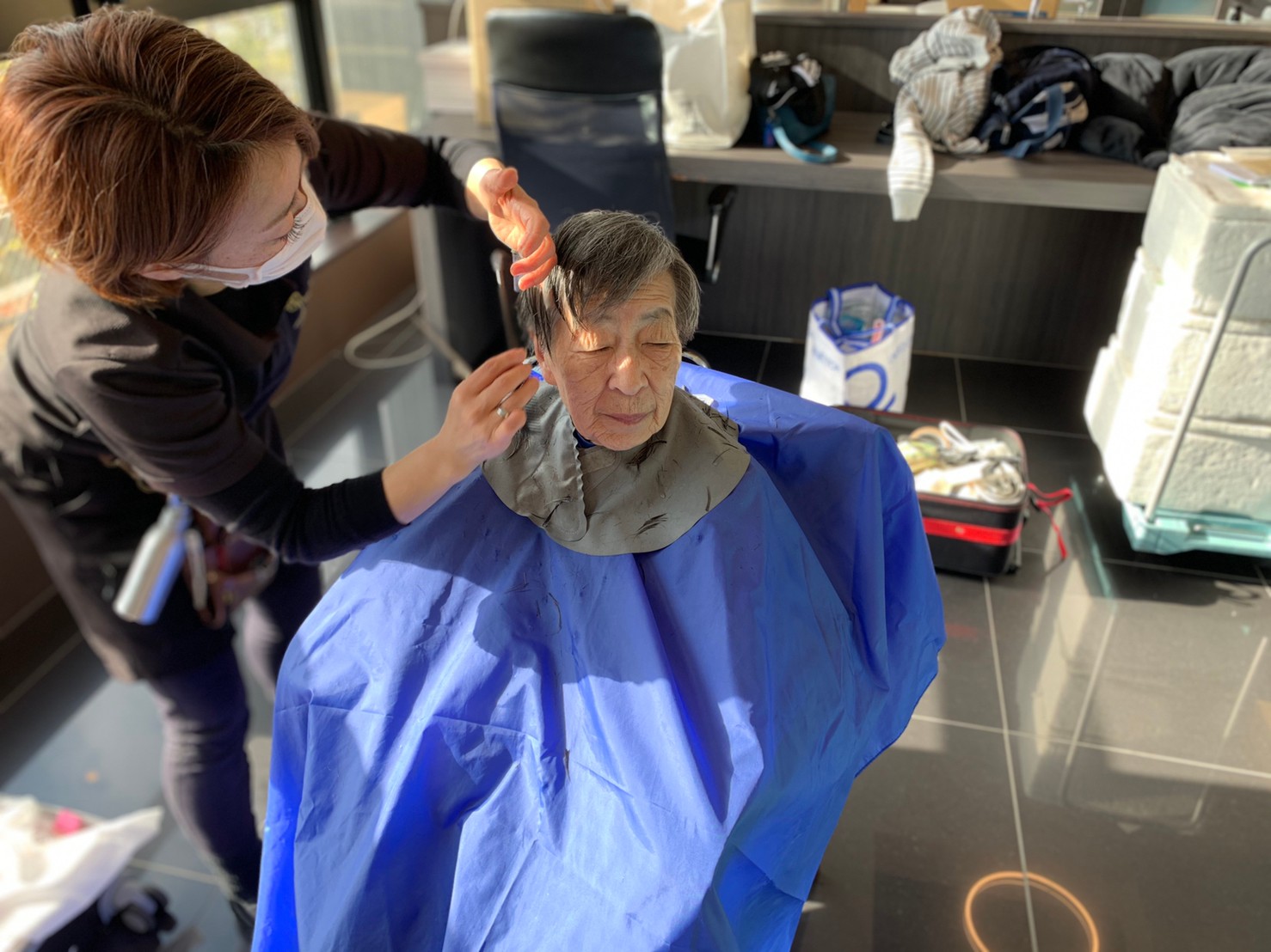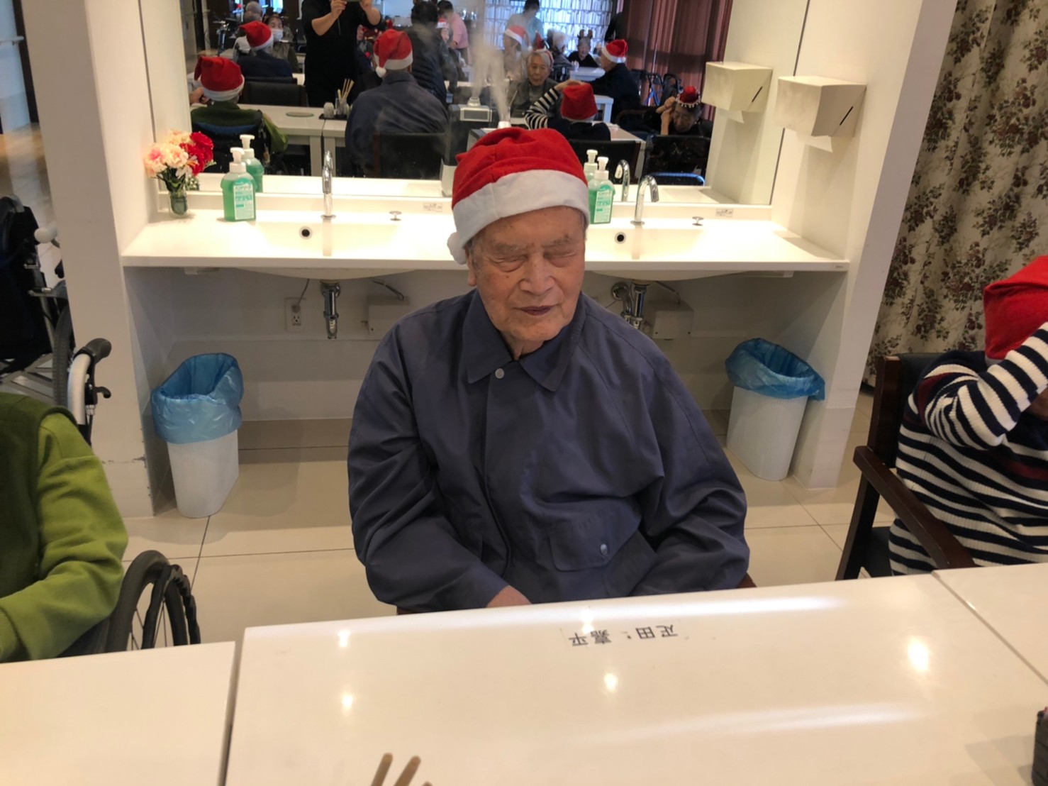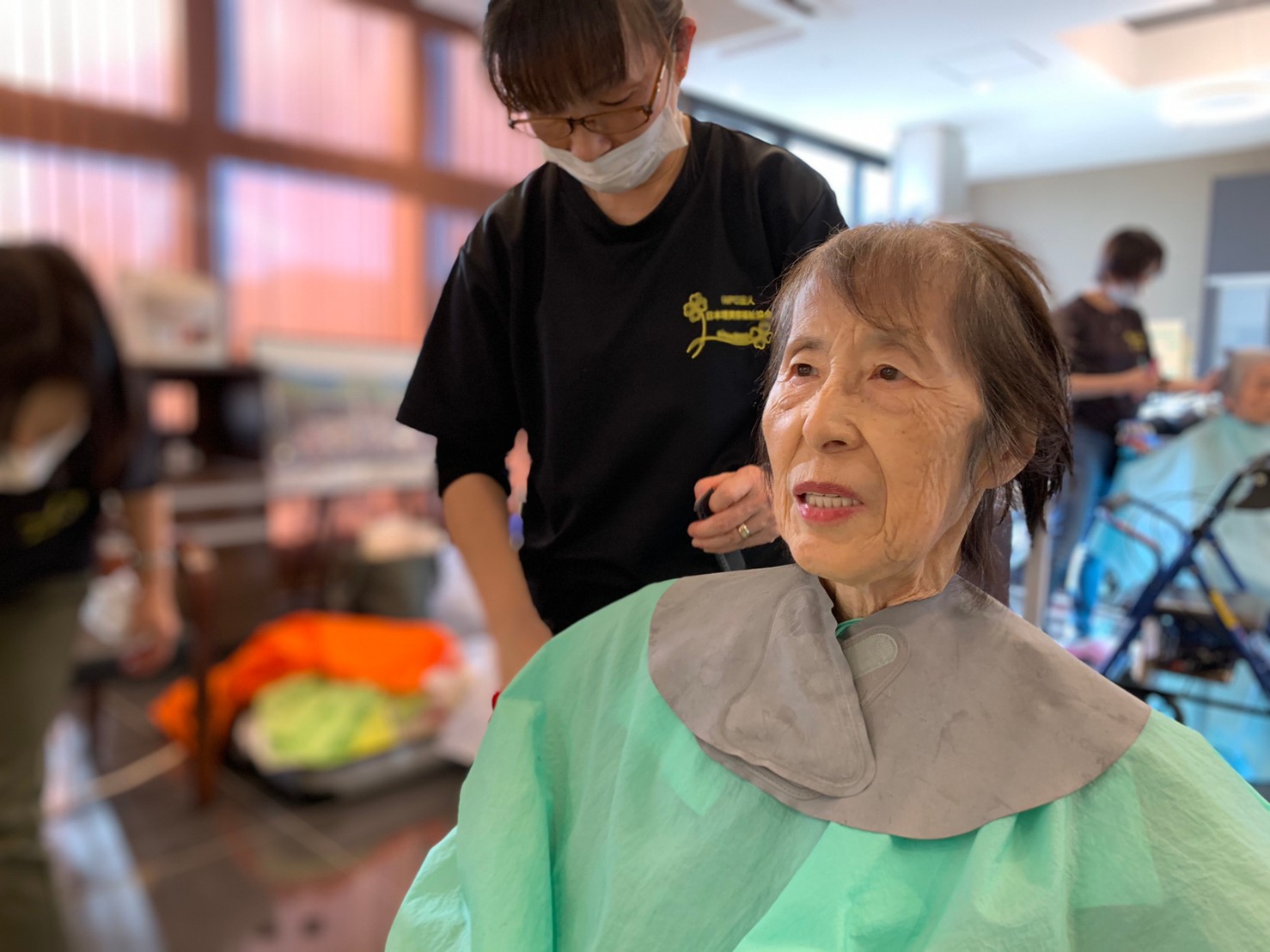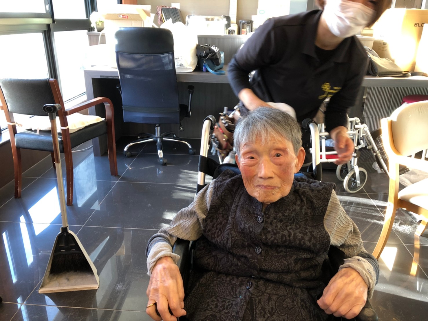 日本理美容福祉協会さんにお越しいただき、ほぼすべてのご利用者さまがお正月に向け、髪の毛を切っていただきました。皆さまが順番に切っていただいている間、お待ちになっている利用者さまが「今日はどうしてもらう?」「長くのばそうかな~」「あんたは短い方が似合うよ」なんて話されているのを見て、お幾つになられても女の子の会話はか変わらないんだな~って思いました。♪あといくつ寝るとお正月♪(*’ω’*)その前に、クリスマス会にお餅つきとまだまだ12月は終わりません。