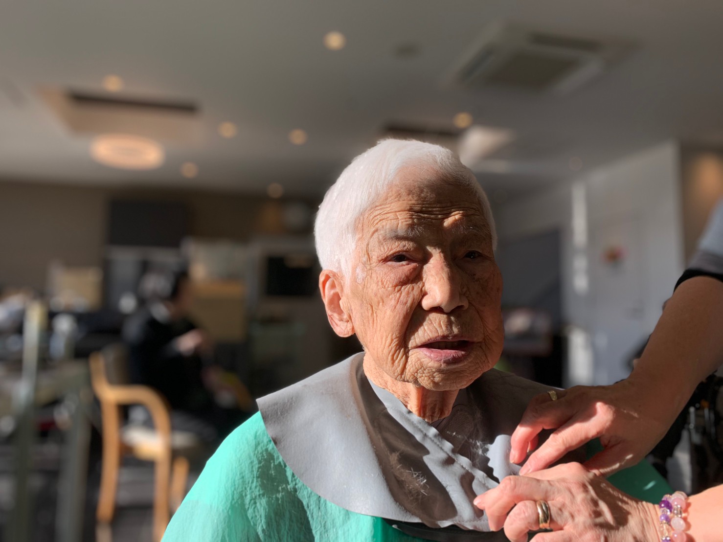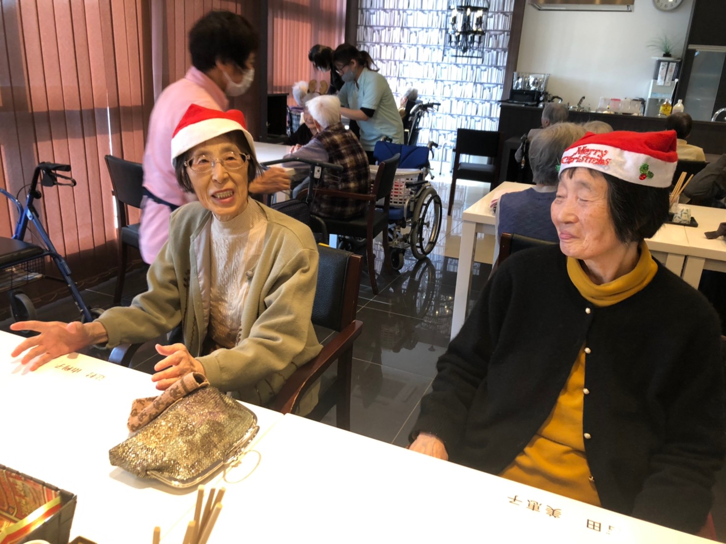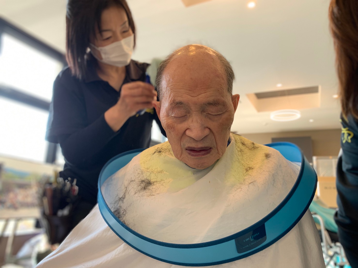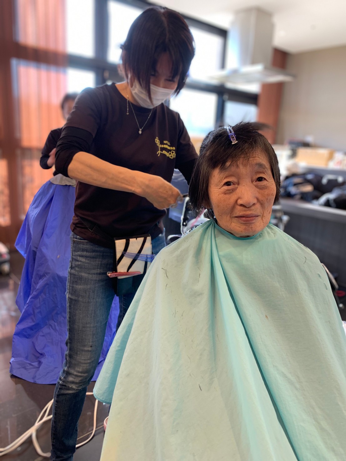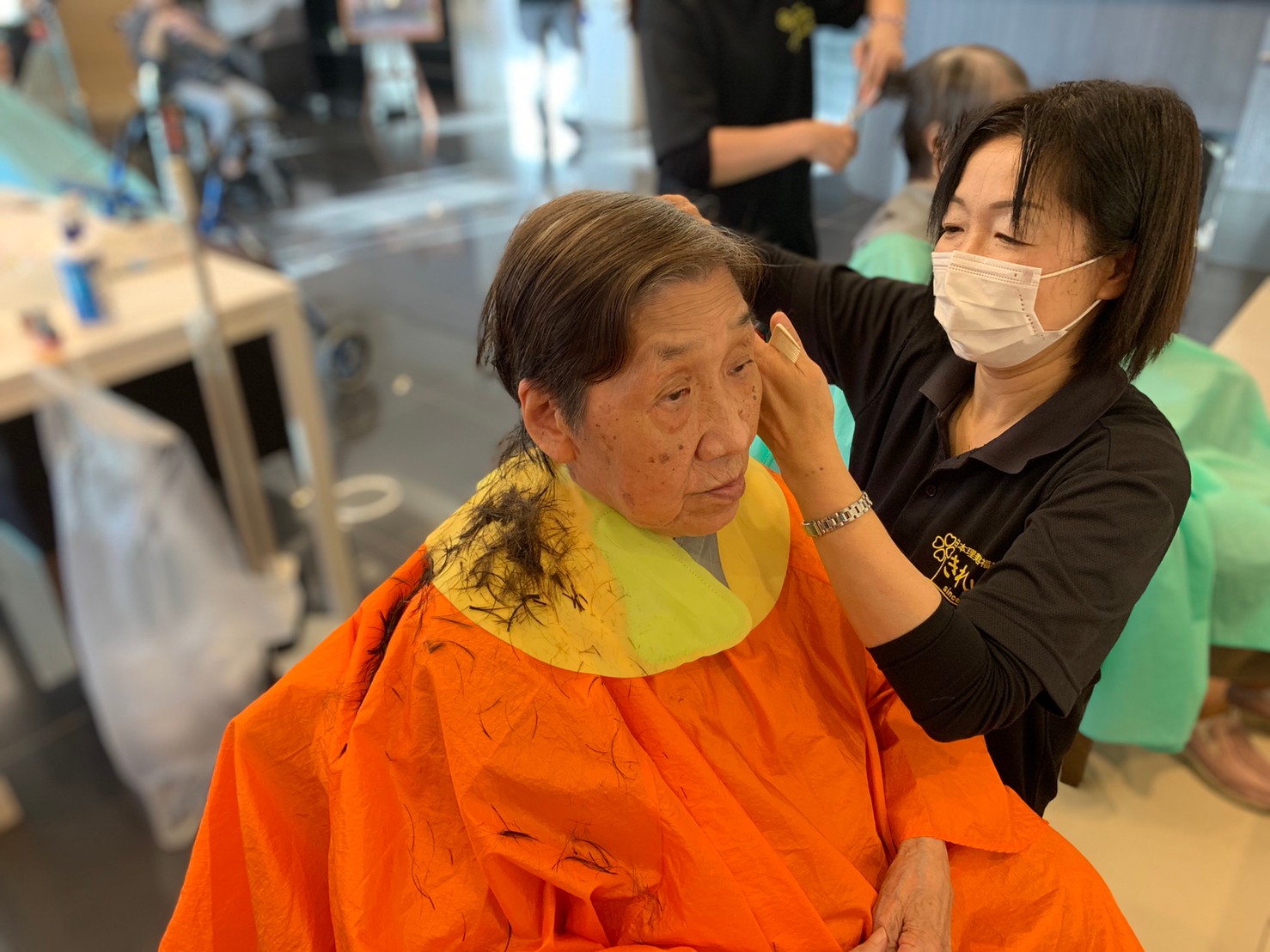 日本理美容福祉協会さんにお越しいただき、ほぼすべてのご利用者さまがお正月に向け、髪の毛を切っていただきました。皆さまが順番に切っていただいている間、お待ちになっている利用者さまが「今日はどうしてもらう?」「長くのばそうかな~」「あんたは短い方が似合うよ」なんて話されているのを見て、お幾つになられても女の子の会話はか変わらないんだな~って思いました。♪あといくつ寝るとお正月♪(*’ω’*)その前に、クリスマス会にお餅つきとまだまだ12月は終わりません。
