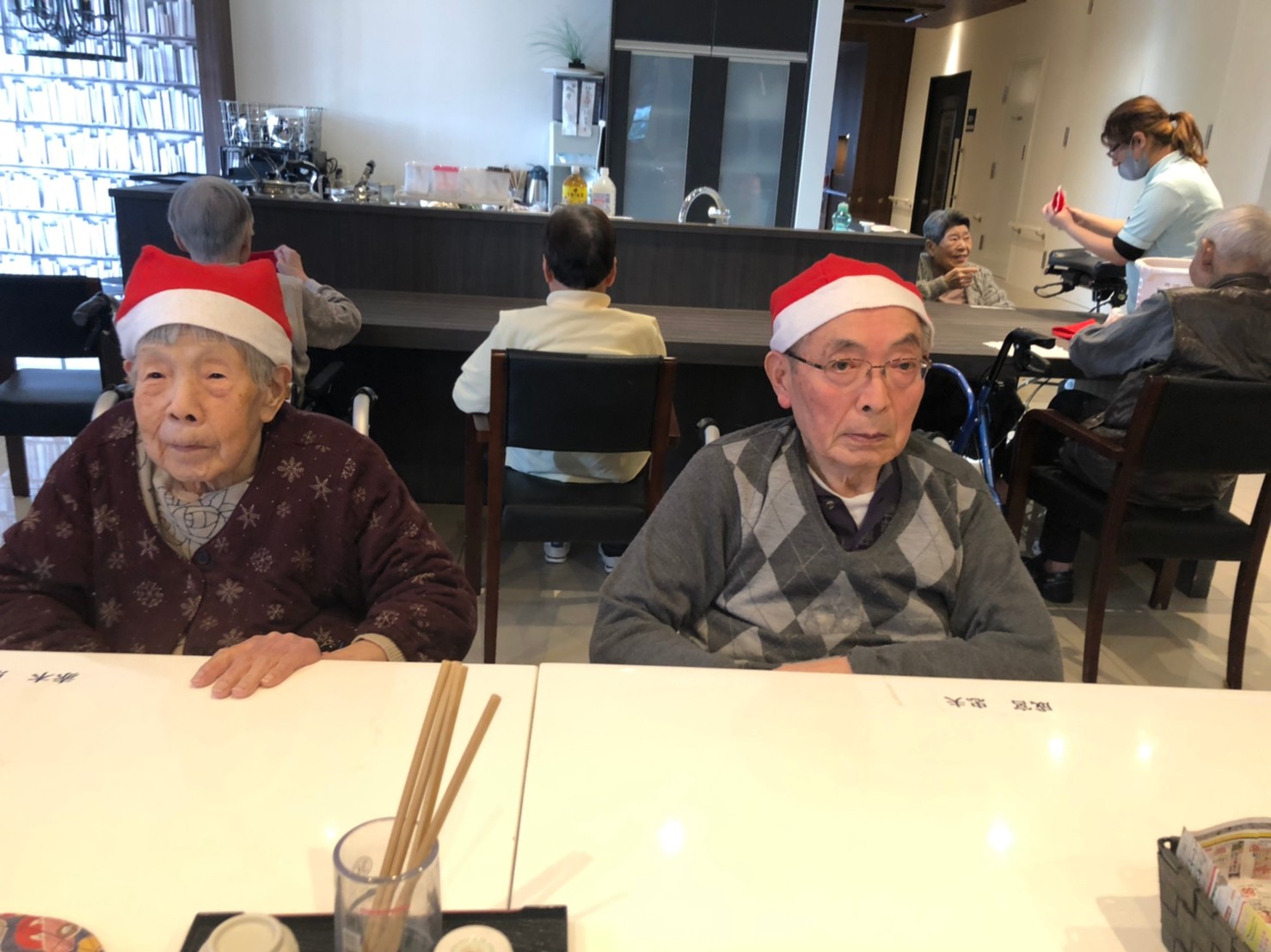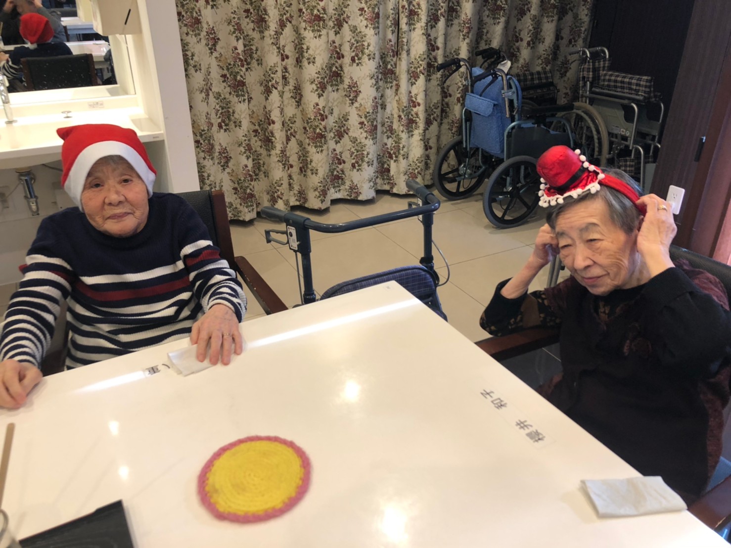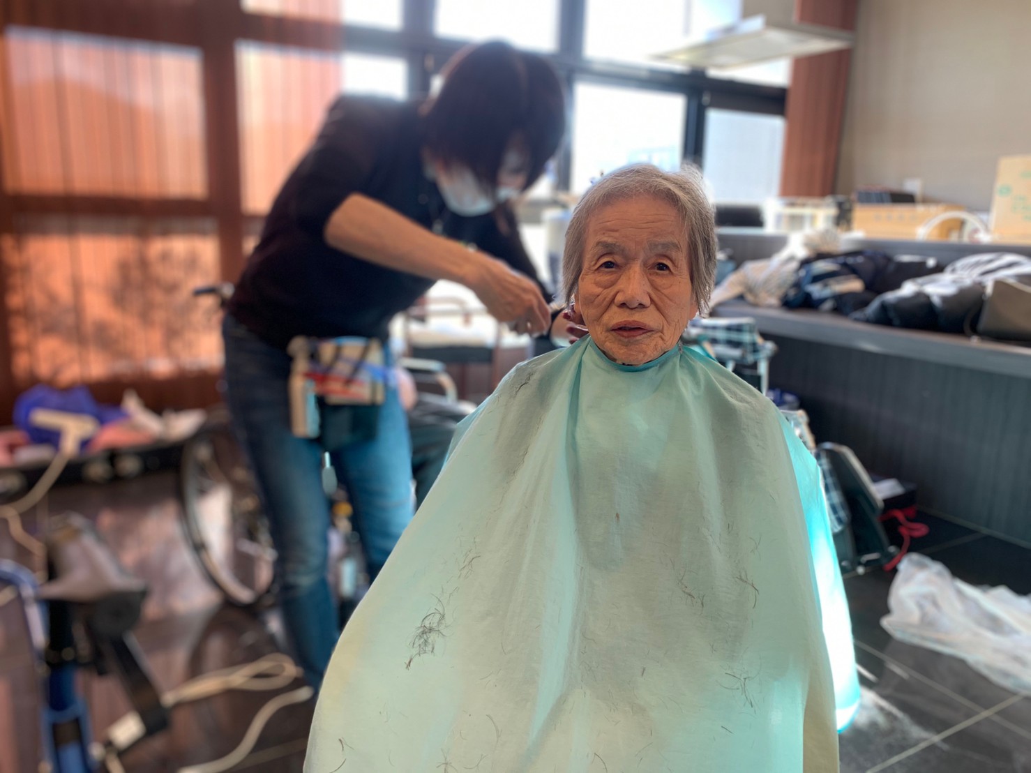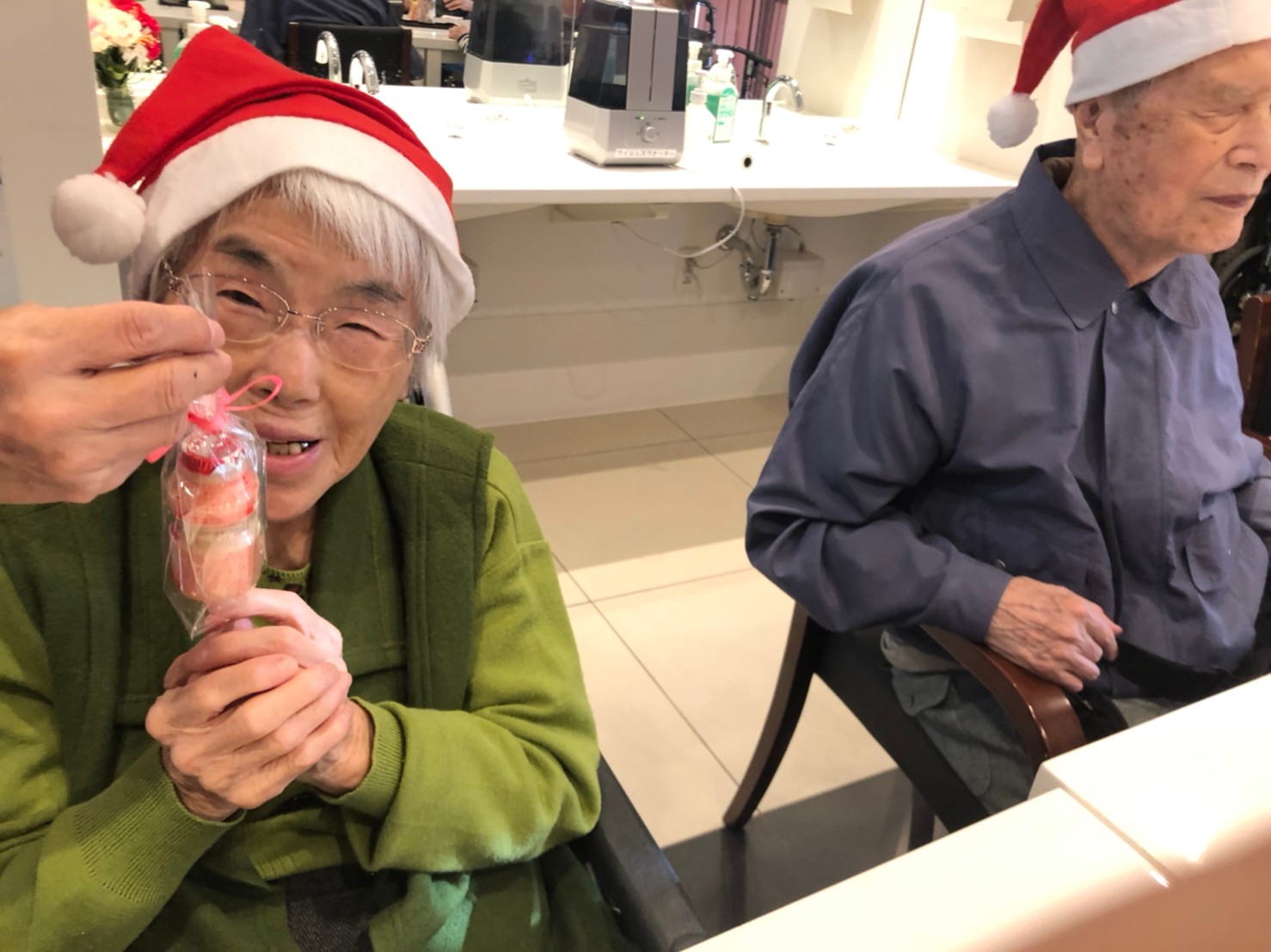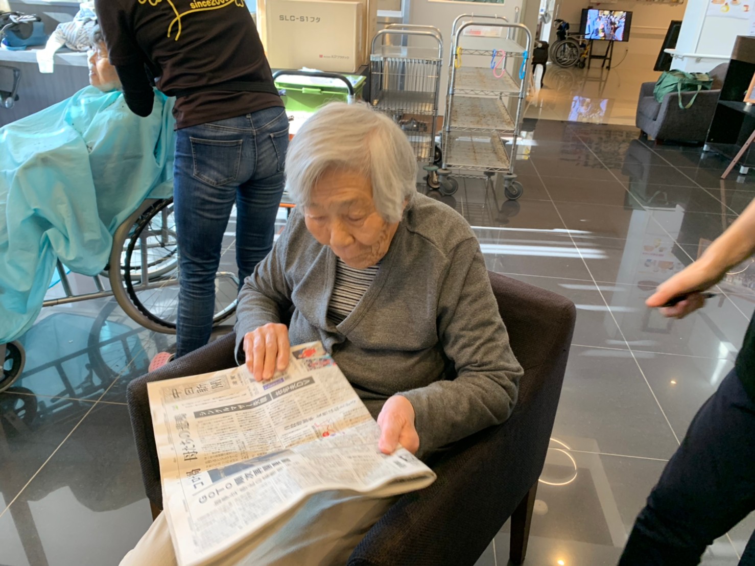 日本理美容福祉協会さんにお越しいただき、ほぼすべてのご利用者さまがお正月に向け、髪の毛を切っていただきました。皆さまが順番に切っていただいている間、お待ちになっている利用者さまが「今日はどうしてもらう?」「長くのばそうかな~」「あんたは短い方が似合うよ」なんて話されているのを見て、お幾つになられても女の子の会話はか変わらないんだな~って思いました。♪あといくつ寝るとお正月♪(*’ω’*)その前に、クリスマス会にお餅つきとまだまだ12月は終わりません。