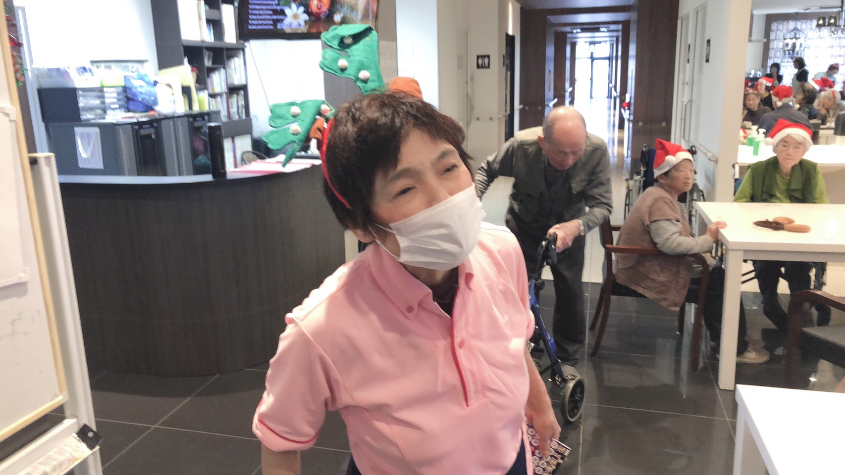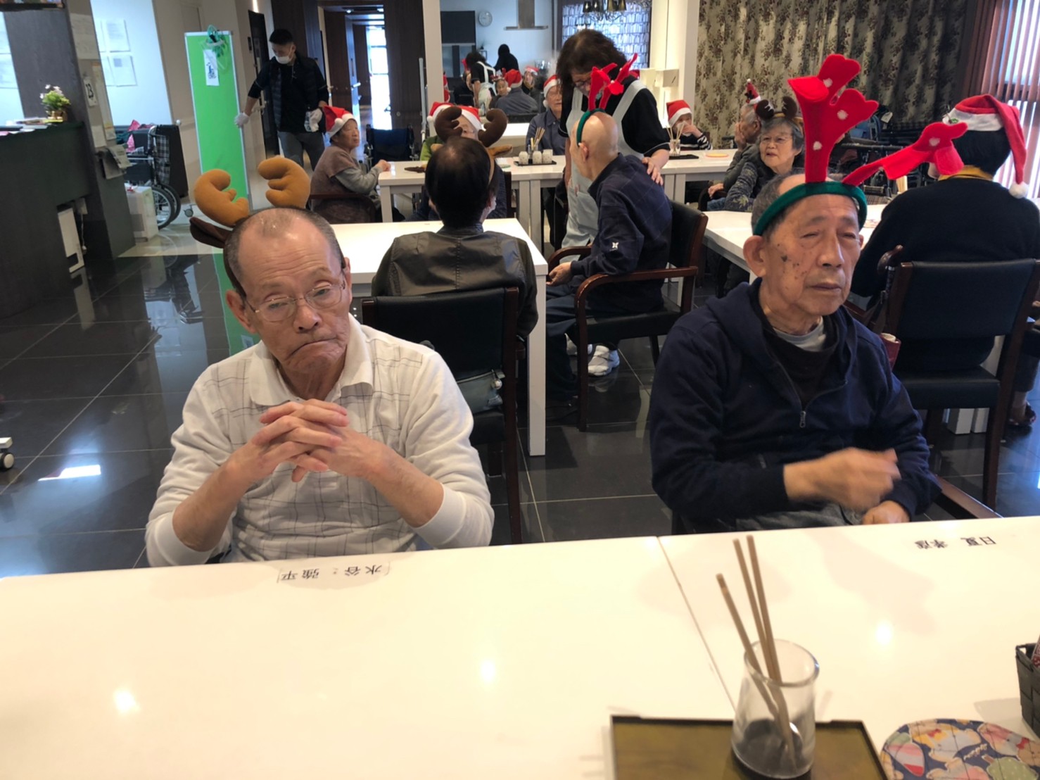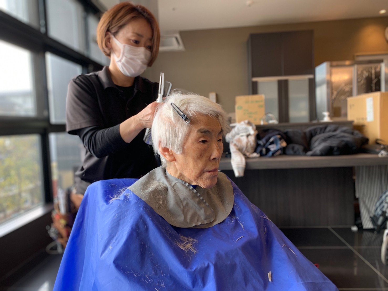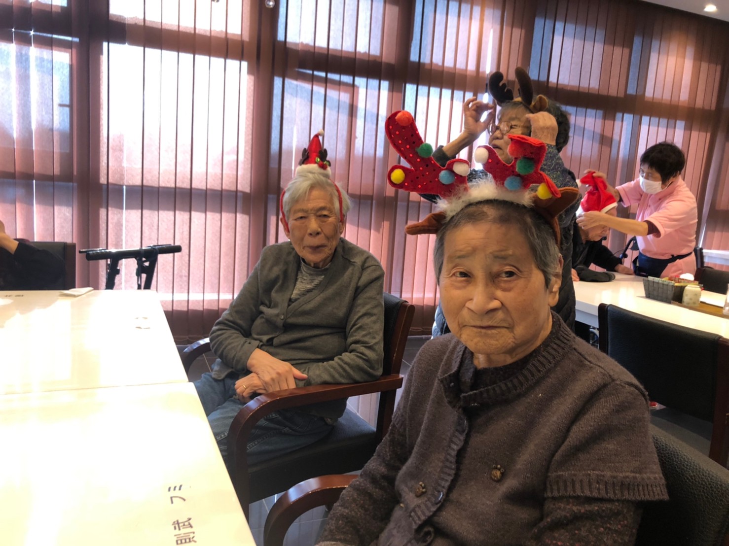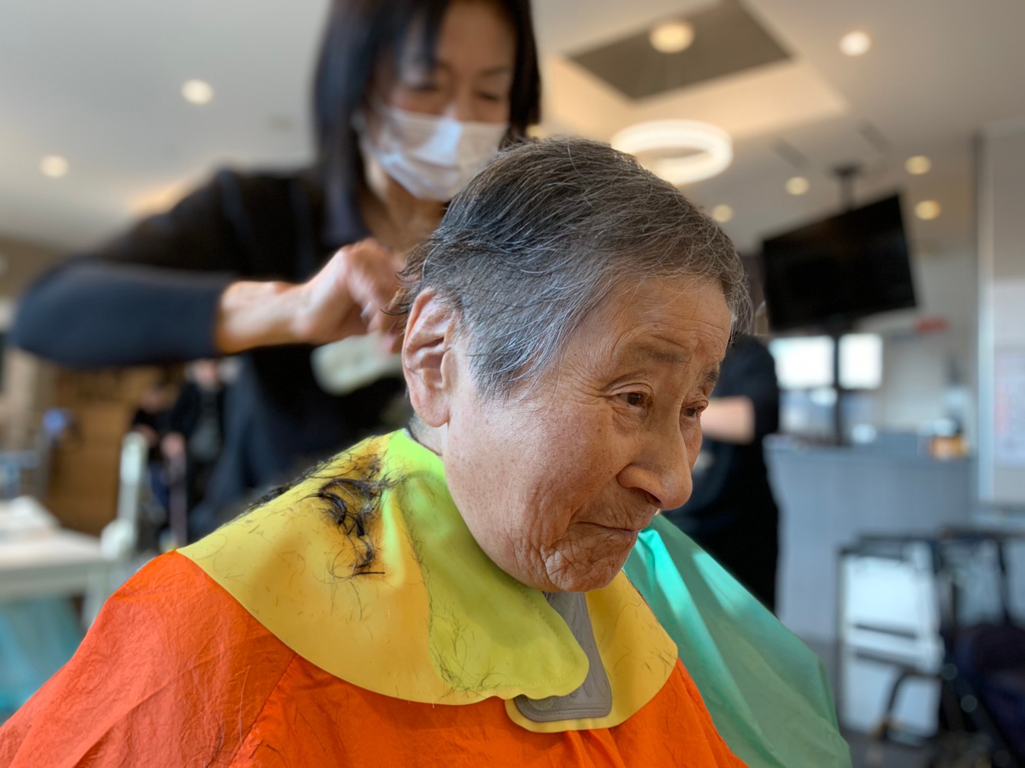 日本理美容福祉協会さんにお越しいただき、ほぼすべてのご利用者さまがお正月に向け、髪の毛を切っていただきました。皆さまが順番に切っていただいている間、お待ちになっている利用者さまが「今日はどうしてもらう?」「長くのばそうかな~」「あんたは短い方が似合うよ」なんて話されているのを見て、お幾つになられても女の子の会話はか変わらないんだな~って思いました。♪あといくつ寝るとお正月♪(*’ω’*)その前に、クリスマス会にお餅つきとまだまだ12月は終わりません。