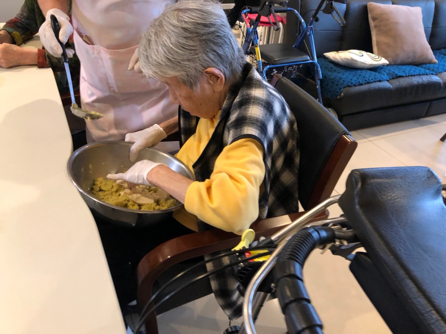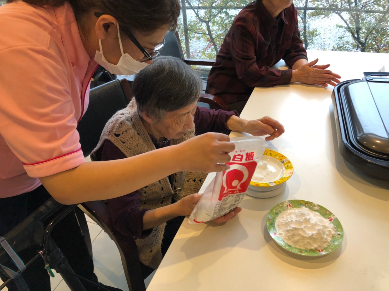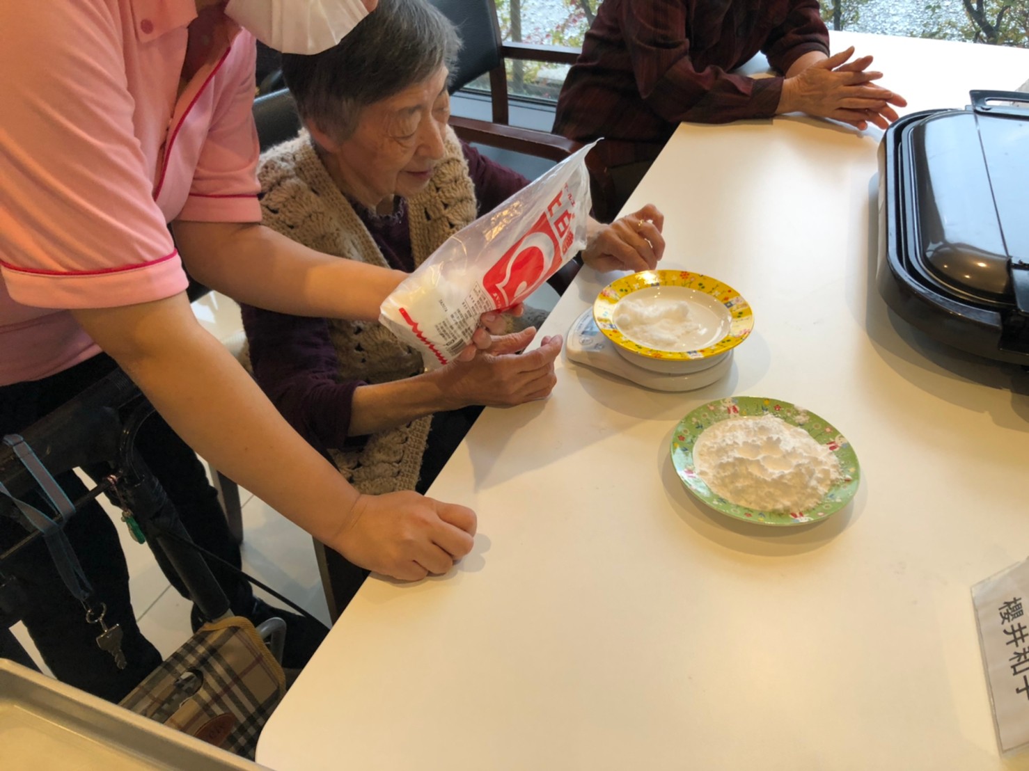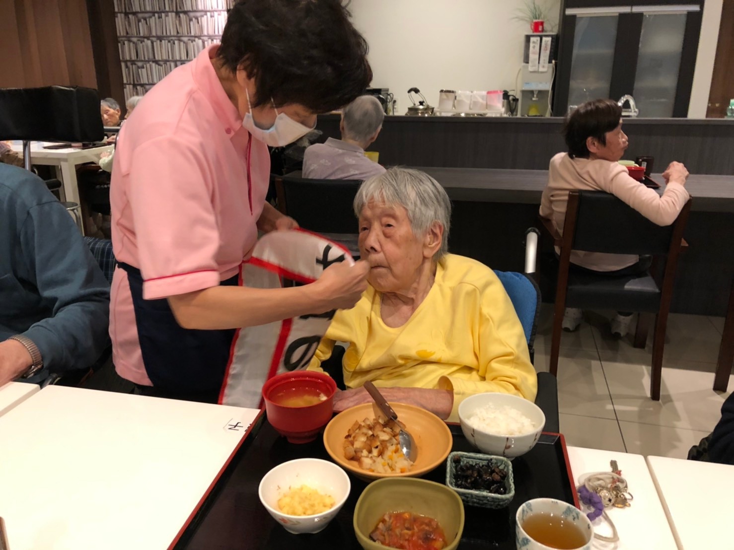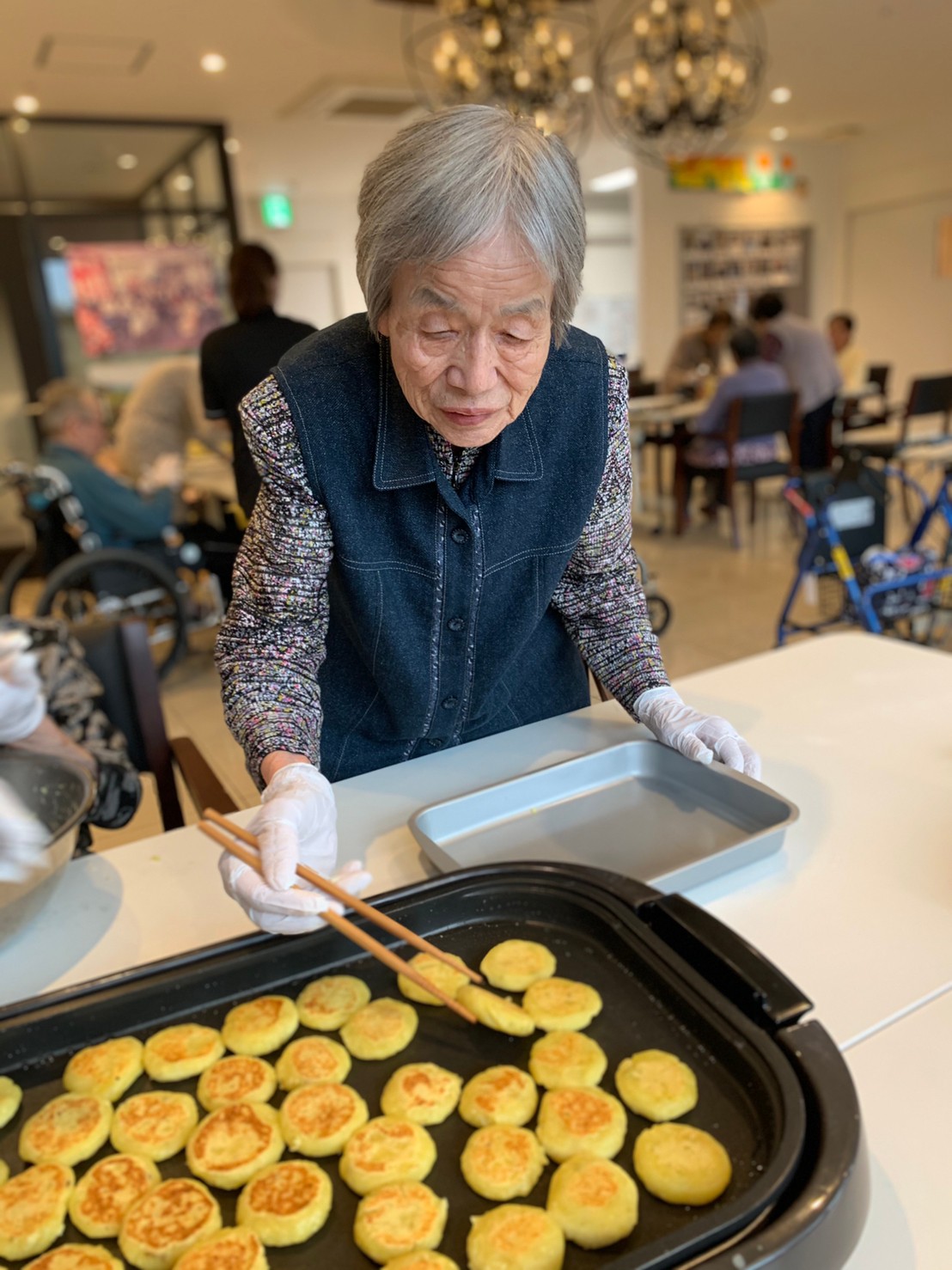 今日はお楽しみの手作りおやつの日(2日目)です。旬のさつまいもを使ったさつまいも餅とさつまいもスープで温まっていただきました。