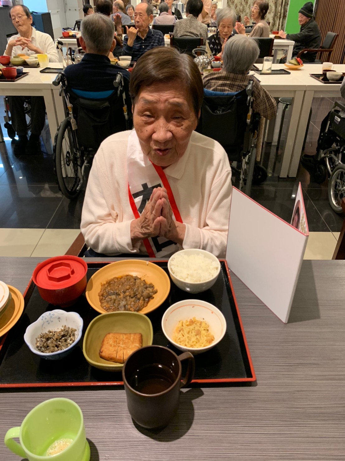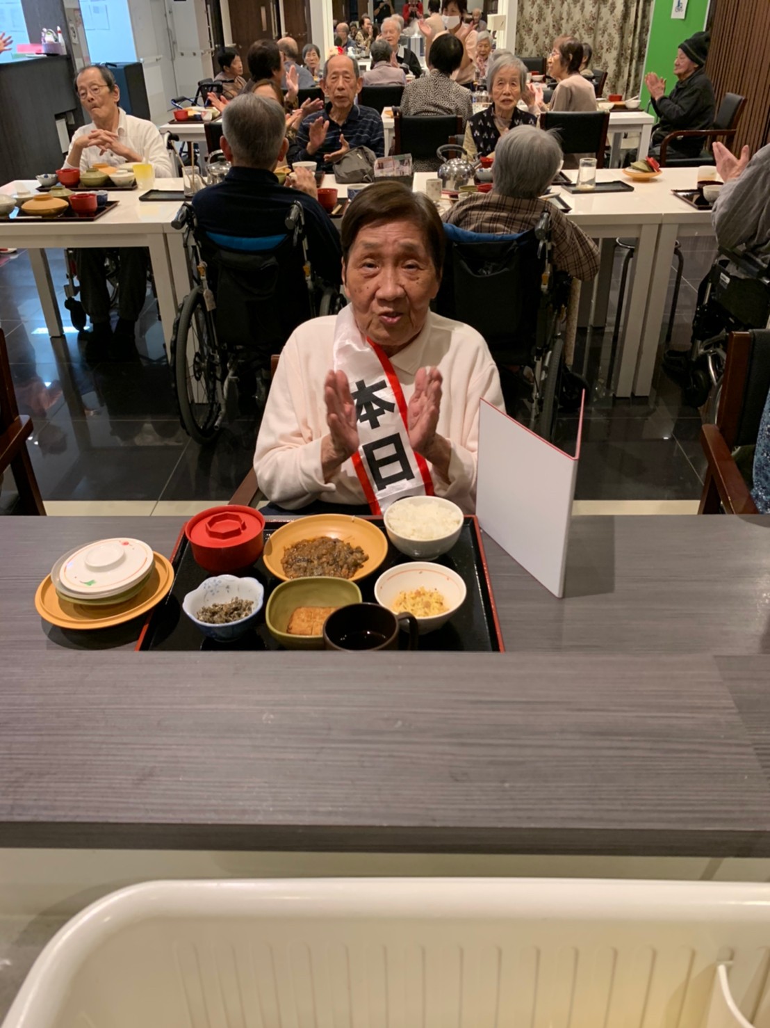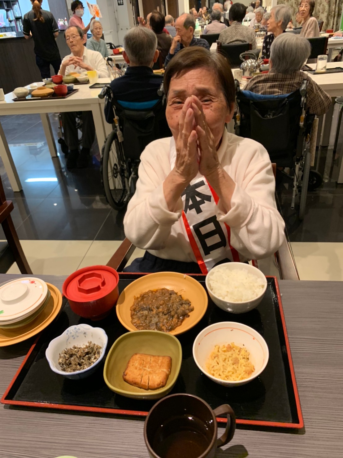 今日も利用者さまのお誕生日会です。当施設ができたころより毎年お誕生日のお祝いをさせていただいています。毎年涙を流されお喜びされているのが印象に残っています。