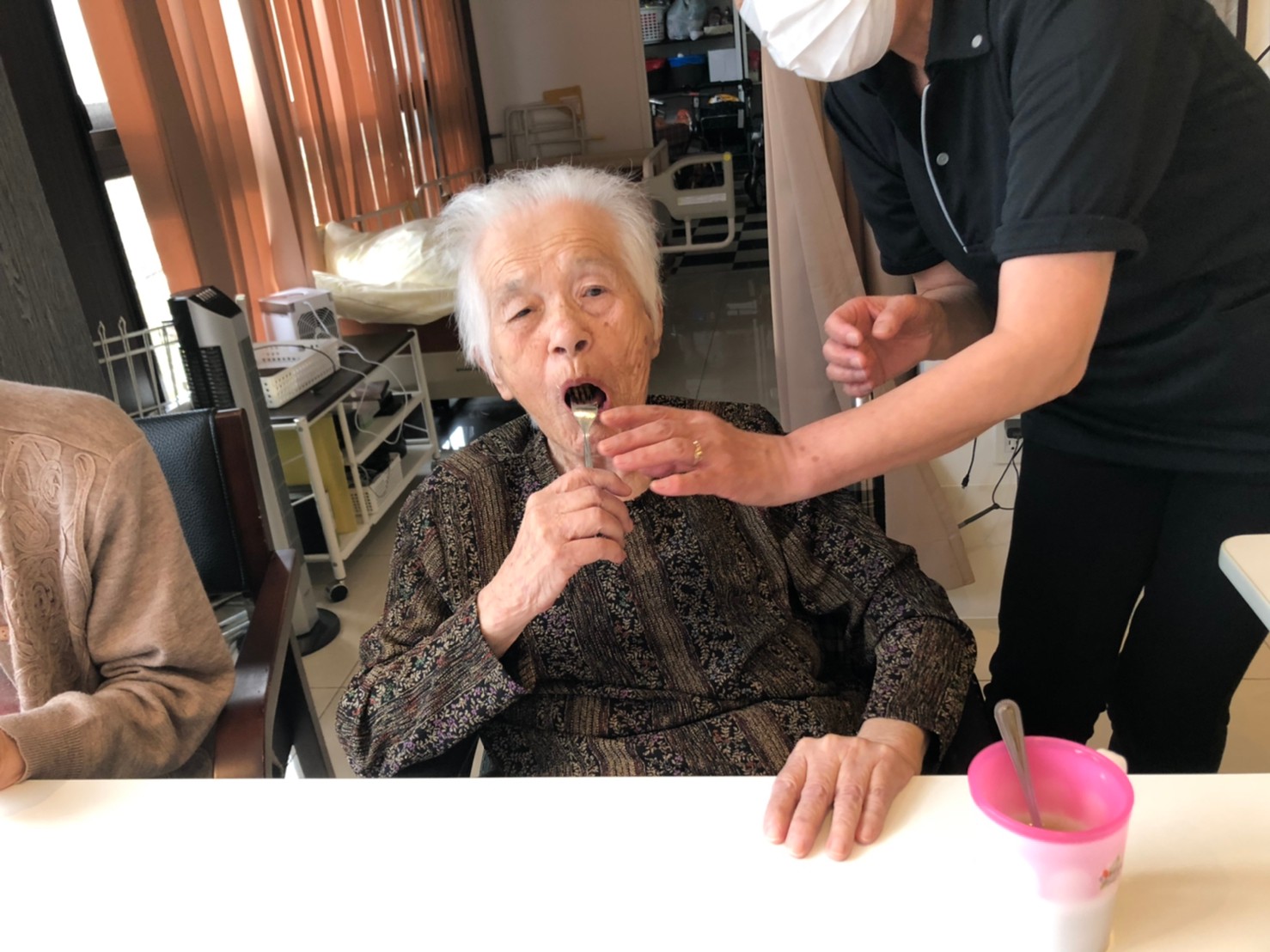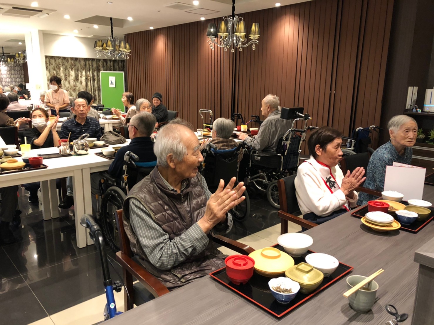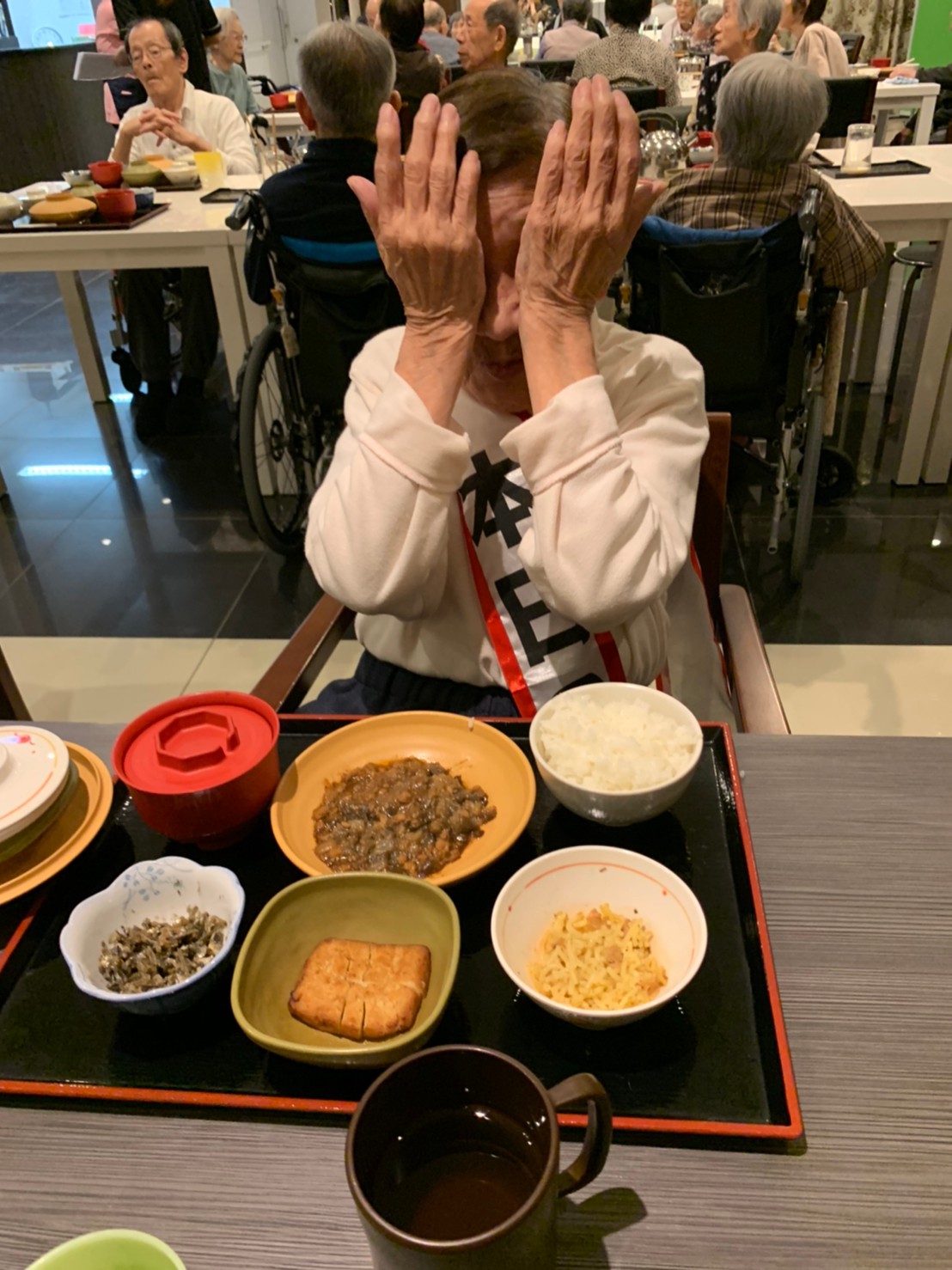 今日も利用者さまのお誕生日会です。当施設ができたころより毎年お誕生日のお祝いをさせていただいています。毎年涙を流されお喜びされているのが印象に残っています。