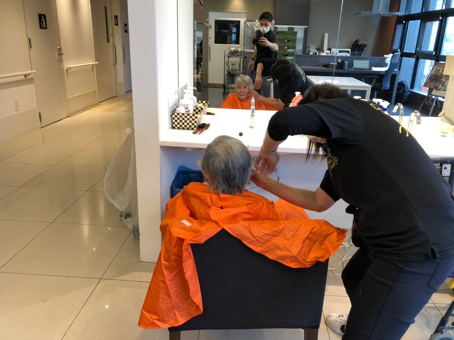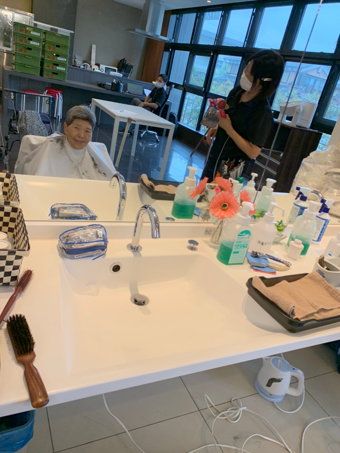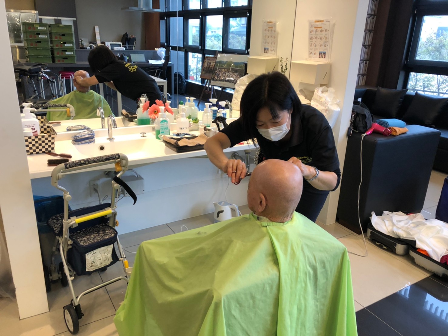 日本理美容福祉協会さまにお越しいただき散髪の日です。暑かったり寒かったりの毎日ですがまだ暑い日もあるので髪の毛切ってさっぱりです(*’ω’*)