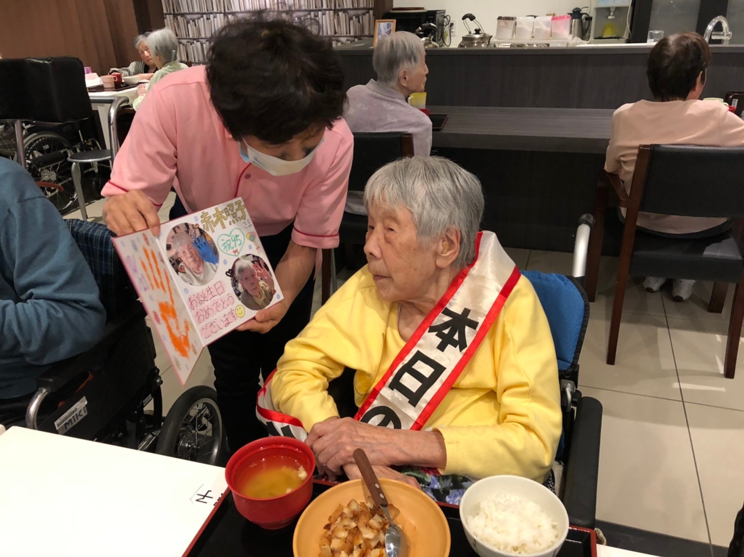 本日も利用者さまのお誕生日でした。いつも手作りおやつの日は家でいろいろなお菓子を作ったとお話ししてくださいます。これからもどうぞお元気にお過ごしください。